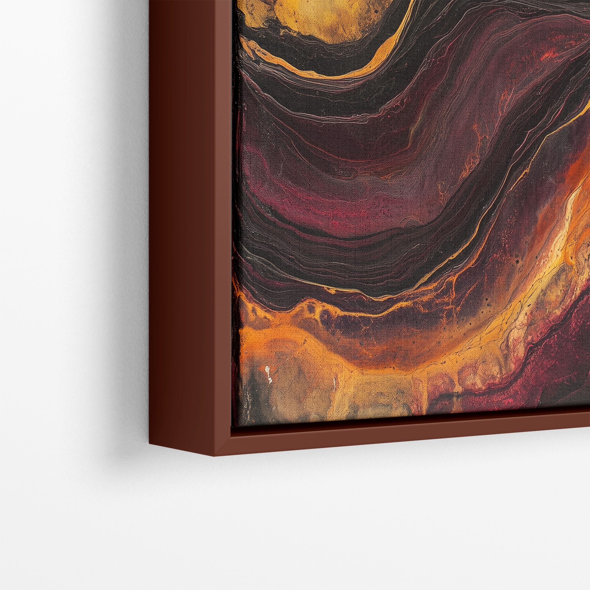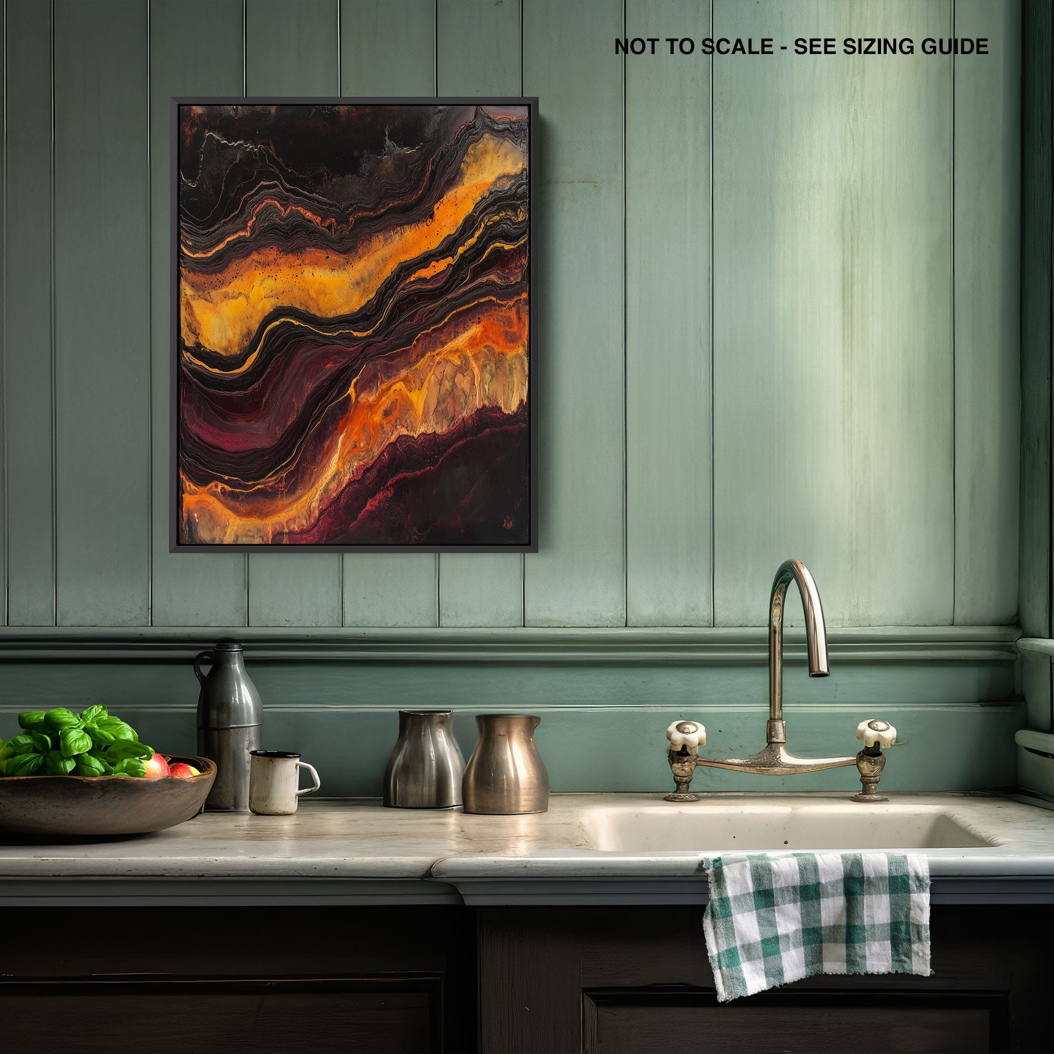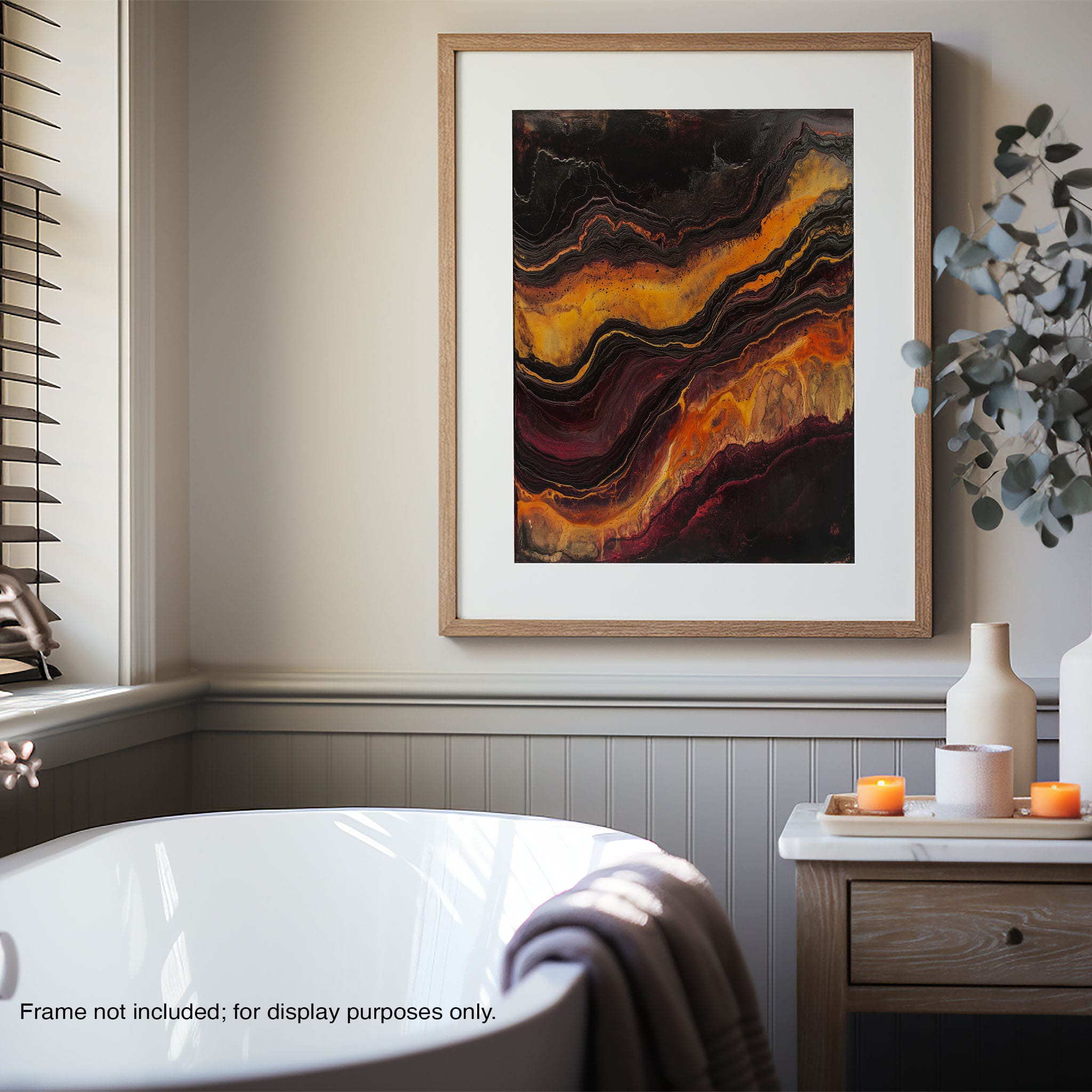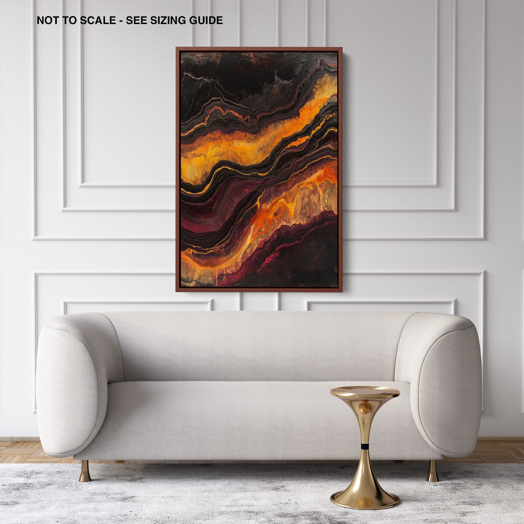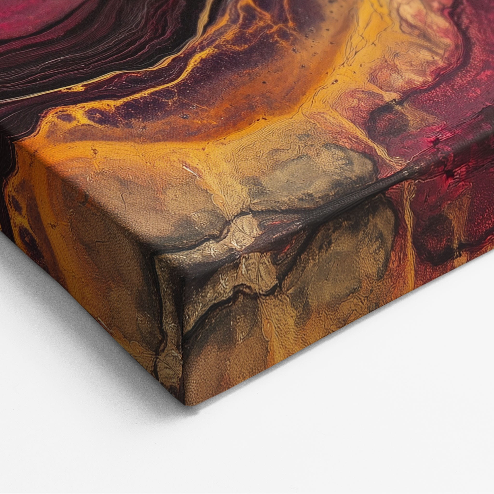 This painting captures the mysterious allure of an abstract volcanic landscape, wherein swirls of black, red, and fiery orange meld together to create a dynamic and mesmerizing view. The fluidity of the colors and the depth of the textures evoke the intense energy and beauty of natural geological formations. Perfect for art lovers looking for a bold statement piece, this artwork brings a touch of surreal heat to any space, making it an ideal centerpiece that commands attention and conversation.