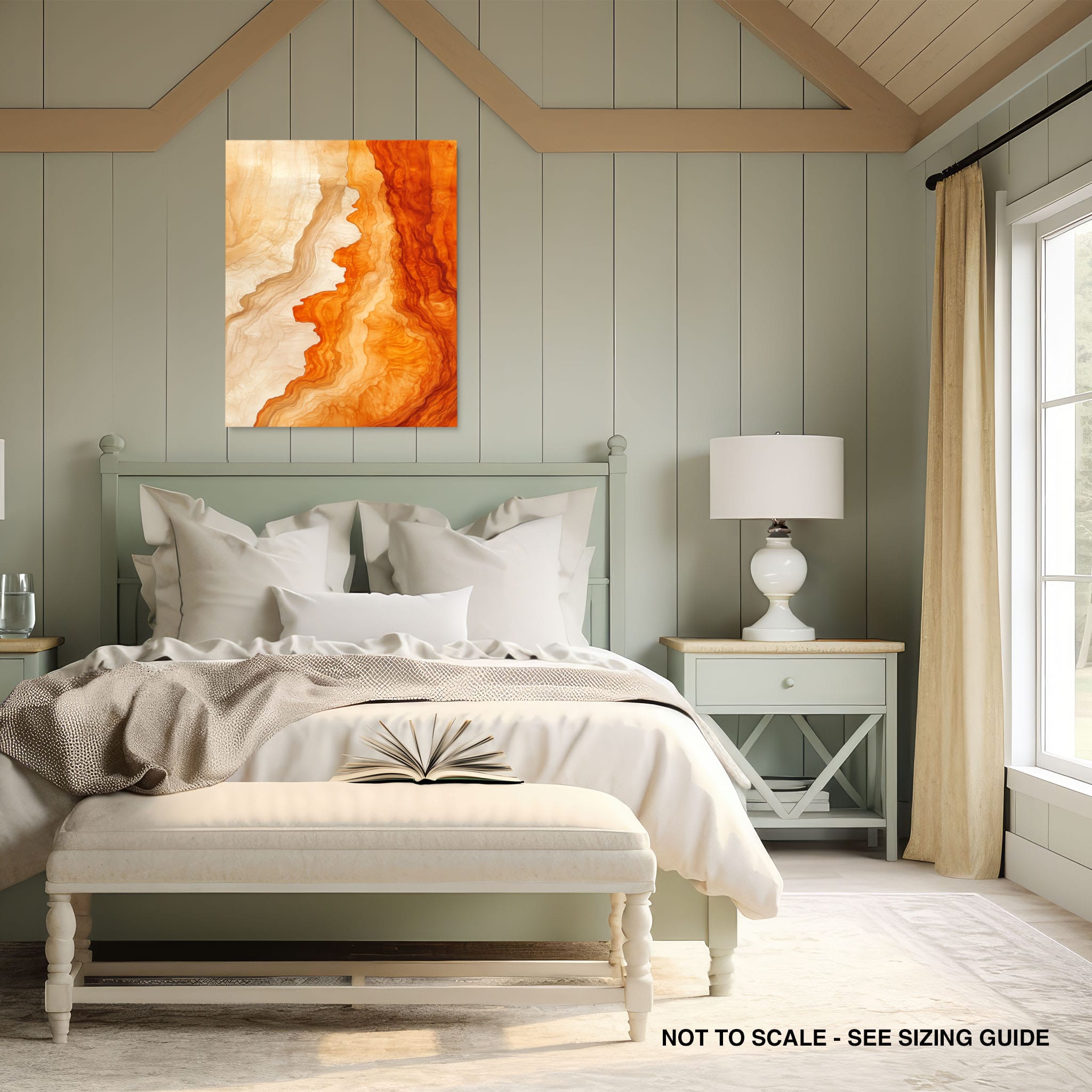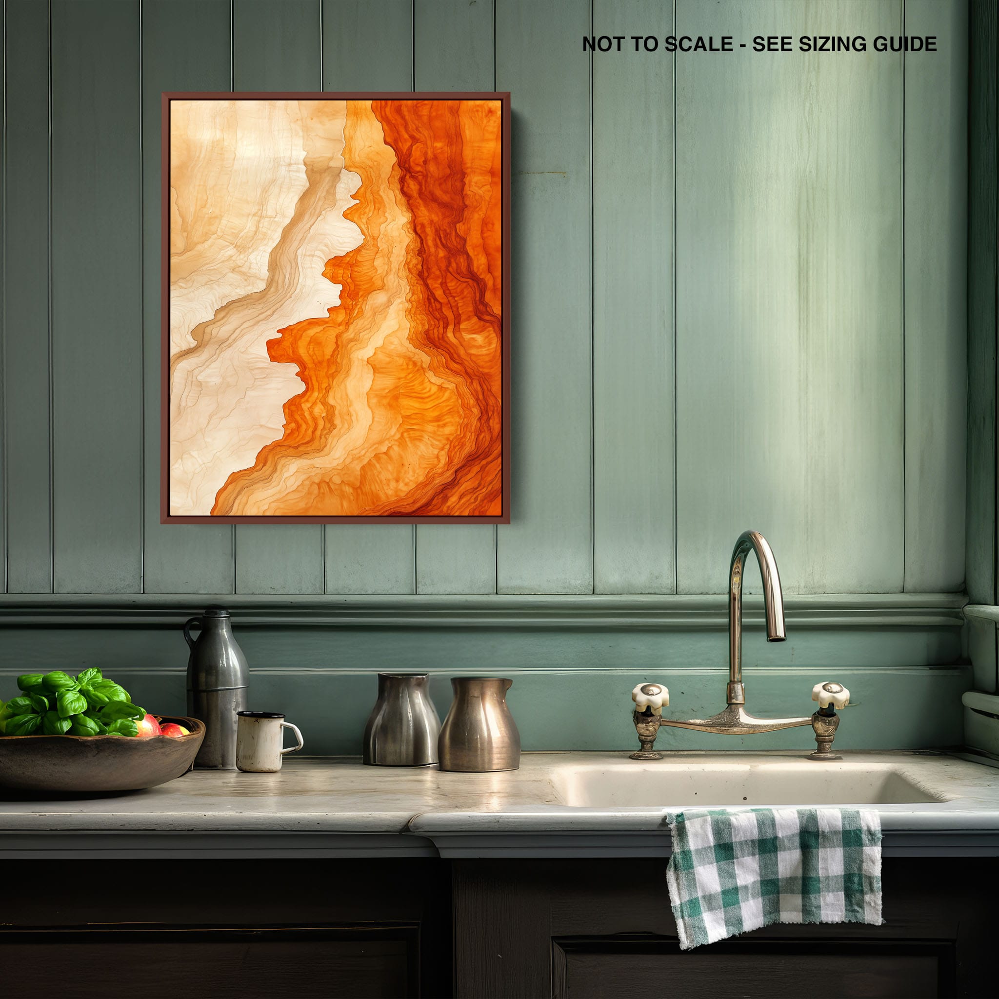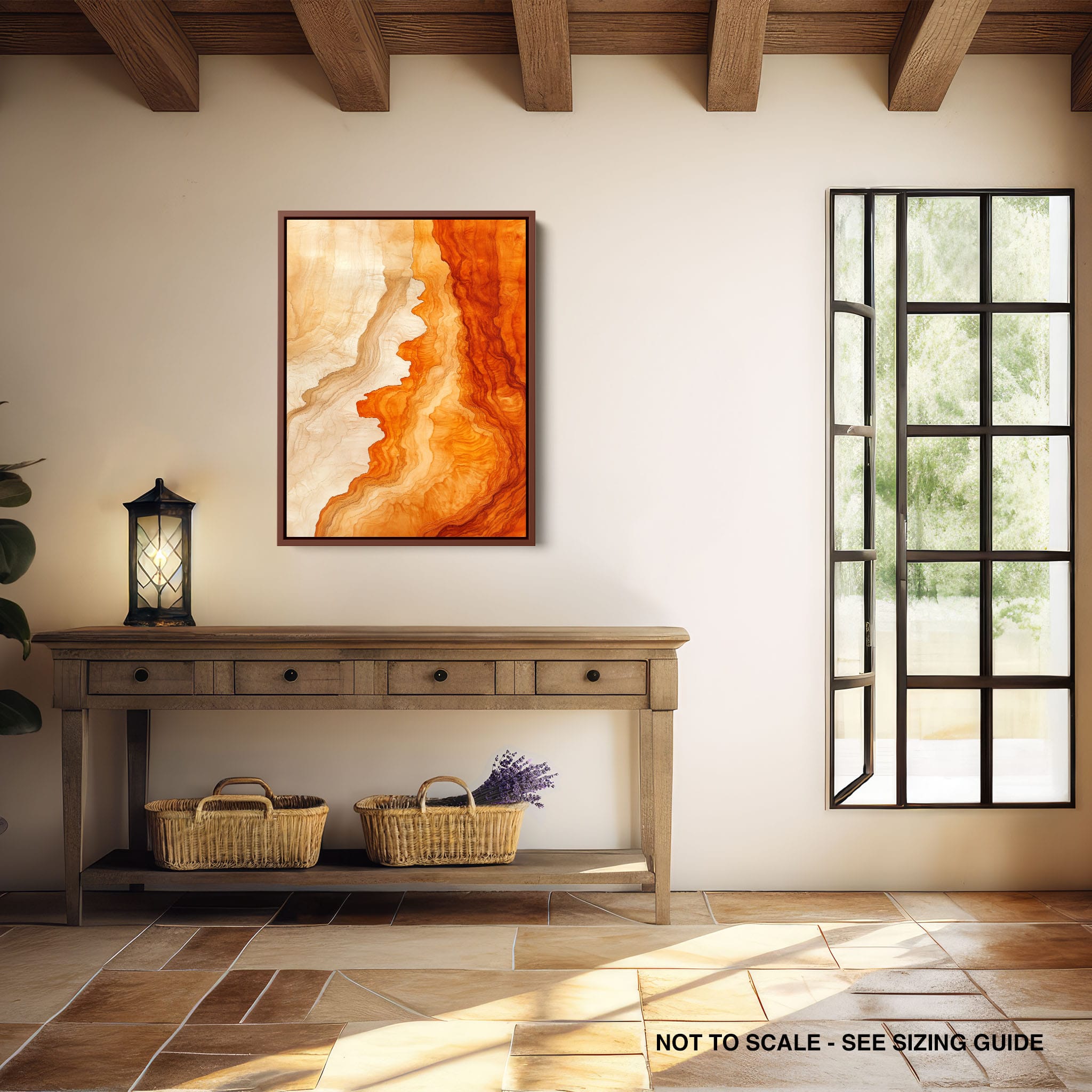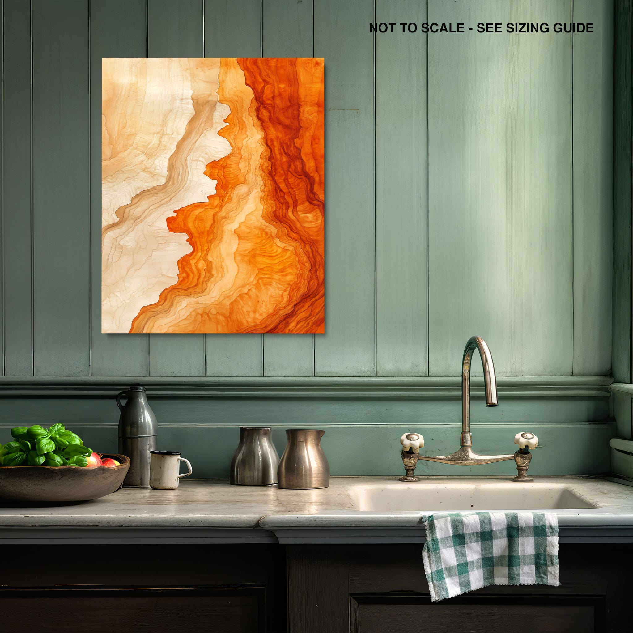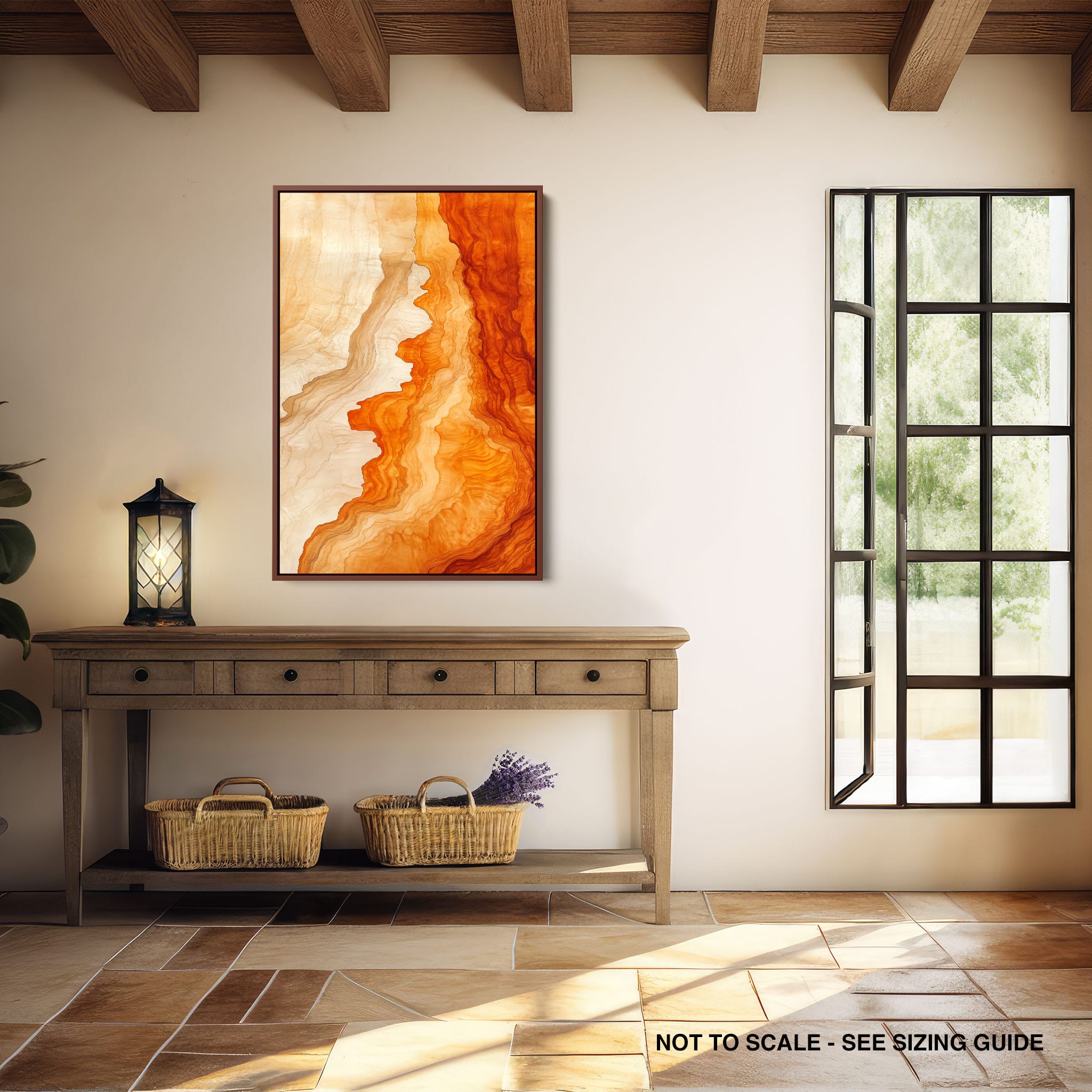Experience the evocative power of this photographic artwork, where abstract forms and vivid colors mimic the rich tapestry of nature’s palette. The flowing lines in shades of deep oranges and soft creams capture the dynamic essence of geological strata, evoking thoughts of ancient landscapes sculpted over centuries. This piece, which resonates with abstract and surrealistic styles, invites the viewer to a visual journey through color and form. Perfect for bringing a piece of organic beauty into any contemporary space.