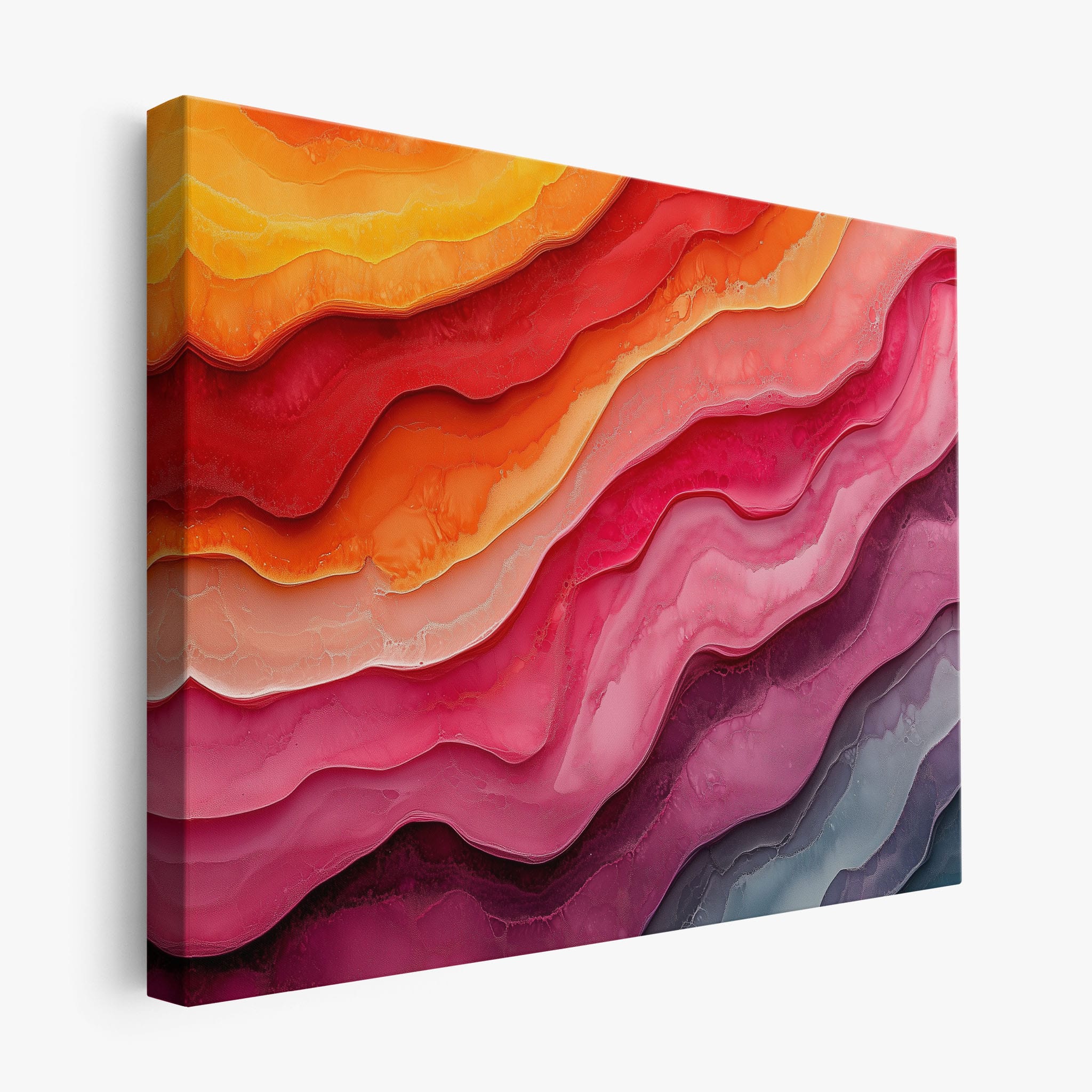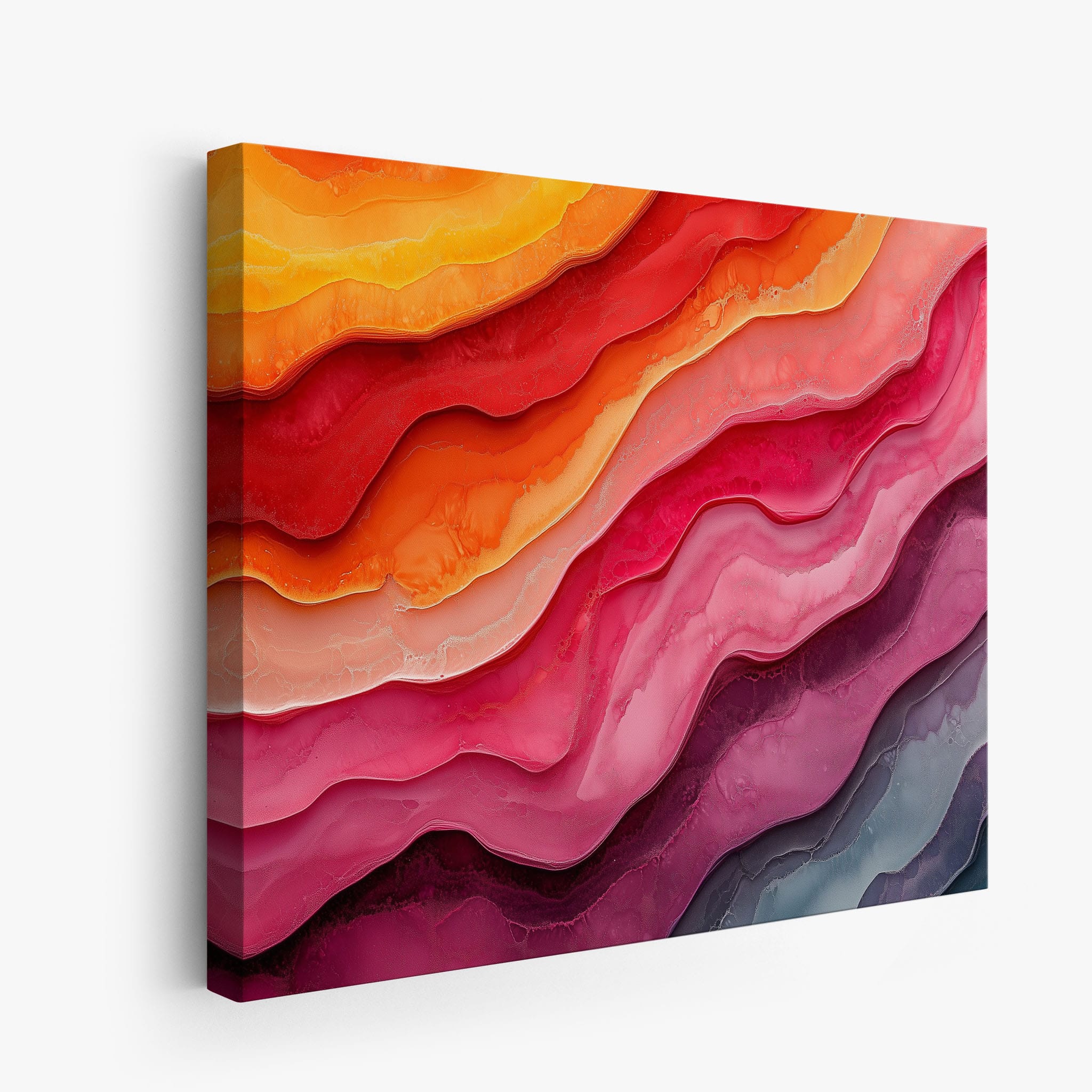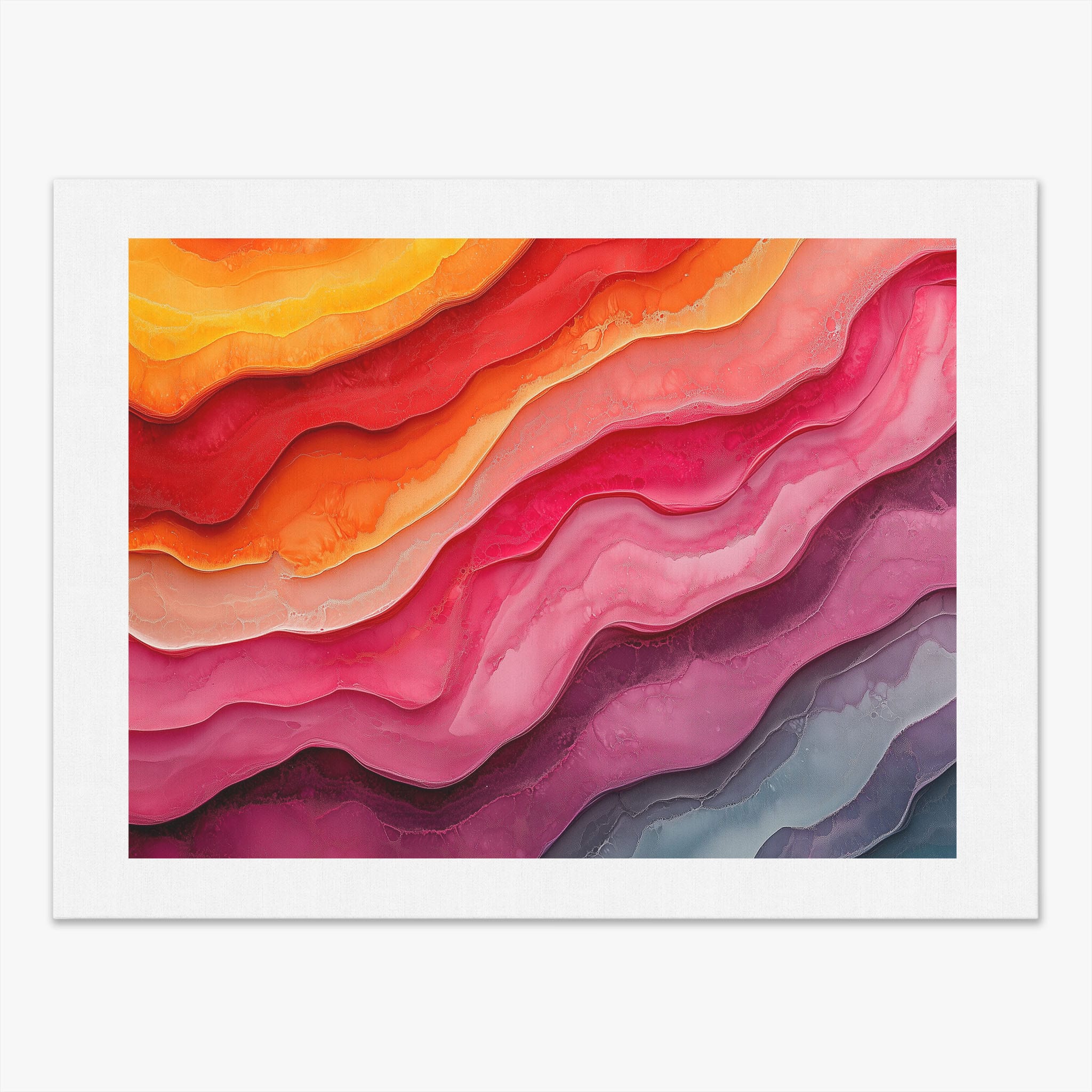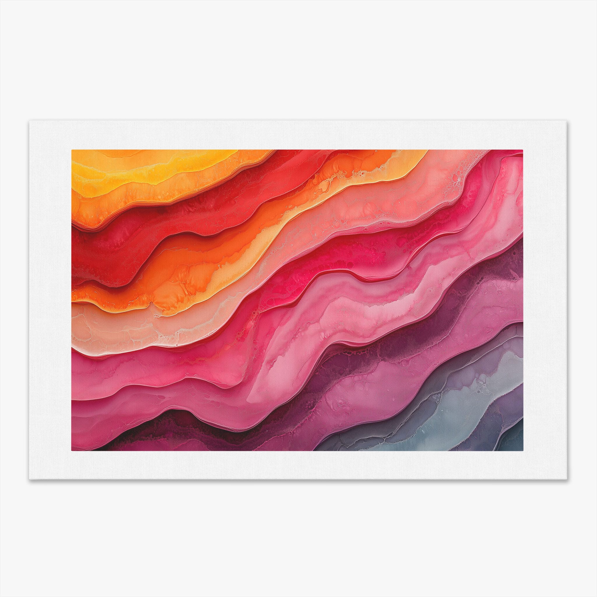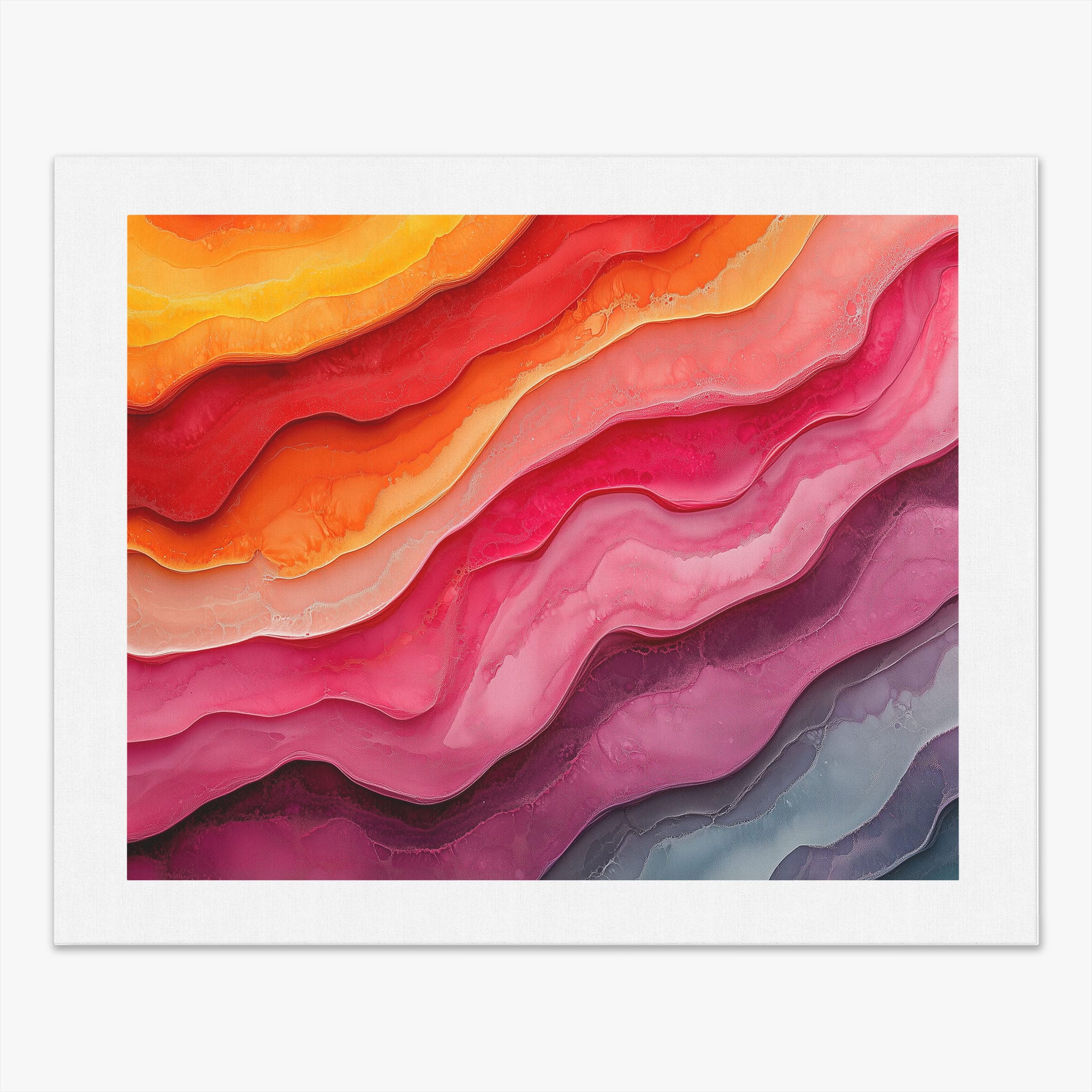 This striking piece captures undulating waves of vibrant colors, layered in depths that seem almost liquid. The use of a rich palette ranging from fiery oranges to deep, soothing purples evokes a strong emotional response, indicative of the Expressionist style. Each color seamlessly transitions into the next, creating a modern abstract that speaks to the dynamism and fluidity of emotions. This painting is a must-have for any art lover looking to add a touch of modern elegance and a splash of vivid color to their collection. A true statement piece, it enhances every space it inhabits with its captivating presence.