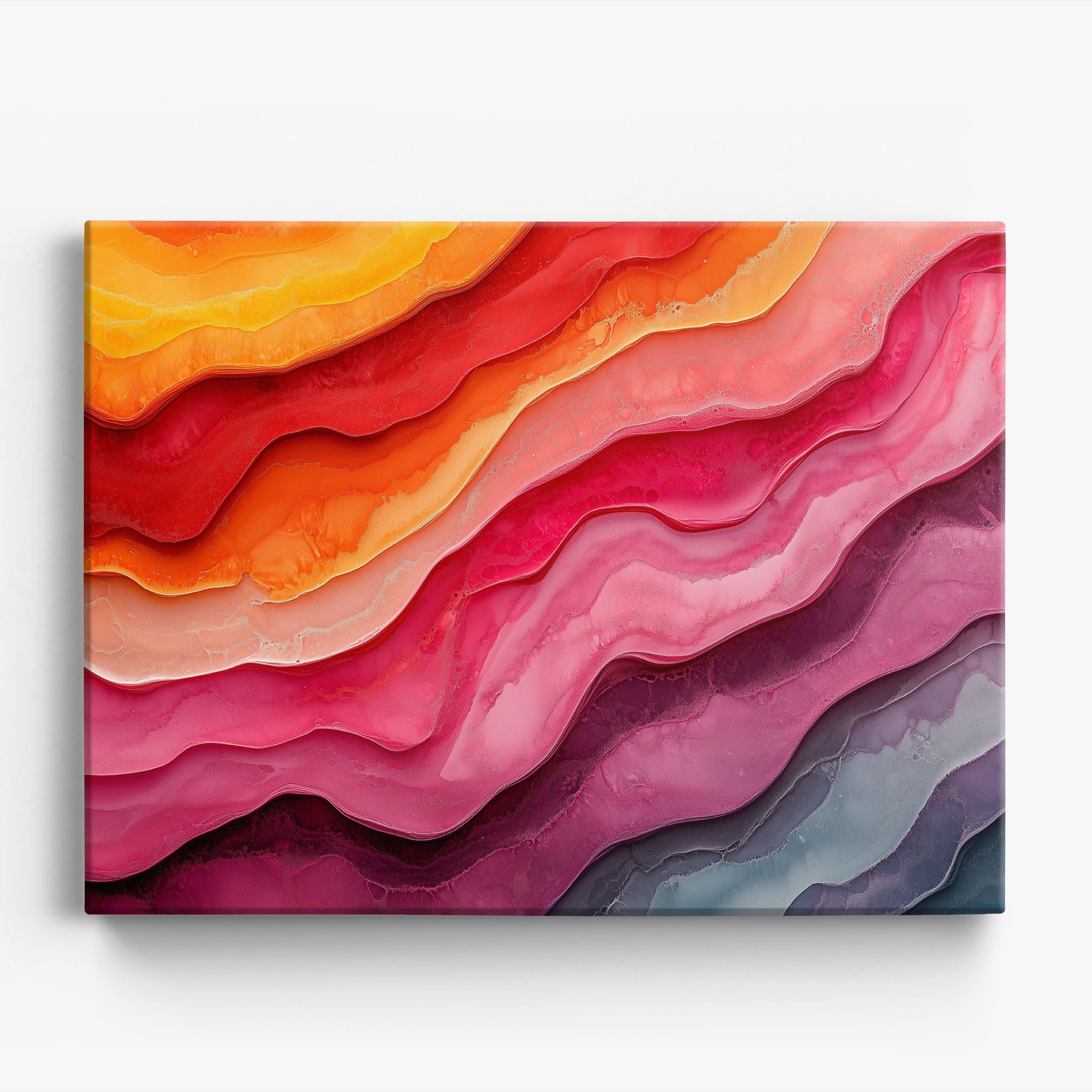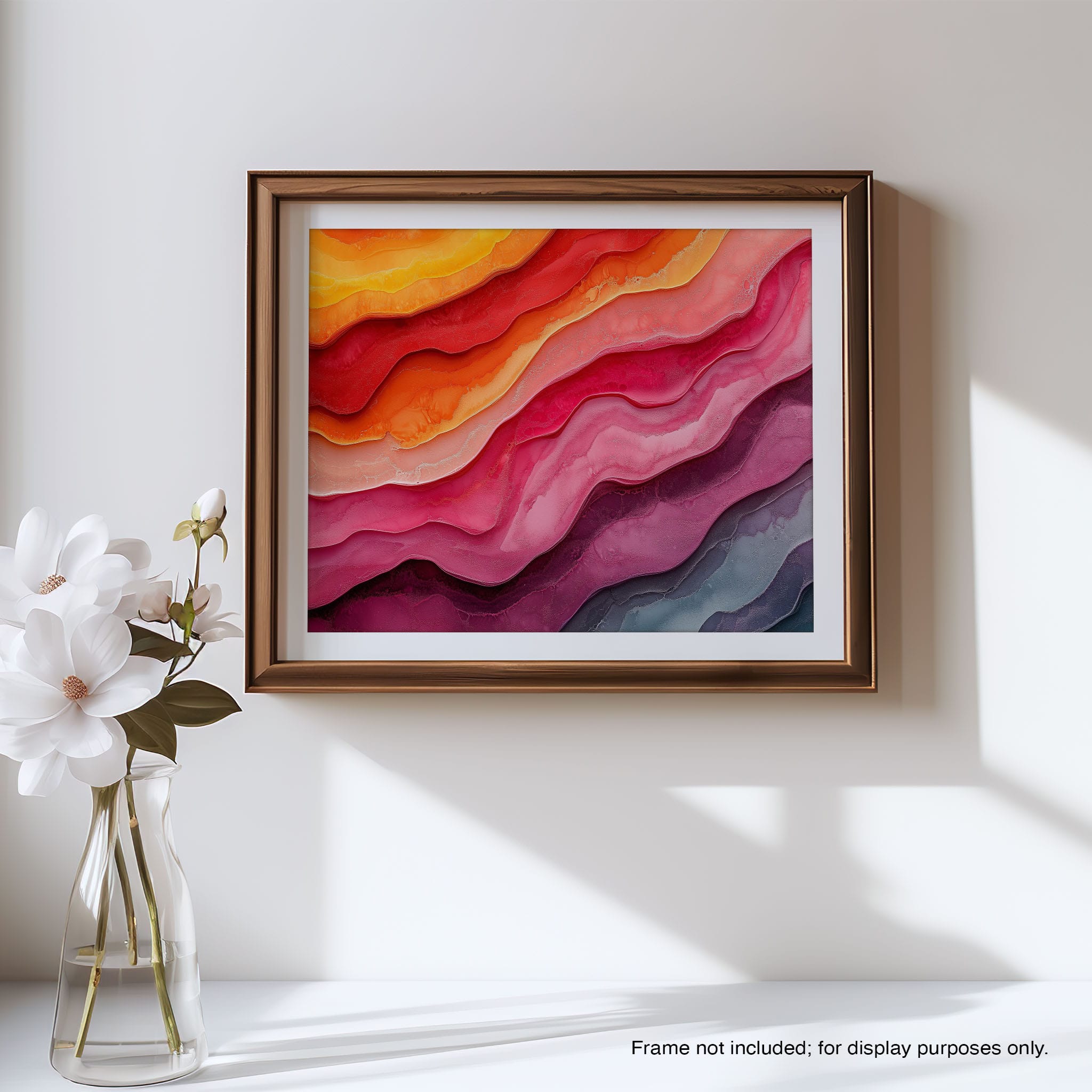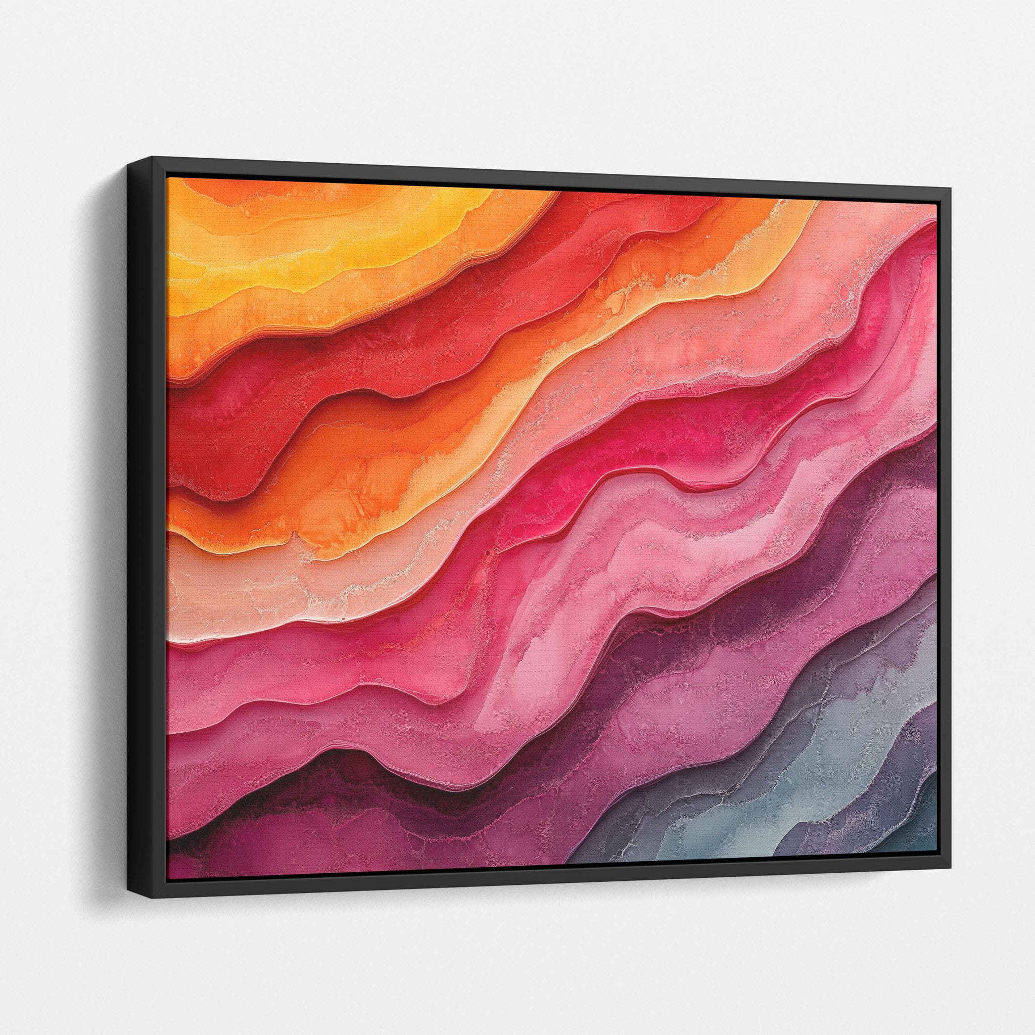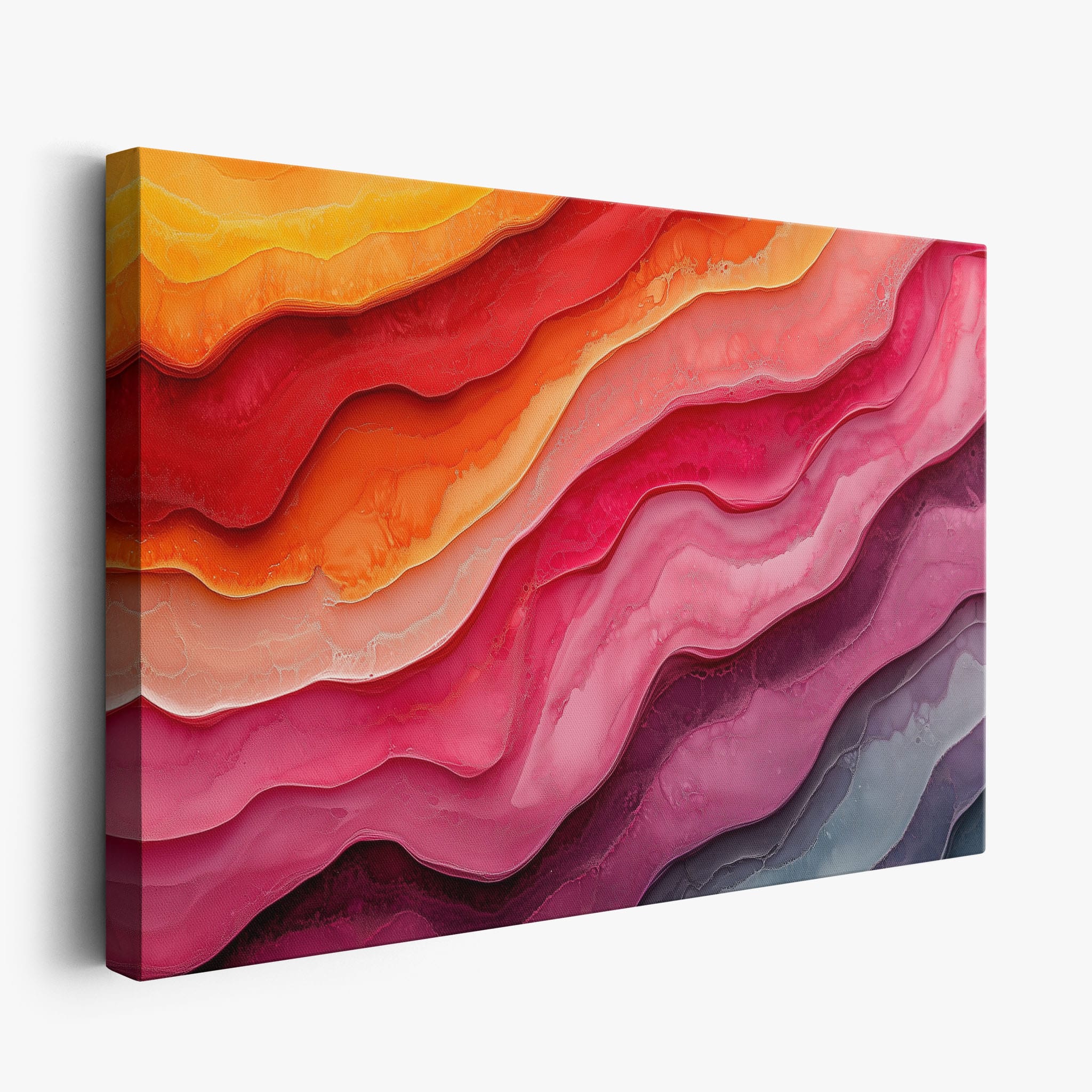 This striking piece captures undulating waves of vibrant colors, layered in depths that seem almost liquid. The use of a rich palette ranging from fiery oranges to deep, soothing purples evokes a strong emotional response, indicative of the Expressionist style. Each color seamlessly transitions into the next, creating a modern abstract that speaks to the dynamism and fluidity of emotions. This painting is a must-have for any art lover looking to add a touch of modern elegance and a splash of vivid color to their collection. A true statement piece, it enhances every space it inhabits with its captivating presence.