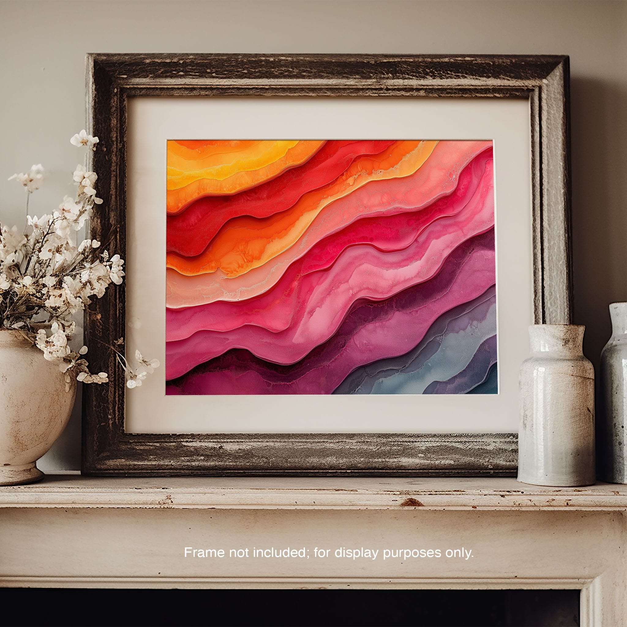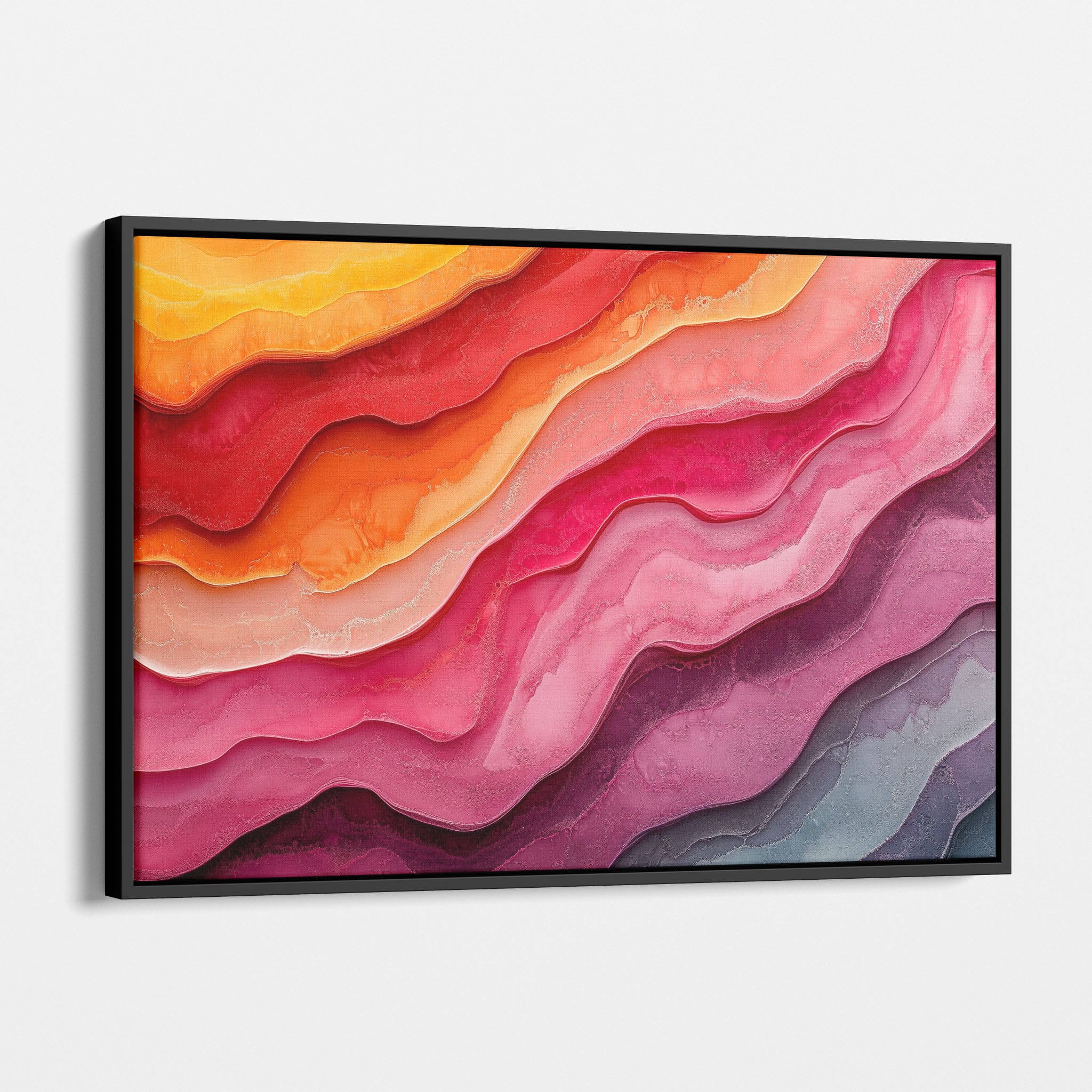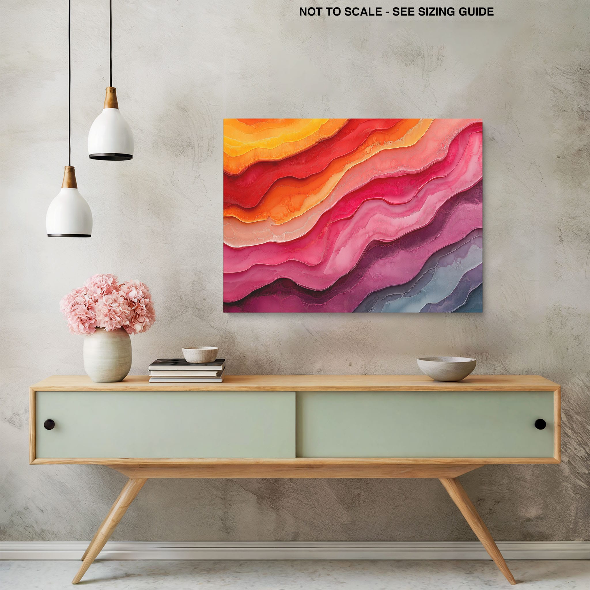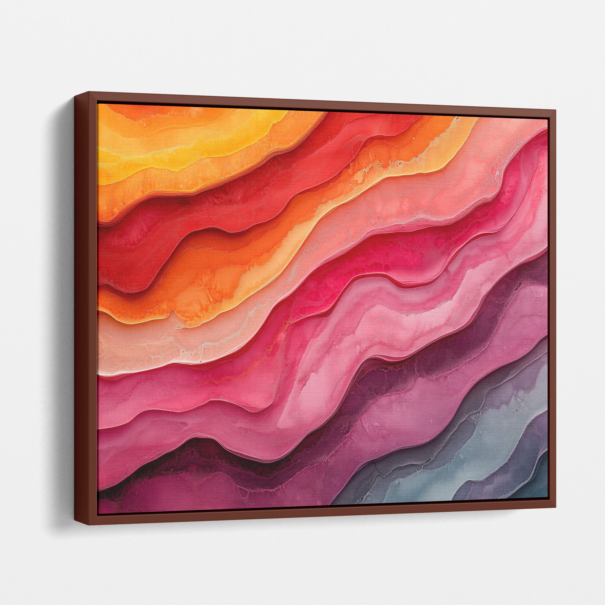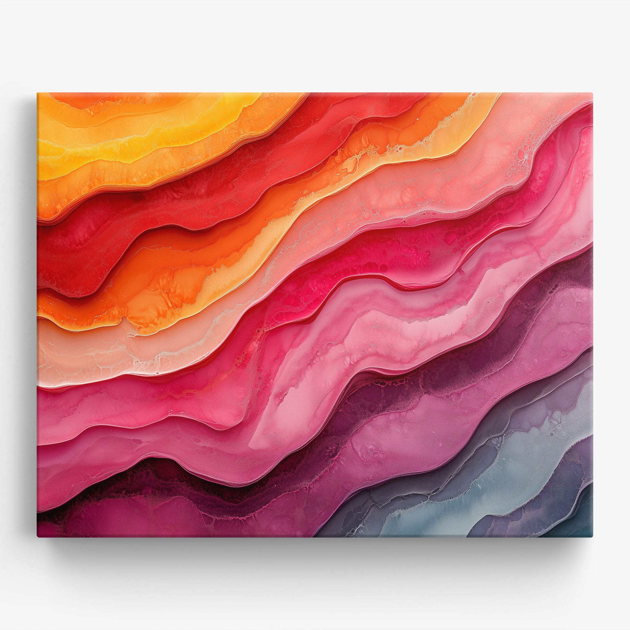 This striking piece captures undulating waves of vibrant colors, layered in depths that seem almost liquid. The use of a rich palette ranging from fiery oranges to deep, soothing purples evokes a strong emotional response, indicative of the Expressionist style. Each color seamlessly transitions into the next, creating a modern abstract that speaks to the dynamism and fluidity of emotions. This painting is a must-have for any art lover looking to add a touch of modern elegance and a splash of vivid color to their collection. A true statement piece, it enhances every space it inhabits with its captivating presence.