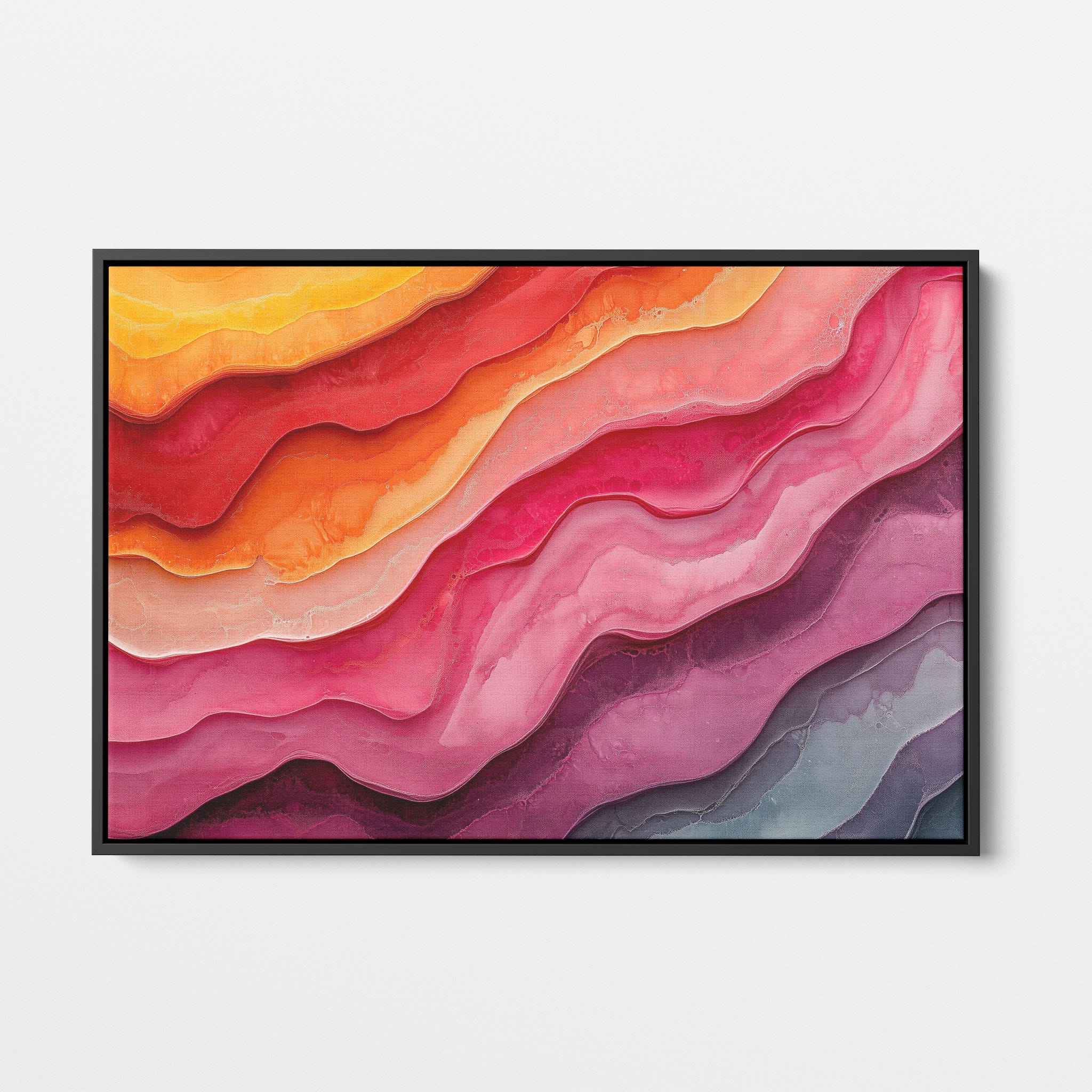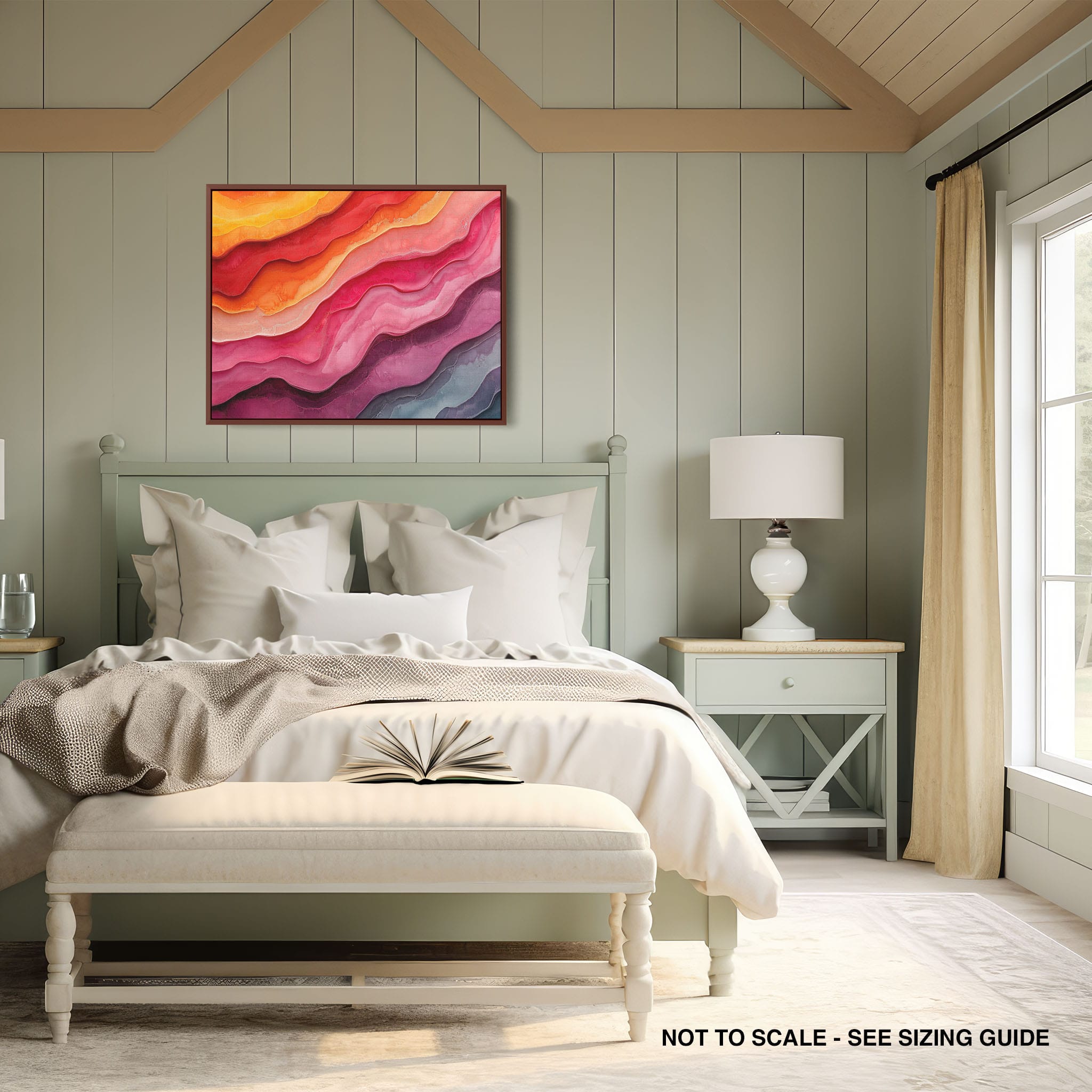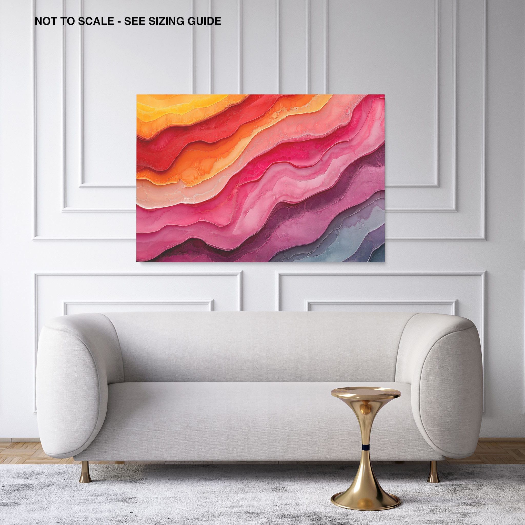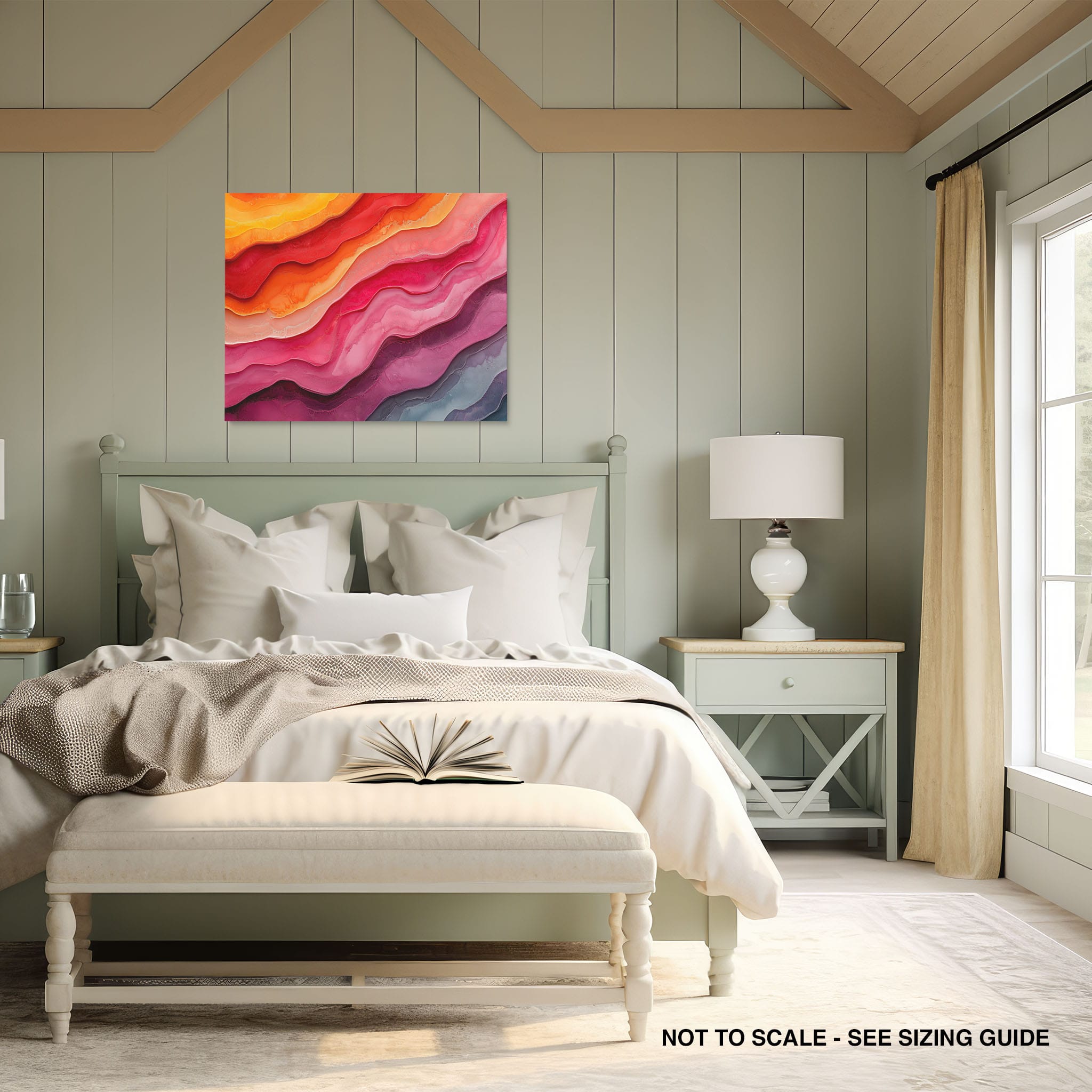 This striking piece captures undulating waves of vibrant colors, layered in depths that seem almost liquid. The use of a rich palette ranging from fiery oranges to deep, soothing purples evokes a strong emotional response, indicative of the Expressionist style. Each color seamlessly transitions into the next, creating a modern abstract that speaks to the dynamism and fluidity of emotions. This painting is a must-have for any art lover looking to add a touch of modern elegance and a splash of vivid color to their collection. A true statement piece, it enhances every space it inhabits with its captivating presence.