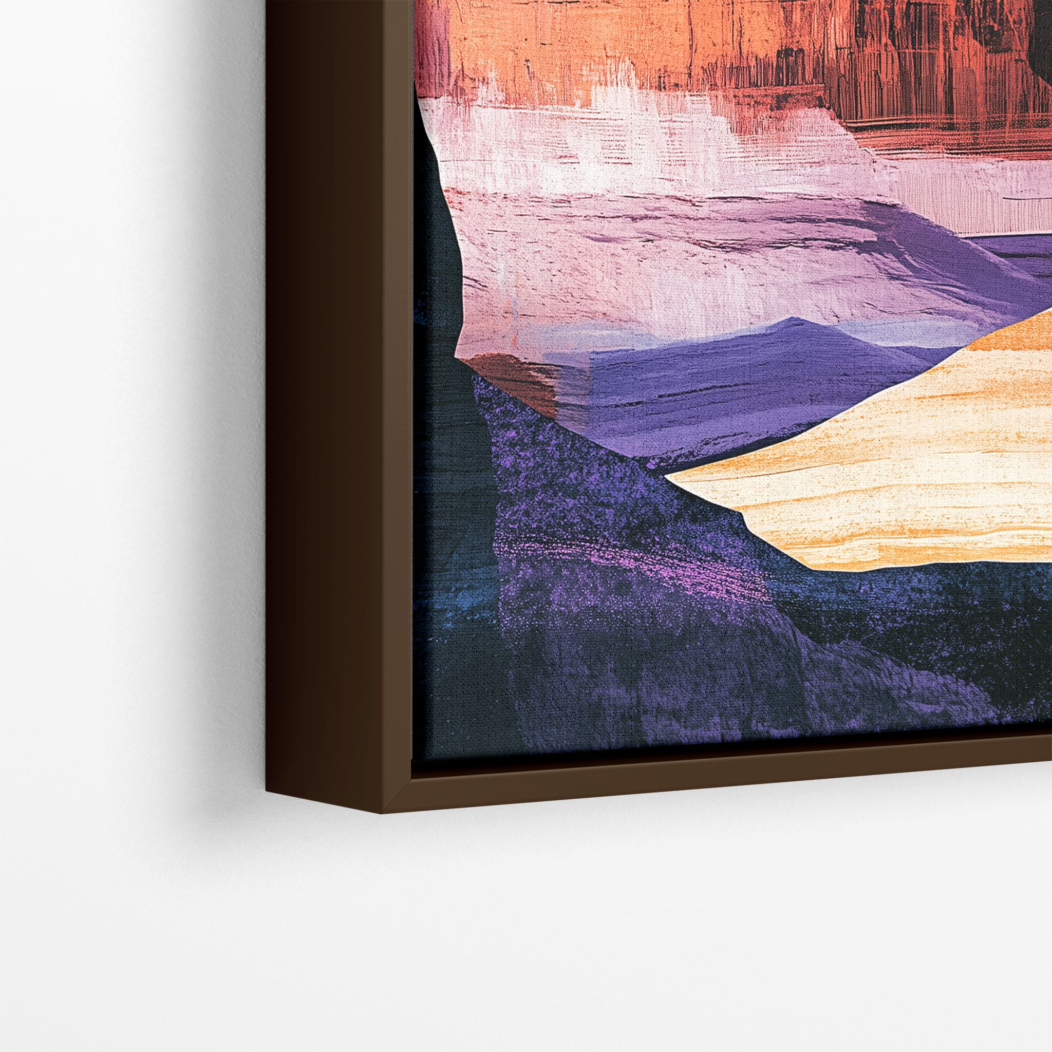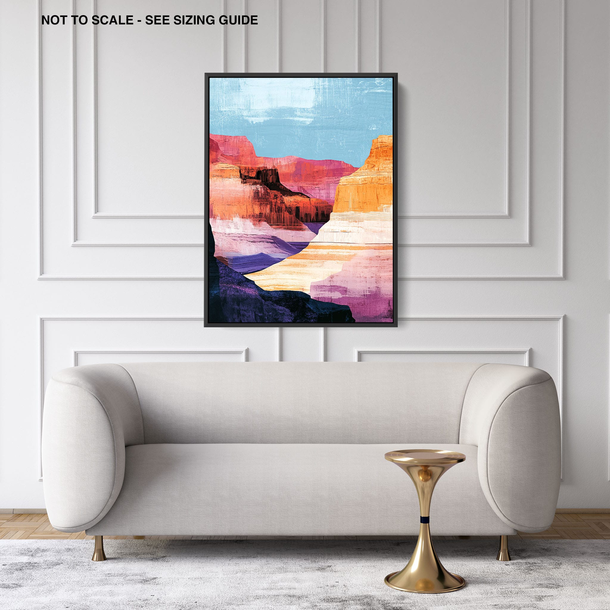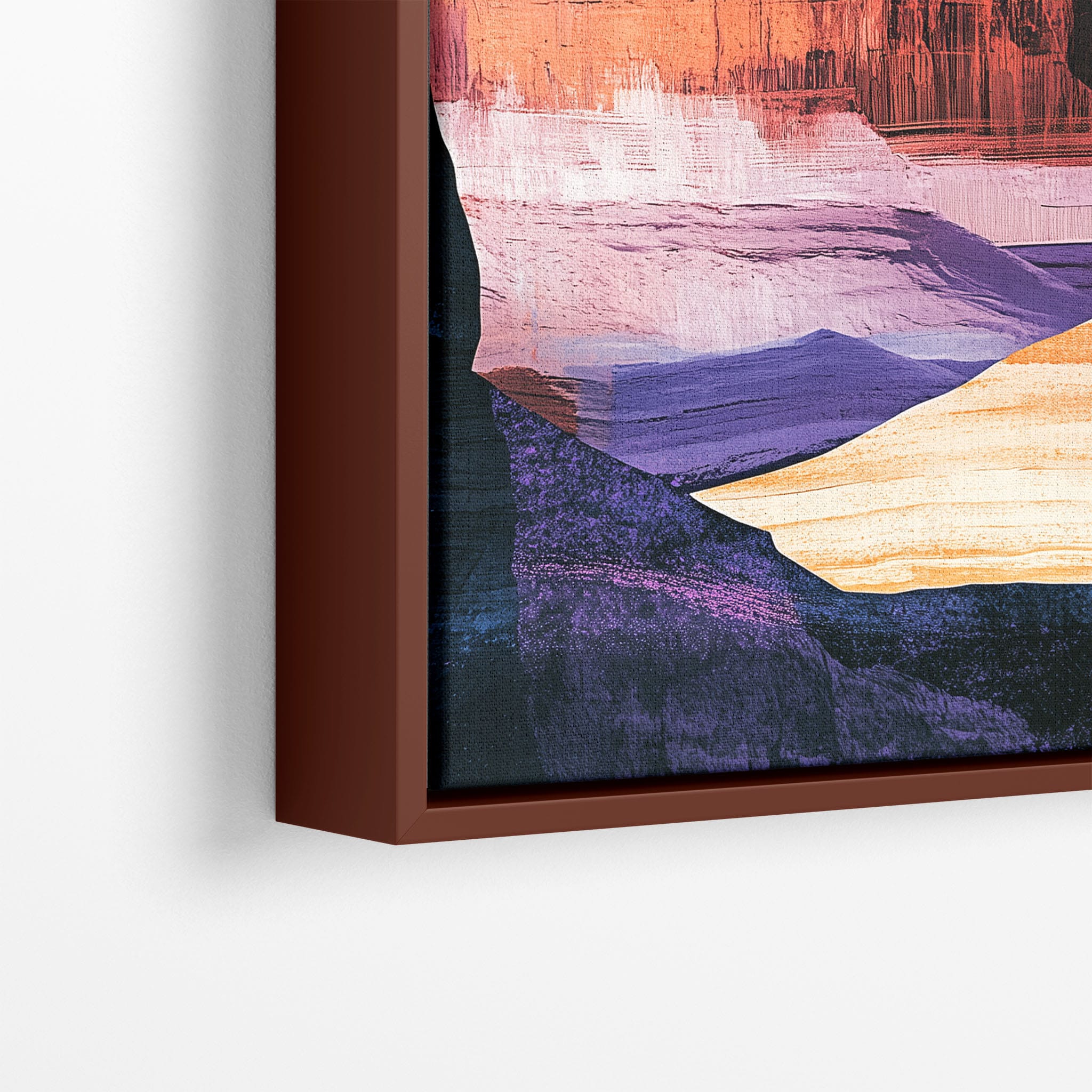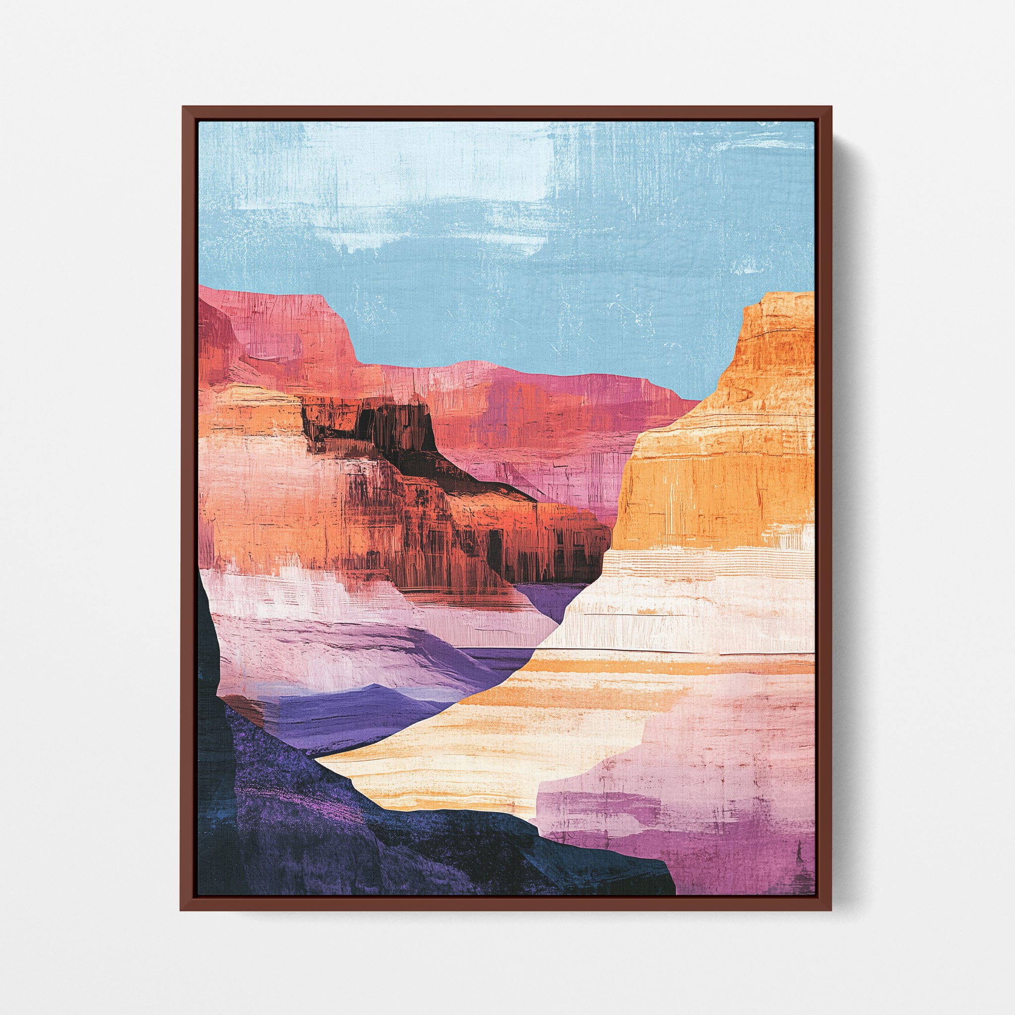 This digital illustration presents a striking landscape with sharp, geometric forms and vibrant layers of color, portraying an abstract interpretation of majestic cliffs and expansive skies. The artist uses a mix of calm and bold hues, ranging from serene blues to vivid oranges and purples, to craft a modern aesthetic that invites contemplation and admiration. Ideal for lovers of landscapes with a contemporary twist, this piece can transform any room by adding a touch of sophistication and color. Elevate your home decor with this unique artwork that seamlessly blends abstract art with geometric precision.