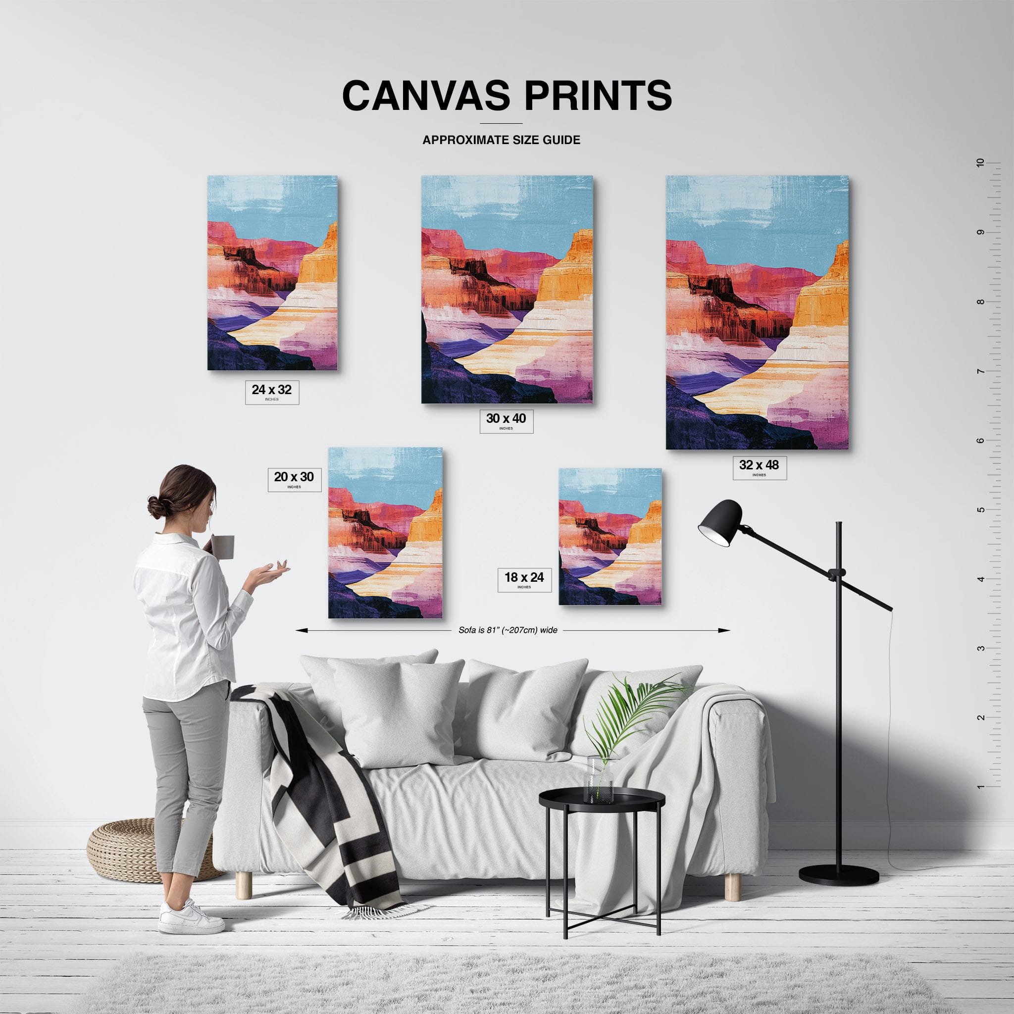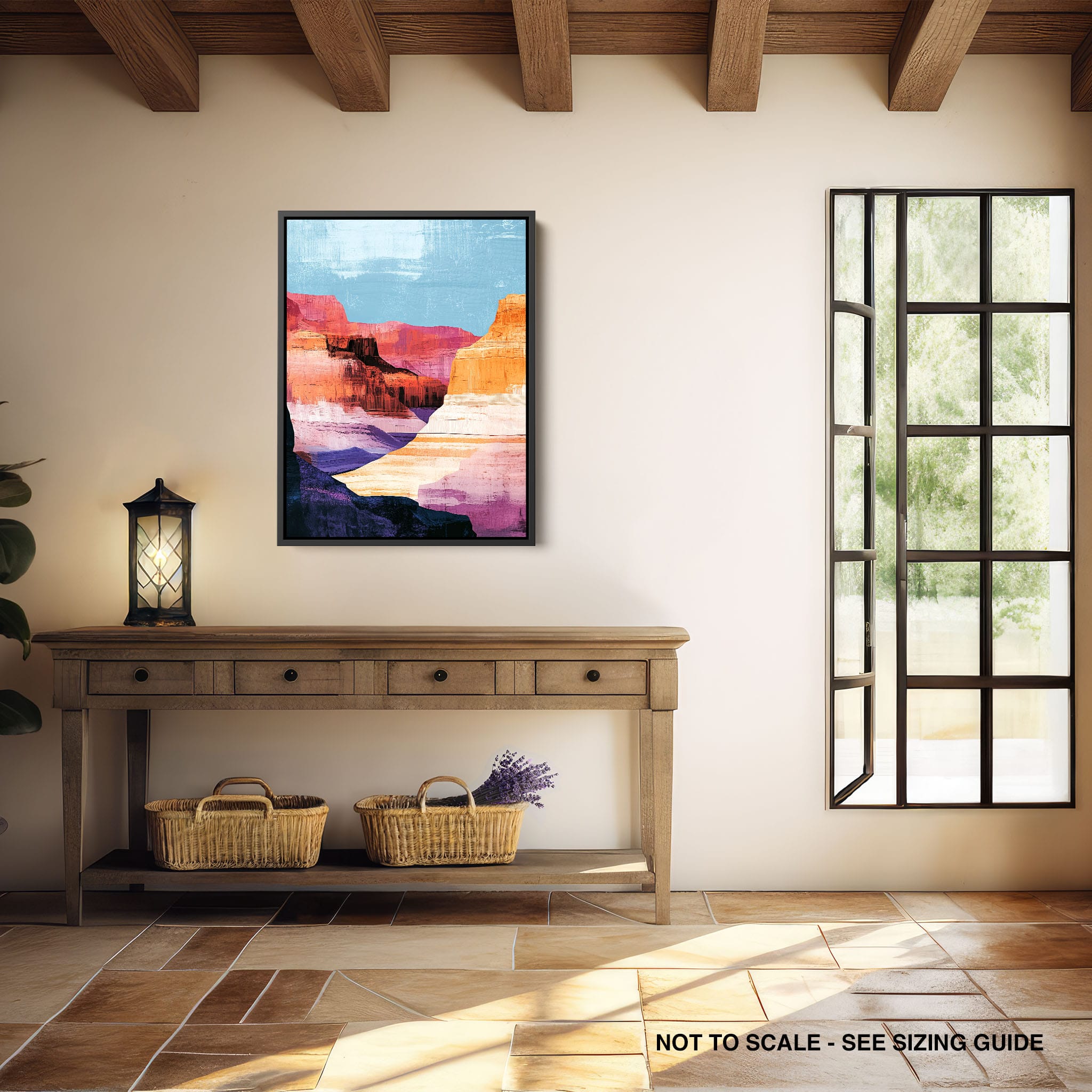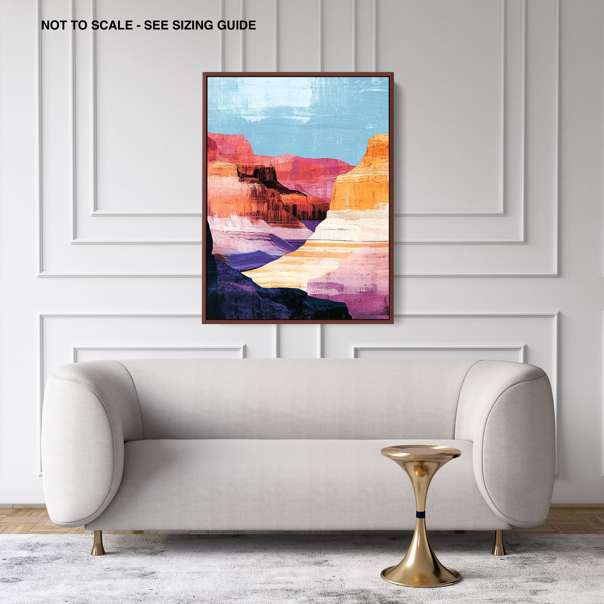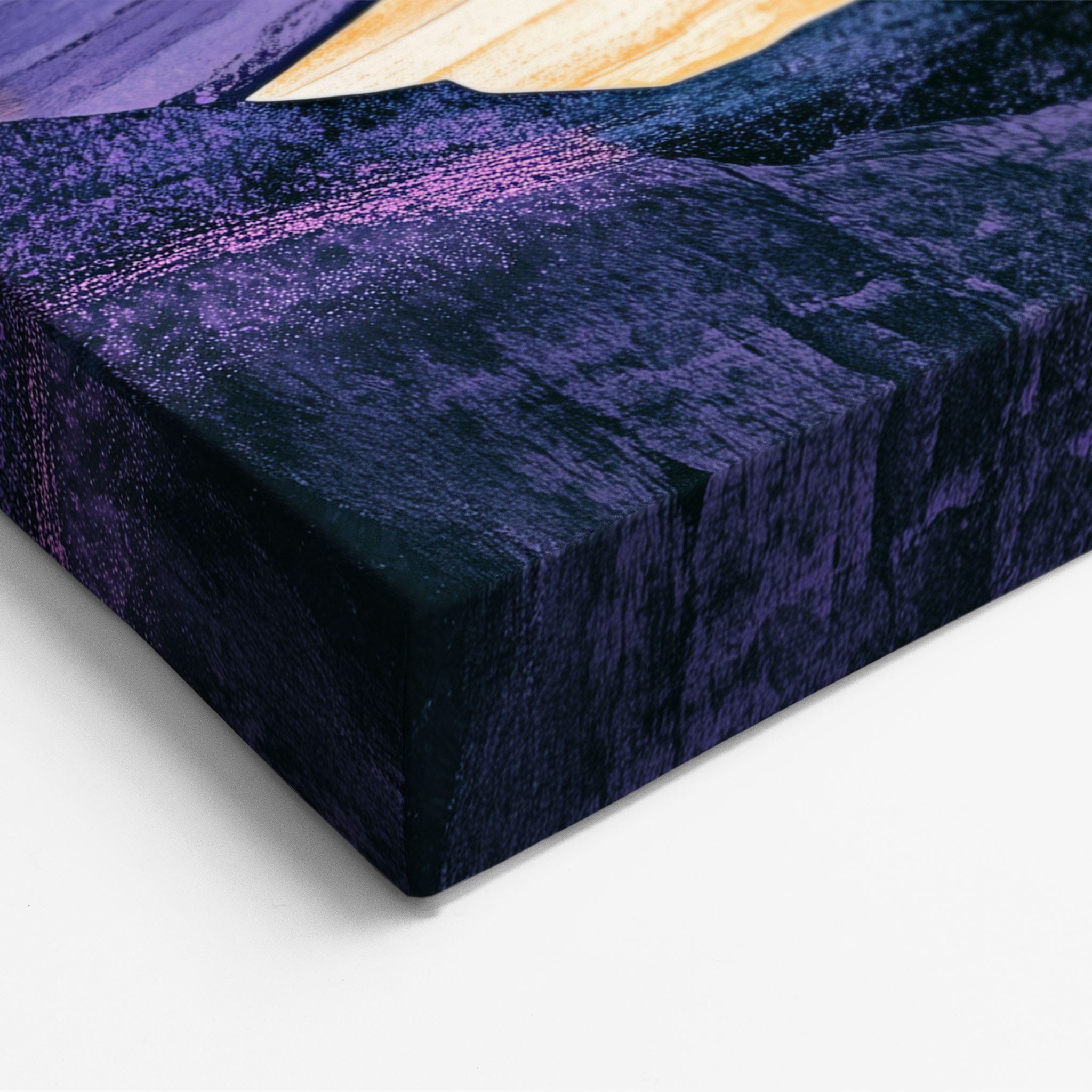 This digital illustration presents a striking landscape with sharp, geometric forms and vibrant layers of color, portraying an abstract interpretation of majestic cliffs and expansive skies. The artist uses a mix of calm and bold hues, ranging from serene blues to vivid oranges and purples, to craft a modern aesthetic that invites contemplation and admiration. Ideal for lovers of landscapes with a contemporary twist, this piece can transform any room by adding a touch of sophistication and color. Elevate your home decor with this unique artwork that seamlessly blends abstract art with geometric precision.