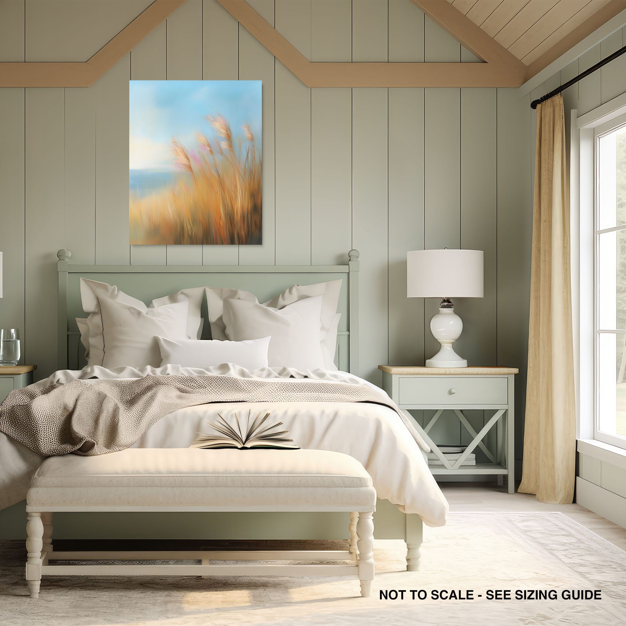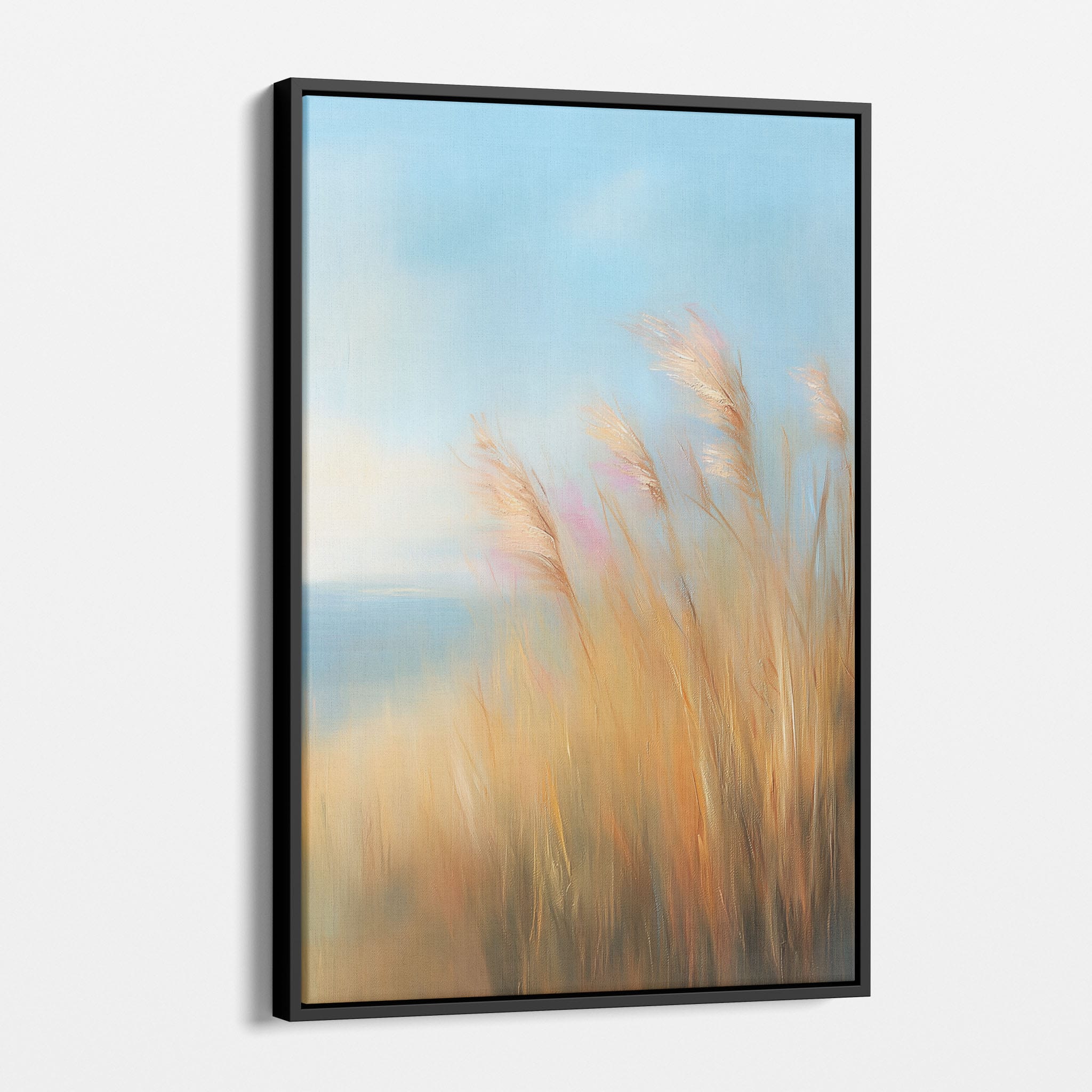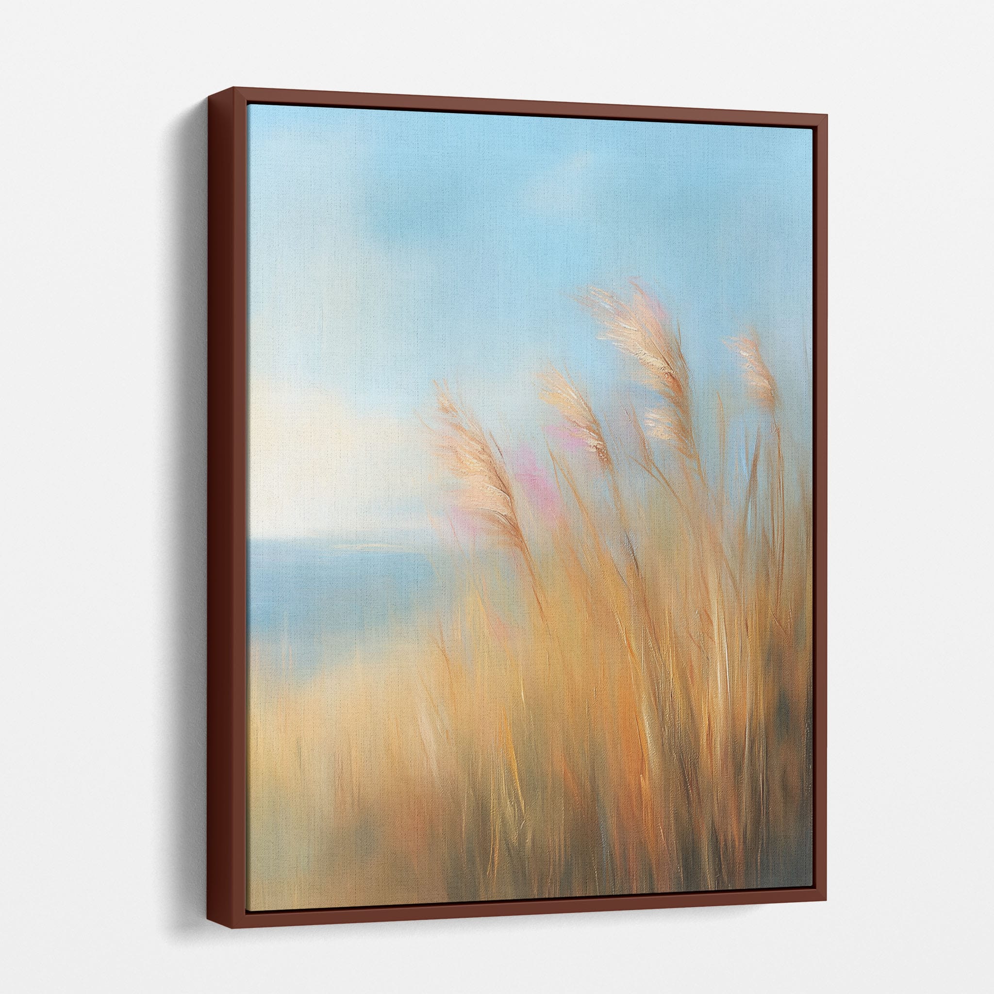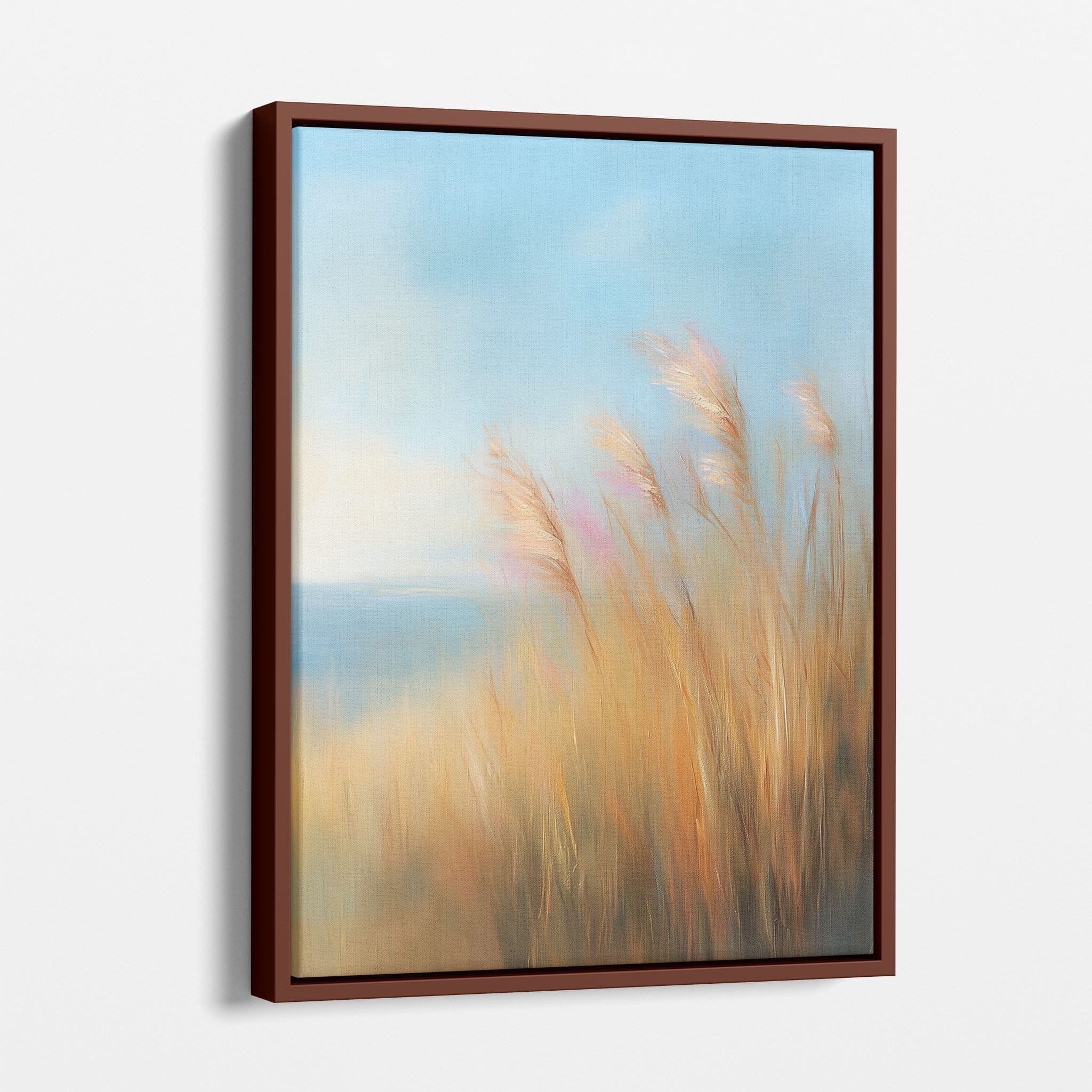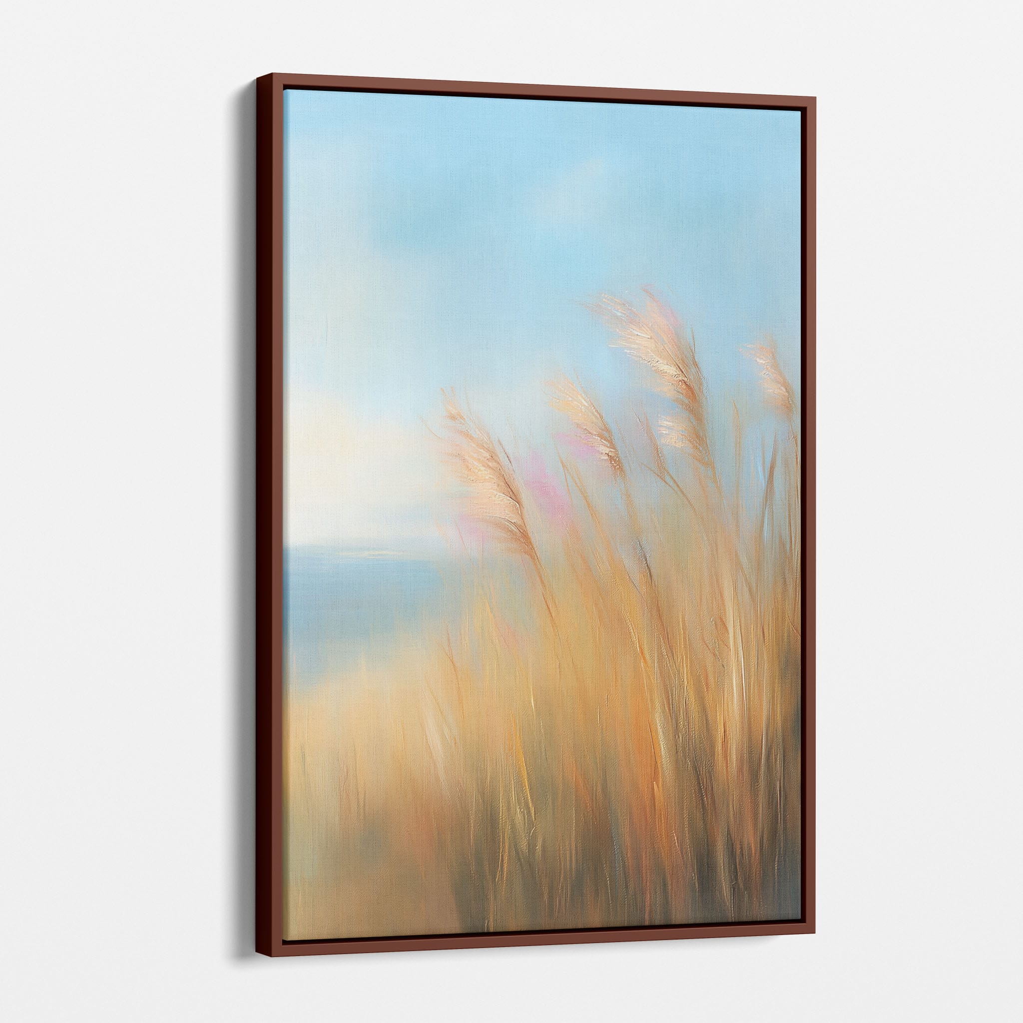 This captivating painting beautifully captures the soft sway of coastal grasses against a serene, hazy backdrop. The harmonious brushstrokes and gentle blend of golden and pastel hues invite a sense of tranquility and subtle movement, reminiscent of a gentle breeze by the sea. Ideal for adding a touch of Impressionistic charm and surreal calmness to any living space or office, this artwork is a sublime choice for those who appreciate nature's understated beauty. Its compelling allure makes it a must-have for any art aficionado looking to elevate their environment with peaceful imagery.