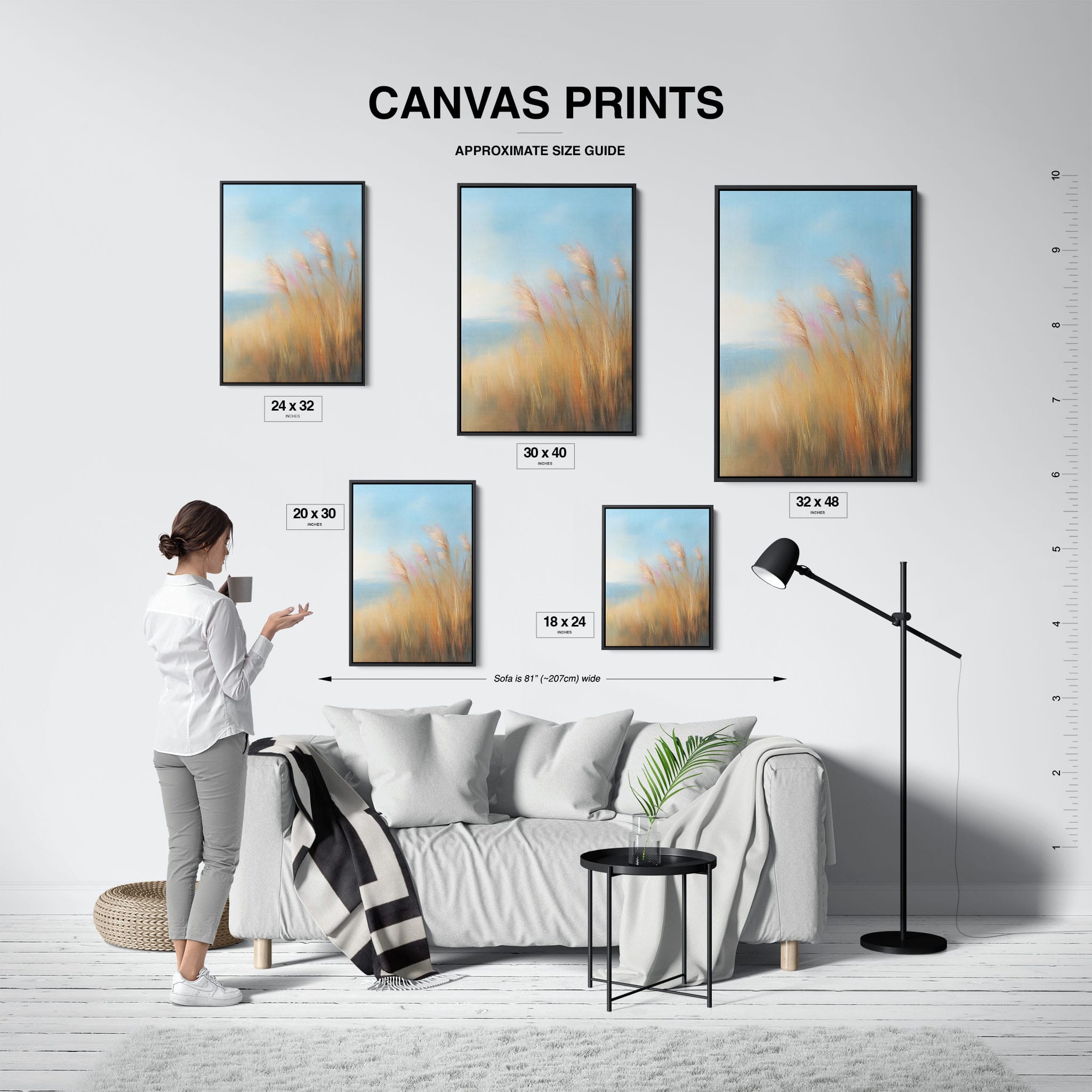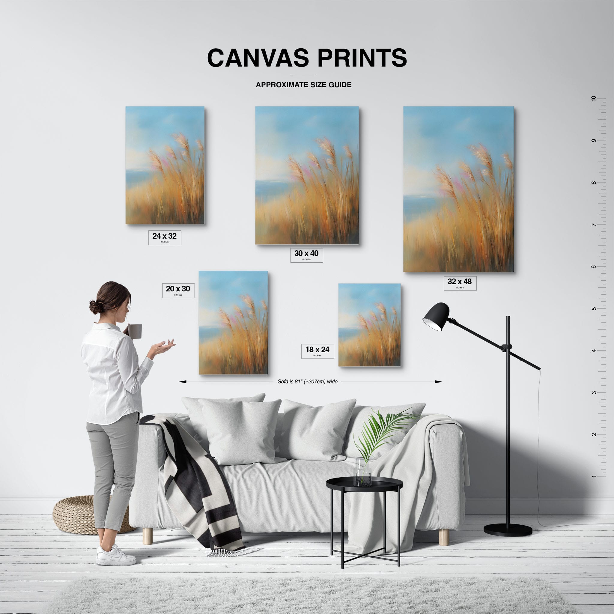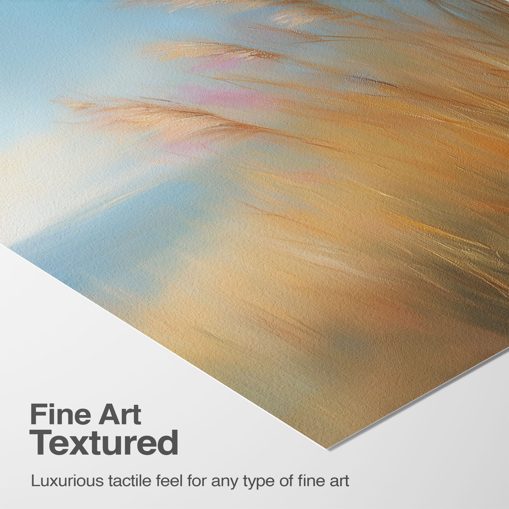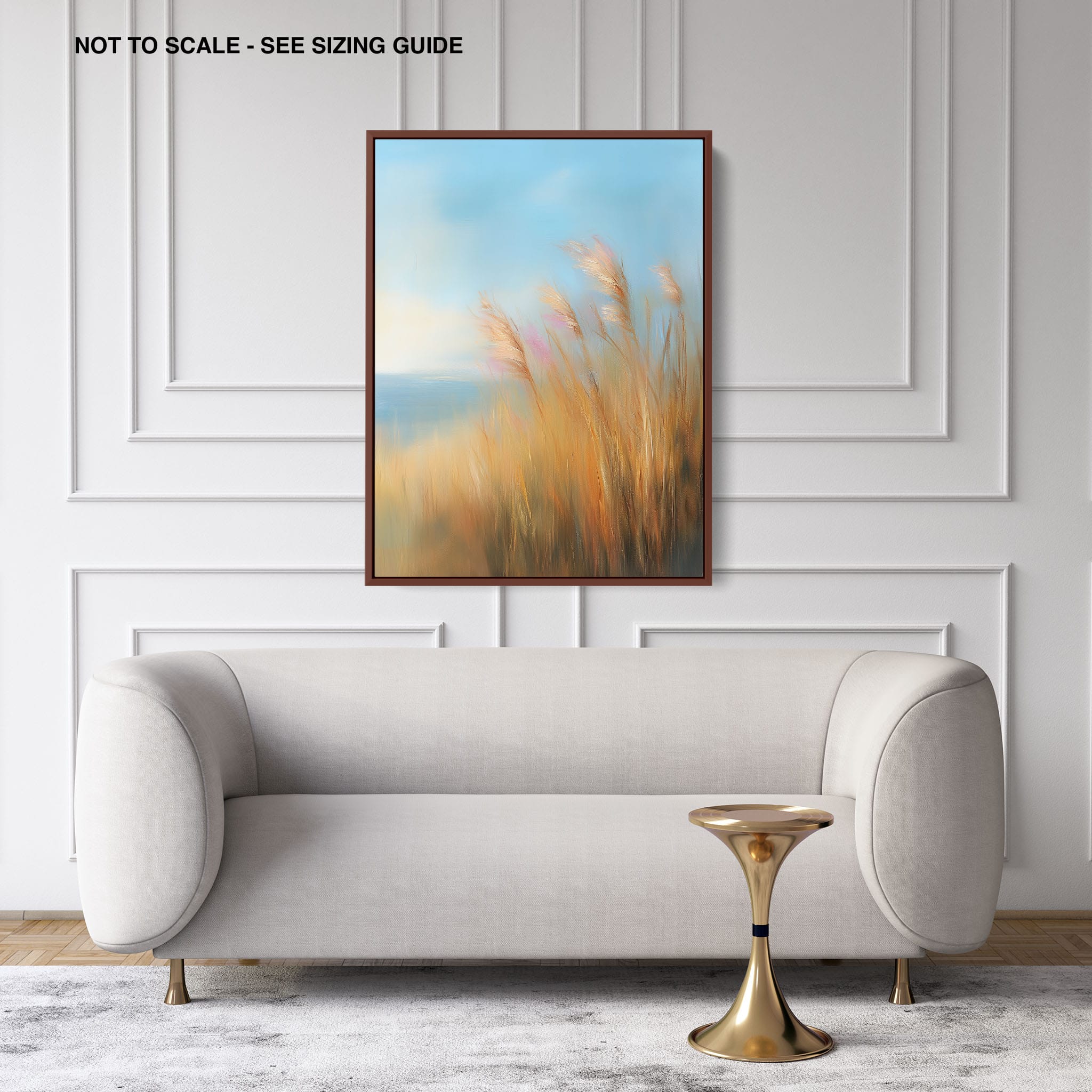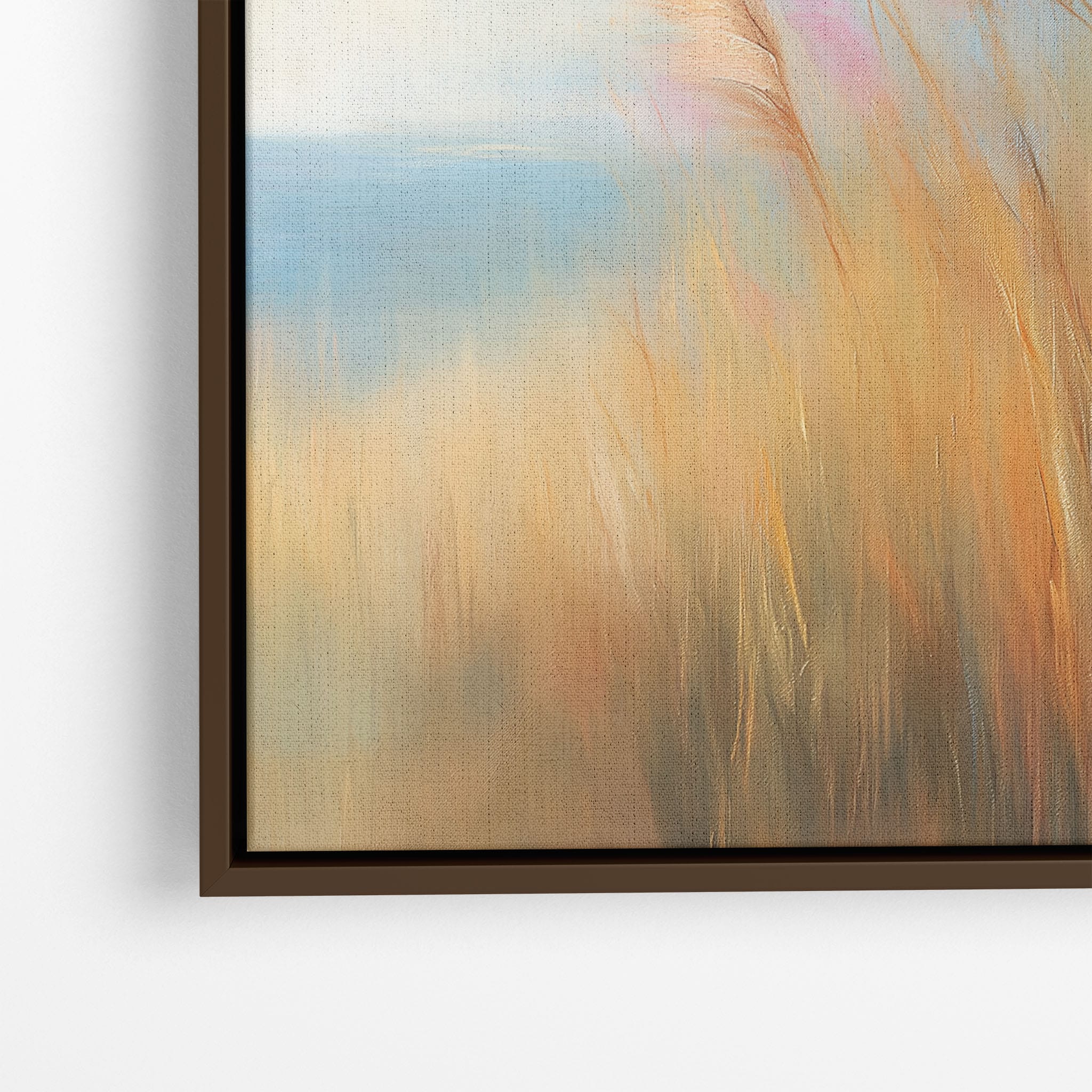 This captivating painting beautifully captures the soft sway of coastal grasses against a serene, hazy backdrop. The harmonious brushstrokes and gentle blend of golden and pastel hues invite a sense of tranquility and subtle movement, reminiscent of a gentle breeze by the sea. Ideal for adding a touch of Impressionistic charm and surreal calmness to any living space or office, this artwork is a sublime choice for those who appreciate nature's understated beauty. Its compelling allure makes it a must-have for any art aficionado looking to elevate their environment with peaceful imagery.