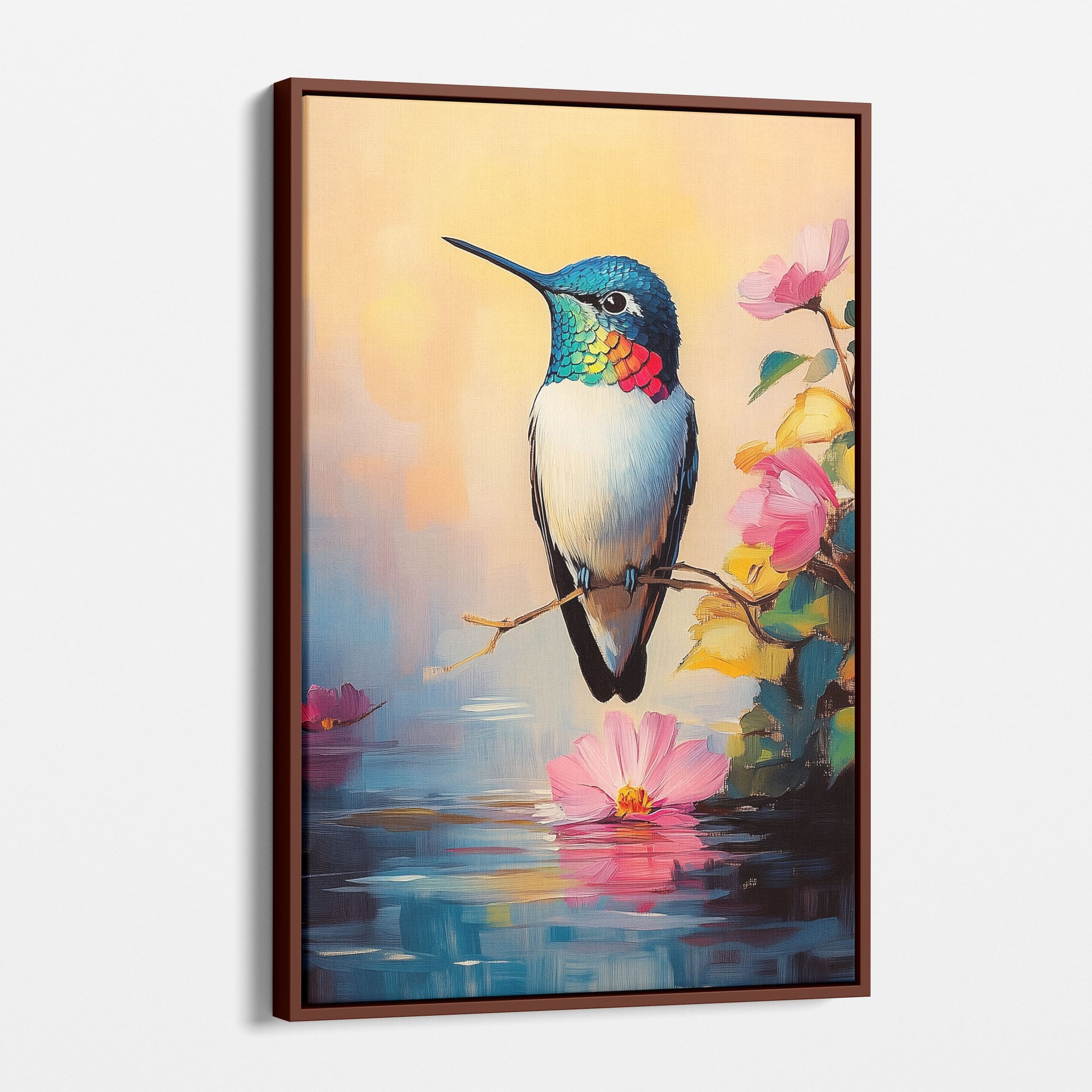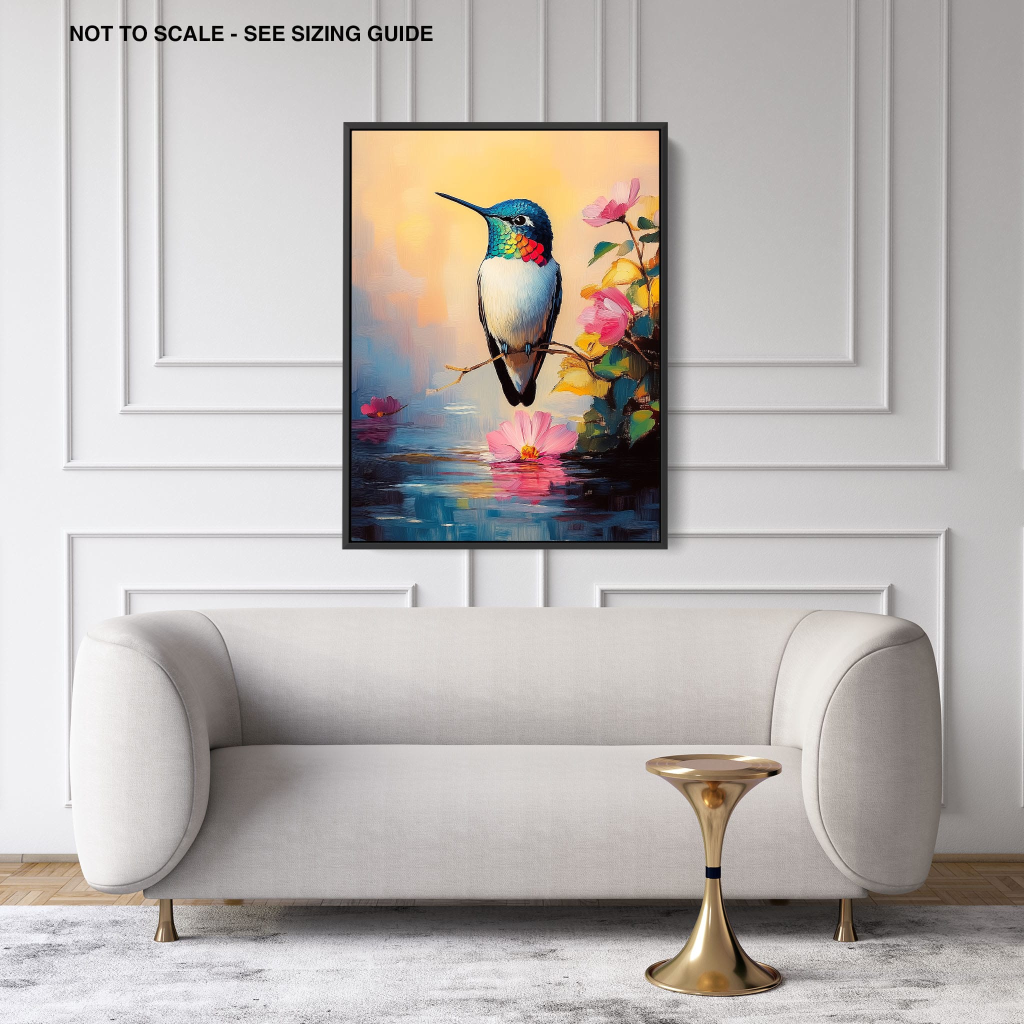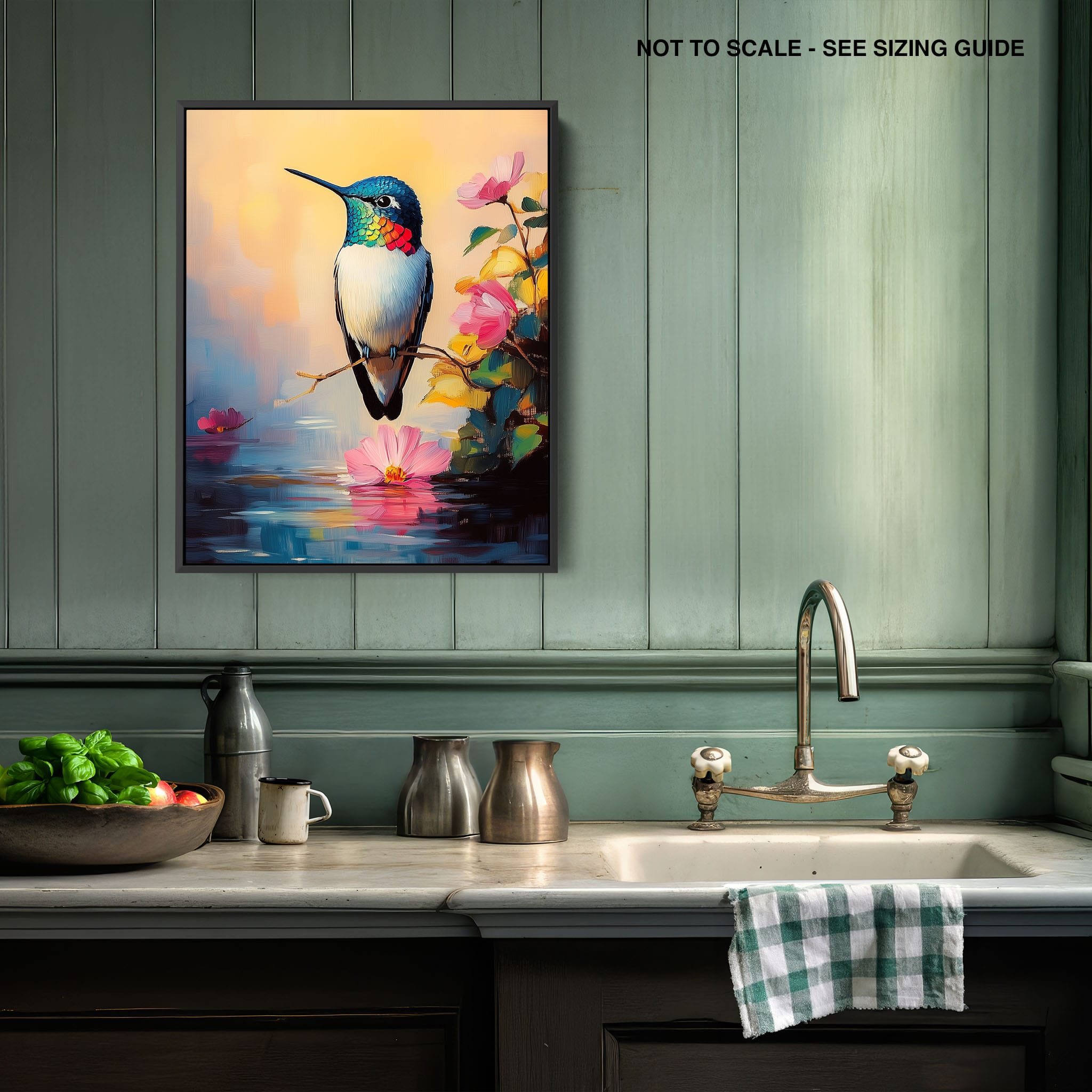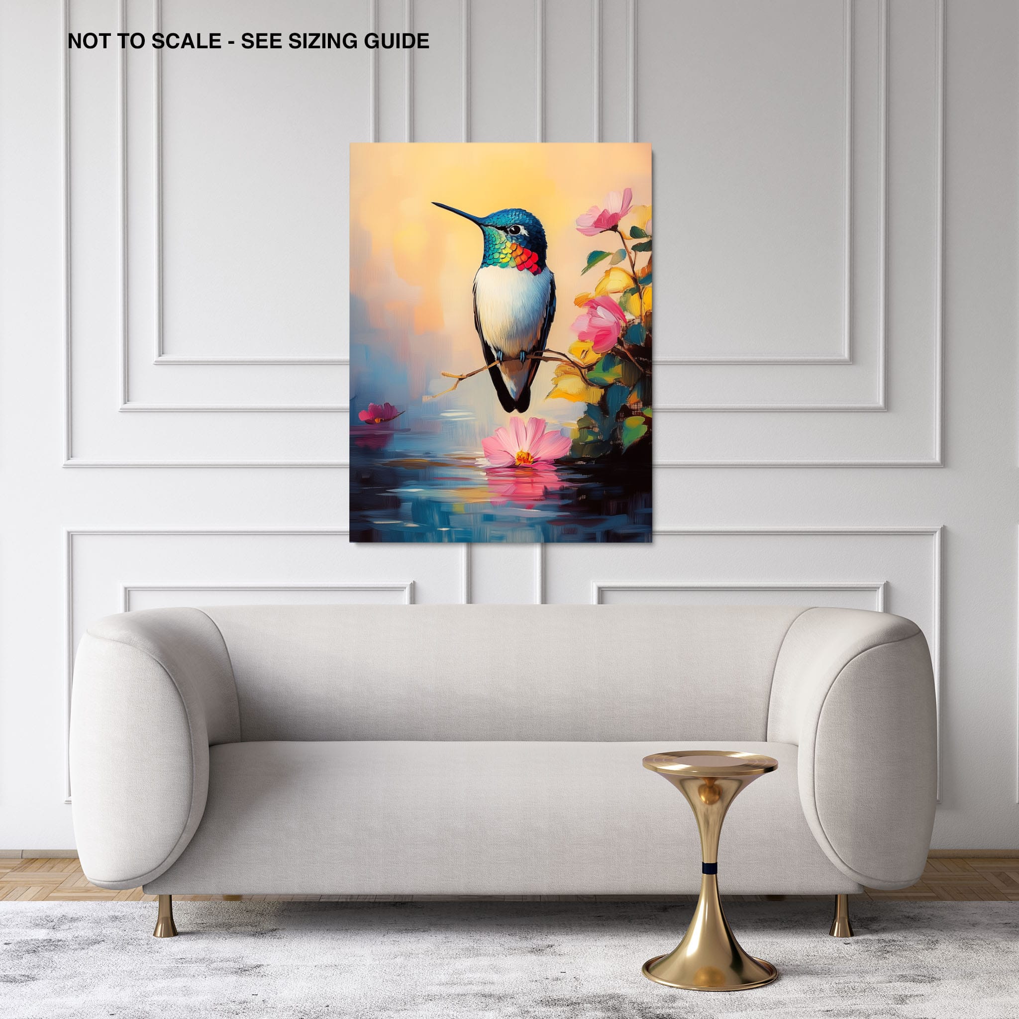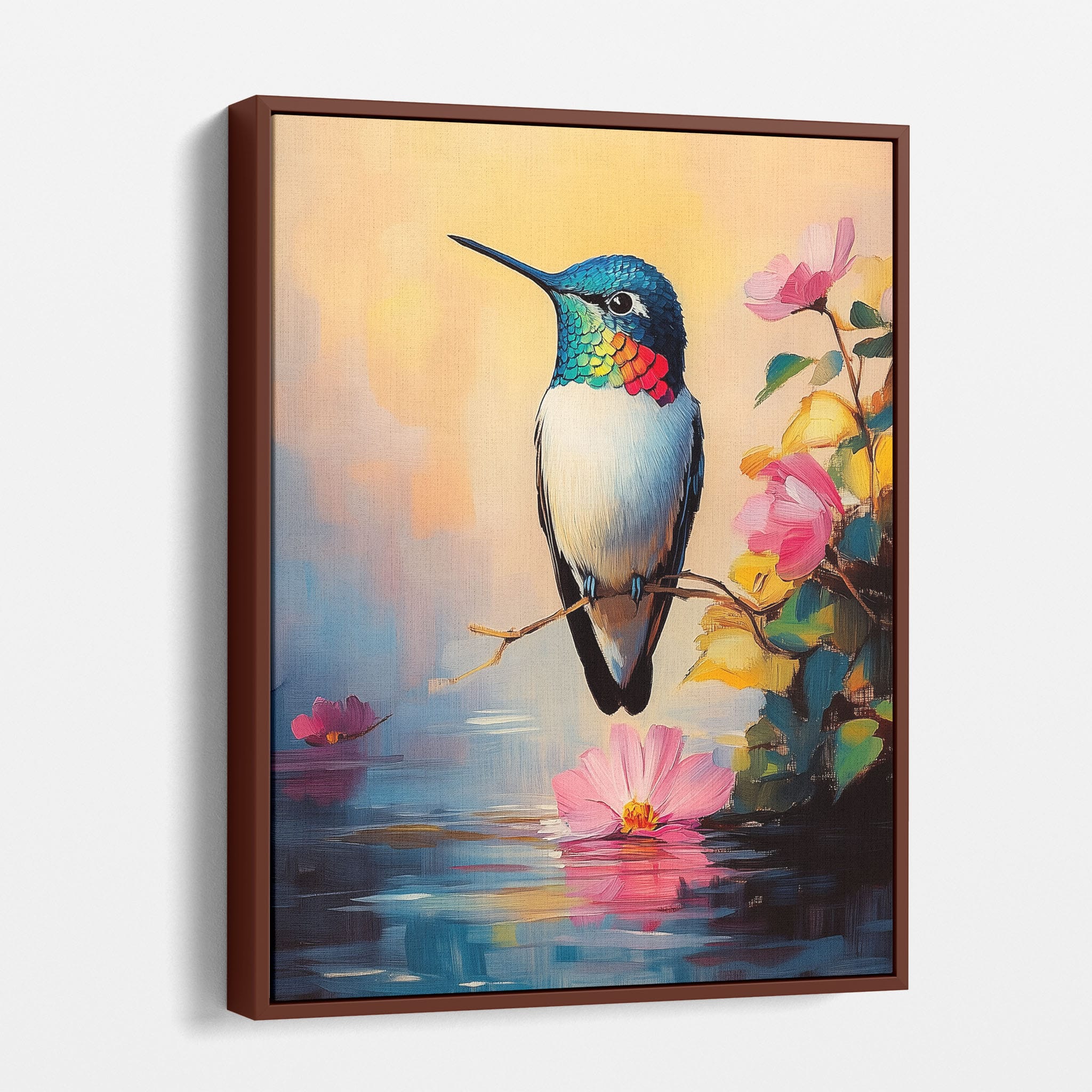 This enchanting digital illustration captures the vibrant essence of a hummingbird gracefully perched amongst blooming flowers. The artwork’s dynamic use of colors, from the iridescent feathers to the vivid pink flowers, creates a mesmerizing visual spectacle. Ideal for nature enthusiasts and art collectors alike, it blends the precision of digital artistry with the charm of impressionistic influences, giving it a timeless appeal. Add a touch of natural beauty and tranquility to any space with this striking piece that celebrates the harmony of wildlife and flora. Perfect for enhancing modern or classic decor, it’s a testament to the elegance of the natural world captured through innovative digital techniques.