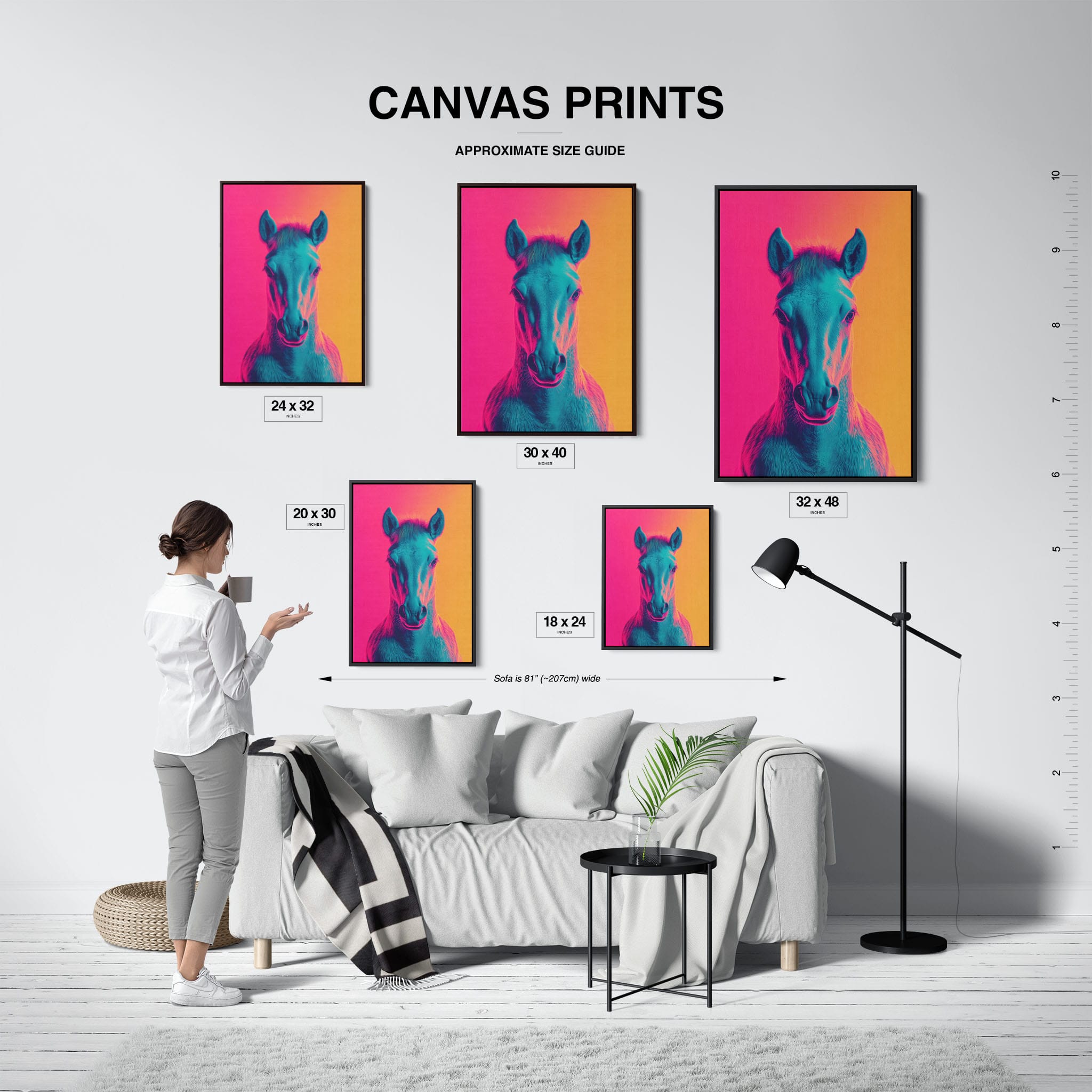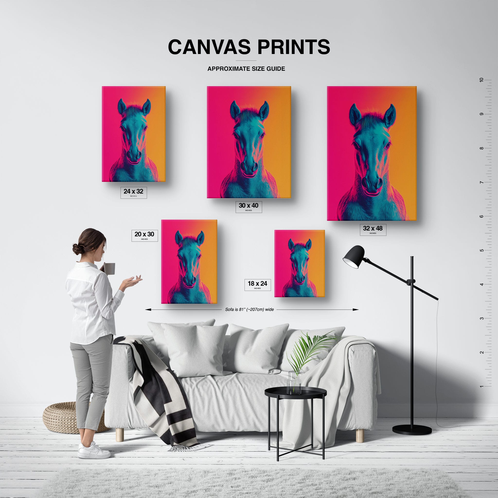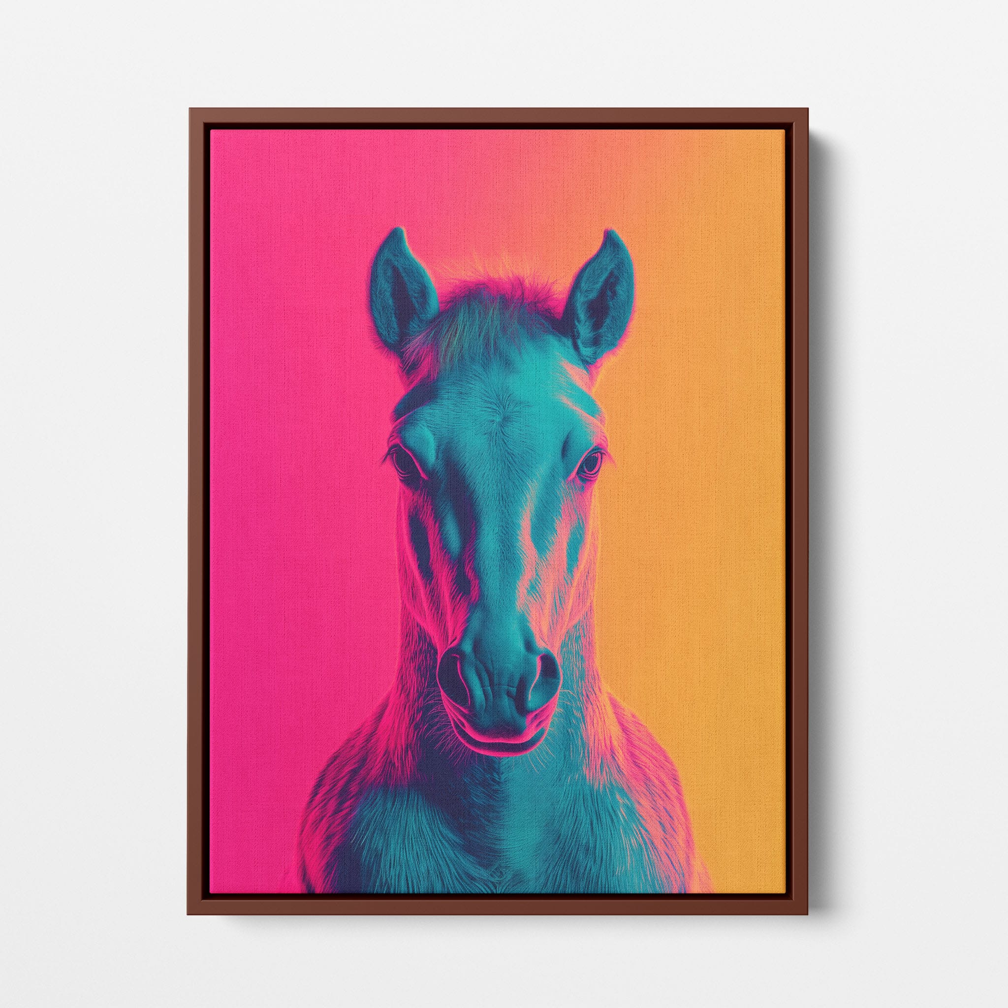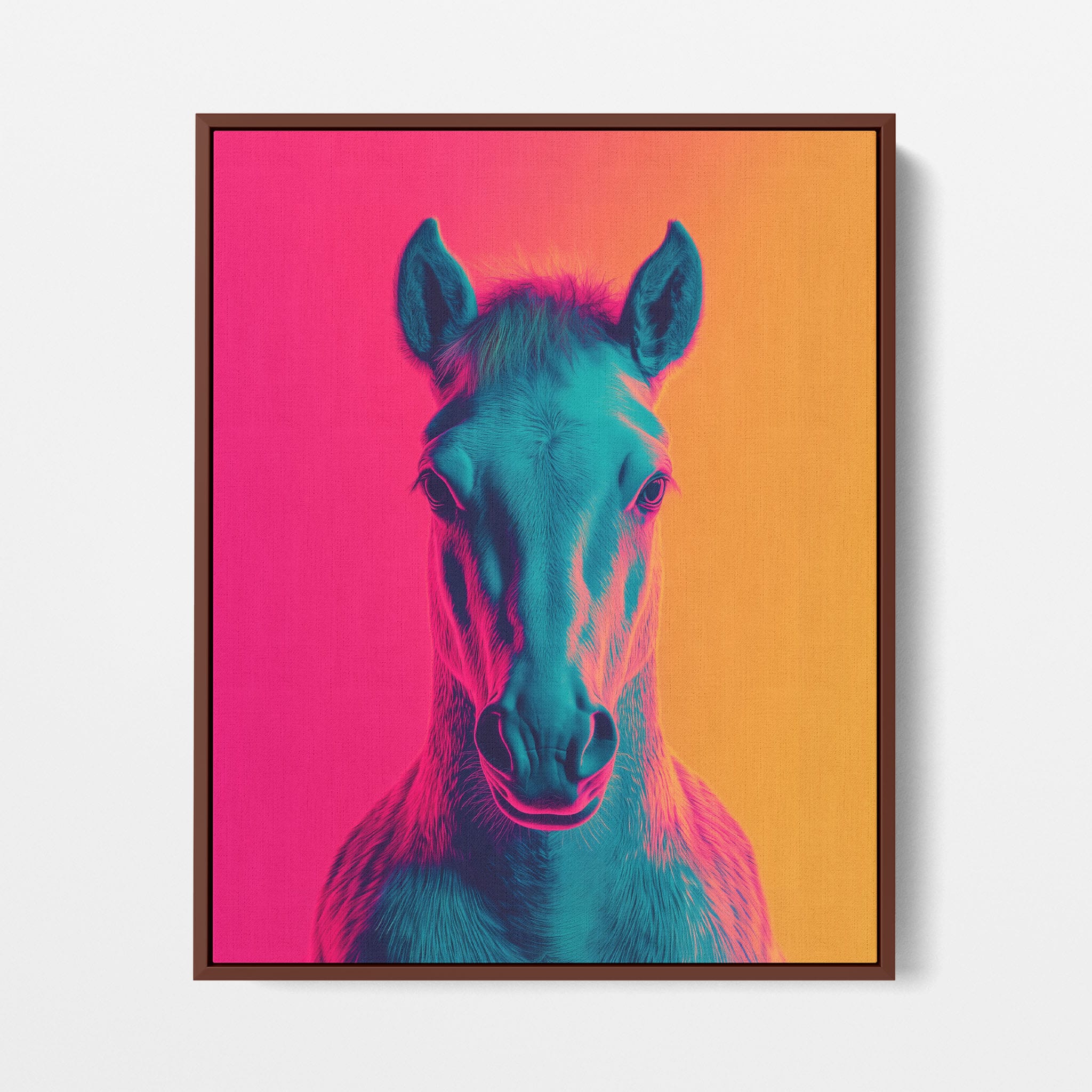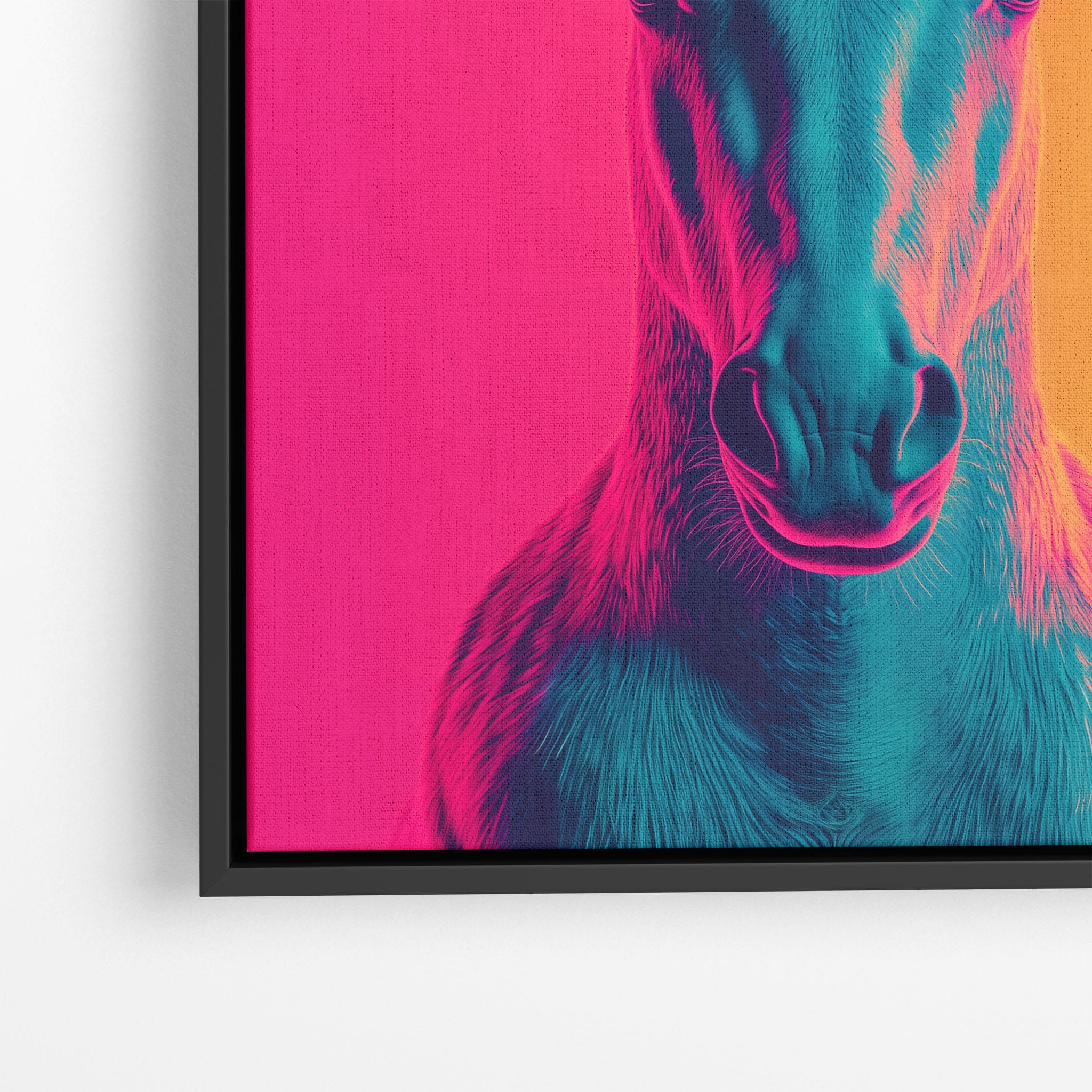 This captivating digital illustration features a horse enveloped in vibrant neon hues, seamlessly blending electric blue and radiant pink. The meticulous attention to detail is evident in the horse’s lifelike texture, adding depth and dimension. The pop art influence is striking, characterized by bold colors and dynamic energy, while hints of surrealism create an otherworldly charm. Perfect for contemporary spaces, this piece is a stylish statement that brings a burst of color and personality to any setting. Add this unique artwork to your collection and transform your decor with its stunning visual appeal.