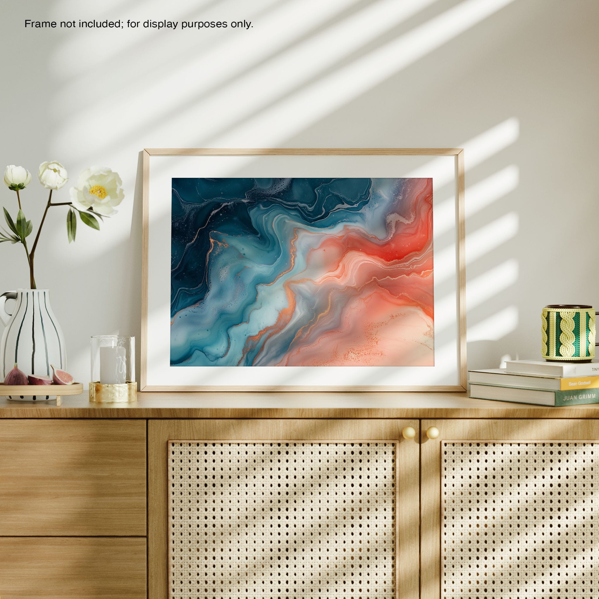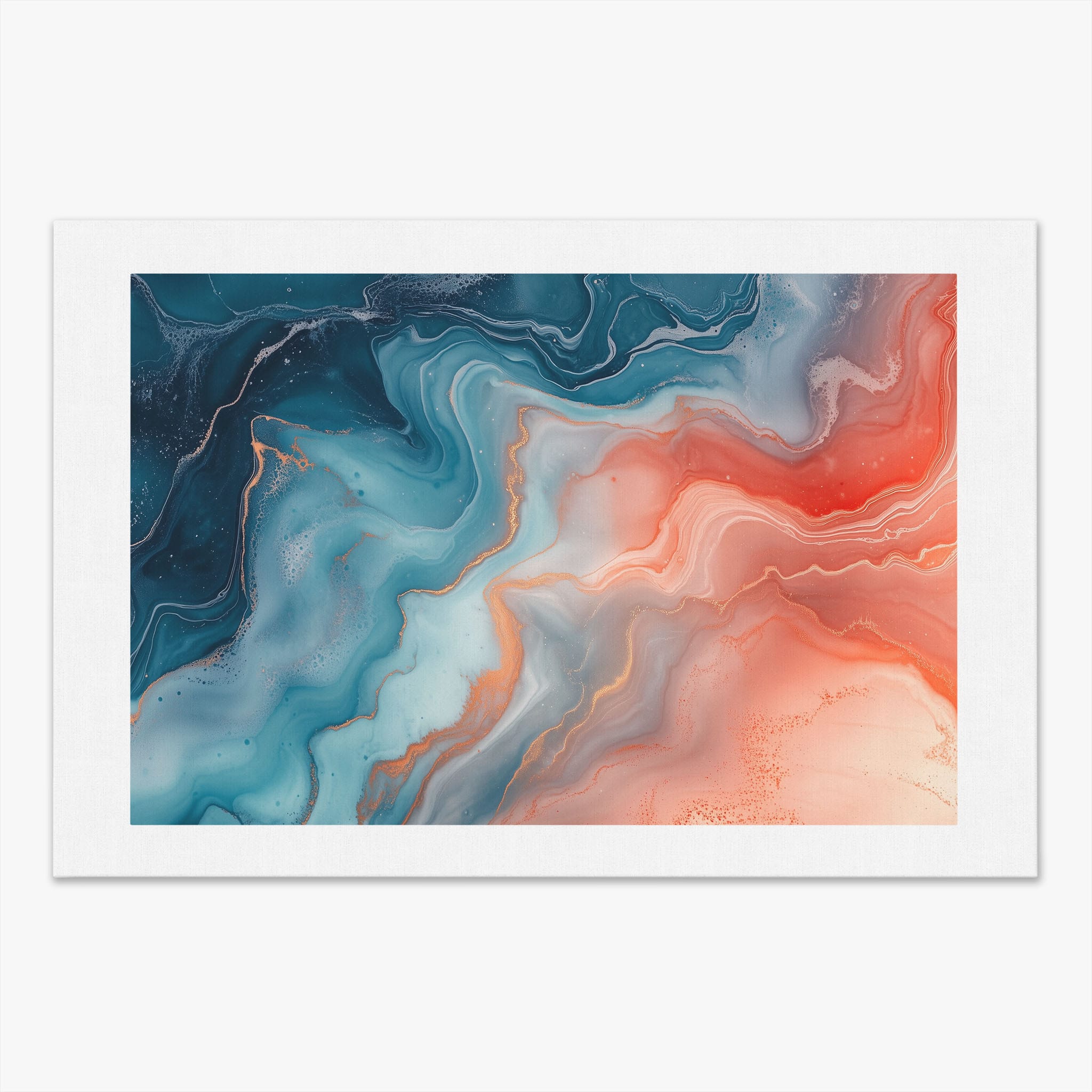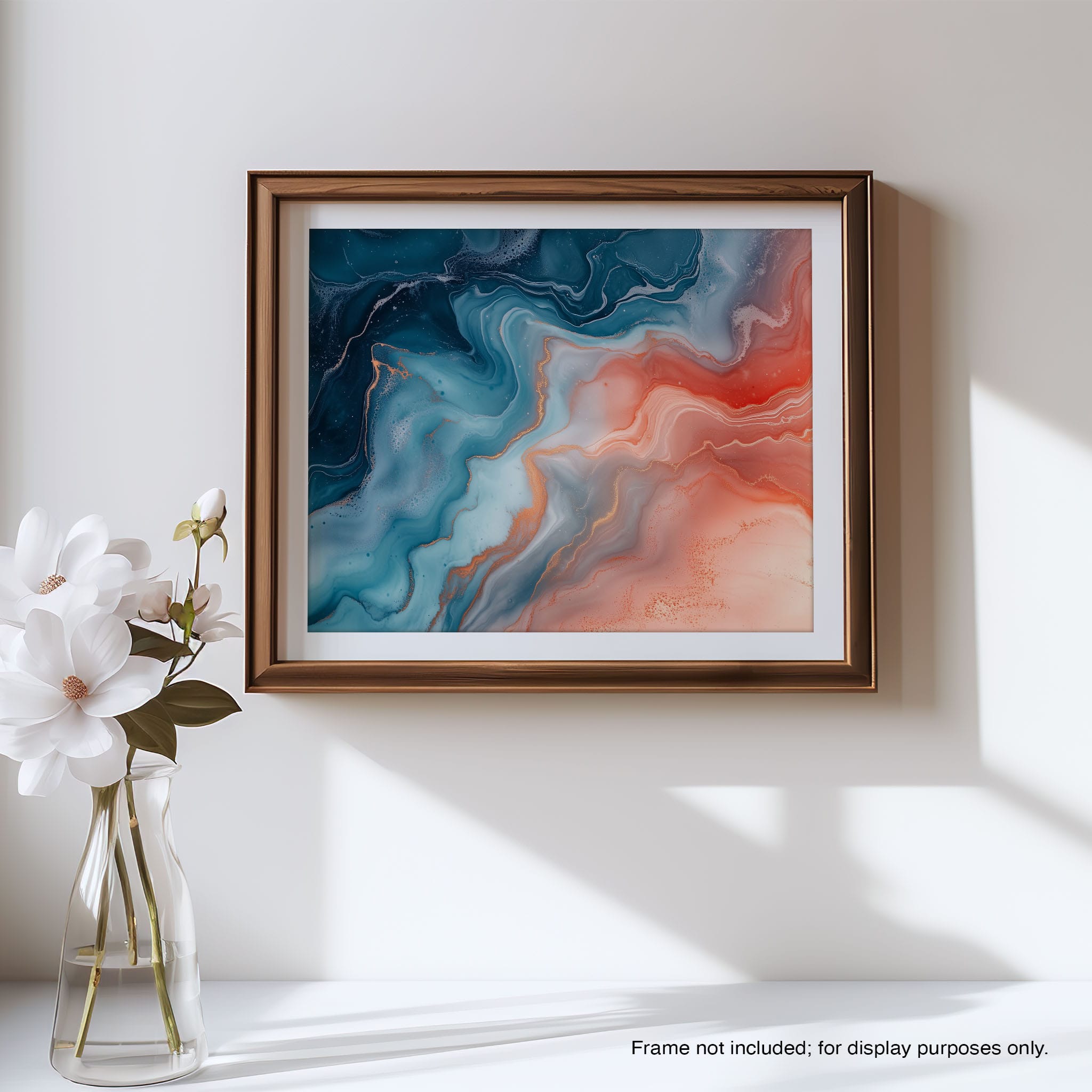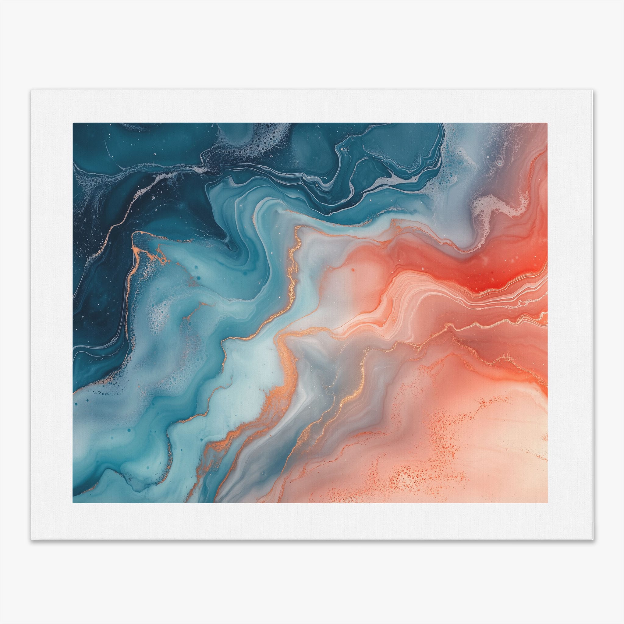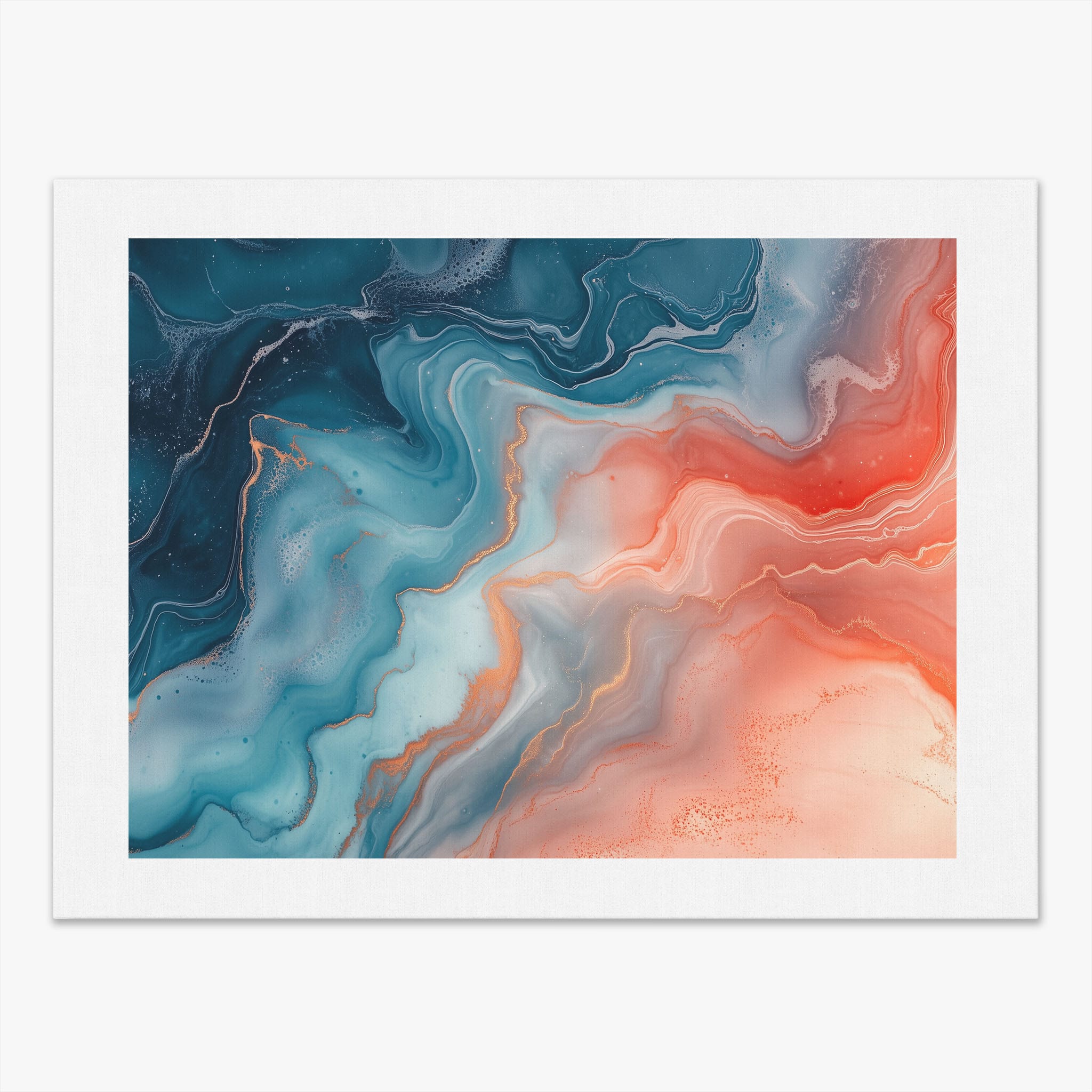 This stunning photographic print captures an abstract blend of ocean blues and fiery reds, reminiscent of a vivid, flowing sunset. The swirling patterns evoke a surreal charm, while the blend of colors offers a modern appeal. Perfect for art lovers appreciative of dynamic, visually impactful works, this piece promises to be a captivating focus in any space. Add a touch of elegance and a splash of color to your walls with this exquisite art photography. Ideal for those who value unique design and passionate craftsmanship.