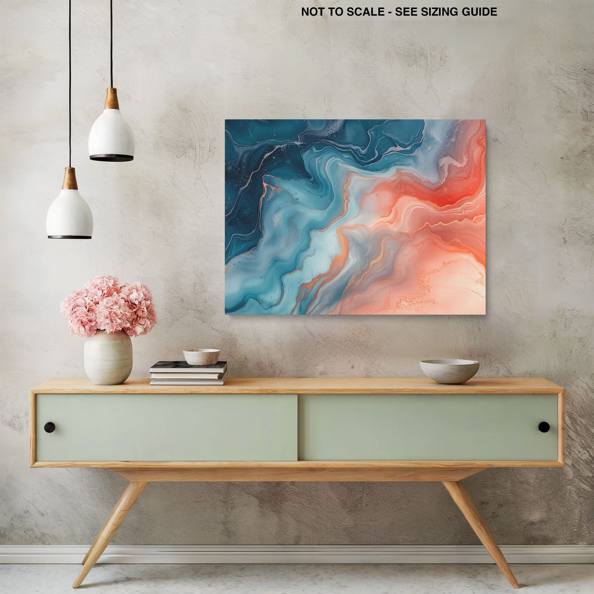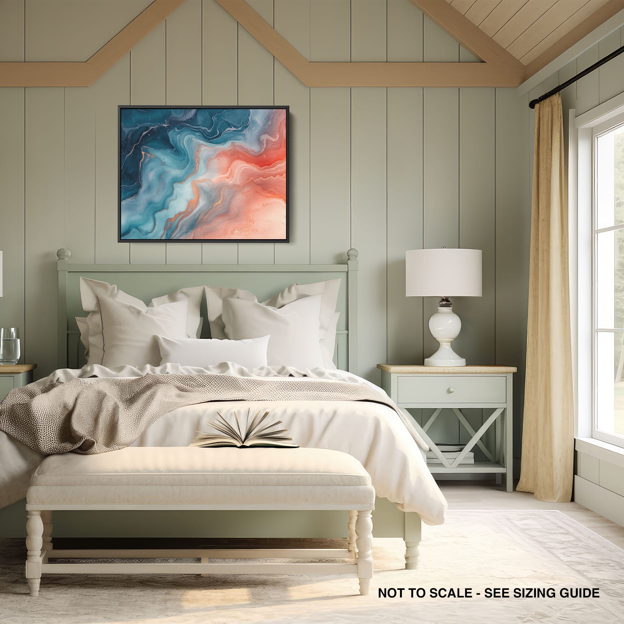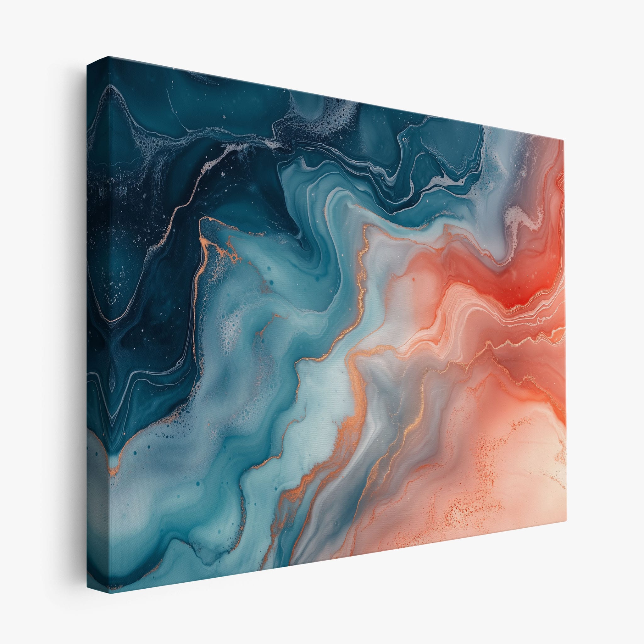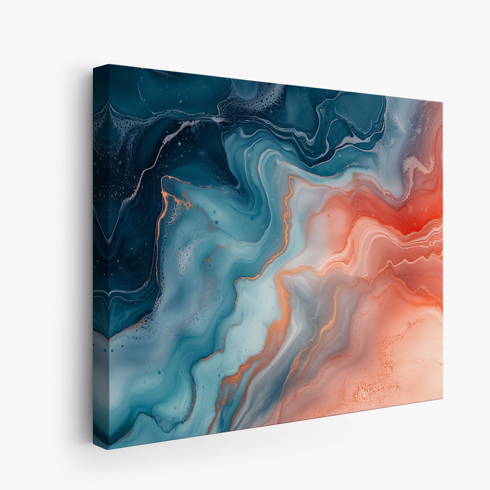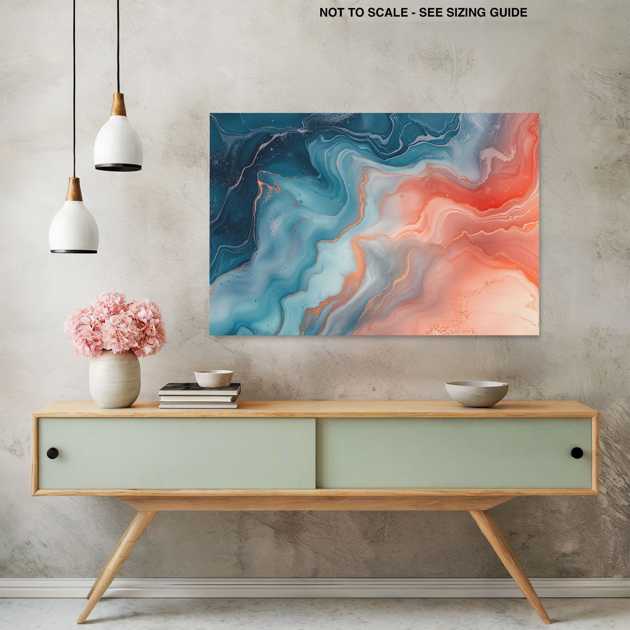 This stunning photographic print captures an abstract blend of ocean blues and fiery reds, reminiscent of a vivid, flowing sunset. The swirling patterns evoke a surreal charm, while the blend of colors offers a modern appeal. Perfect for art lovers appreciative of dynamic, visually impactful works, this piece promises to be a captivating focus in any space. Add a touch of elegance and a splash of color to your walls with this exquisite art photography. Ideal for those who value unique design and passionate craftsmanship.