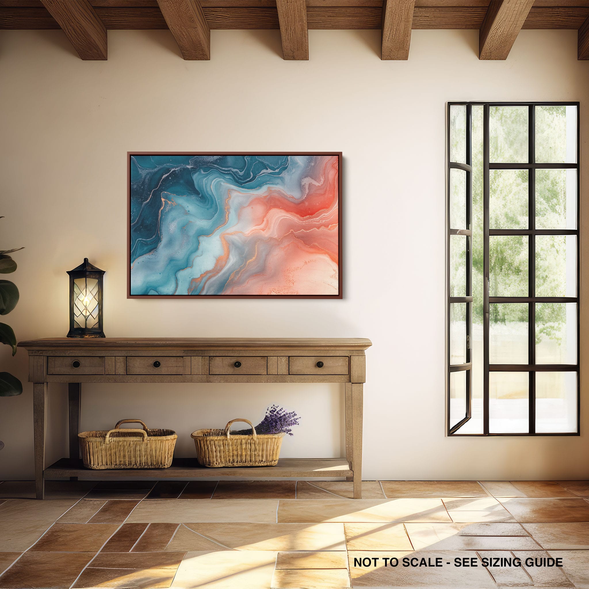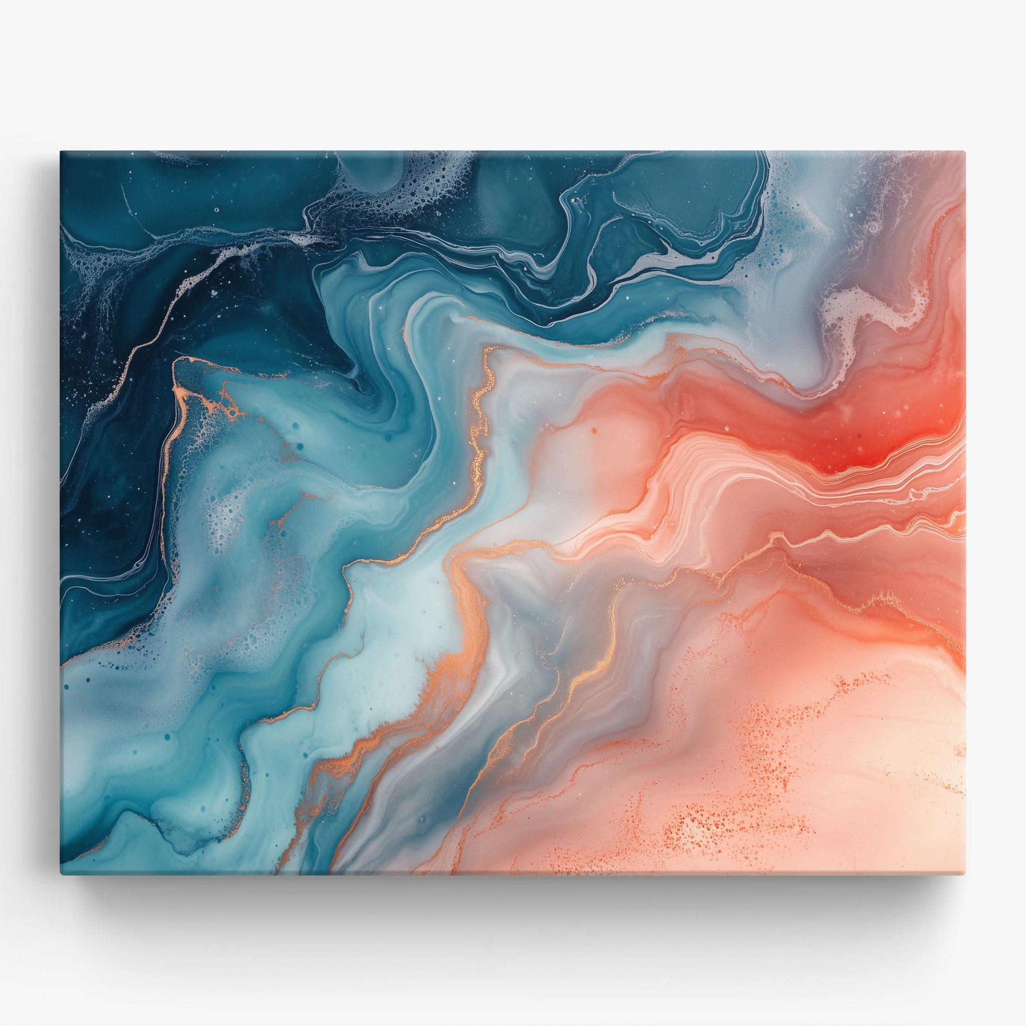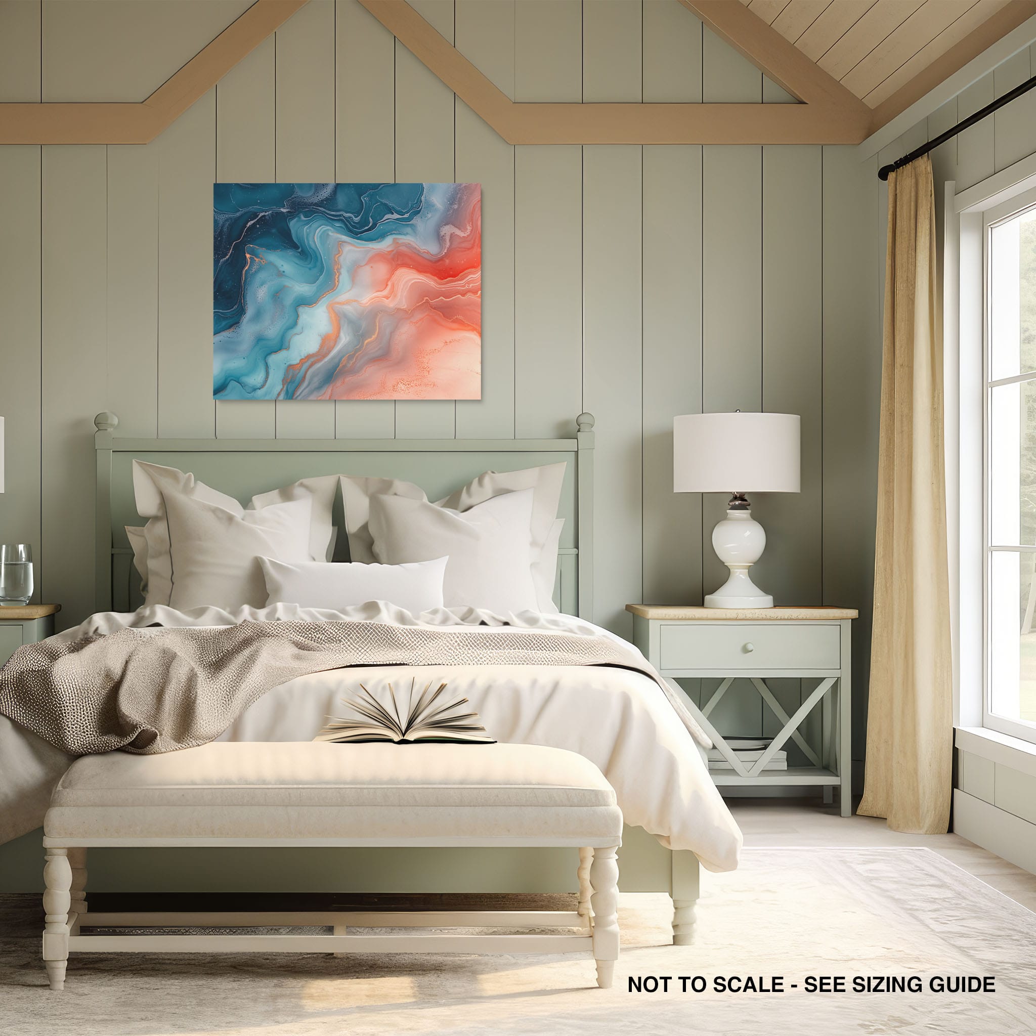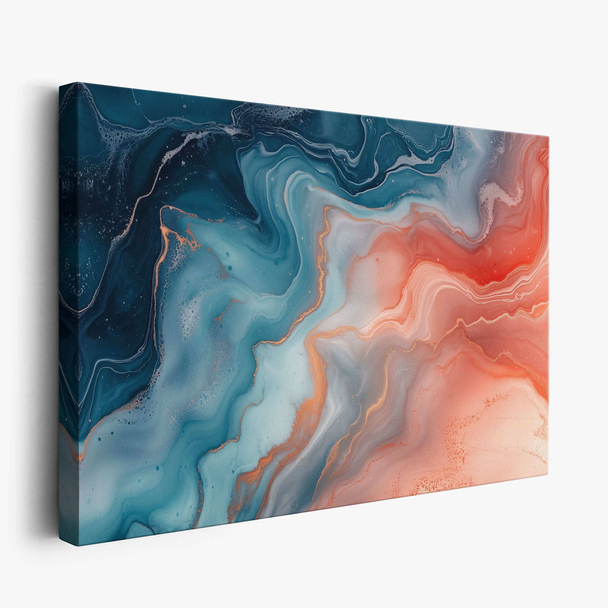 This stunning photographic print captures an abstract blend of ocean blues and fiery reds, reminiscent of a vivid, flowing sunset. The swirling patterns evoke a surreal charm, while the blend of colors offers a modern appeal. Perfect for art lovers appreciative of dynamic, visually impactful works, this piece promises to be a captivating focus in any space. Add a touch of elegance and a splash of color to your walls with this exquisite art photography. Ideal for those who value unique design and passionate craftsmanship.