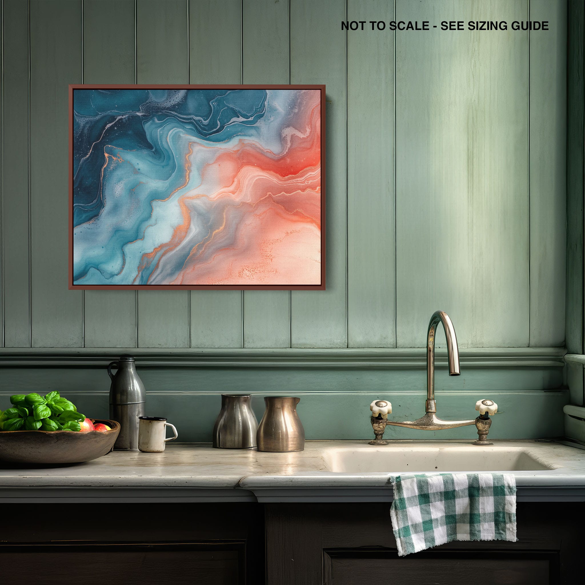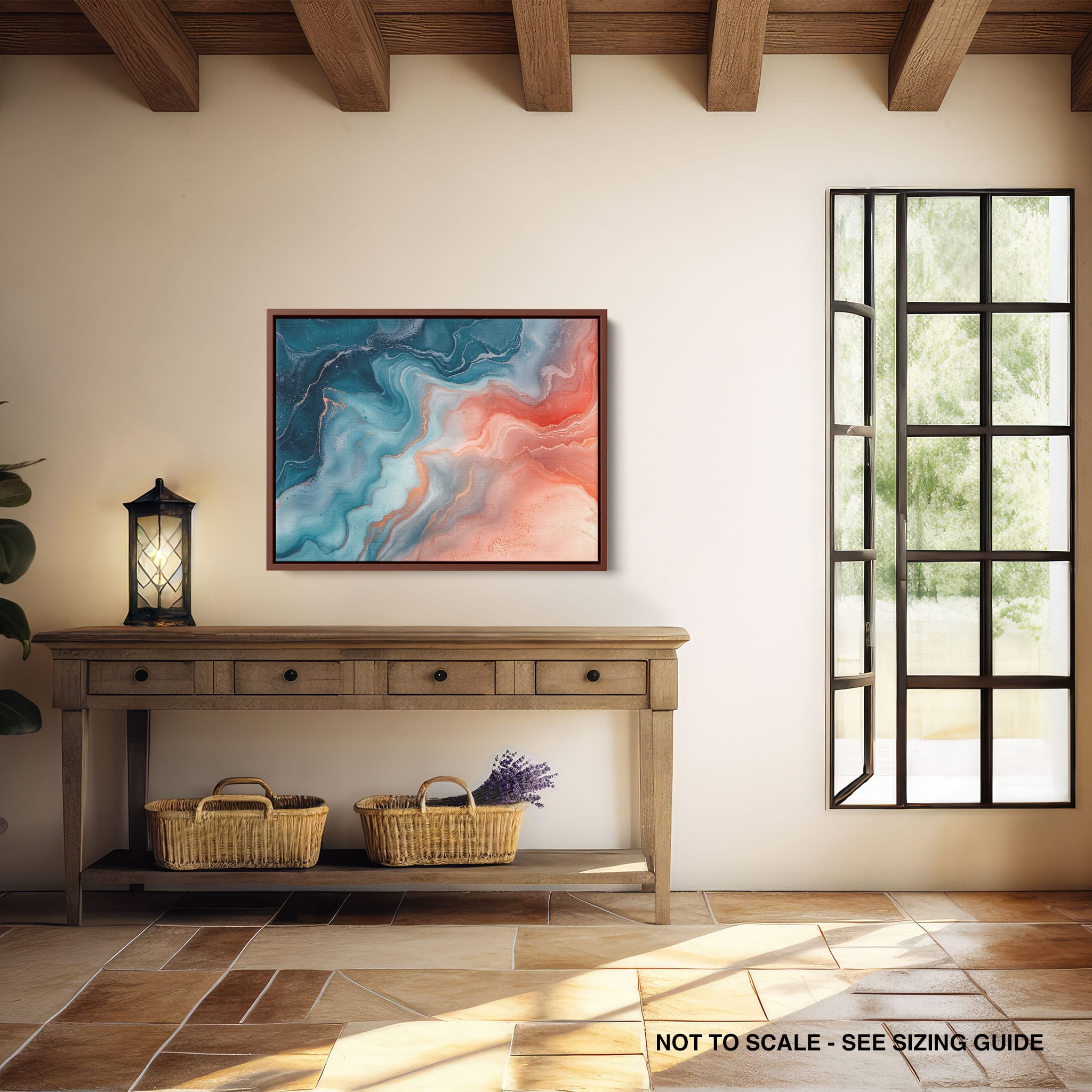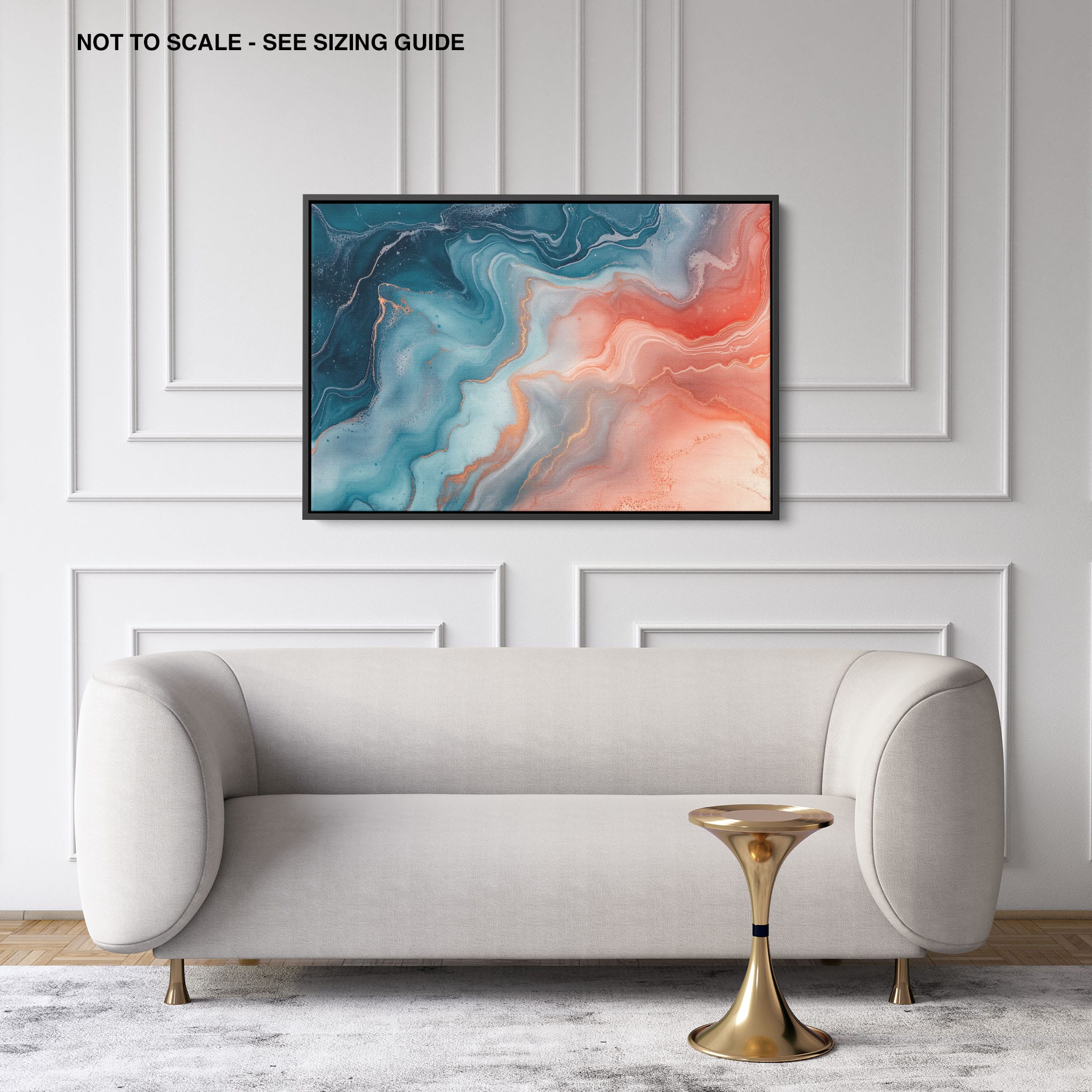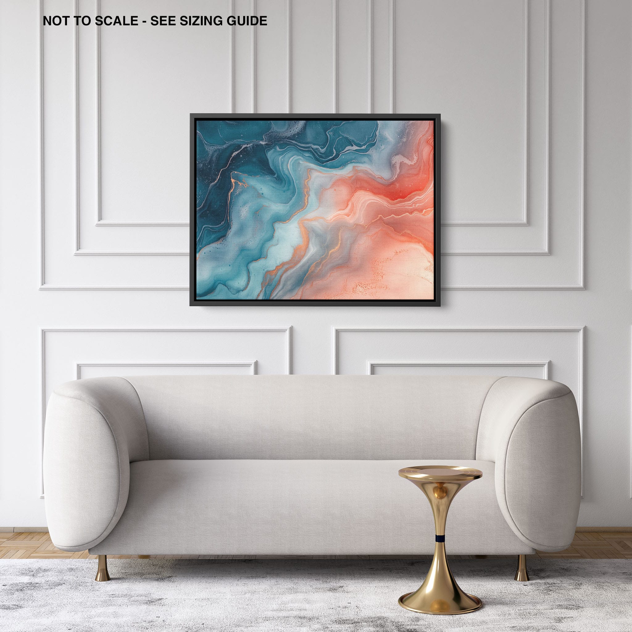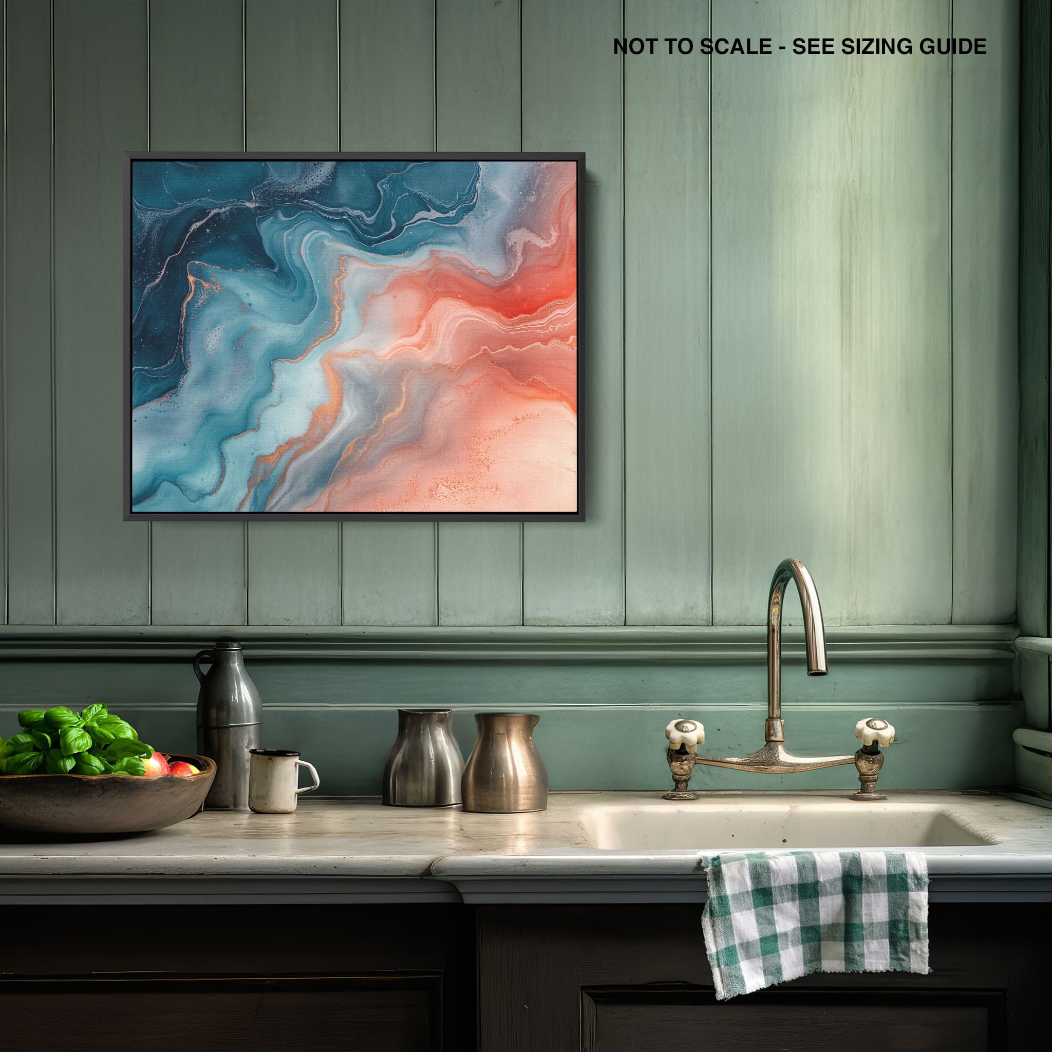 This stunning photographic print captures an abstract blend of ocean blues and fiery reds, reminiscent of a vivid, flowing sunset. The swirling patterns evoke a surreal charm, while the blend of colors offers a modern appeal. Perfect for art lovers appreciative of dynamic, visually impactful works, this piece promises to be a captivating focus in any space. Add a touch of elegance and a splash of color to your walls with this exquisite art photography. Ideal for those who value unique design and passionate craftsmanship.