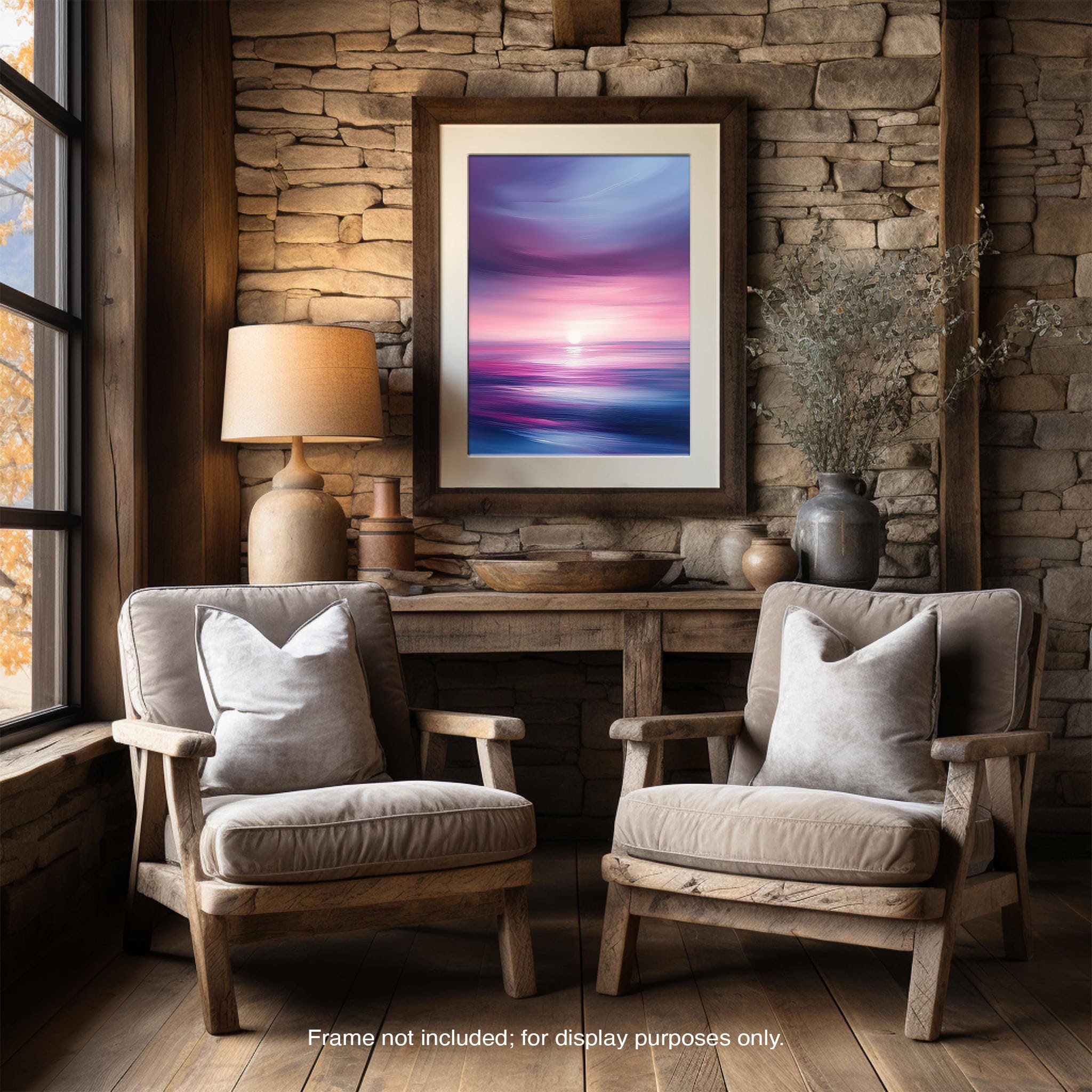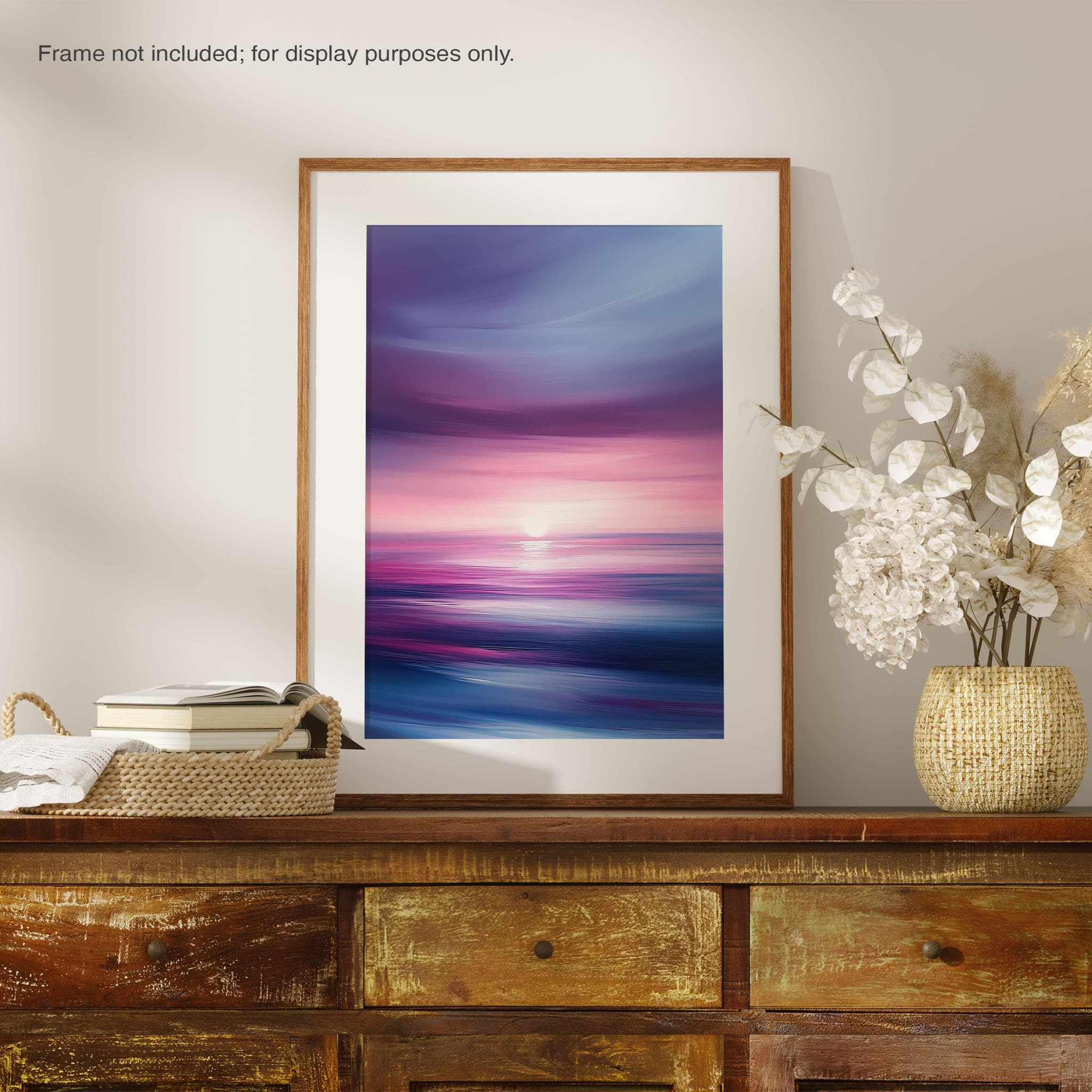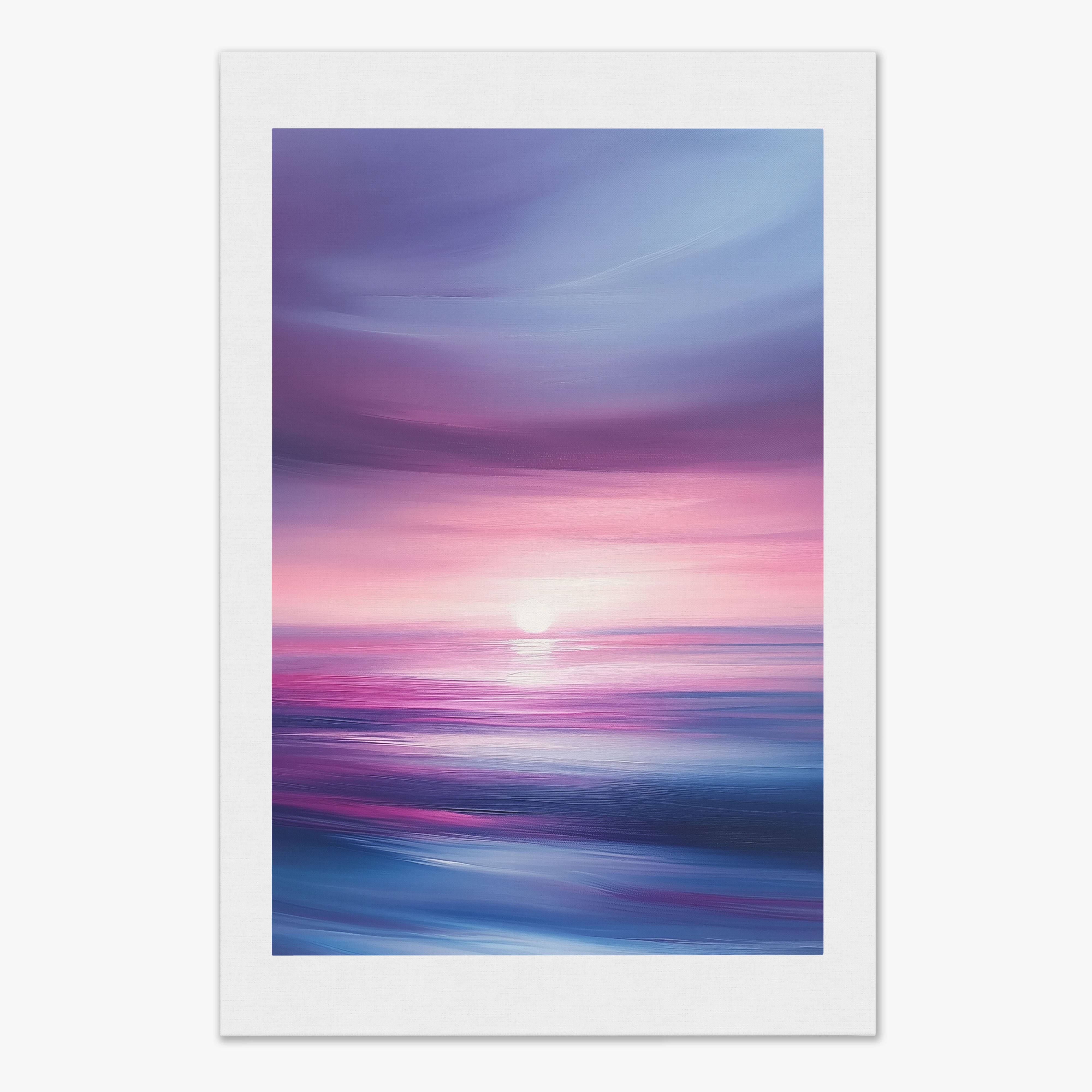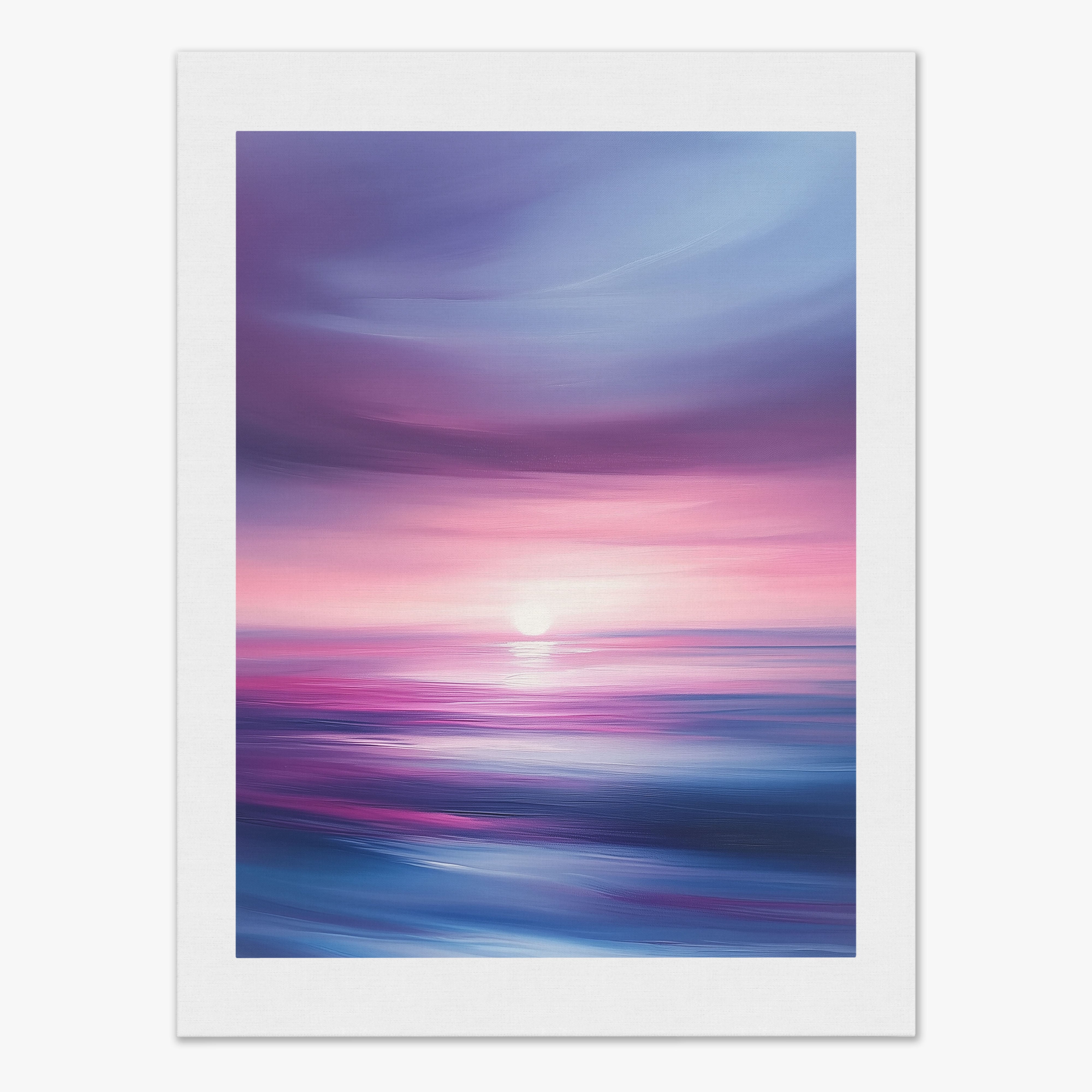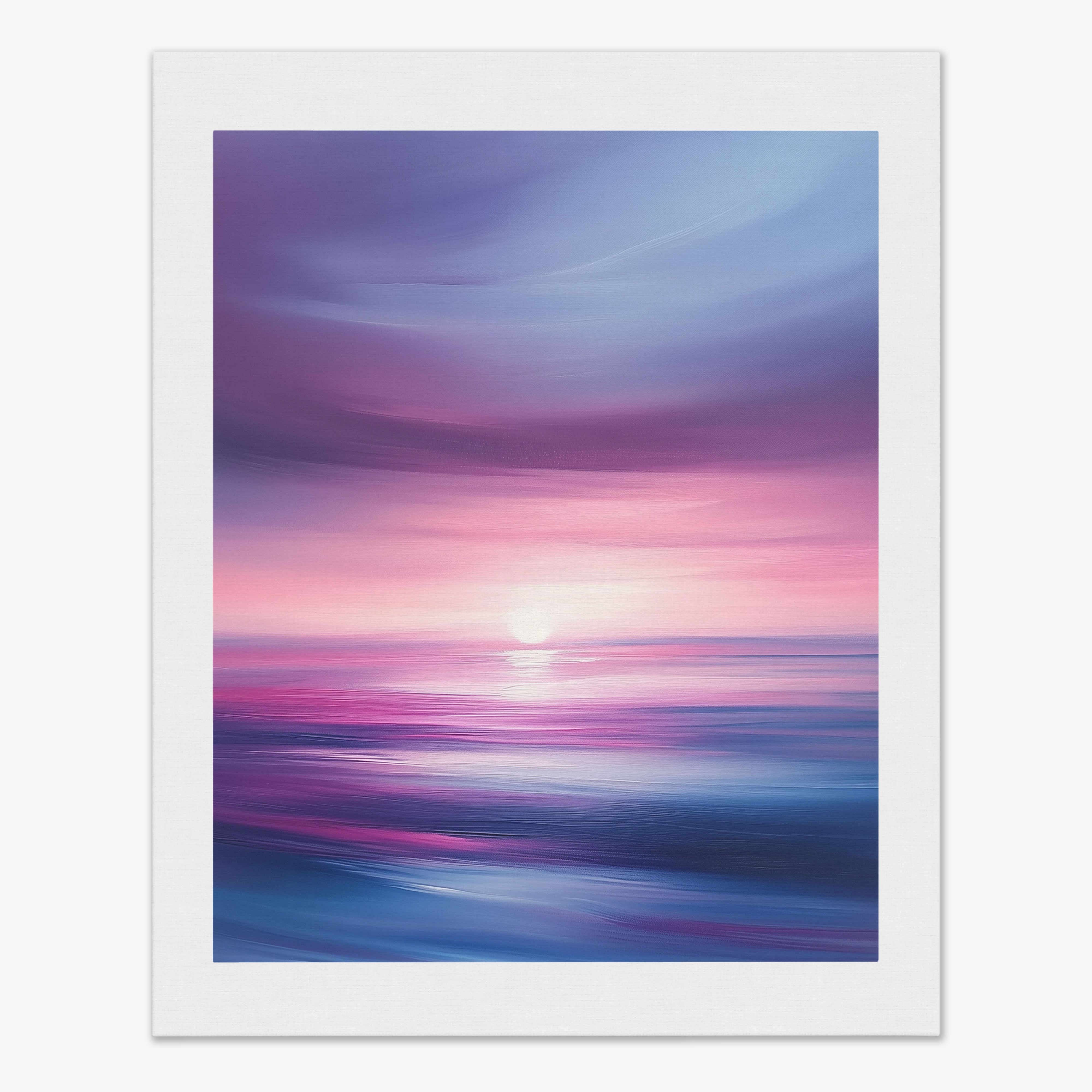 Dive into the serene beauty of Radiant Horizon, a breathtaking digital illustration that captures the ethereal glow of a sunset over a tranquil ocean. Blending surrealism with impressionism, this artwork showcases an exquisite play of purples, pinks, and blues, evoking a sense of calm and wonder. The soft, flowing textures and dynamic brushstrokes create an immersive experience, transporting you to a peaceful seascape where the sky meets the water in perfect harmony. Perfect for enhancing any space, this piece invites you to pause and revel in the beauty of nature’s twilight. Let Radiant Horizon bring a touch of tranquility and sophistication to your home or office.