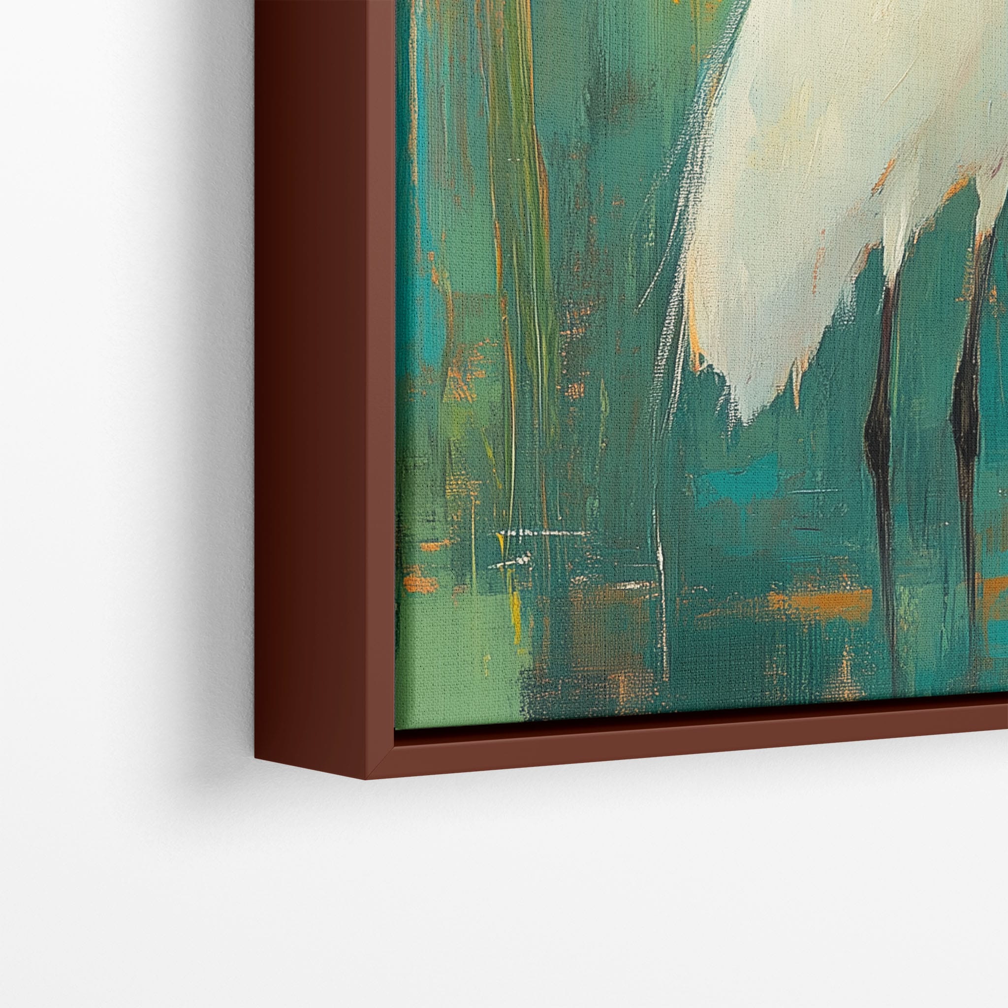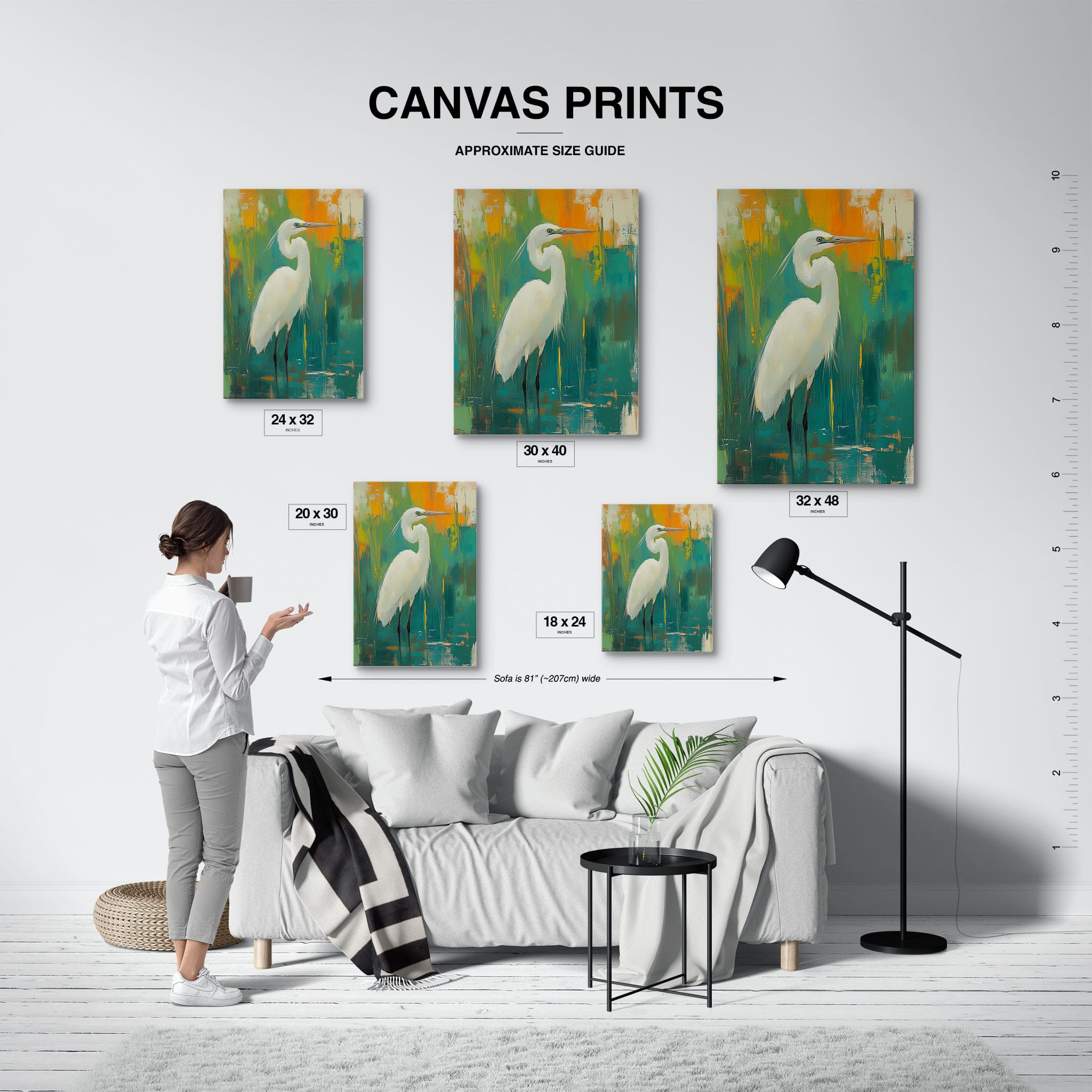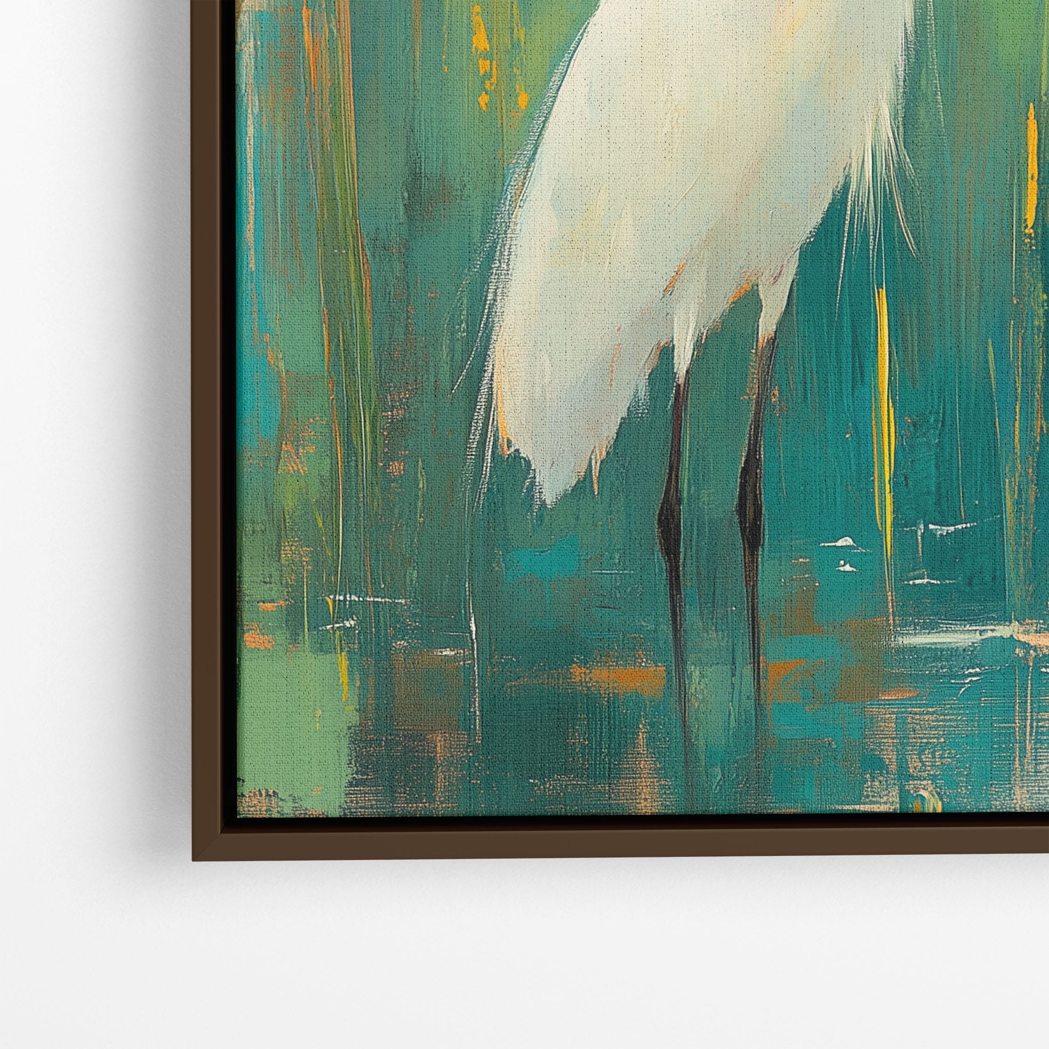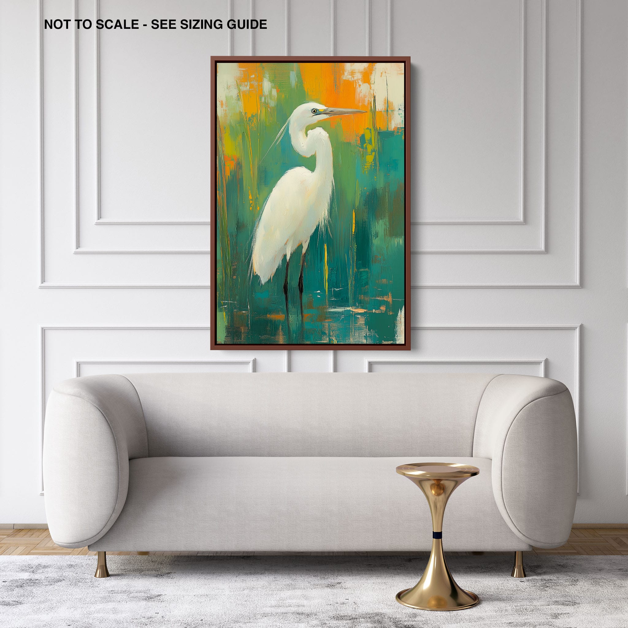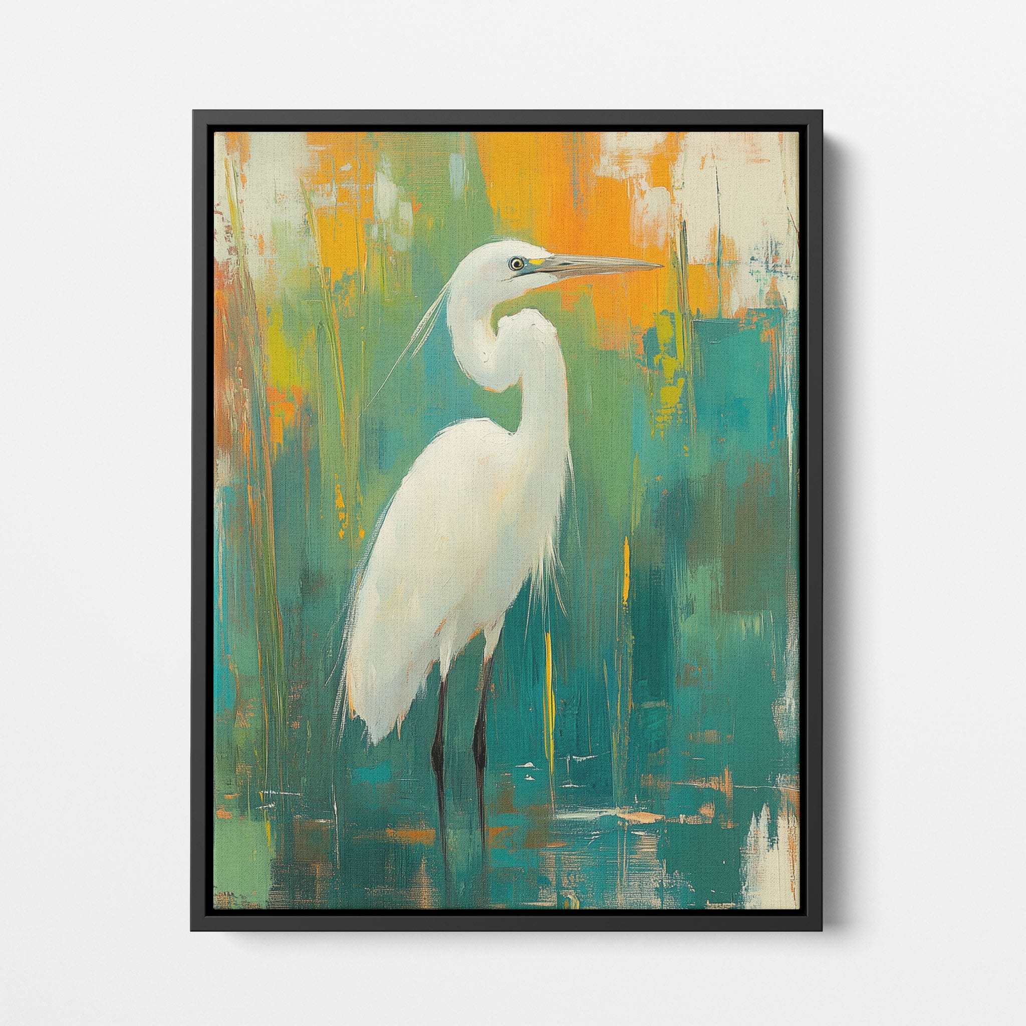 Captivating in its portrayal of a solitary egret amid a backdrop of abstract sweeps and vibrant splashes of paint, this painting vividly captures both the grace of the bird and the dynamism of the natural environment it inhabits. The earthy oranges and greens contrast sharply with the egret’s stark white feathers, highlighting its serene presence. This artwork, ideal for nature lovers and modern art aficionados, promises to bring a touch of tranquil elegance and contemporary artistic flair to any living space or gallery. Add this striking piece to your decor for a daily inspiration drawn from nature.