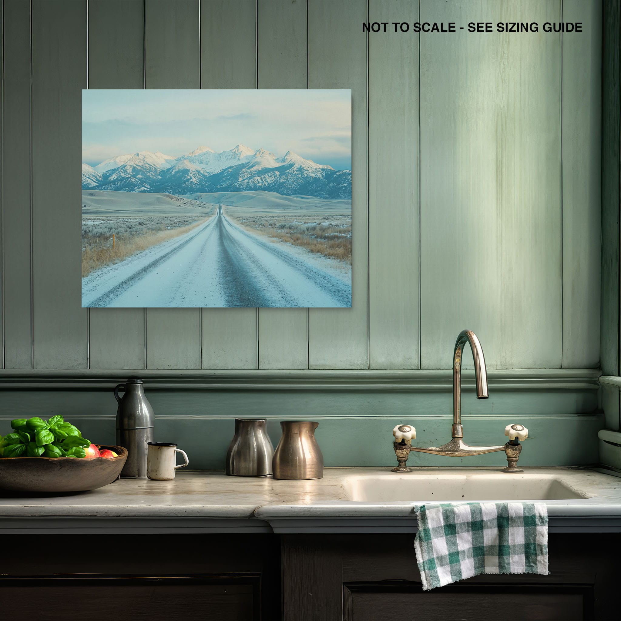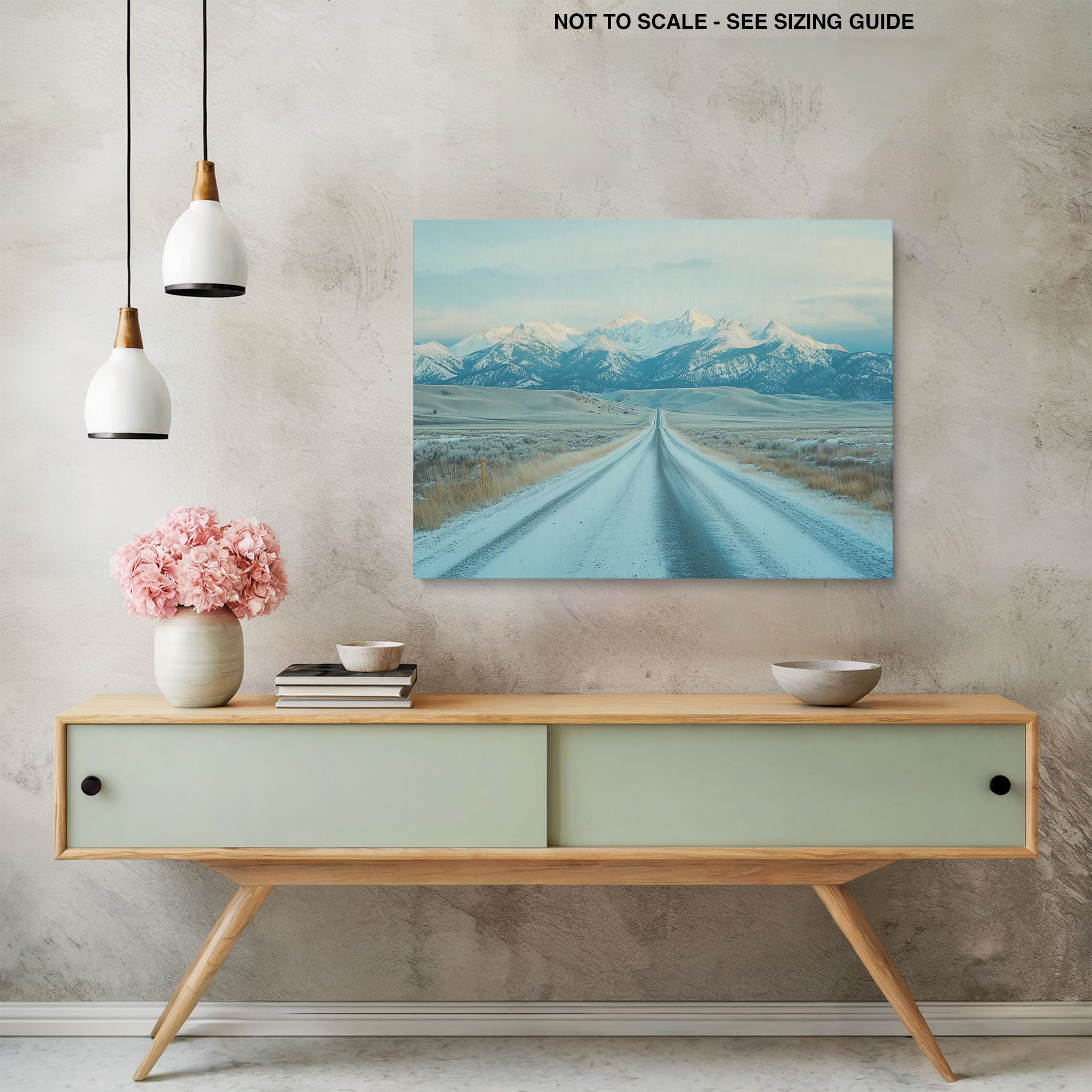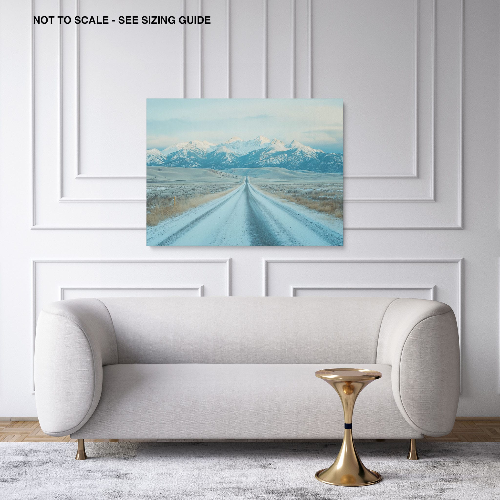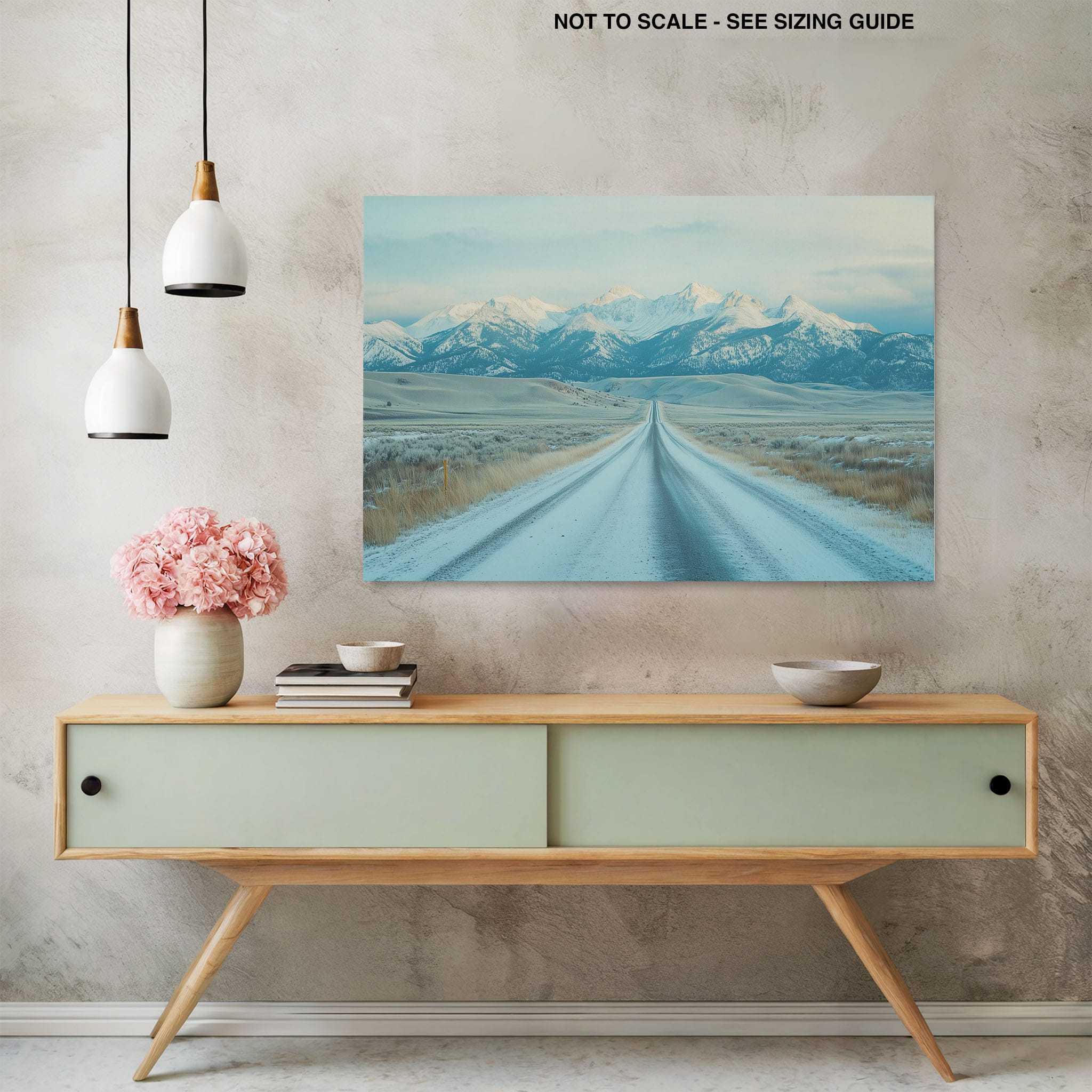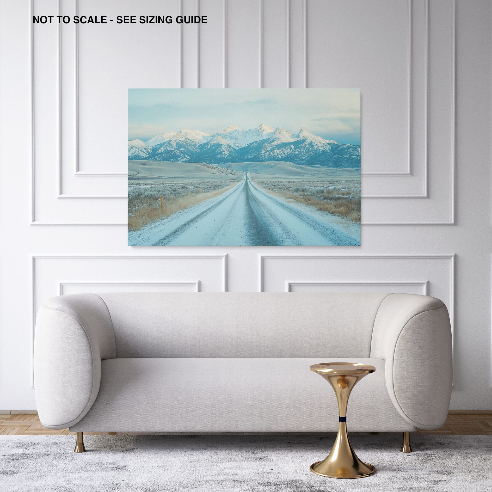 This captivating piece of digital photography captures a serene winter scene, showcasing an endless road that leads to majestic, snowy mountains. The cool blues and whites blend seamlessly, emphasizing the quiet beauty of the landscape. With minimalist elements highlighting vast open spaces and snow-covered terrain, this artwork beckons the viewer to experience the tranquility of winter. Perfect for those who appreciate landscape and minimalist art styles, this print will bring a touch of peaceful wilderness into your home or office.