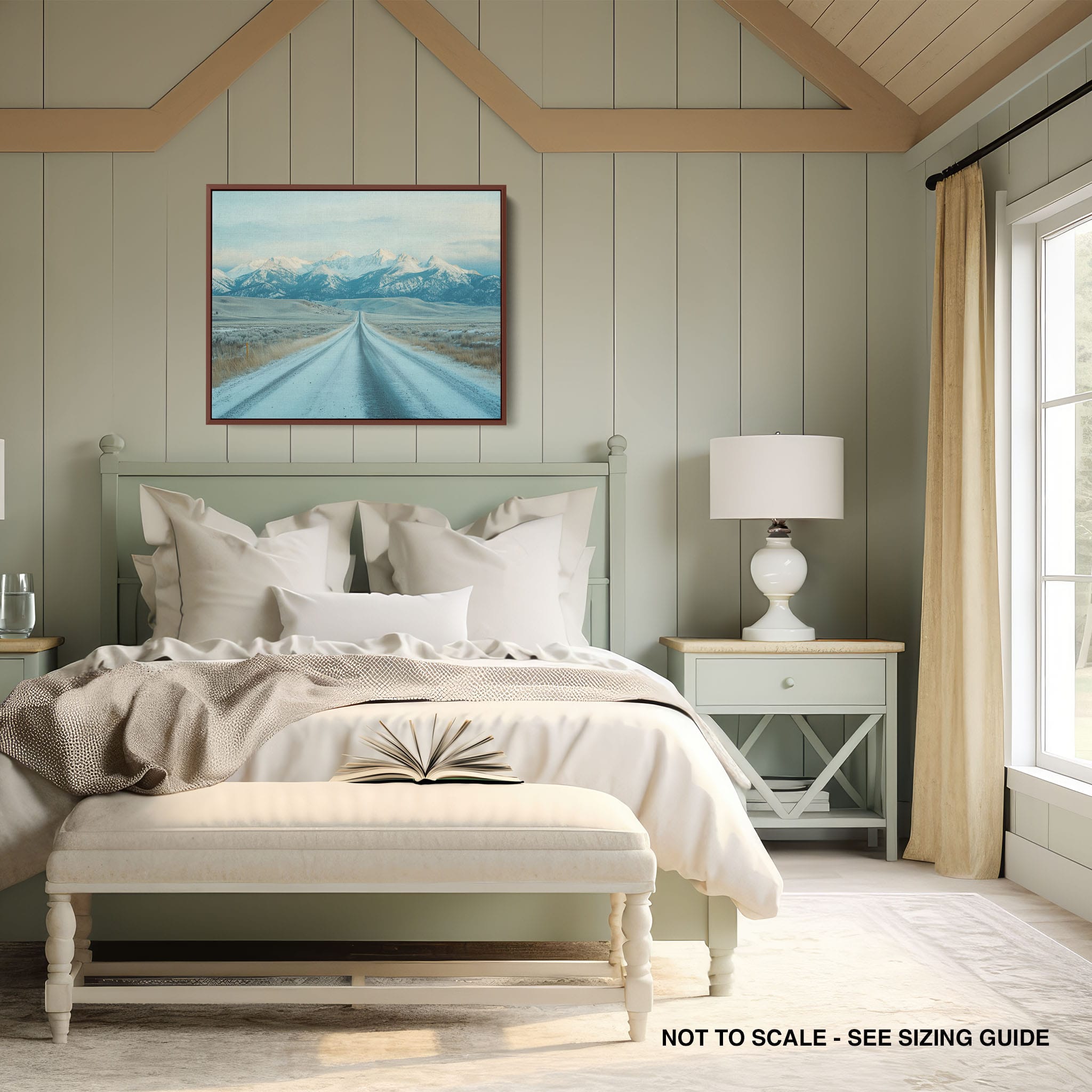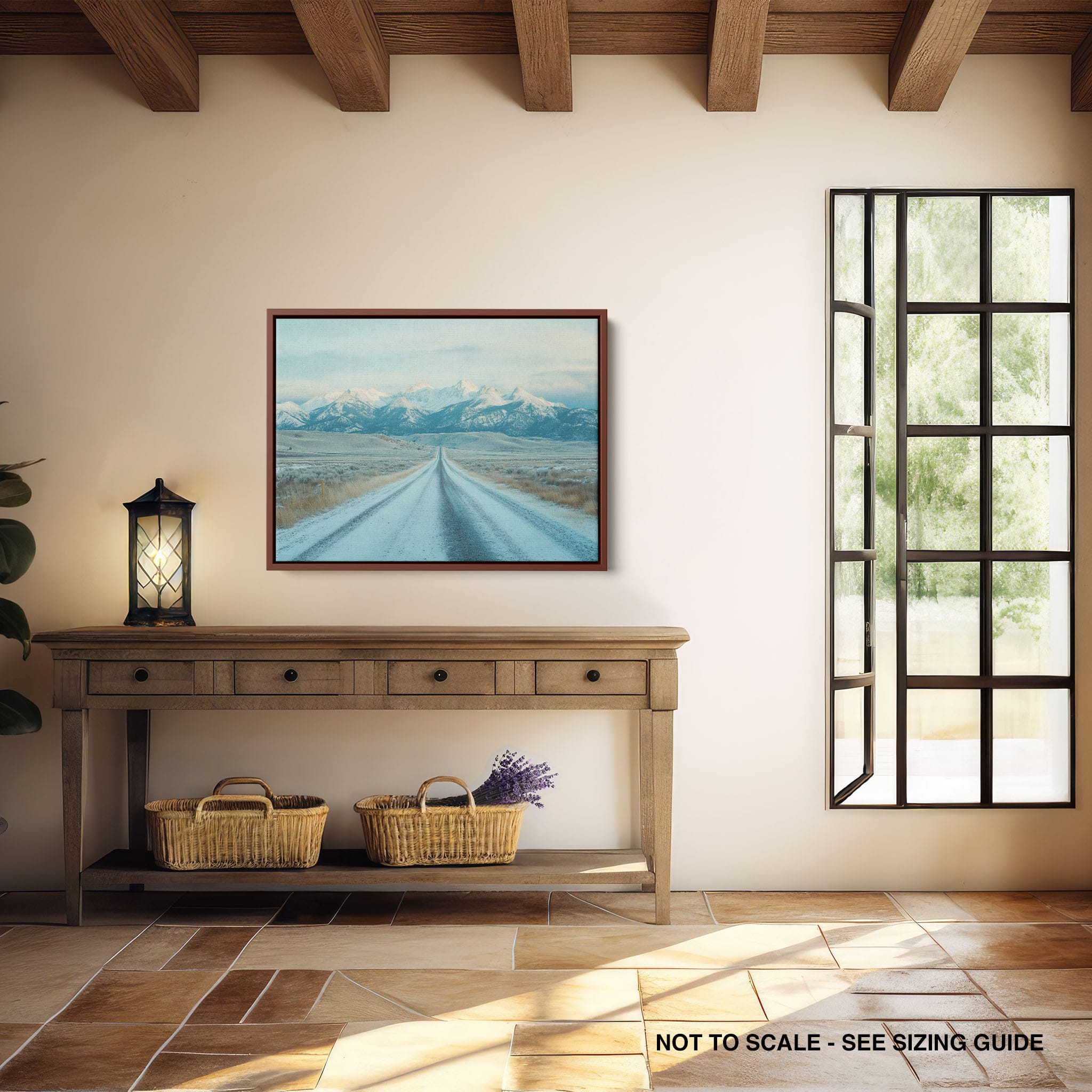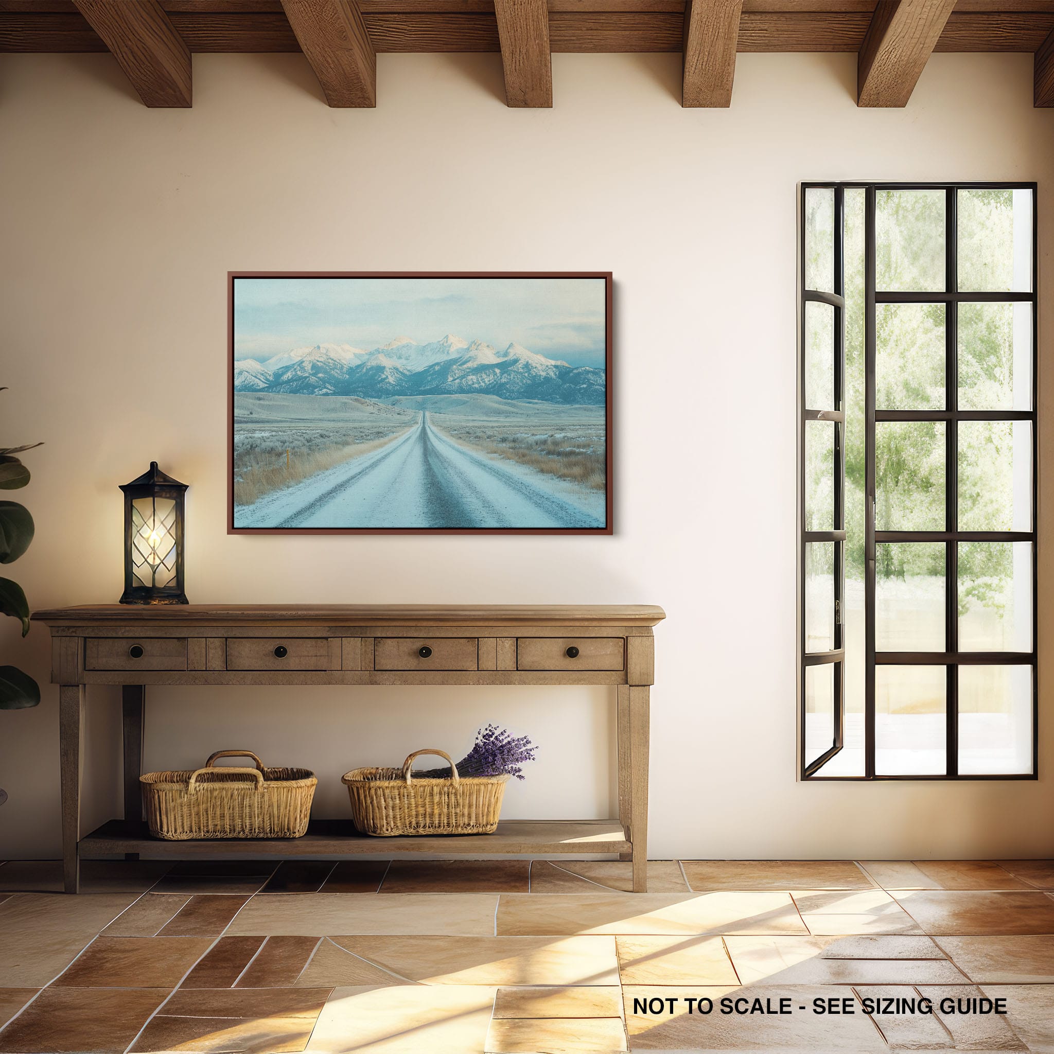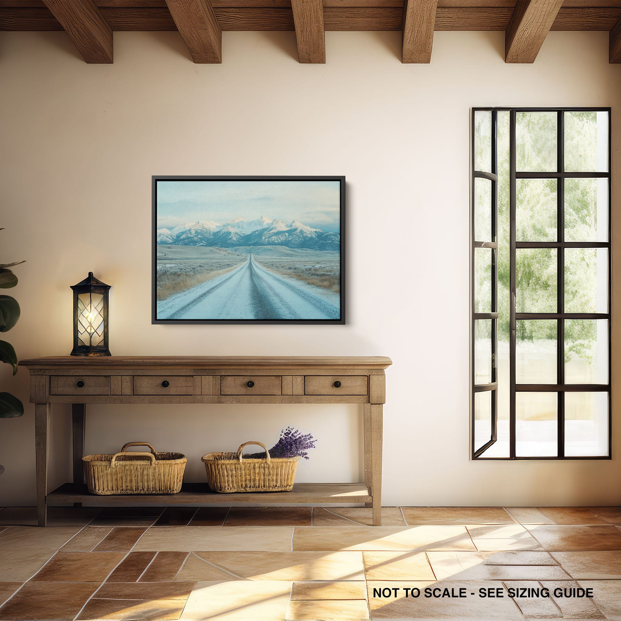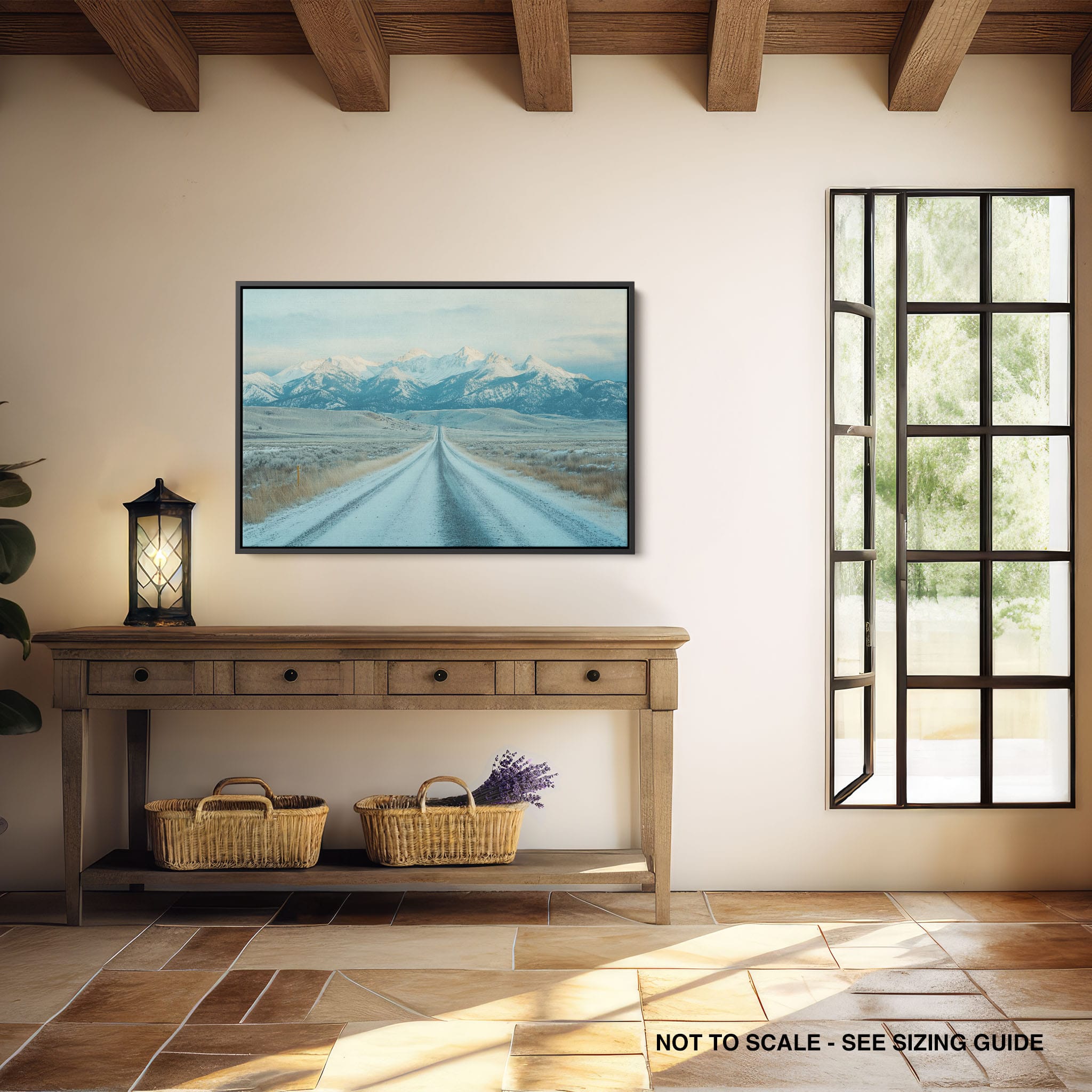 This captivating piece of digital photography captures a serene winter scene, showcasing an endless road that leads to majestic, snowy mountains. The cool blues and whites blend seamlessly, emphasizing the quiet beauty of the landscape. With minimalist elements highlighting vast open spaces and snow-covered terrain, this artwork beckons the viewer to experience the tranquility of winter. Perfect for those who appreciate landscape and minimalist art styles, this print will bring a touch of peaceful wilderness into your home or office.