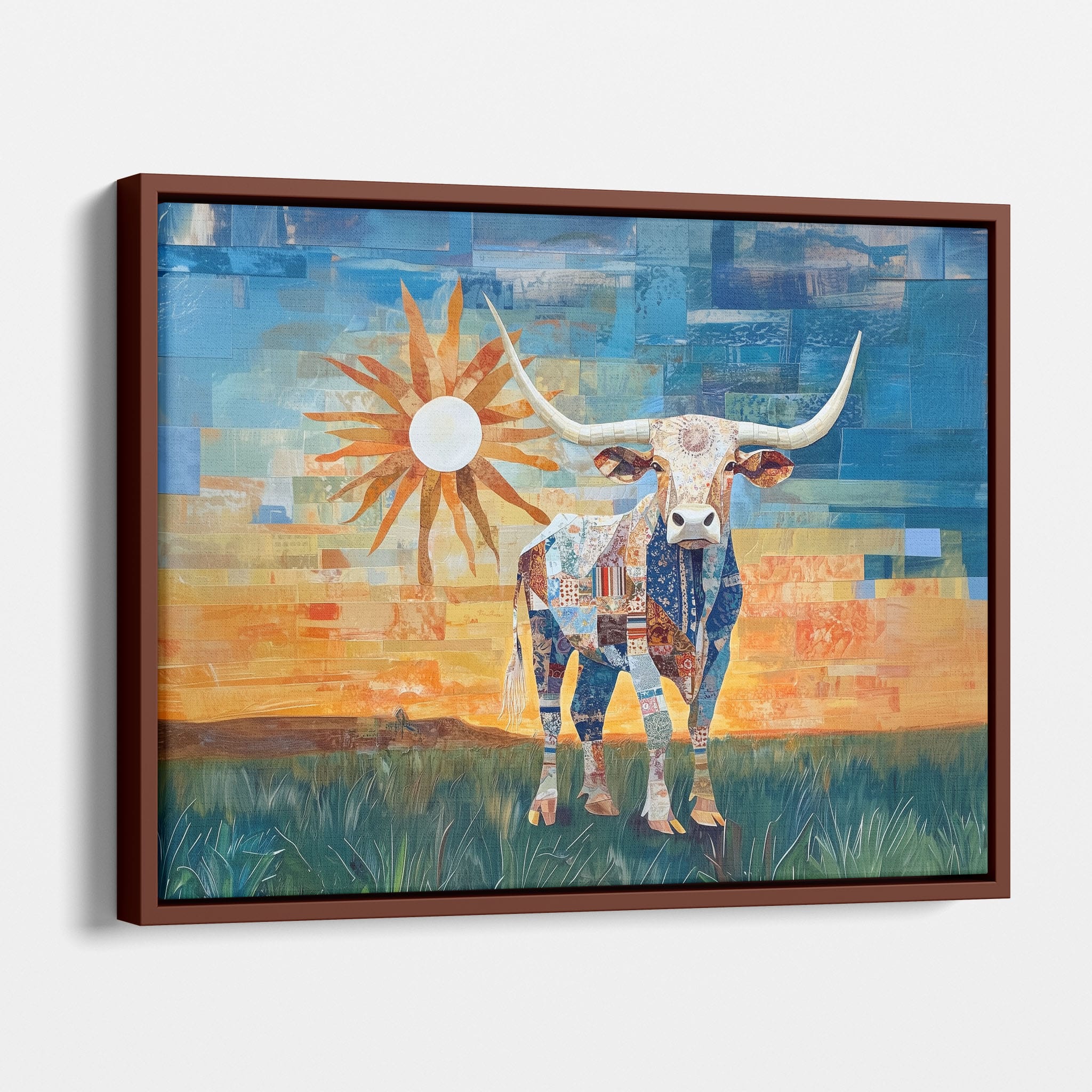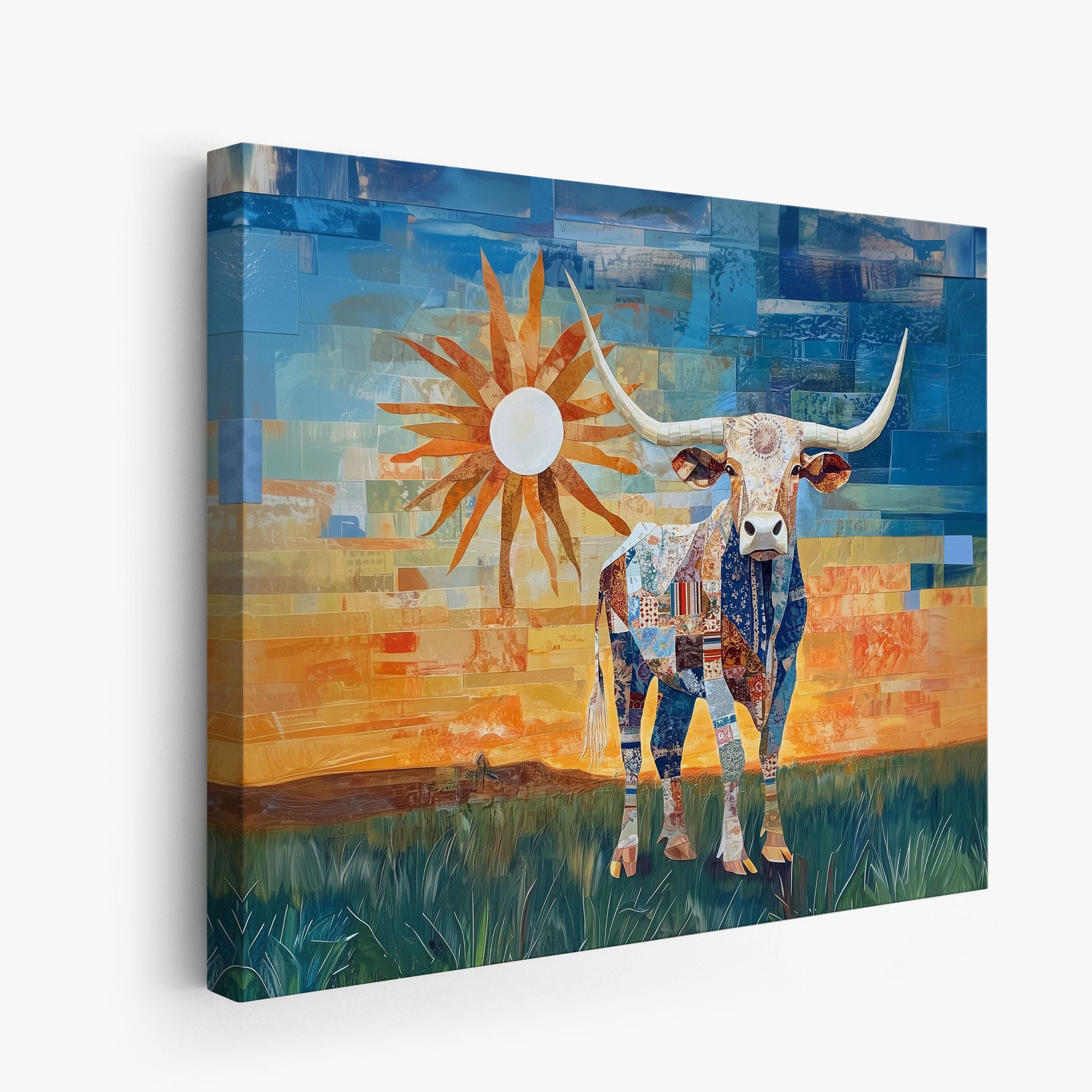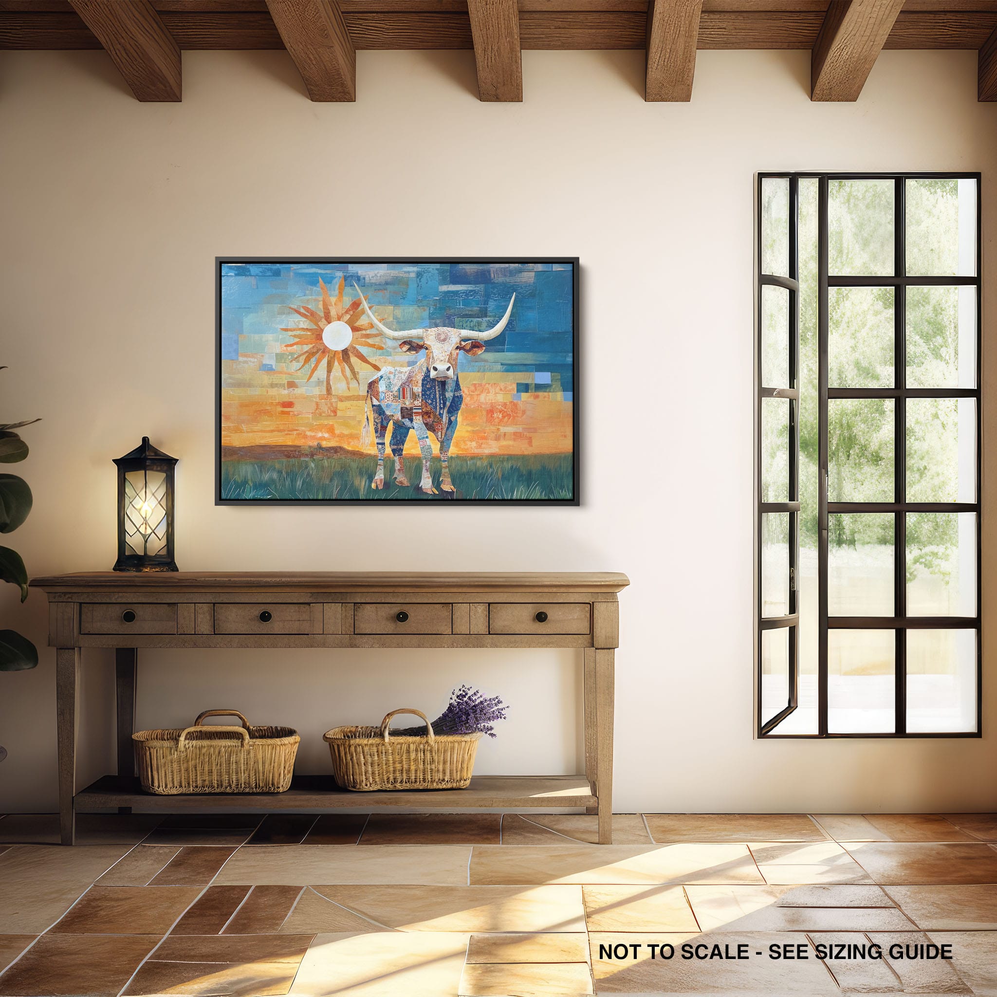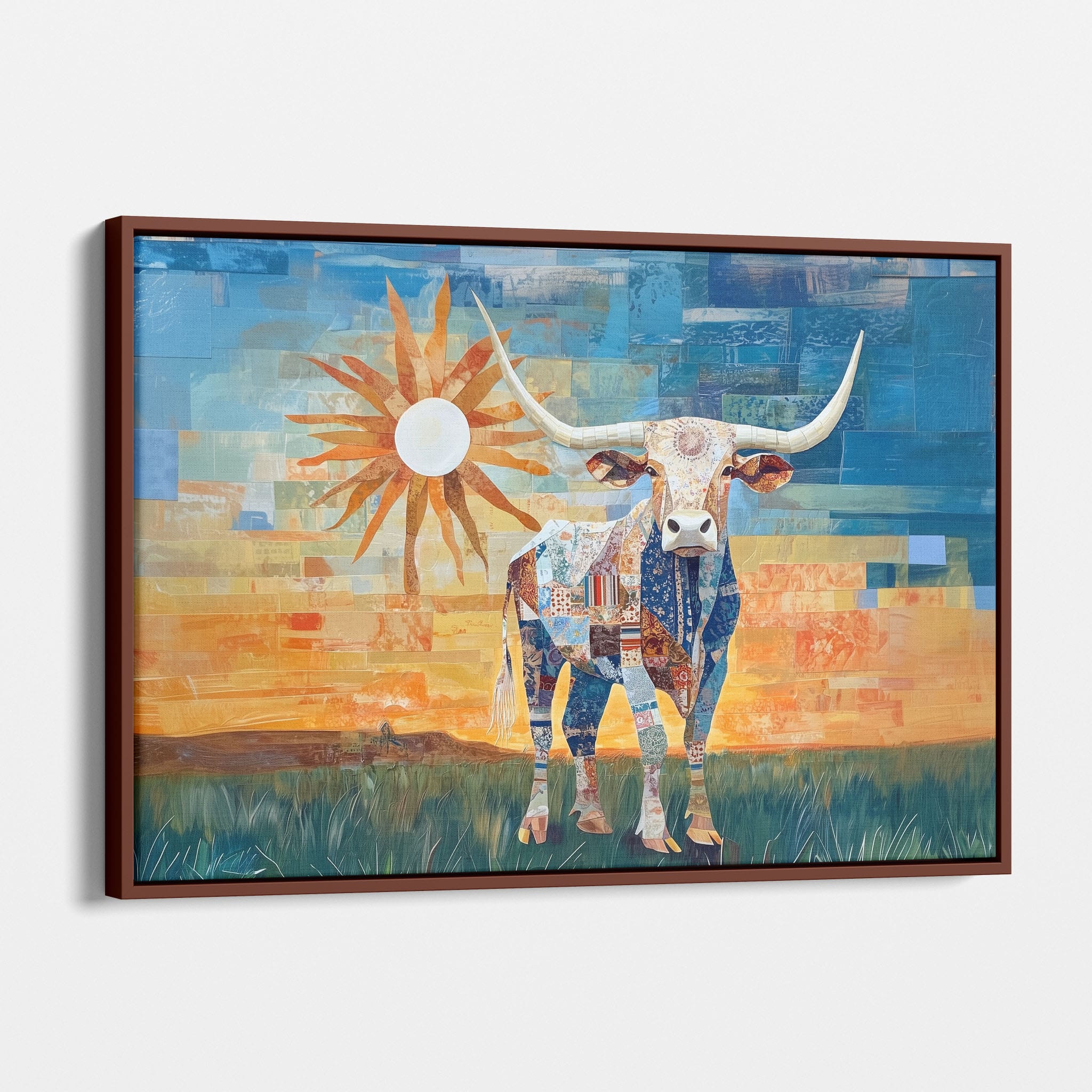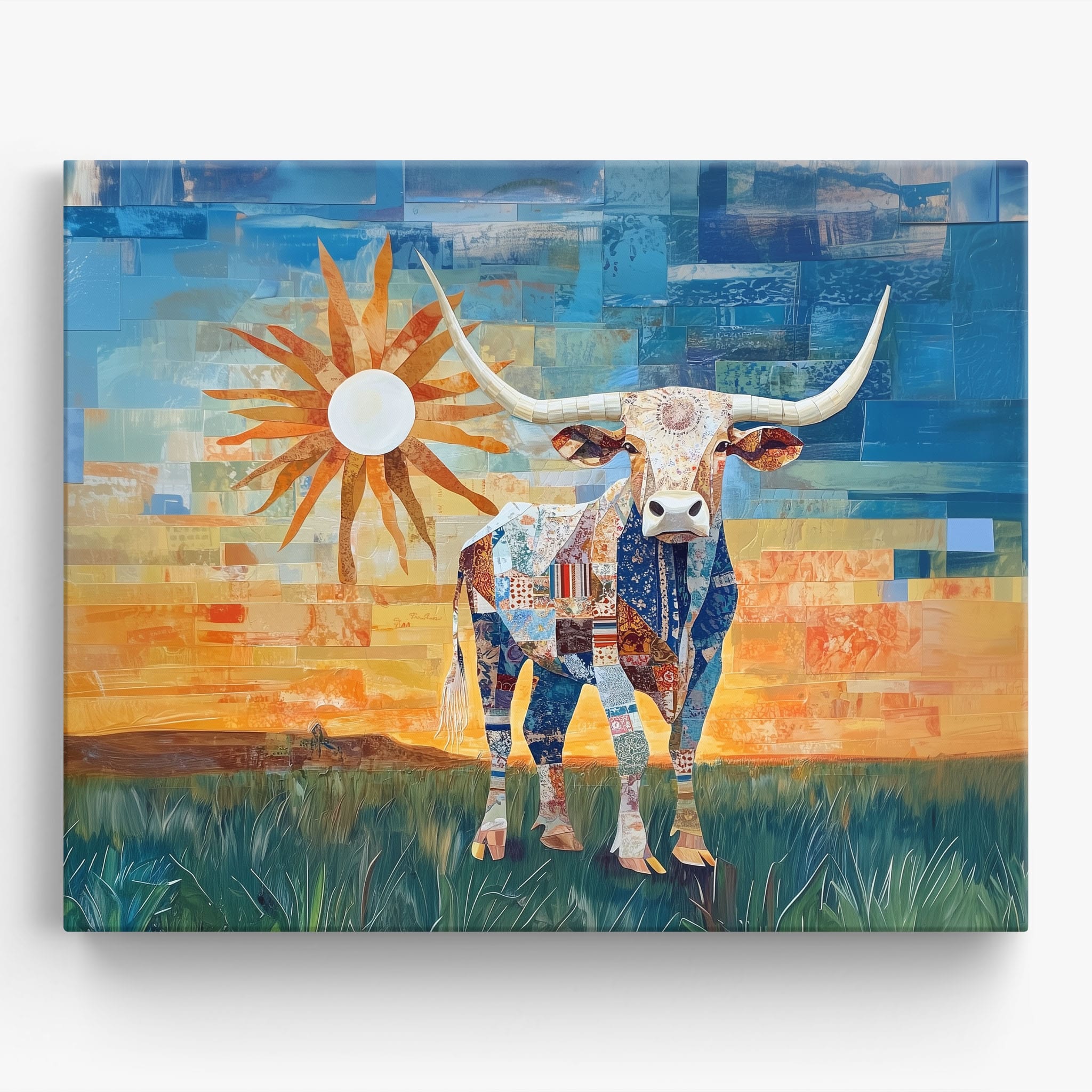 Infuse your space with the vibrant soul of the American Southwest. Southwestern Sunset Tapestry is a masterful textile illustration capturing a majestic longhorn basking under a radiant, mosaic sun. Each piece brings together intricate patterns and rich hues, creating a colorful tapestry that symbolizes resilience and freedom. The blend of mosaic artistry and southwestern elements makes it a perfect focal point for any room, exuding warmth and regional charm. Ideal for art enthusiasts seeking to enrich their decor with a touch of cultural heritage and artistry. Embrace the spirit of the West with this stunning conversation piece.
