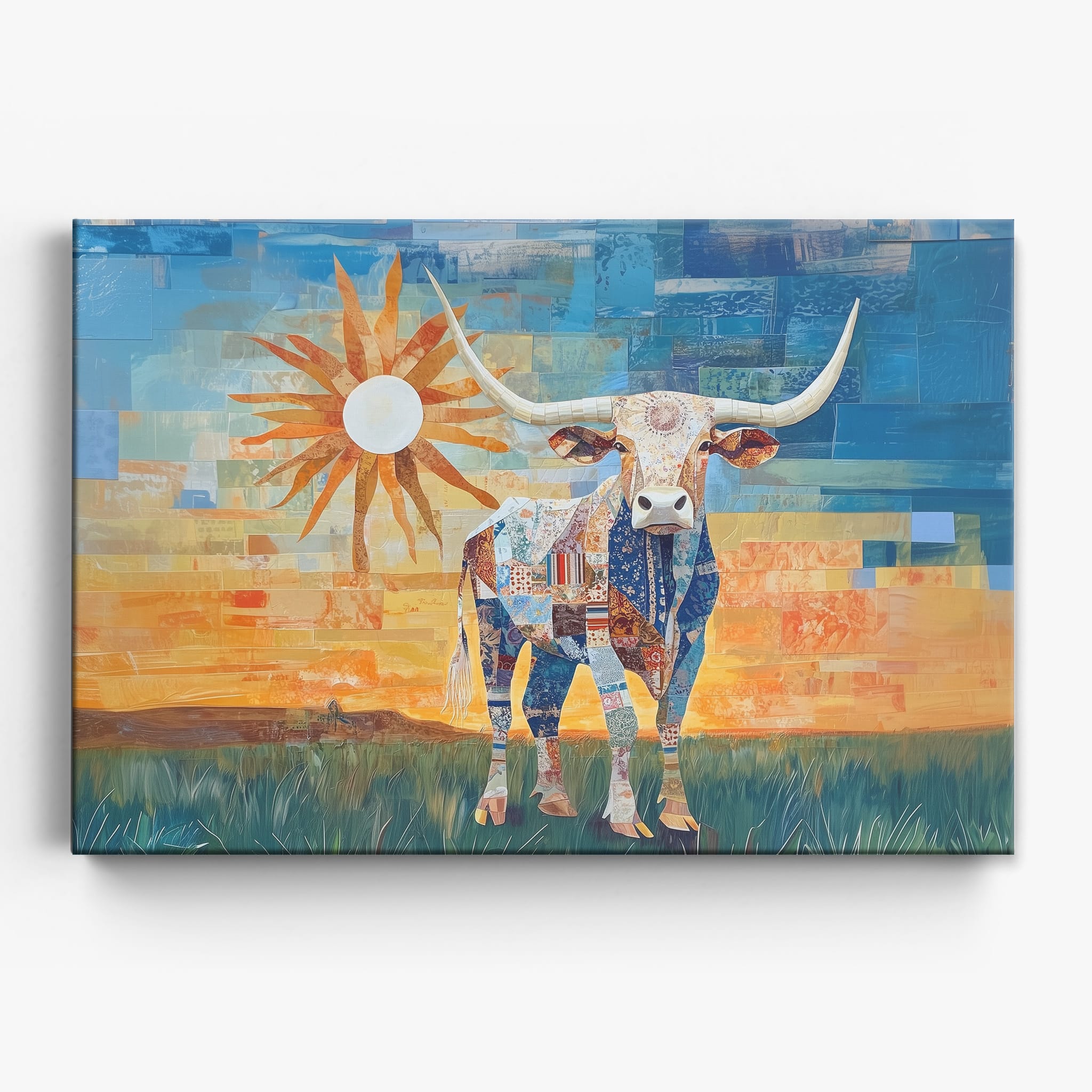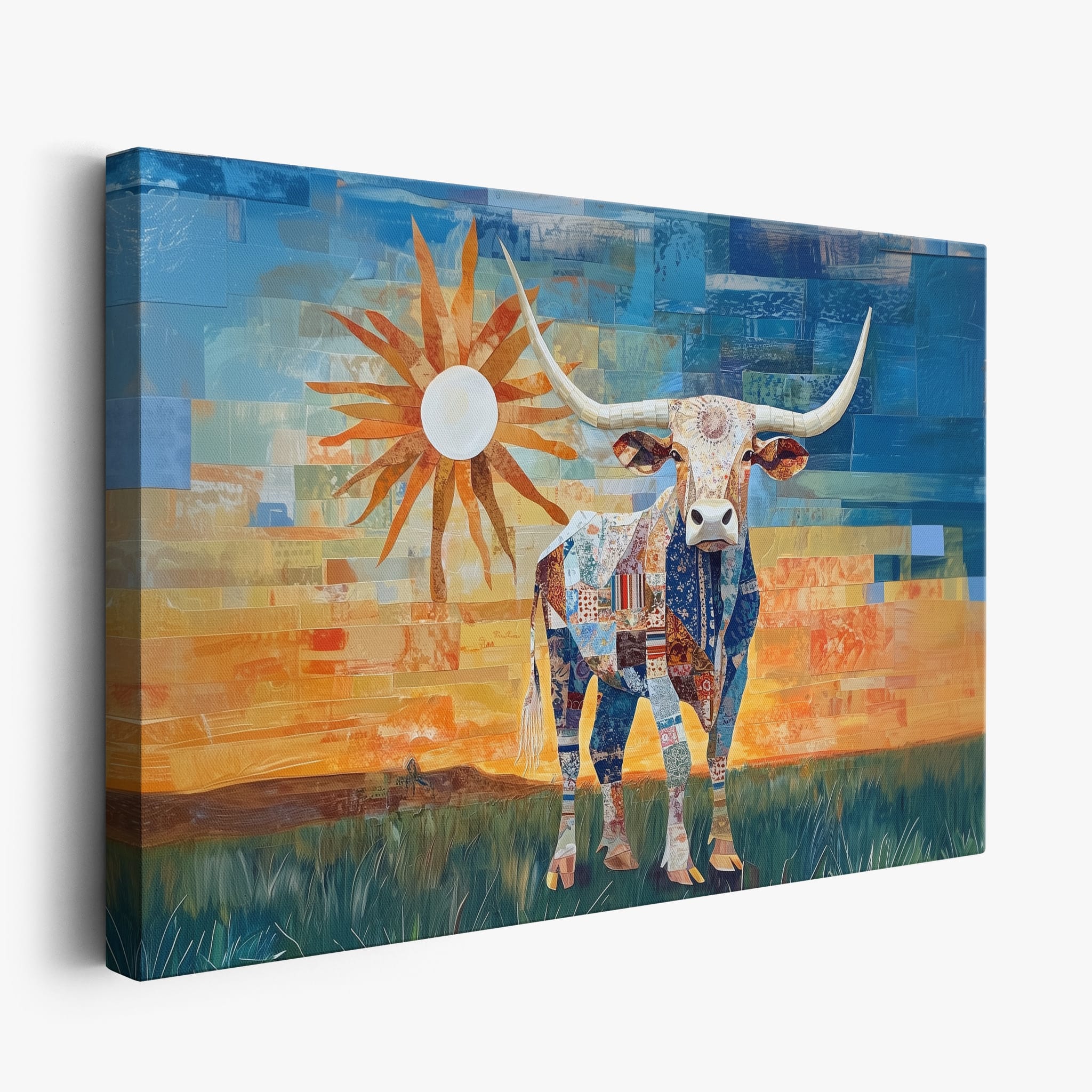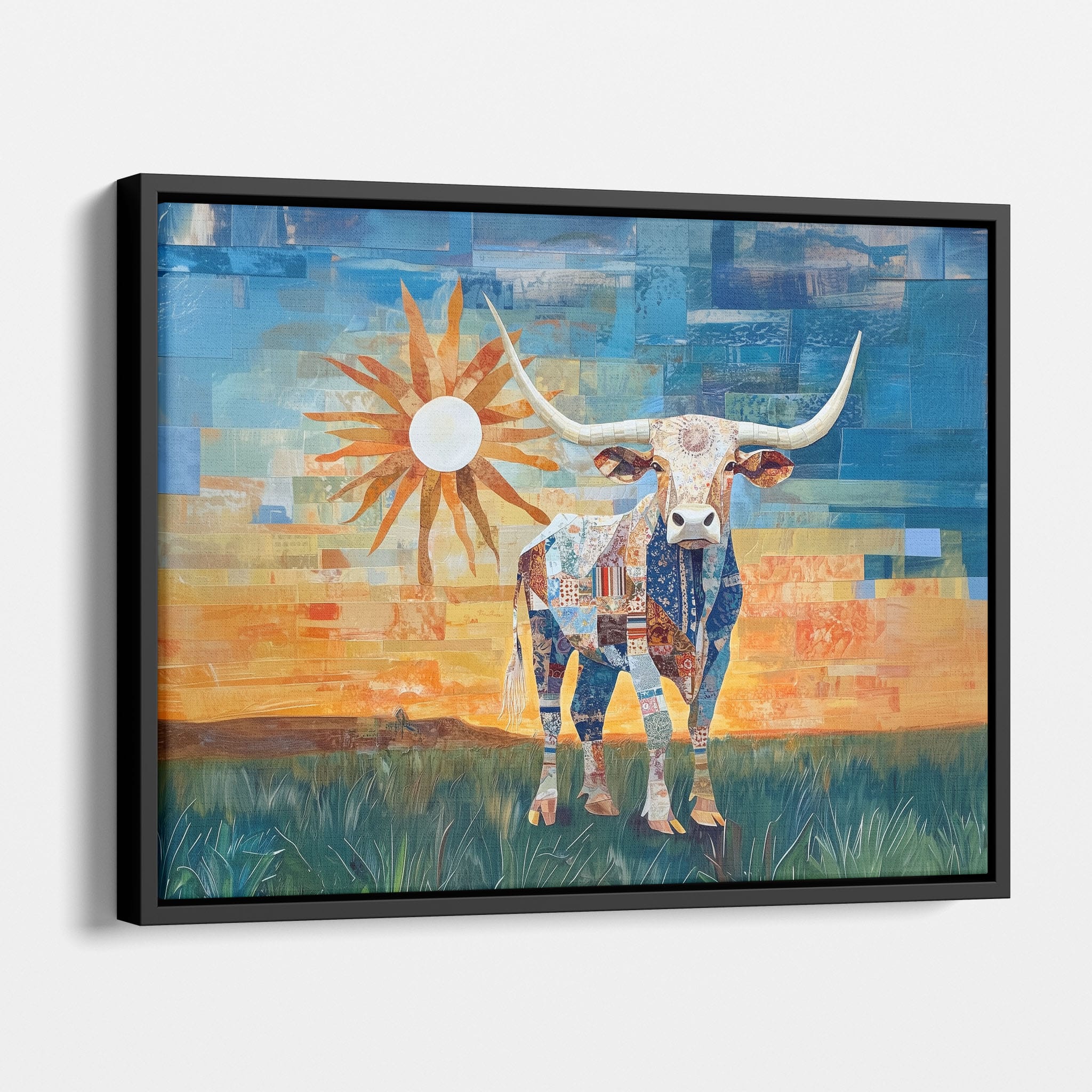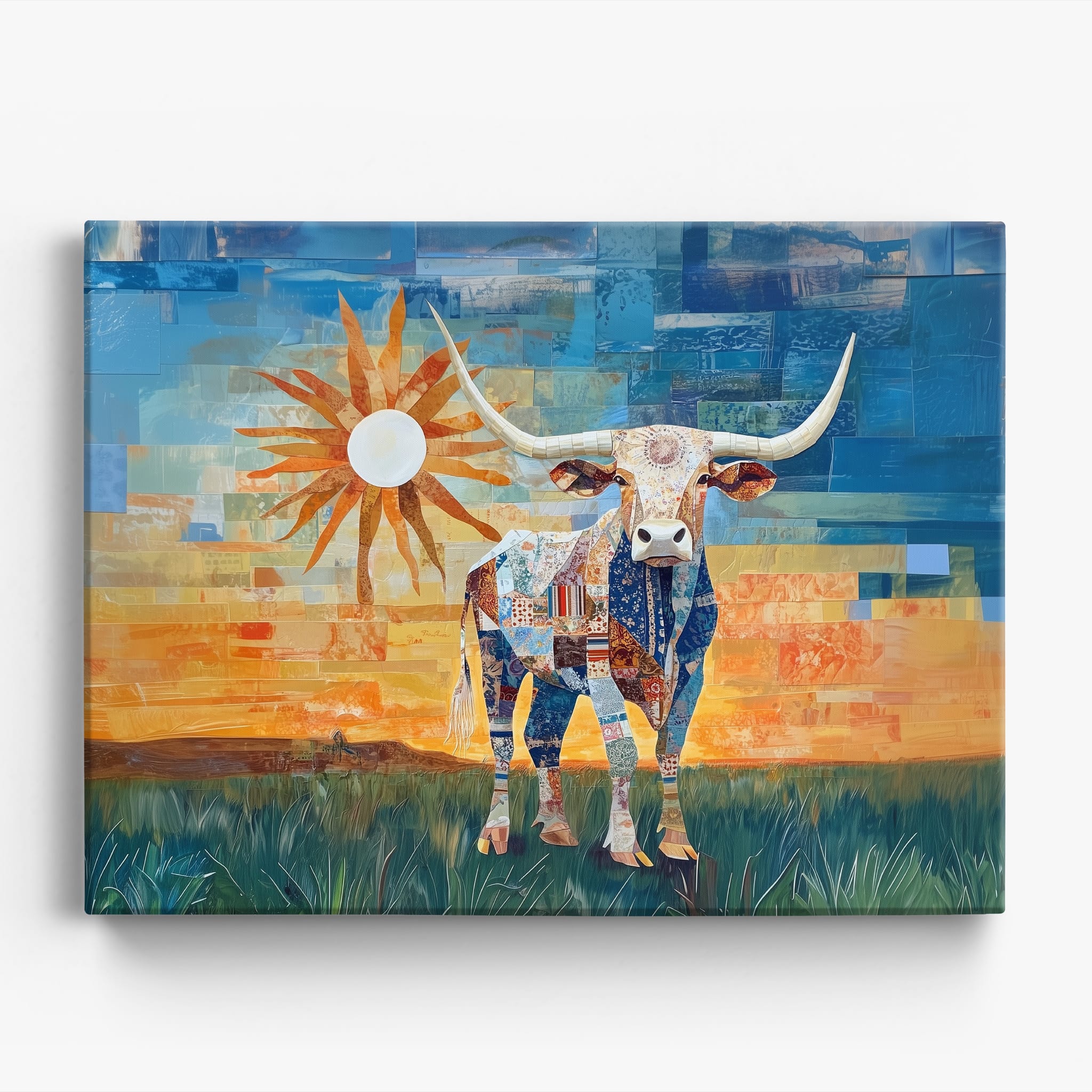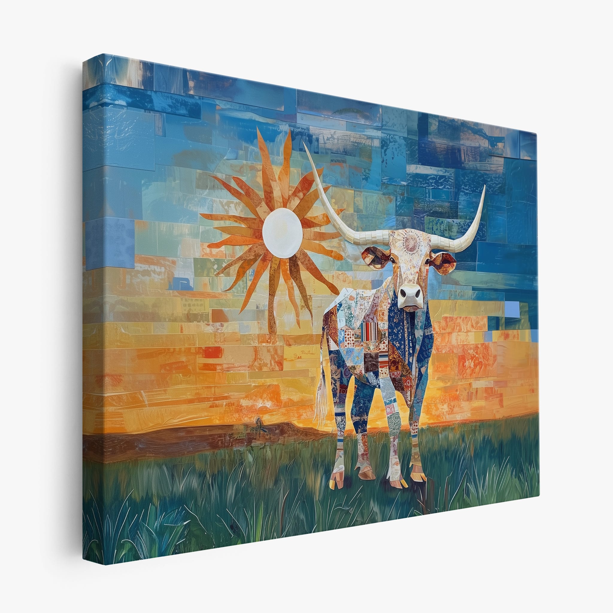 Infuse your space with the vibrant soul of the American Southwest. Southwestern Sunset Tapestry is a masterful textile illustration capturing a majestic longhorn basking under a radiant, mosaic sun. Each piece brings together intricate patterns and rich hues, creating a colorful tapestry that symbolizes resilience and freedom. The blend of mosaic artistry and southwestern elements makes it a perfect focal point for any room, exuding warmth and regional charm. Ideal for art enthusiasts seeking to enrich their decor with a touch of cultural heritage and artistry. Embrace the spirit of the West with this stunning conversation piece.