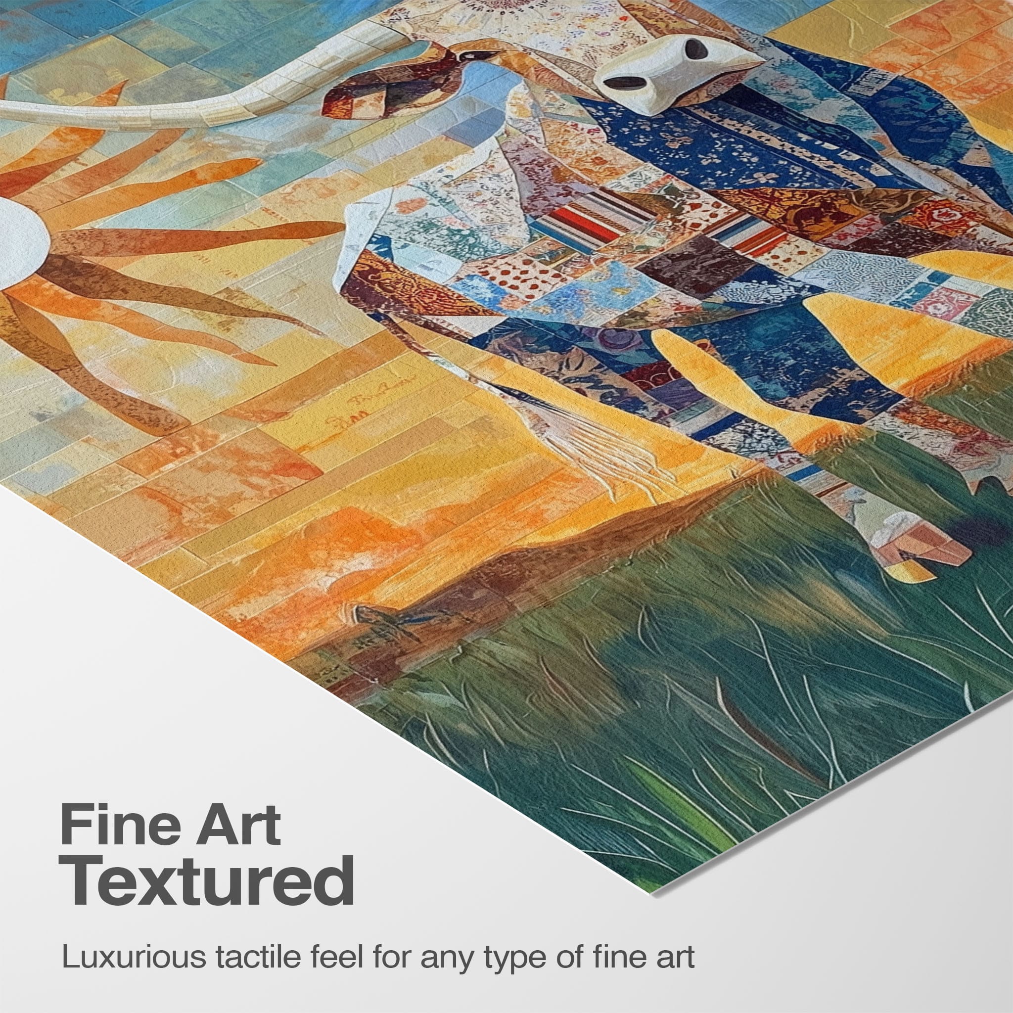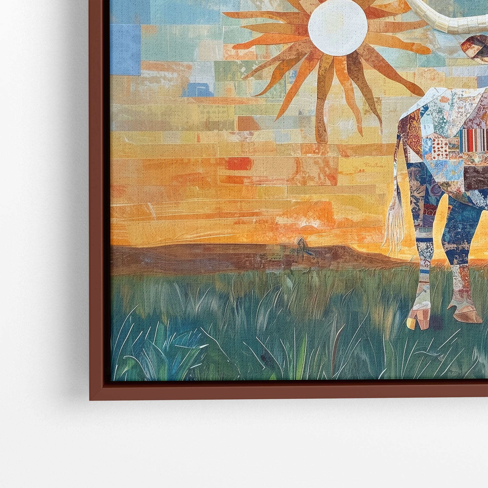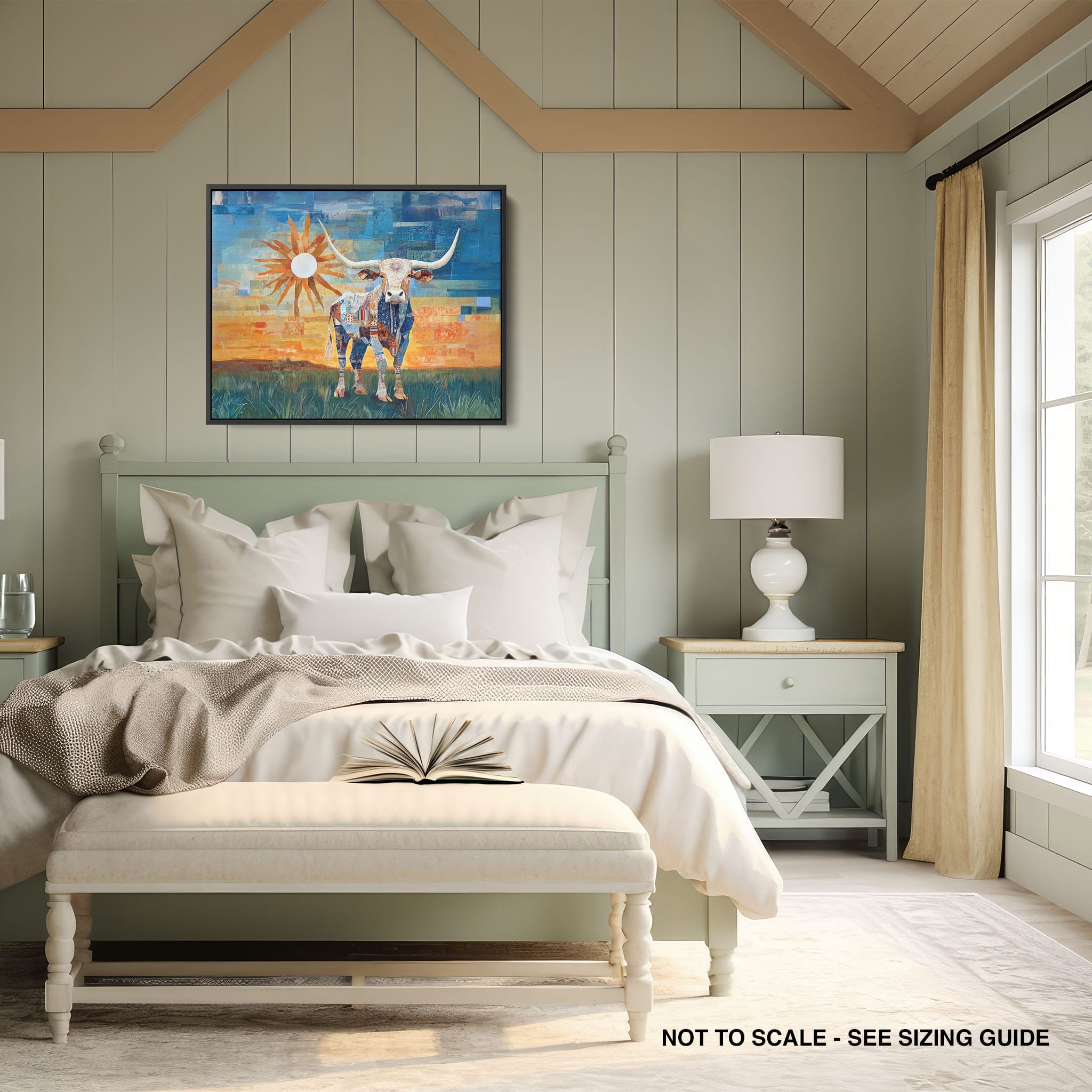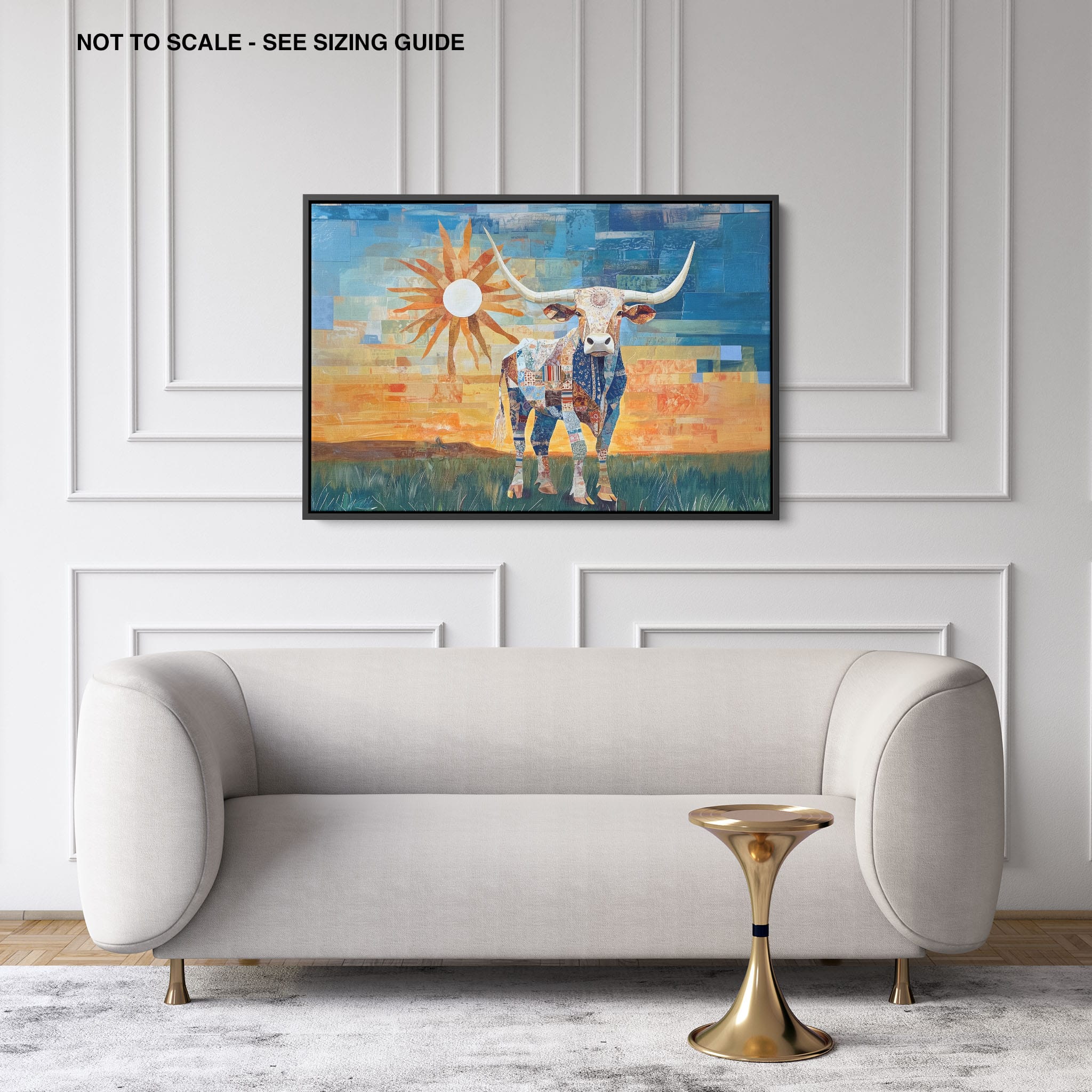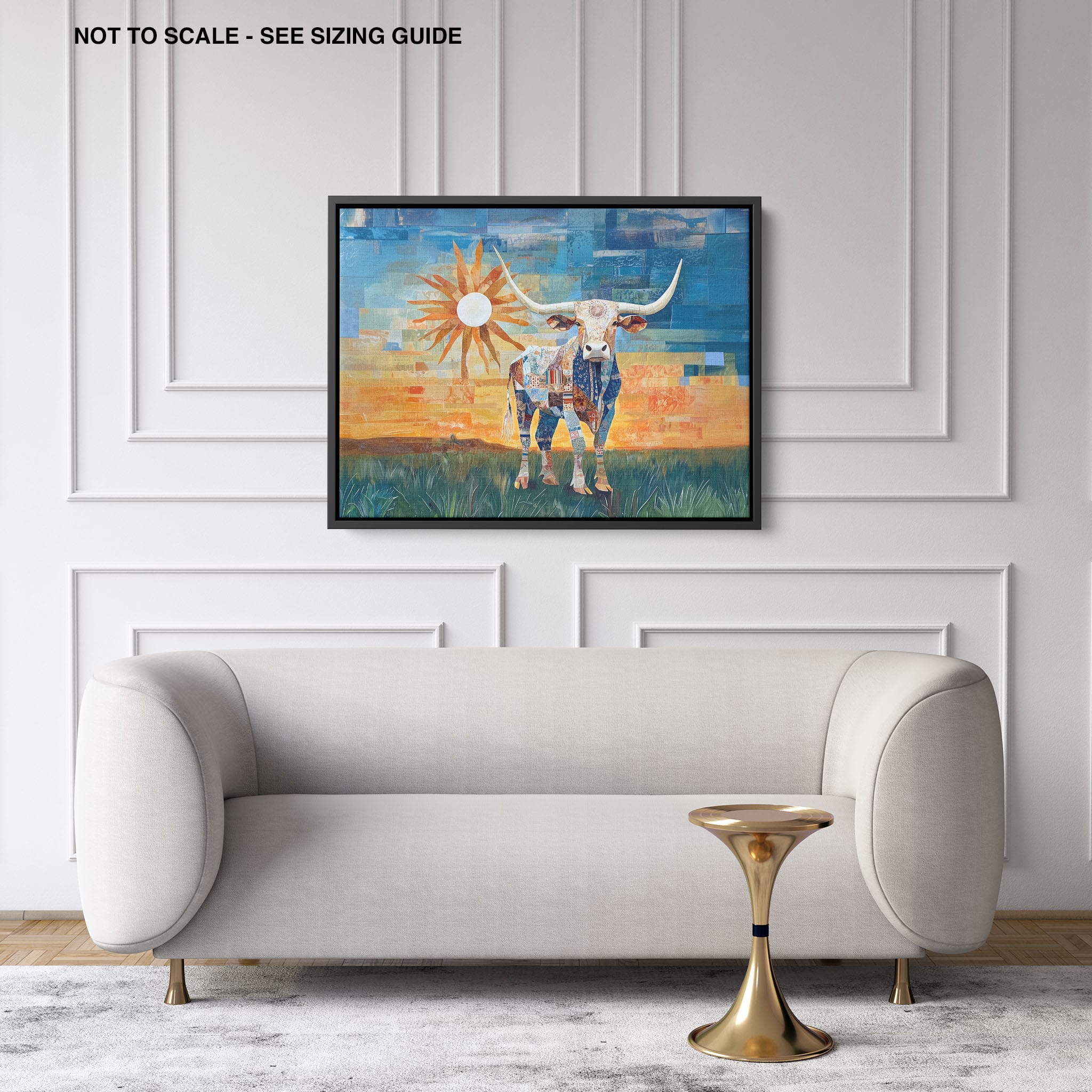Infuse your space with the vibrant soul of the American Southwest. Southwestern Sunset Tapestry is a masterful textile illustration capturing a majestic longhorn basking under a radiant, mosaic sun. Each piece brings together intricate patterns and rich hues, creating a colorful tapestry that symbolizes resilience and freedom. The blend of mosaic artistry and southwestern elements makes it a perfect focal point for any room, exuding warmth and regional charm. Ideal for art enthusiasts seeking to enrich their decor with a touch of cultural heritage and artistry. Embrace the spirit of the West with this stunning conversation piece.