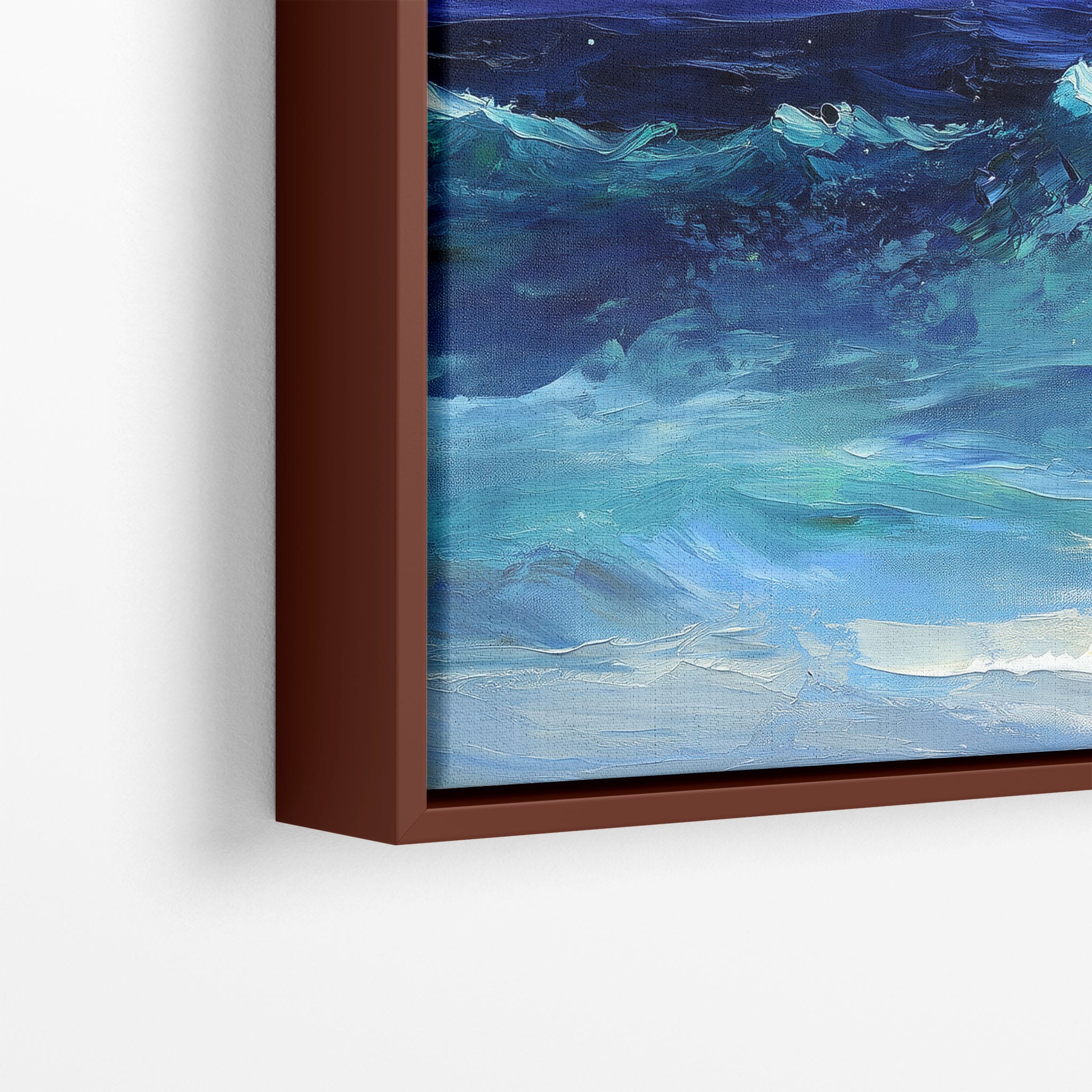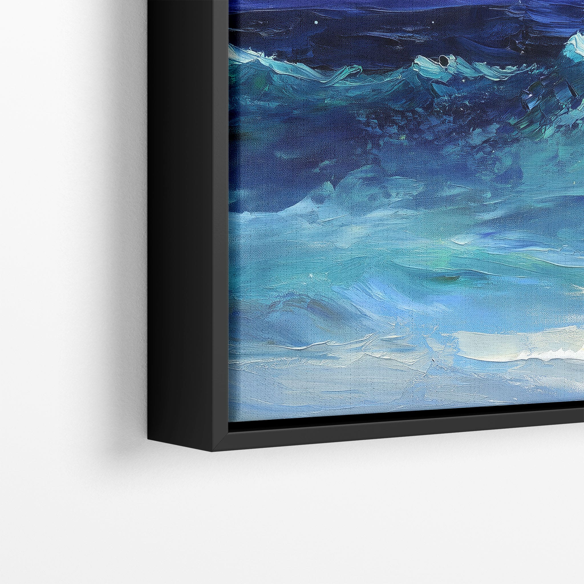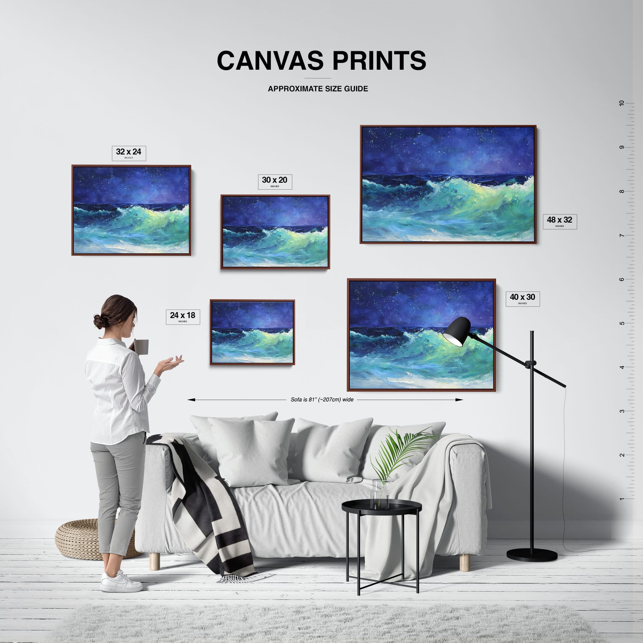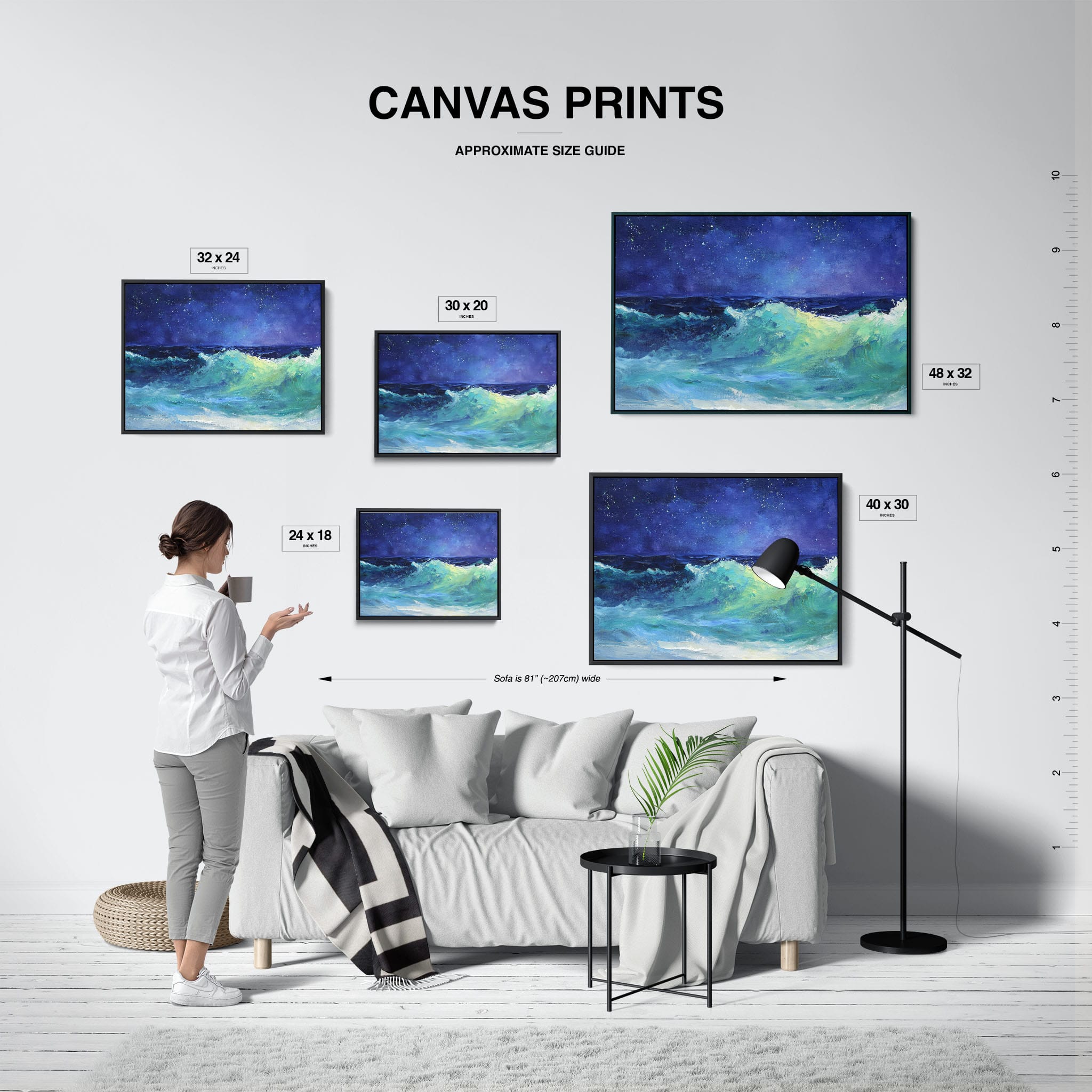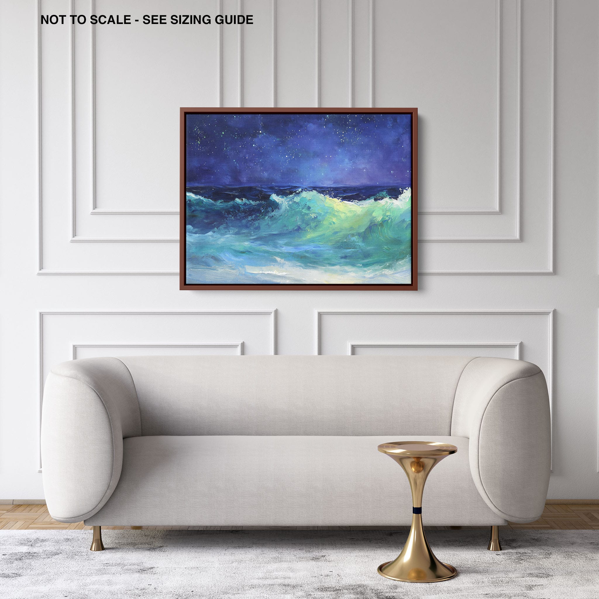 Marvel at Starlit Midnight Ocean Waves, a dynamic expressionist painting that captures the tumultuous beauty of the ocean under a star-filled sky. The rich blues and luminous greens blend dramatically, crafting waves that seem to crash beyond the canvas. The surreal touch of twinkling stars adds a magical quality, making this art piece a majestic view for any space. A blend of impressionism techniques brings the scene to life with bold strokes and vivid colors. Perfect for those looking to add a piece of the ocean's mystery to their home or office.