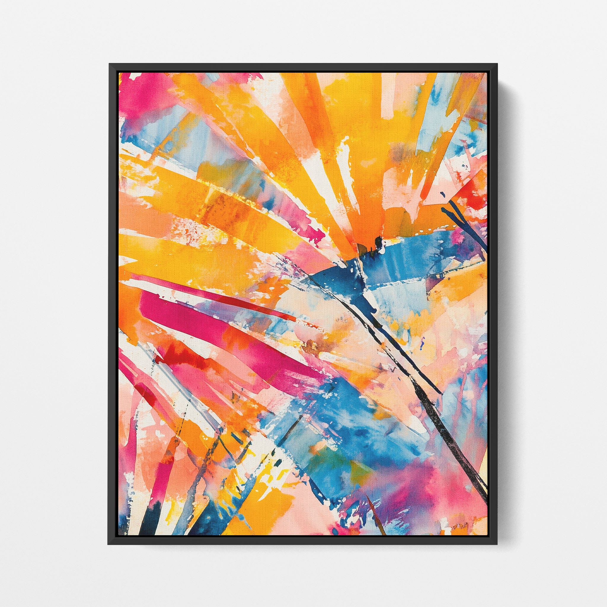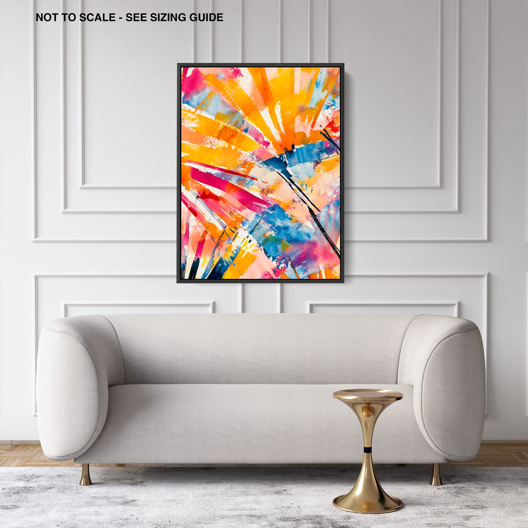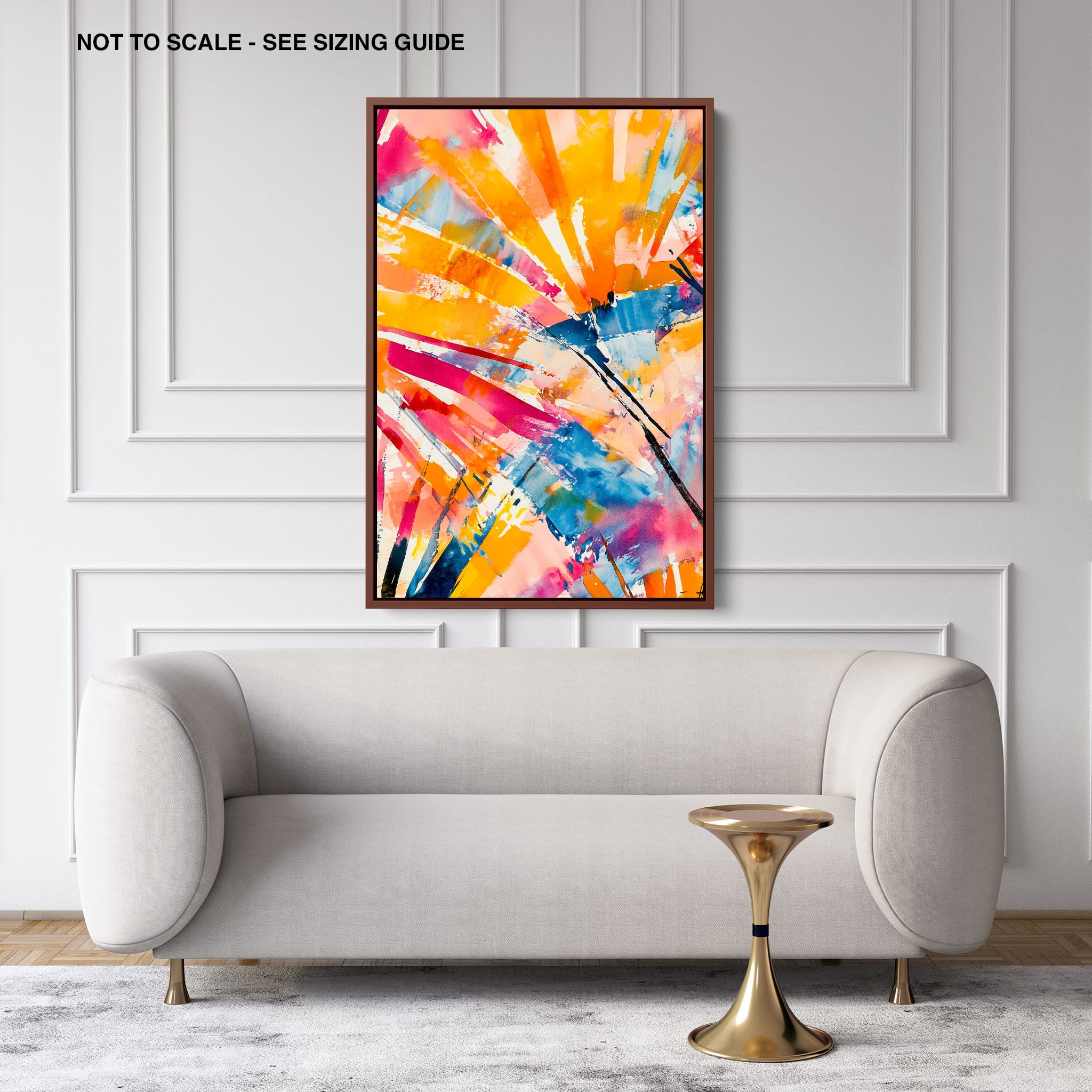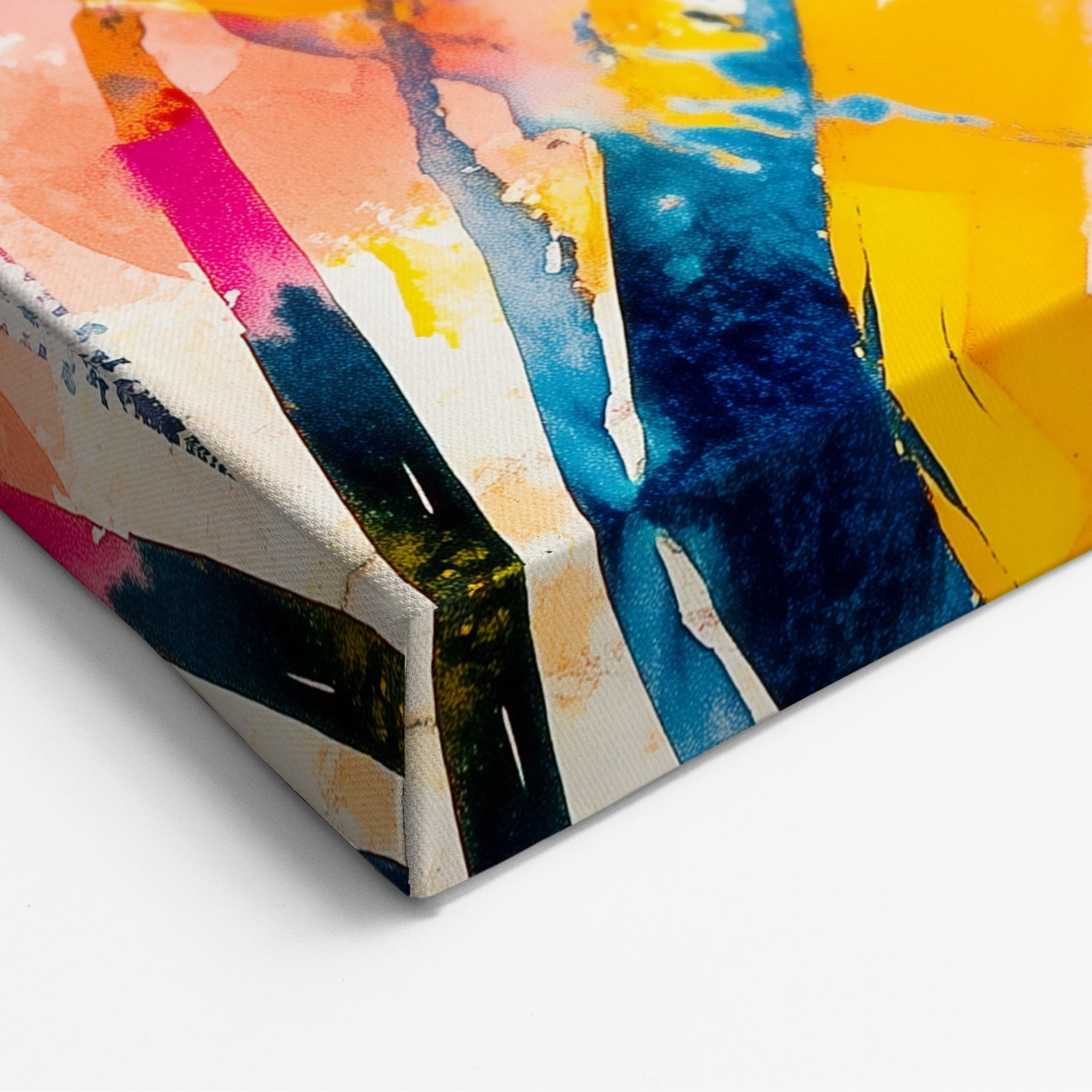 This vivid watercolor piece captures the explosive energy of a sunburst through abstract forms and lively, expressive color transitions. The blending of orange, pink, blue, and yellow hues, along with spontaneous drip effects, provide a dynamic visual experience that simulates the sensory overload of witnessing a sunrise. Apt for both modern interior spaces and collections accentuating vibrant abstracts, this artwork brings a piece of the sky's transcendent beauty indoors. Ideal for anyone looking to invigorate their environment with a splash of color and abstraction.