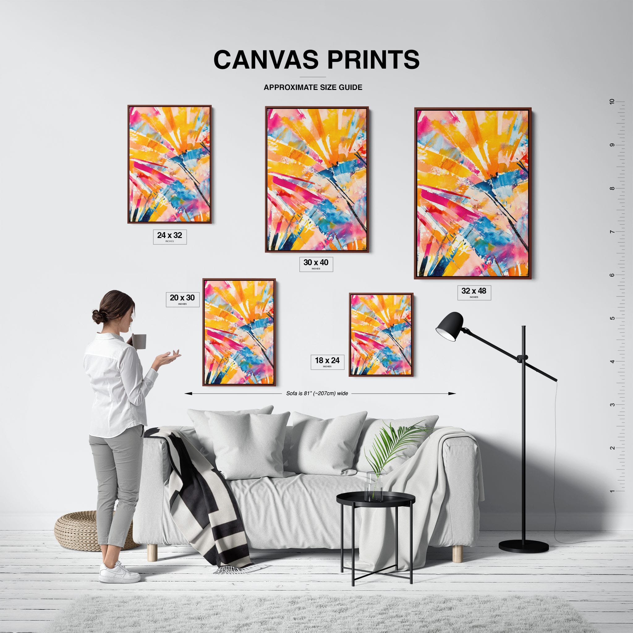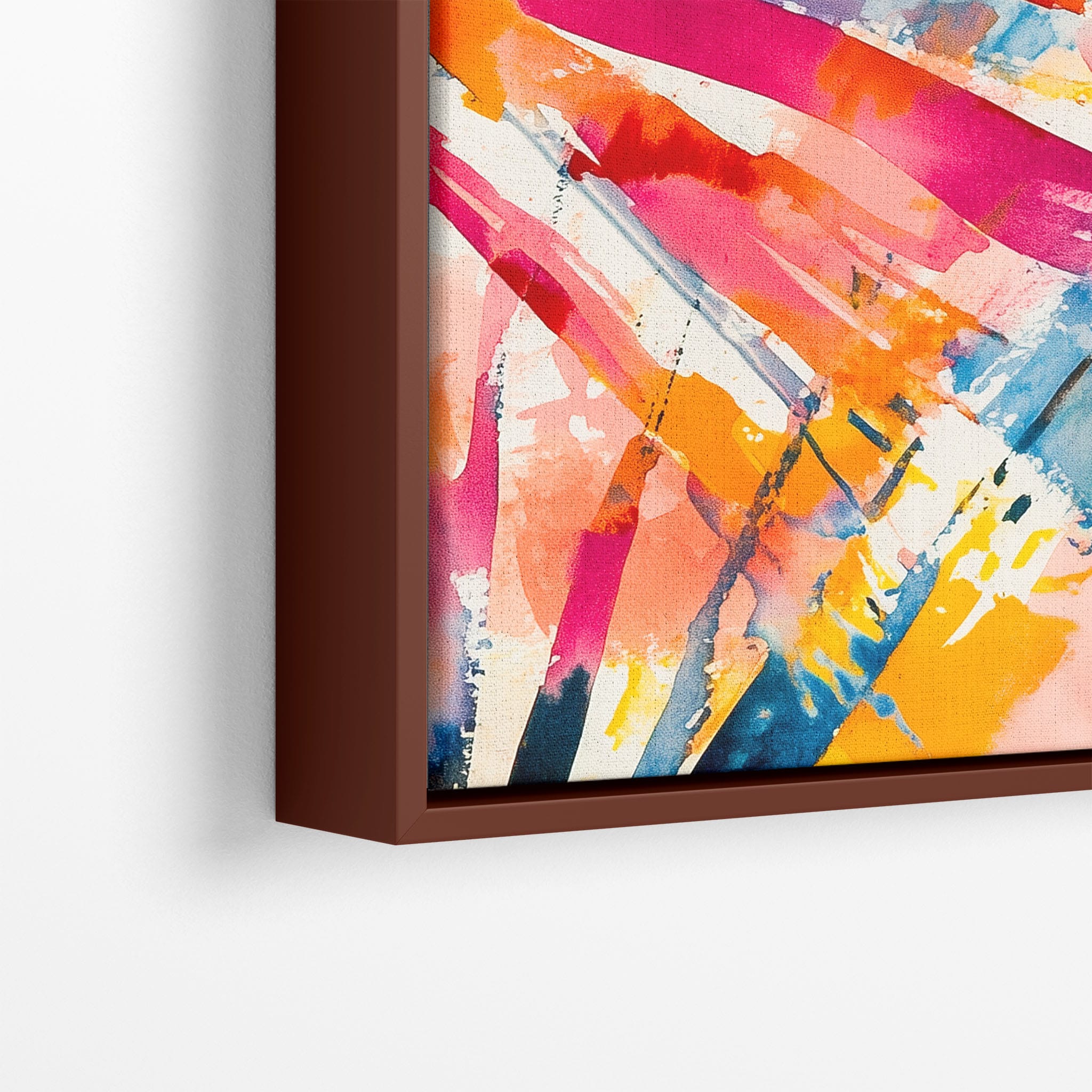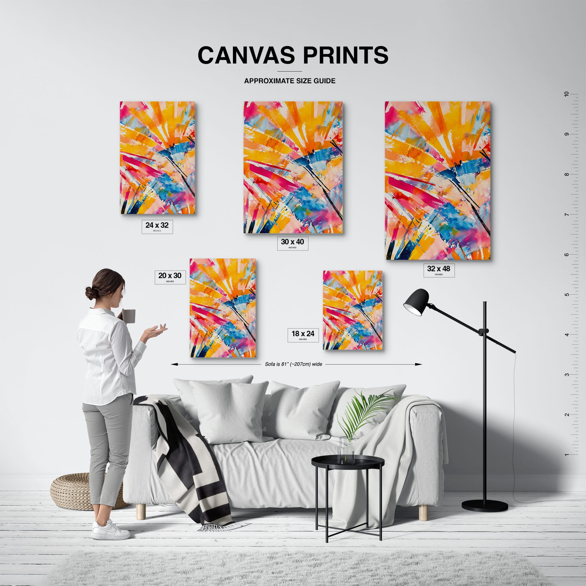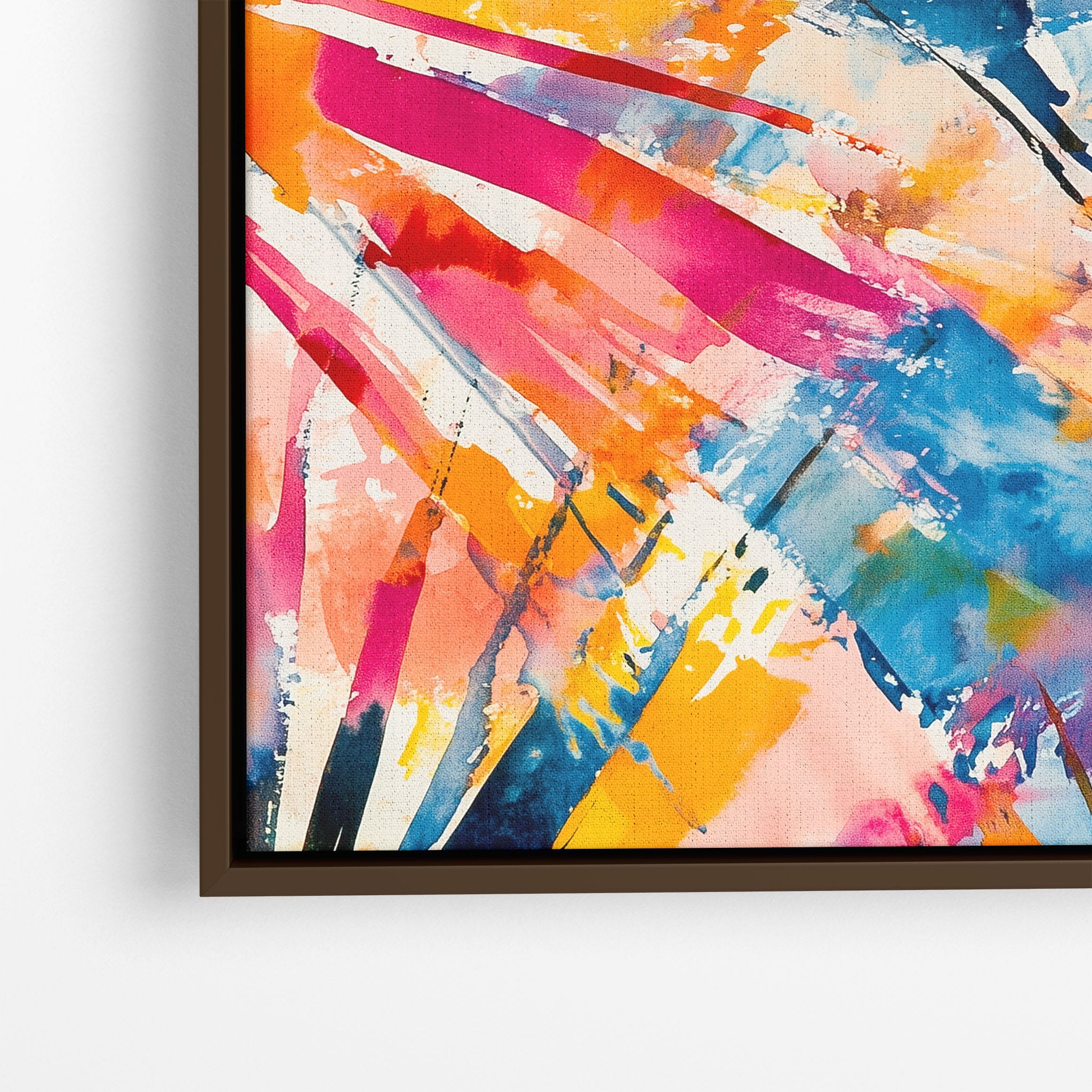 This vivid watercolor piece captures the explosive energy of a sunburst through abstract forms and lively, expressive color transitions. The blending of orange, pink, blue, and yellow hues, along with spontaneous drip effects, provide a dynamic visual experience that simulates the sensory overload of witnessing a sunrise. Apt for both modern interior spaces and collections accentuating vibrant abstracts, this artwork brings a piece of the sky's transcendent beauty indoors. Ideal for anyone looking to invigorate their environment with a splash of color and abstraction.
