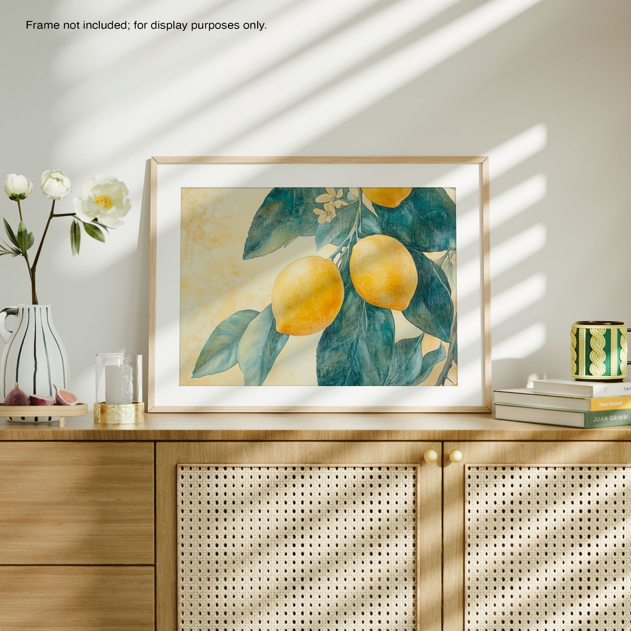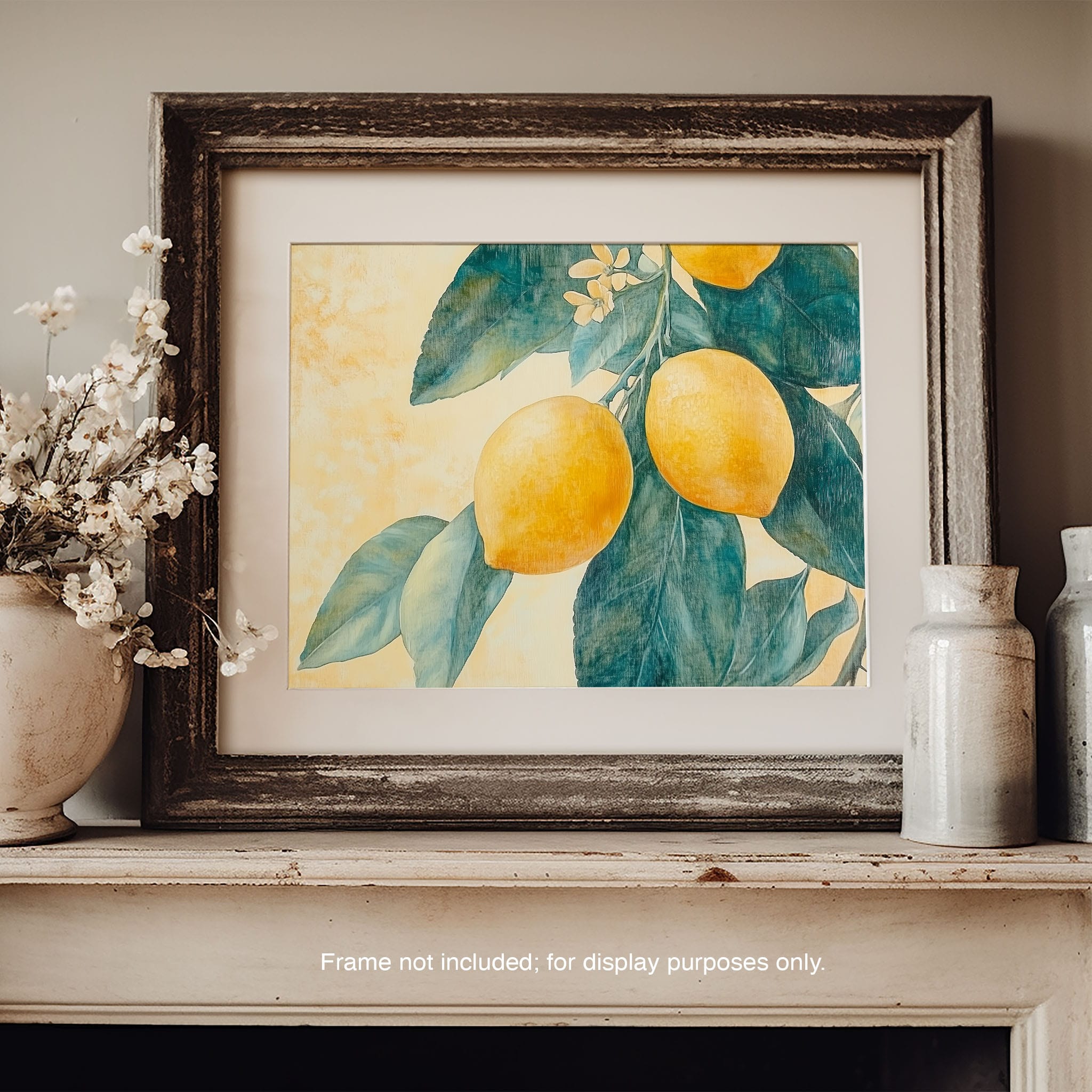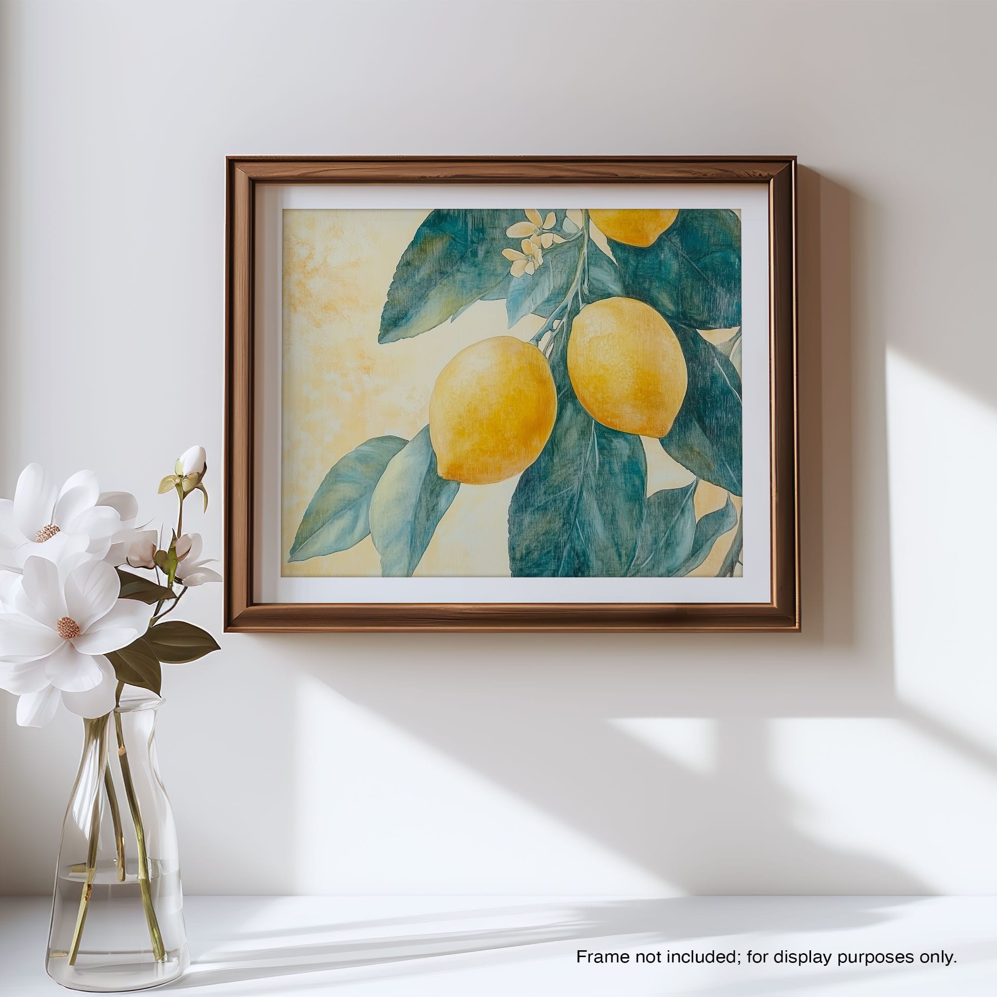 This delicate watercolor captures the vibrant essence of ripened lemons nestled among lush, green leaves, drenched in natural sunlight. The gentle brush strokes and translucent hues evoke a sense of freshness and tranquility, ideal for bringing a touch of serene nature into any living space. Perfect for lovers of botanical art and those keen on adding a splash of subtle color and organic beauty to their home decor. Add this graceful piece to your art collection and enjoy the timeless charm of hand-painted fruits and foliage.