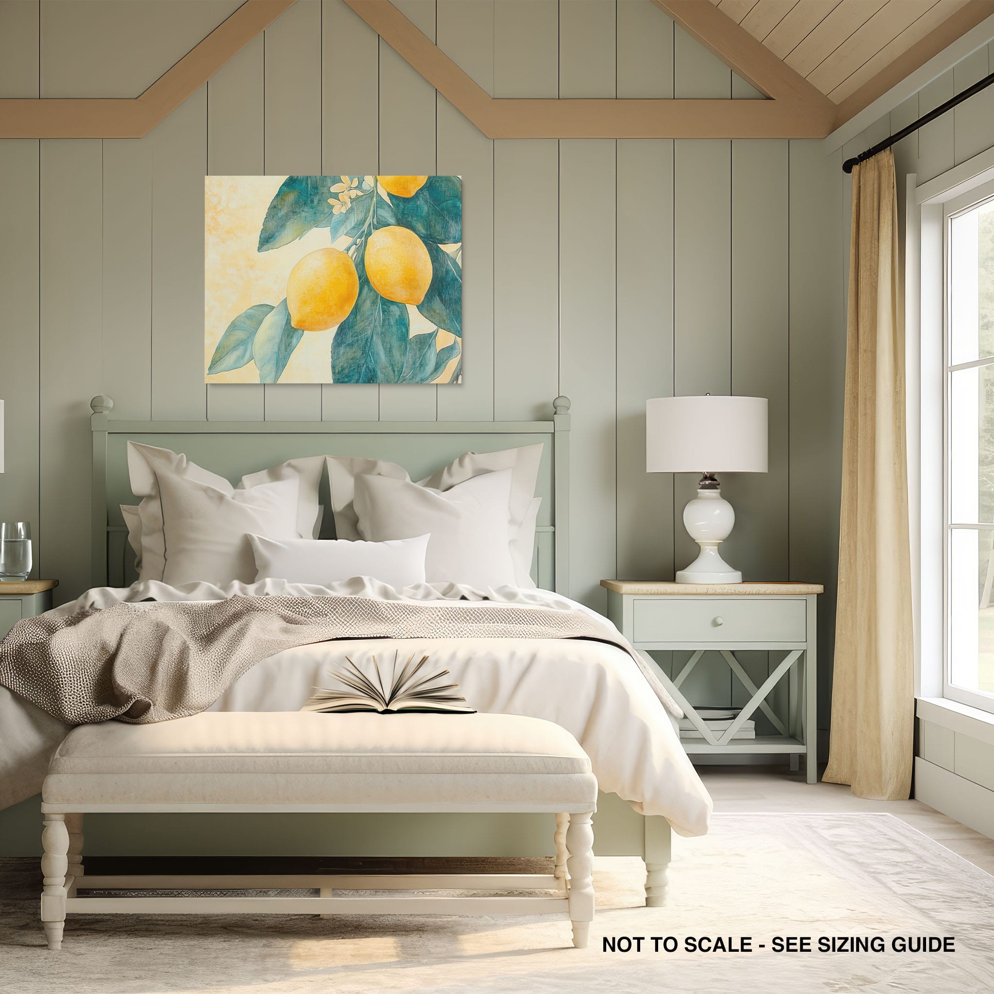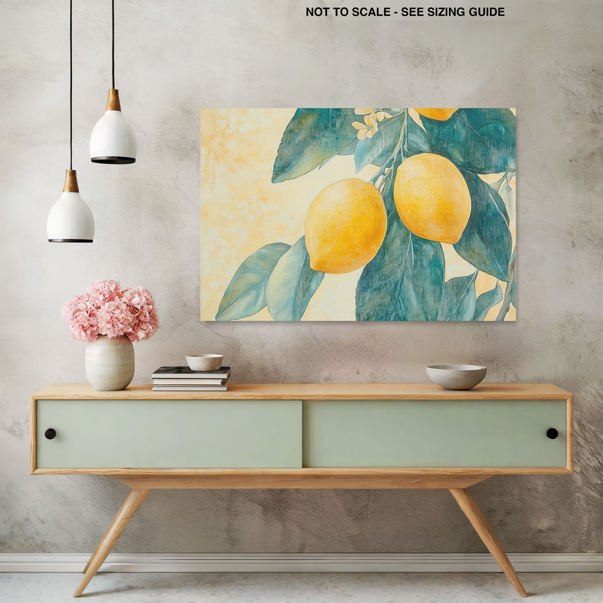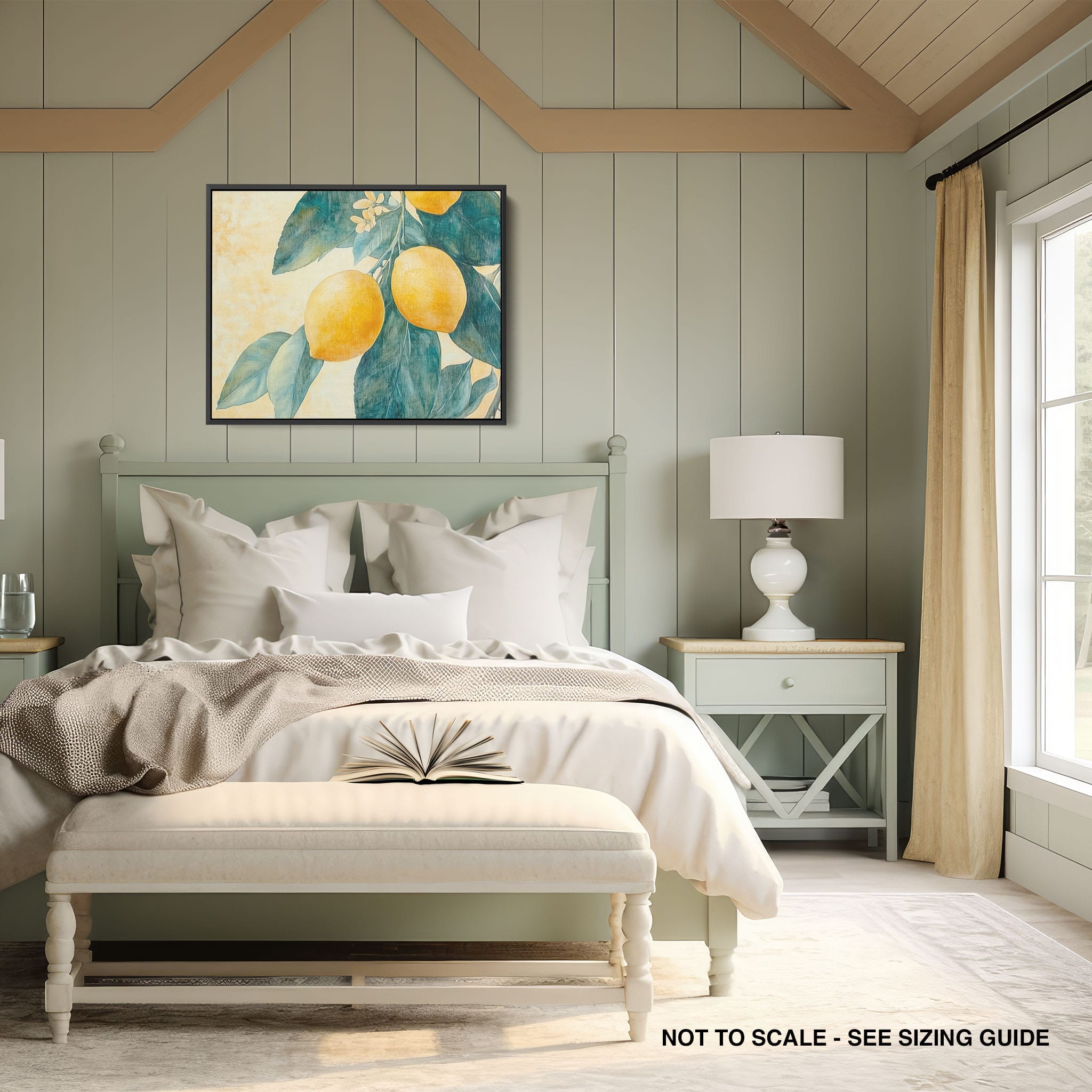 This delicate watercolor captures the vibrant essence of ripened lemons nestled among lush, green leaves, drenched in natural sunlight. The gentle brush strokes and translucent hues evoke a sense of freshness and tranquility, ideal for bringing a touch of serene nature into any living space. Perfect for lovers of botanical art and those keen on adding a splash of subtle color and organic beauty to their home decor. Add this graceful piece to your art collection and enjoy the timeless charm of hand-painted fruits and foliage.