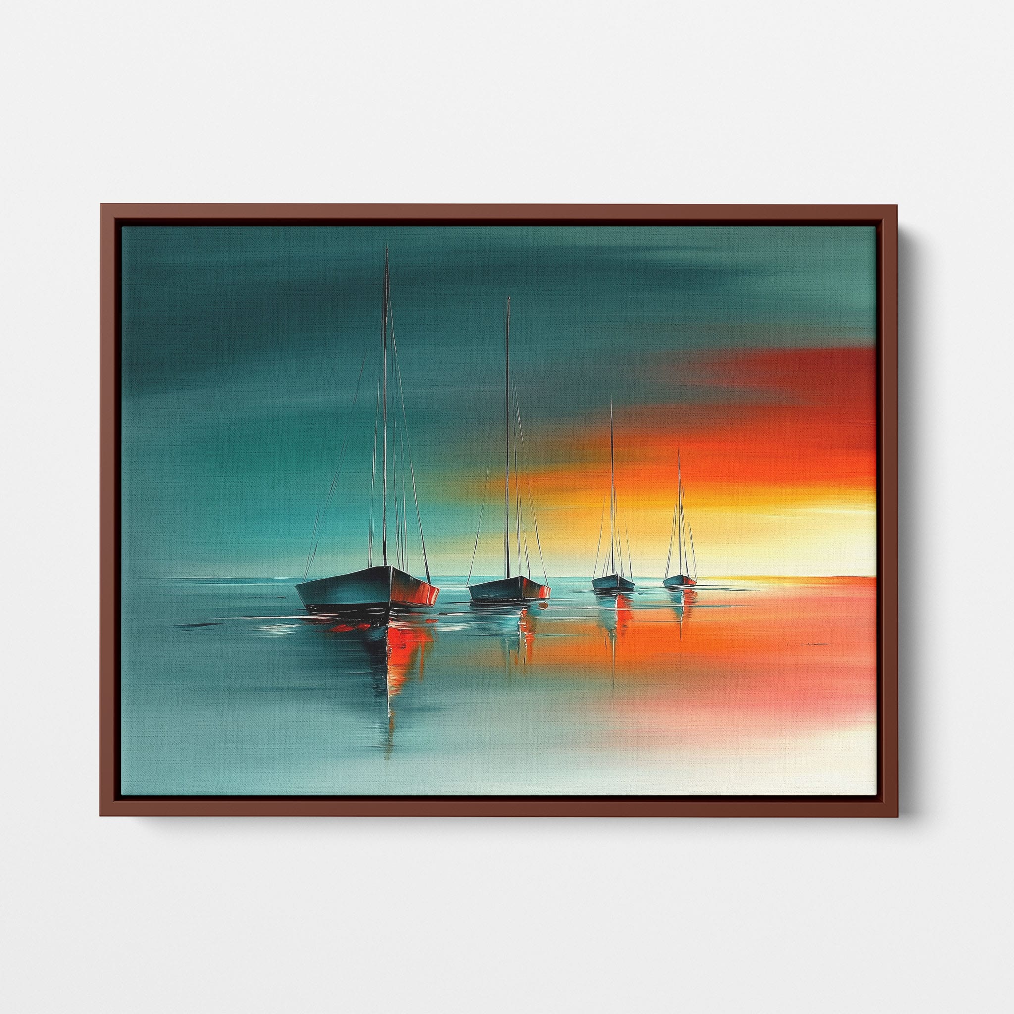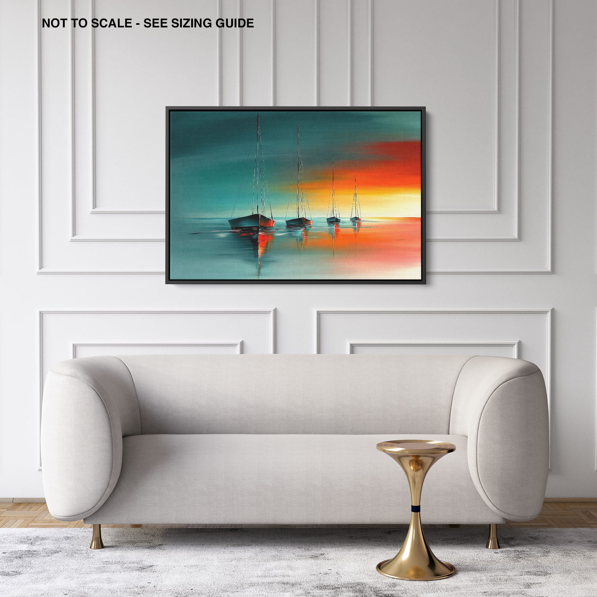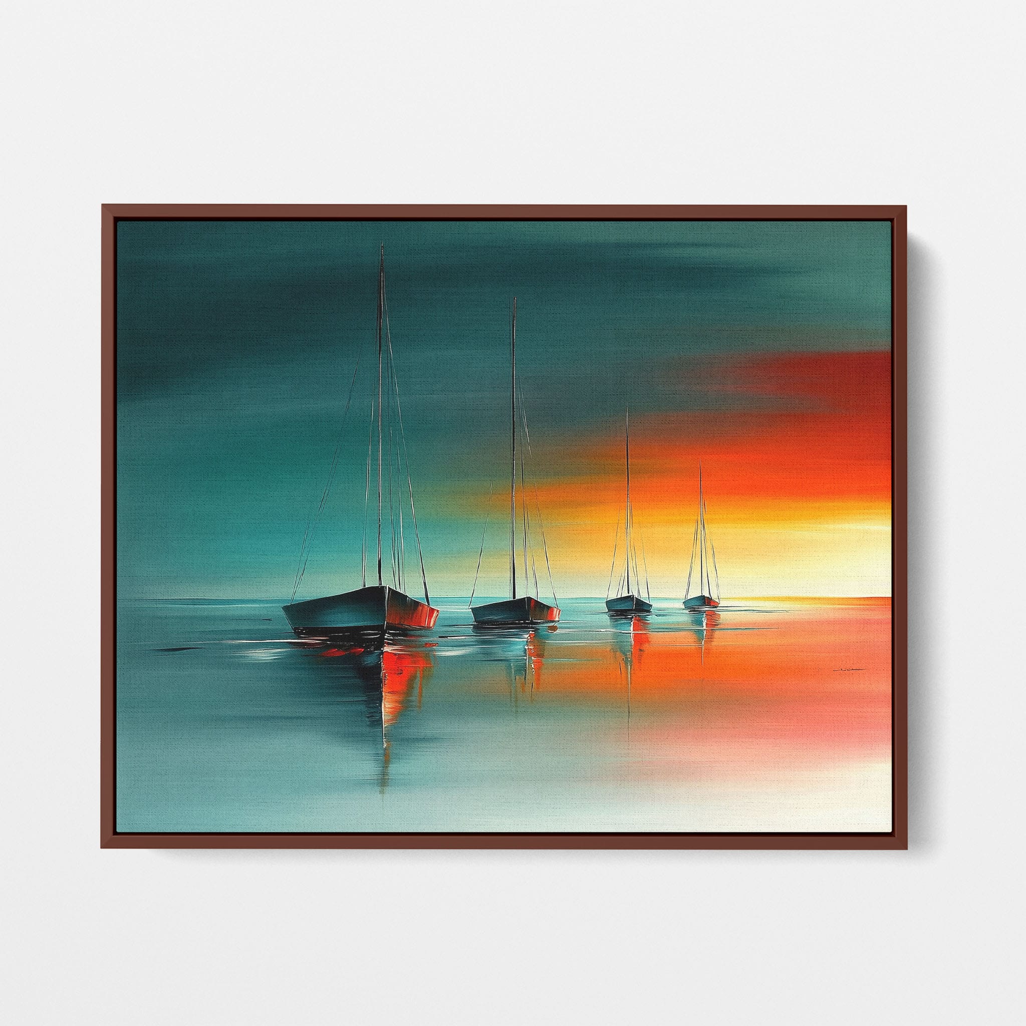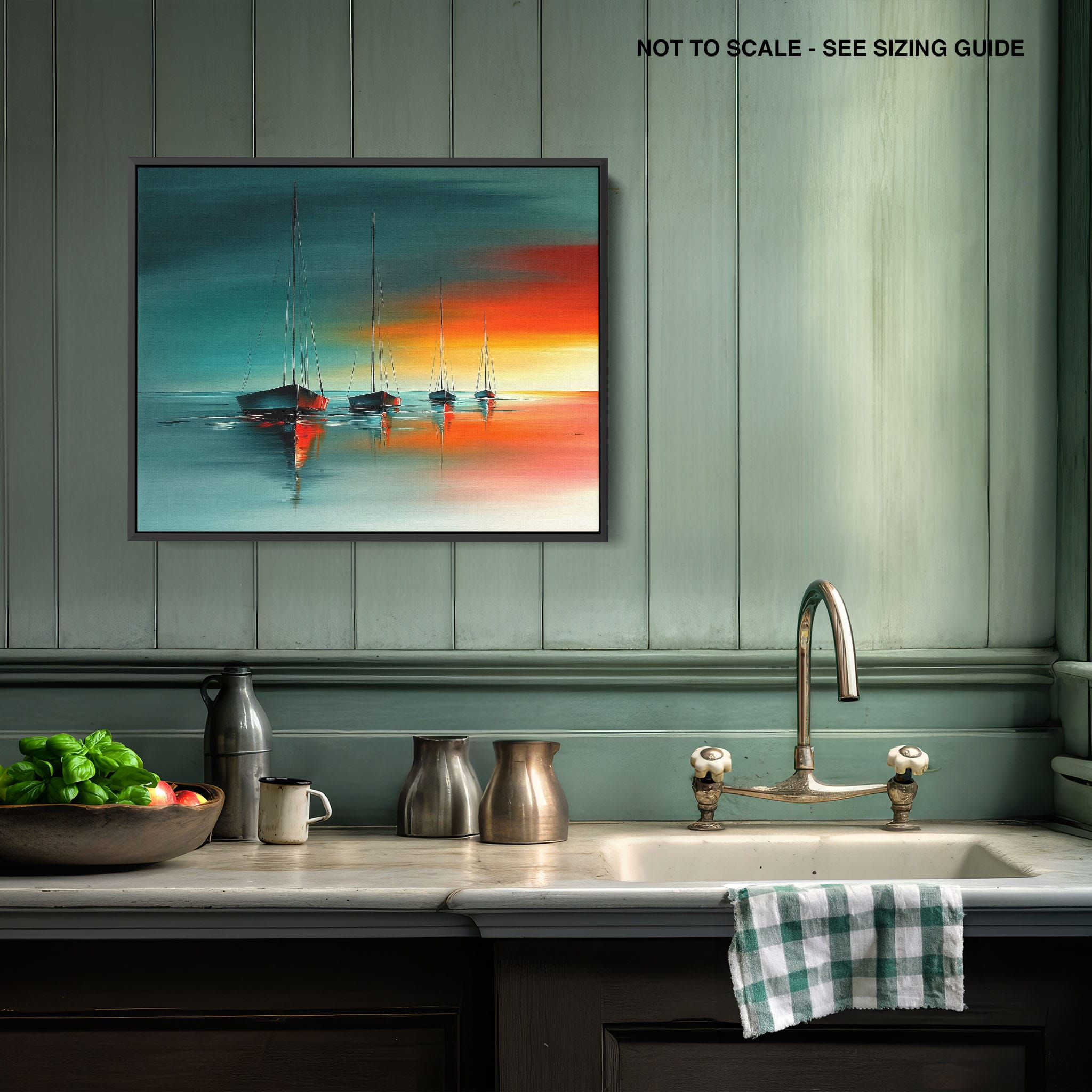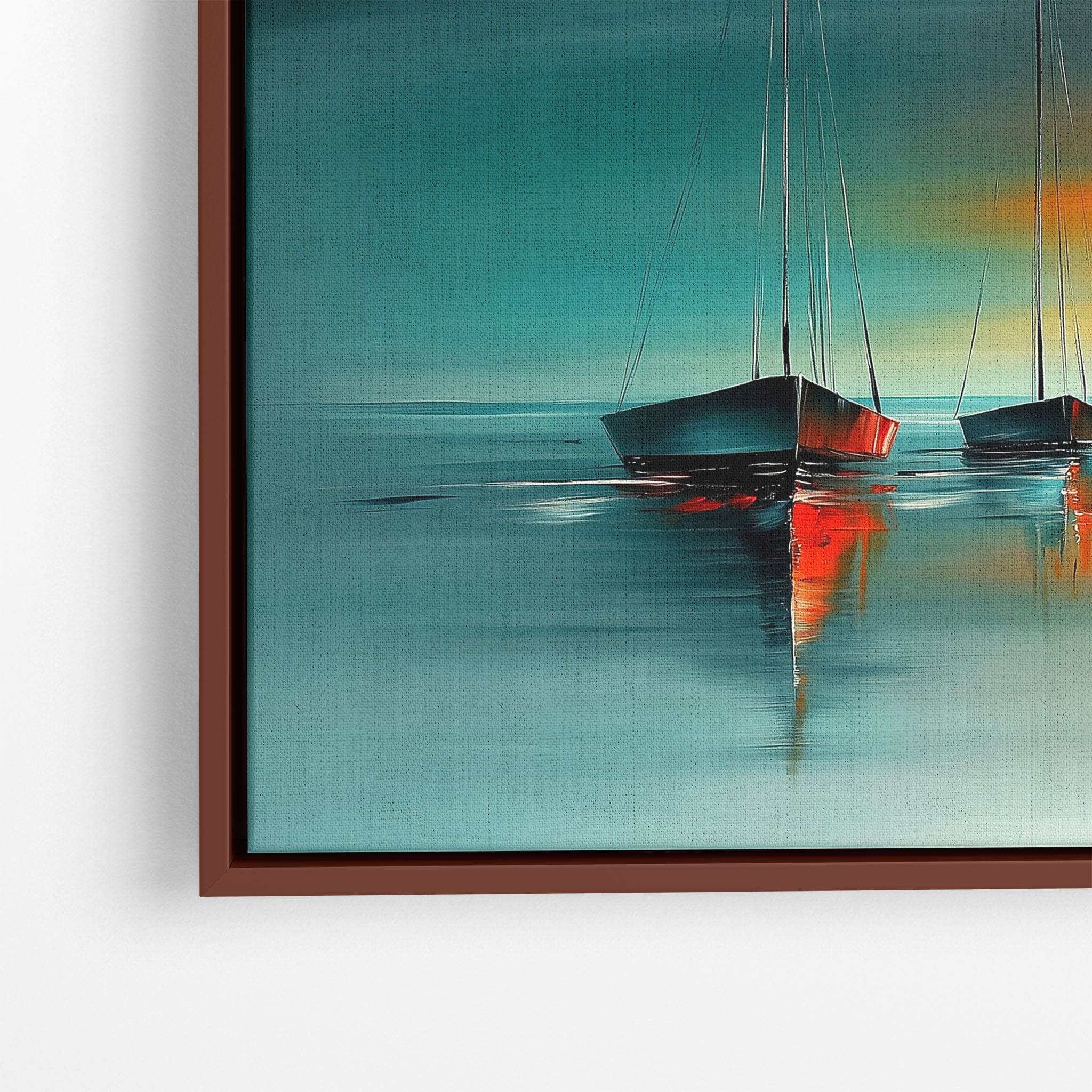 Experience the tranquility of a sunset voyage with Sunset Serenity Voyage. This stunning digital illustration captures the serene beauty of sailboats gliding across a calm sea, reflecting the vibrant hues of a setting sun. The blending of impressionistic and modern styles creates an ethereal atmosphere where the sky's fiery orange and the cool turquoise sea meld seamlessly. Perfect for lovers of nautical scenes and captivating sunsets, this artwork brings a sense of peace and wonder to any space. Let this piece transport you to a tranquil horizon, perfect for brightening up your home or office with its serene and vibrant aura.