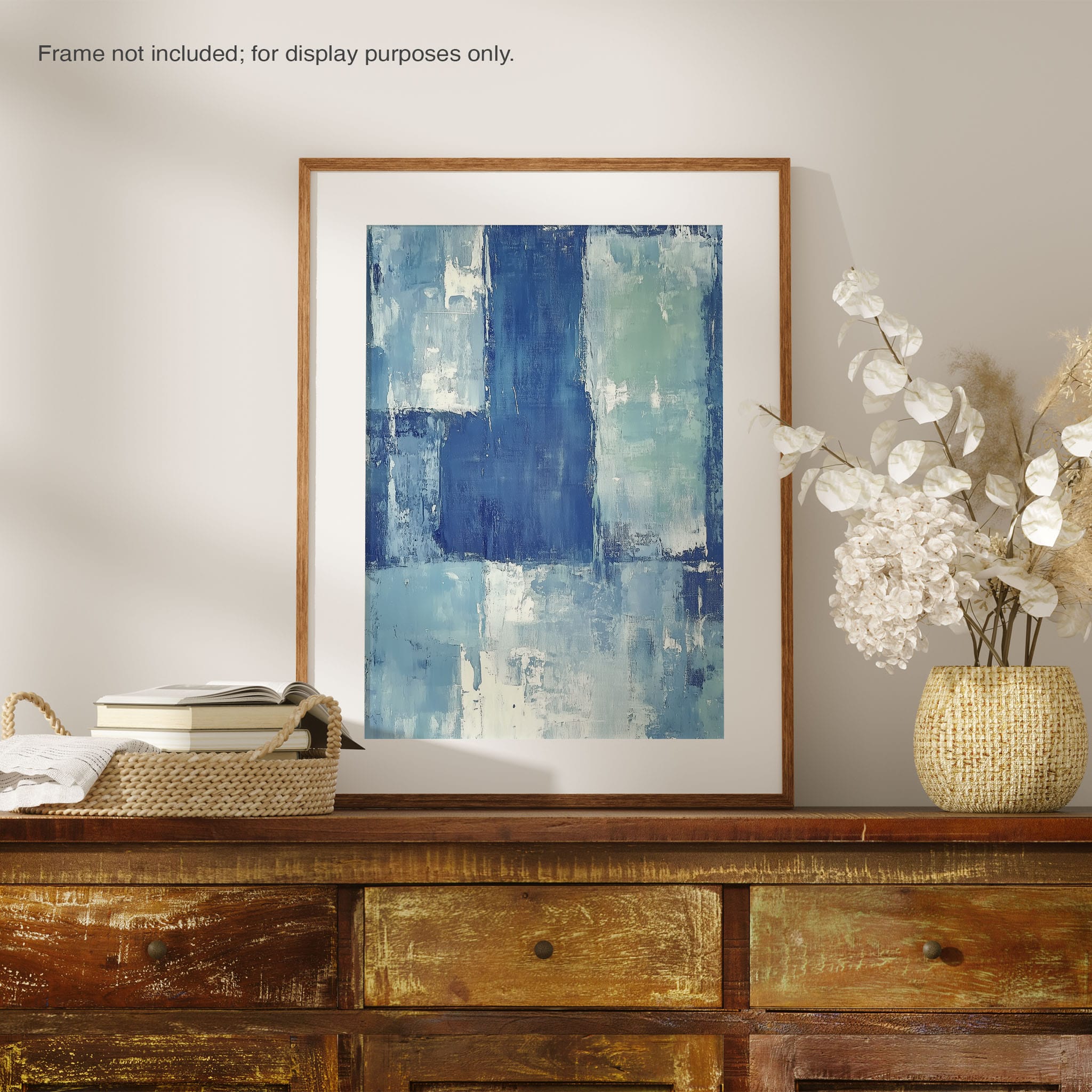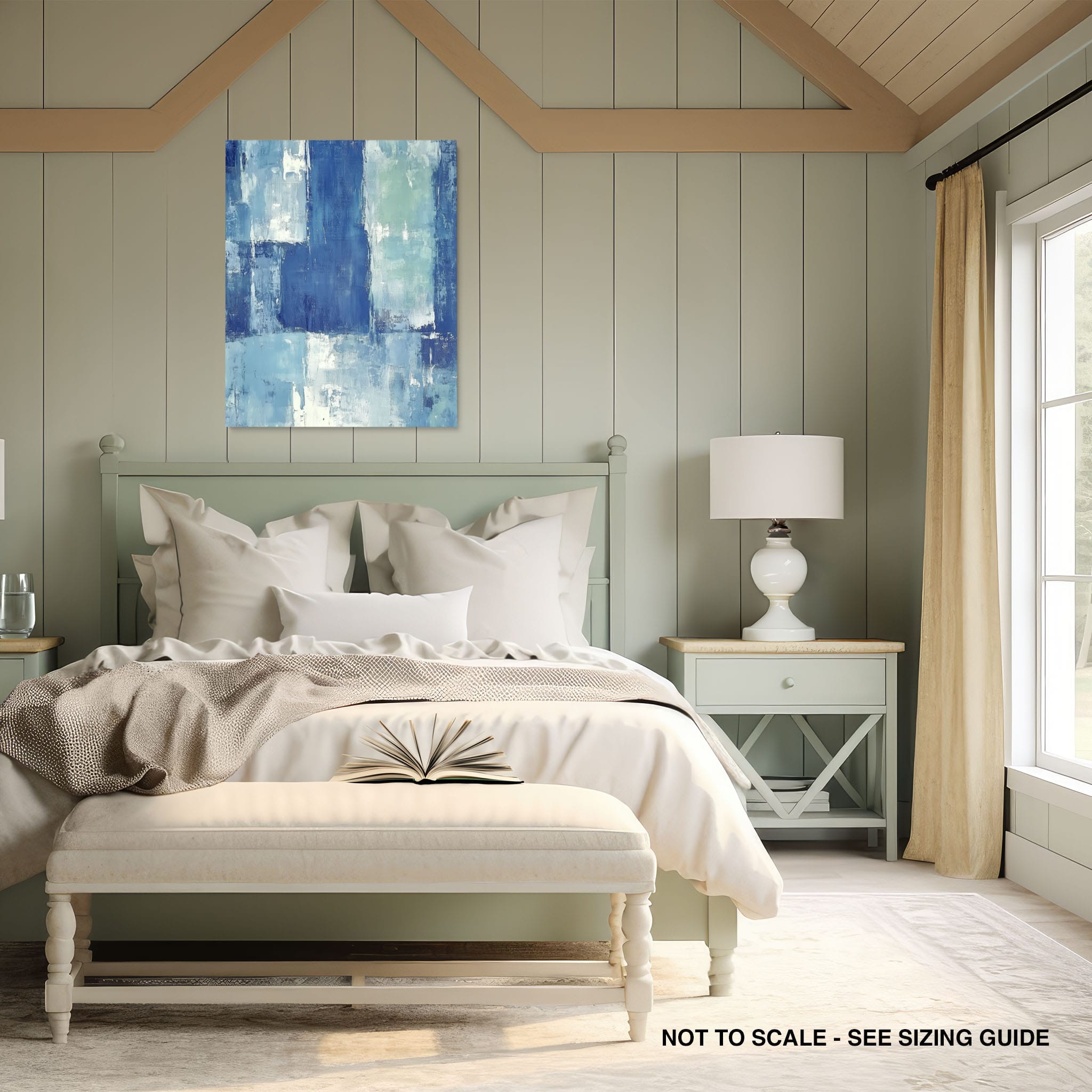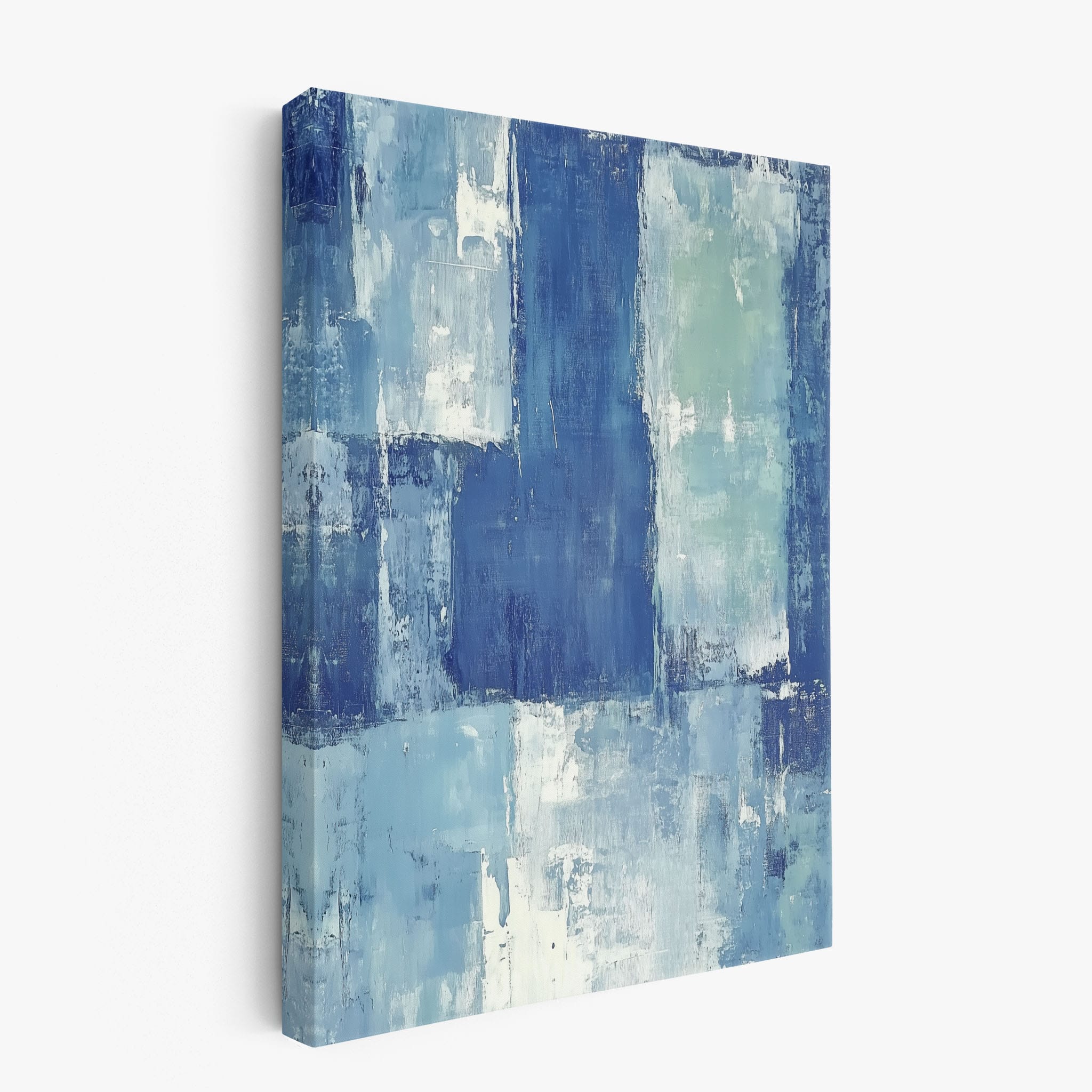 Discover the serene beauty of Tranquil Blues Geometric Serenity, a compelling painting that embodies modern abstract art with a geometric twist. Its calming palette of blues, integrating both deep navy hues and ethereal pastel tones, is orchestrated into square and rectilinear forms, creating an engaging visual harmony. This piece is perfect for the contemporary art lover looking to bring a touch of tranquility and thoughtful composition into their living or workspace. Elevate your environment with this tactile exploration of color and form, which promises to inspire and soothe in equal measure.