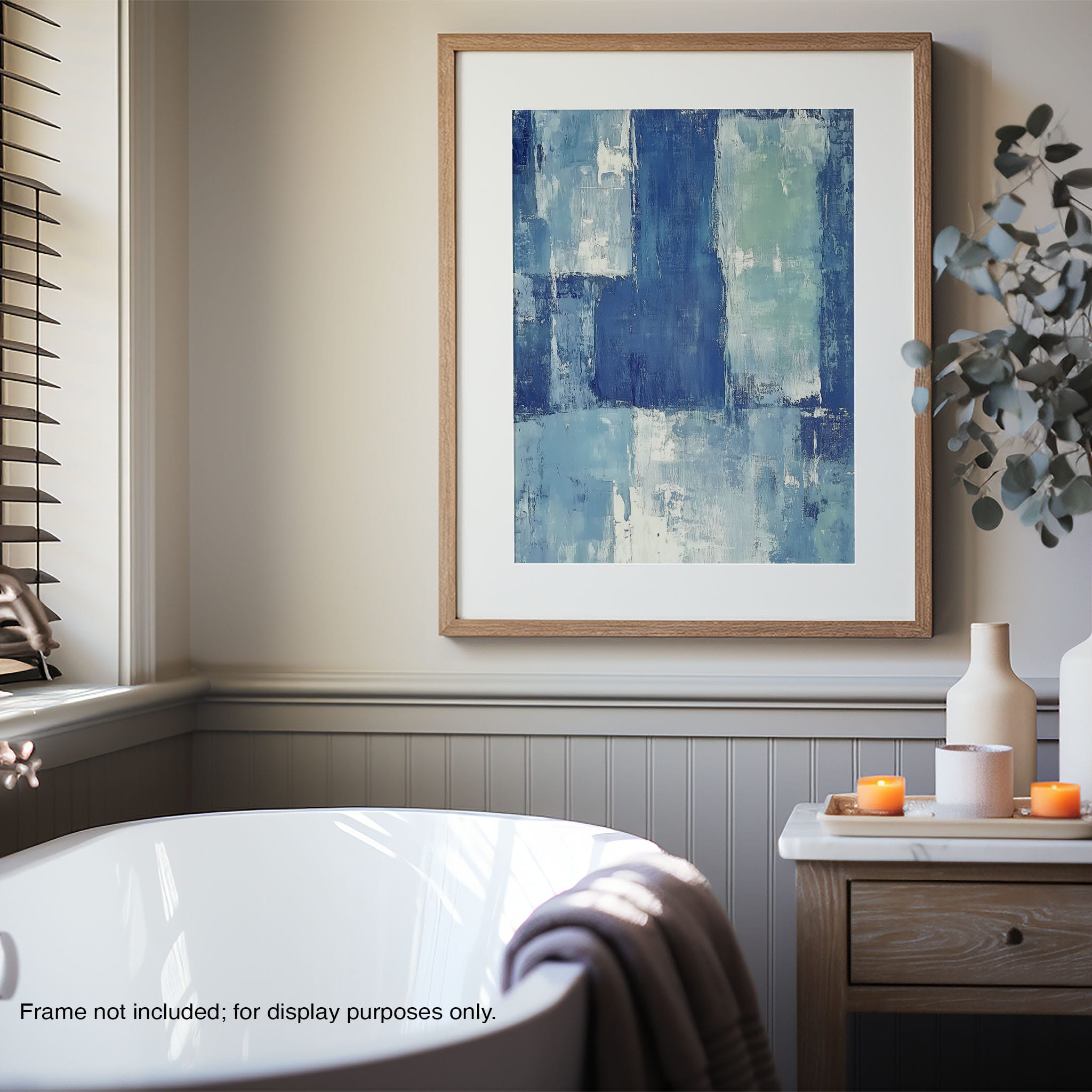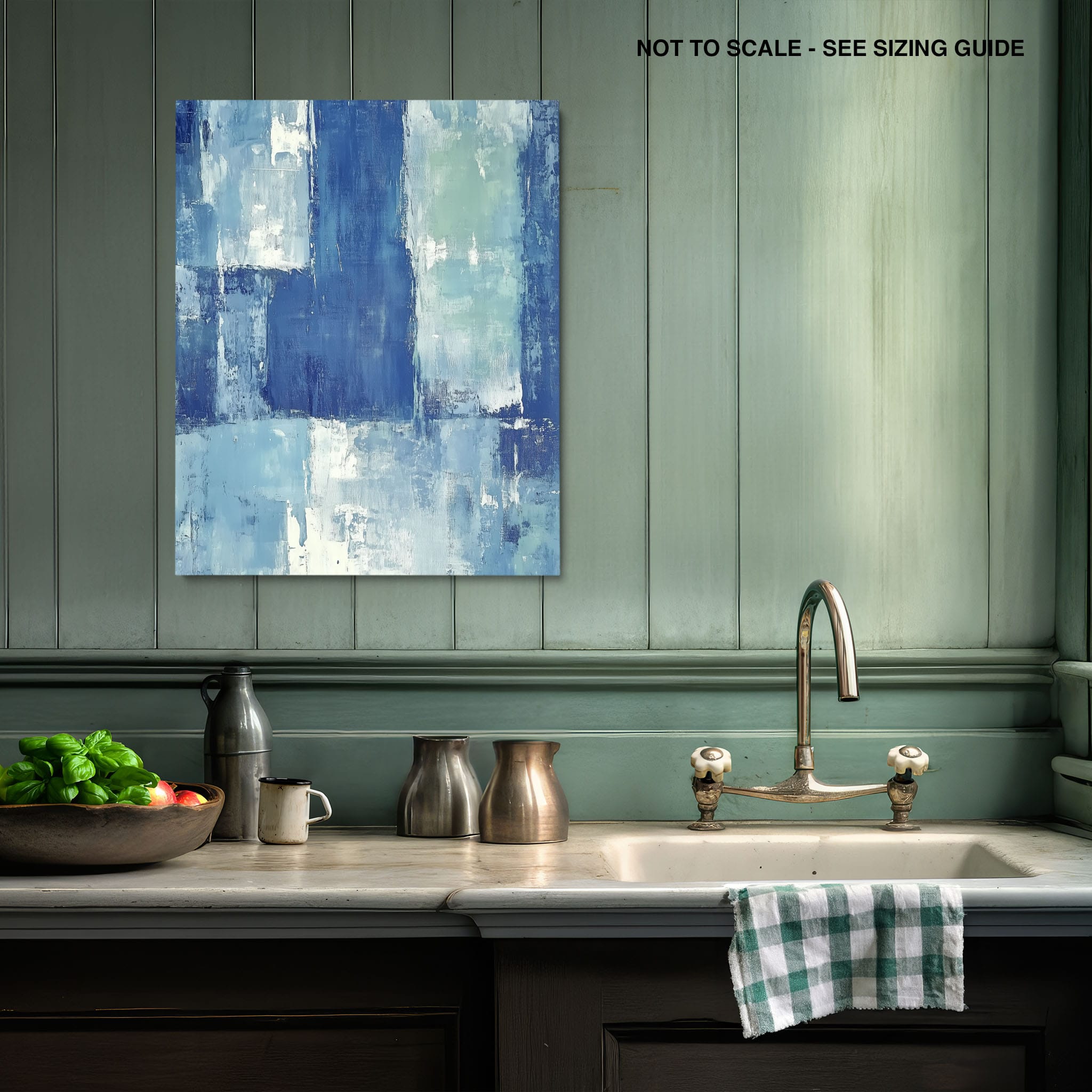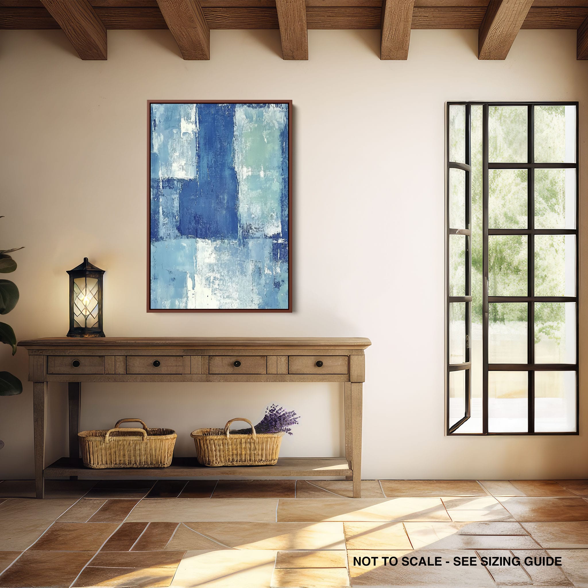 Discover the serene beauty of Tranquil Blues Geometric Serenity, a compelling painting that embodies modern abstract art with a geometric twist. Its calming palette of blues, integrating both deep navy hues and ethereal pastel tones, is orchestrated into square and rectilinear forms, creating an engaging visual harmony. This piece is perfect for the contemporary art lover looking to bring a touch of tranquility and thoughtful composition into their living or workspace. Elevate your environment with this tactile exploration of color and form, which promises to inspire and soothe in equal measure.