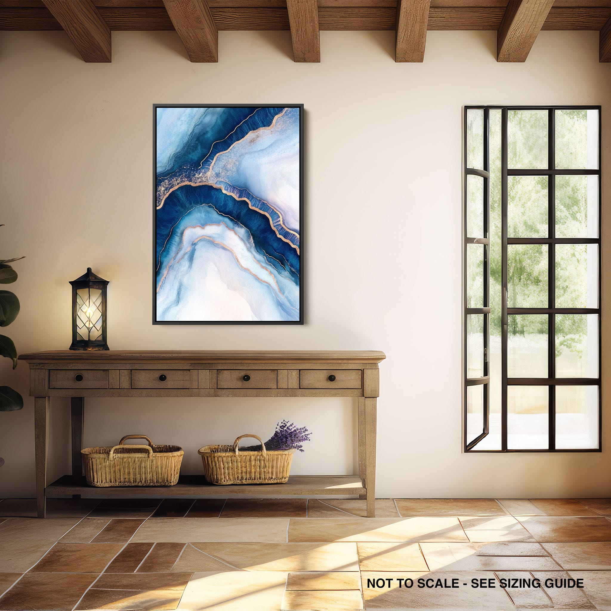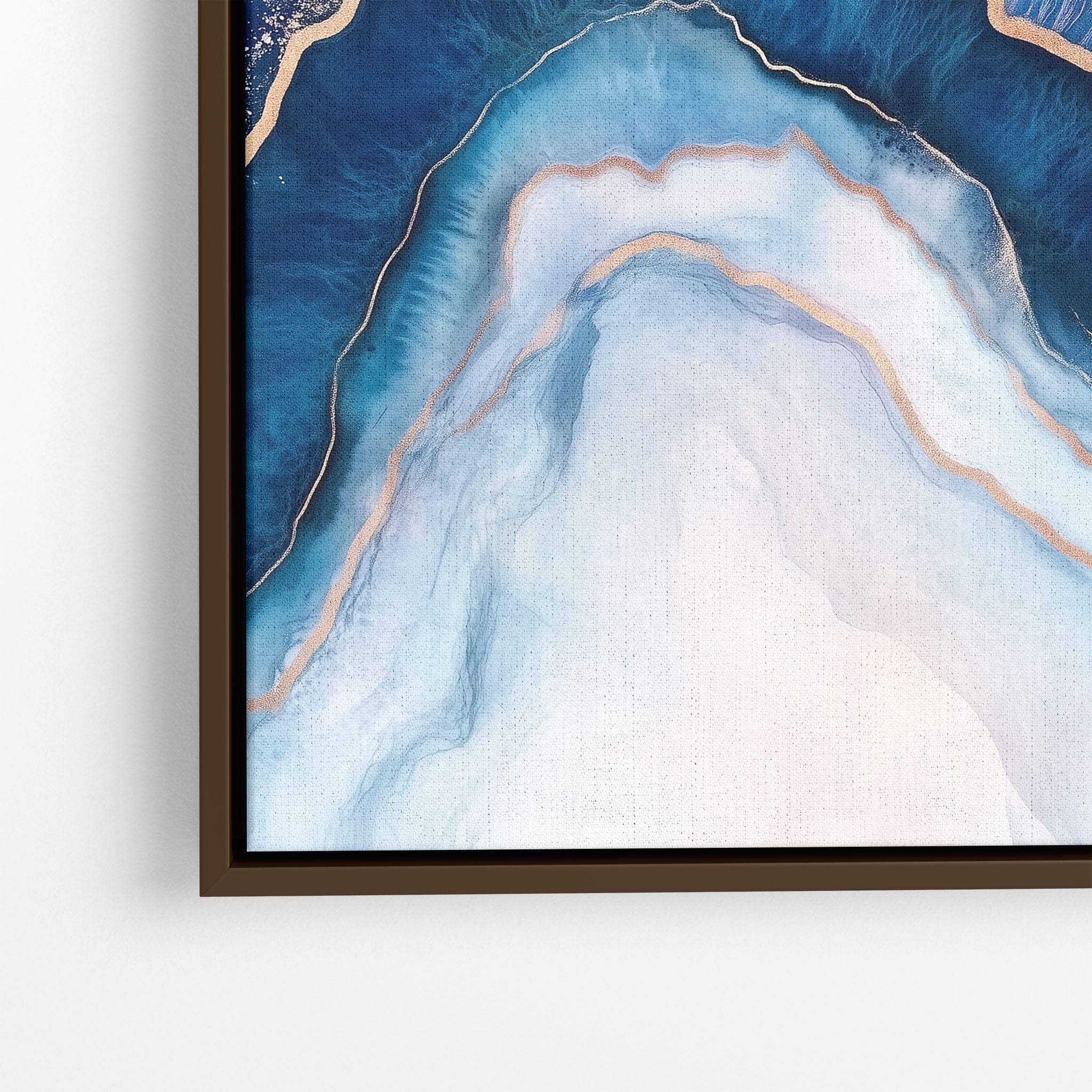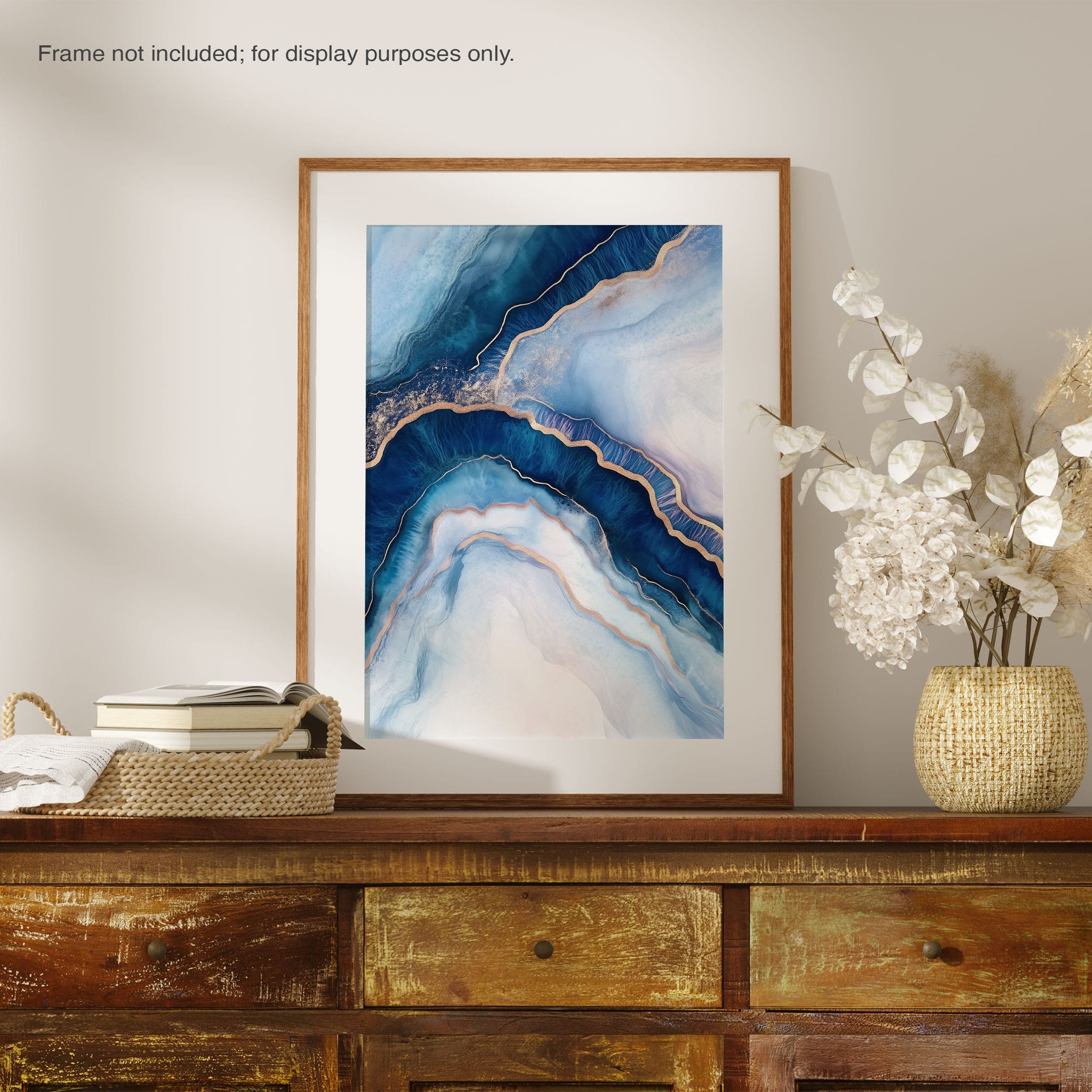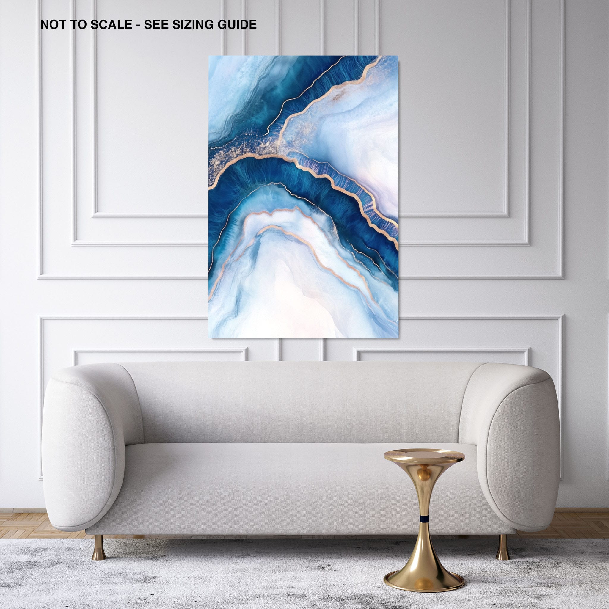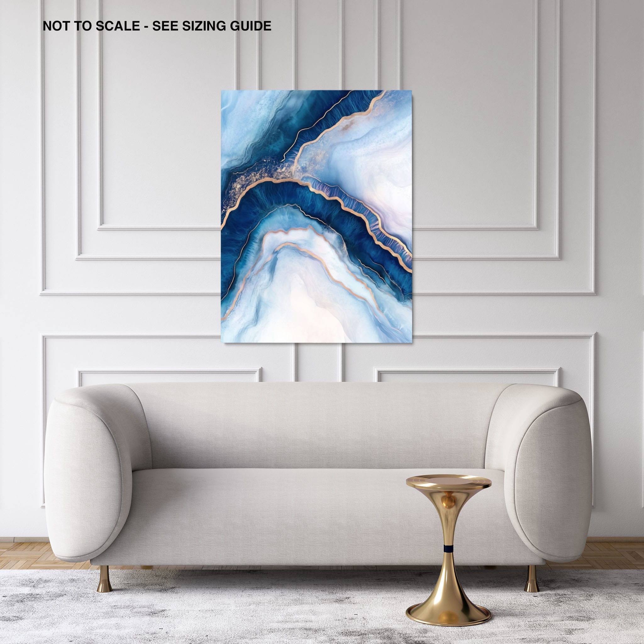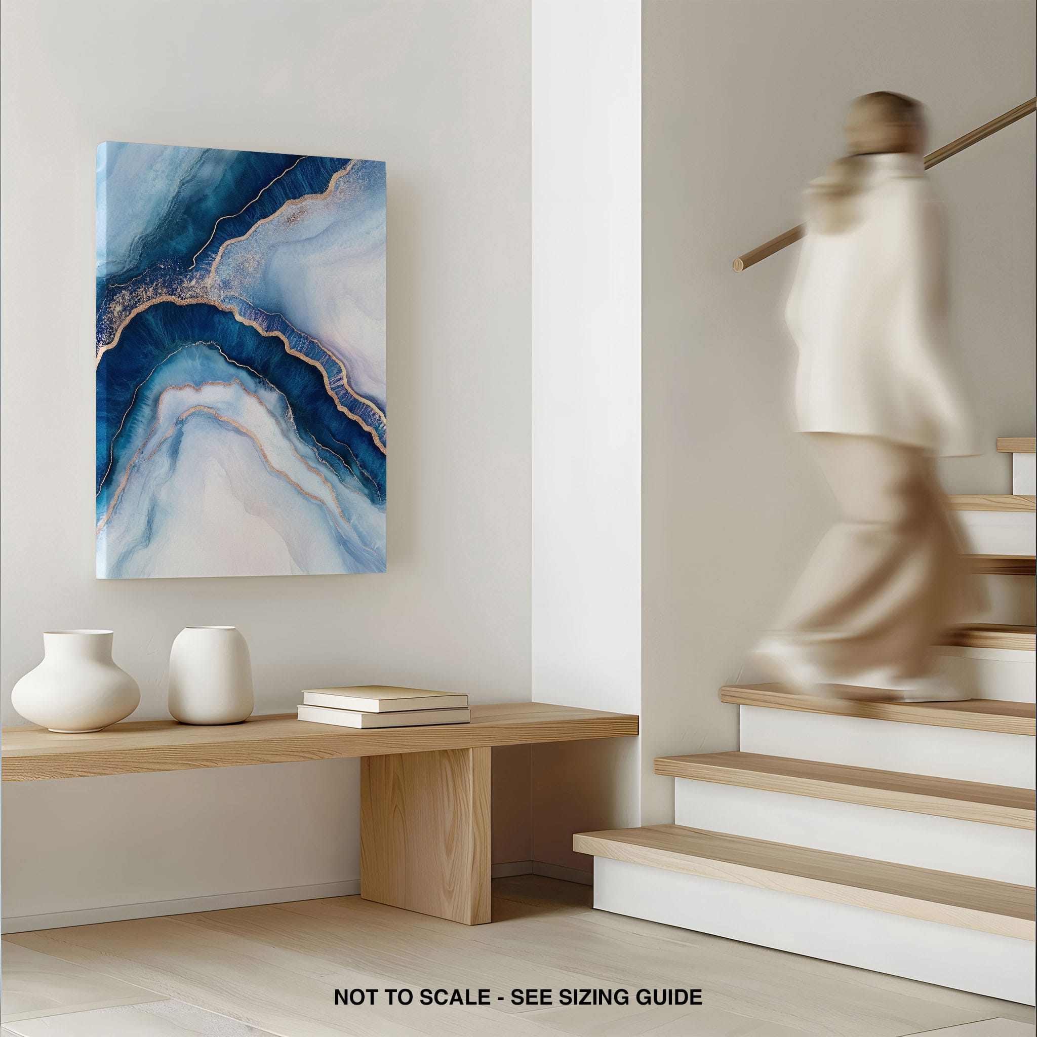 Marvel at the fluid motion captured in Tranquil Waves of Calming Blues, a mixed media artwork that skillfully intertwines deep blue hues with layers of creamy whites and gold accents. The abstract design mimics serene ocean waves rolling in a calm, rhythmic pattern, evoking a sense of peace and stillness. Perfect for any contemporary or minimalistic space, this piece instantly adds a touch of soothing elegance. Add this serene seascape to your space to enjoy a daily glimpse of oceanic tranquility.