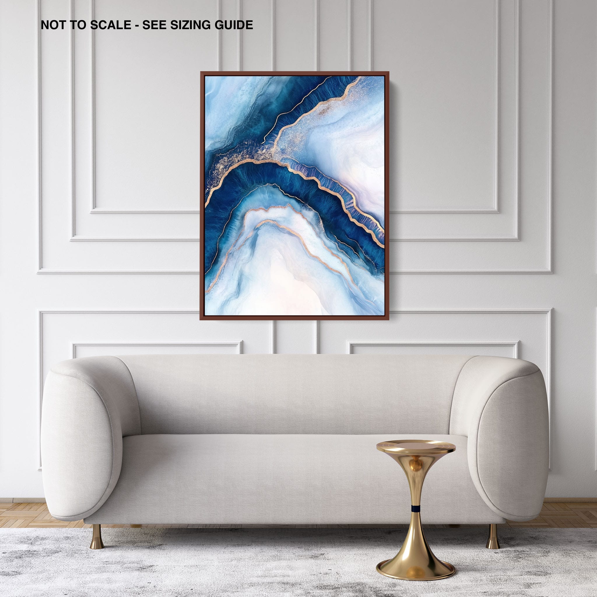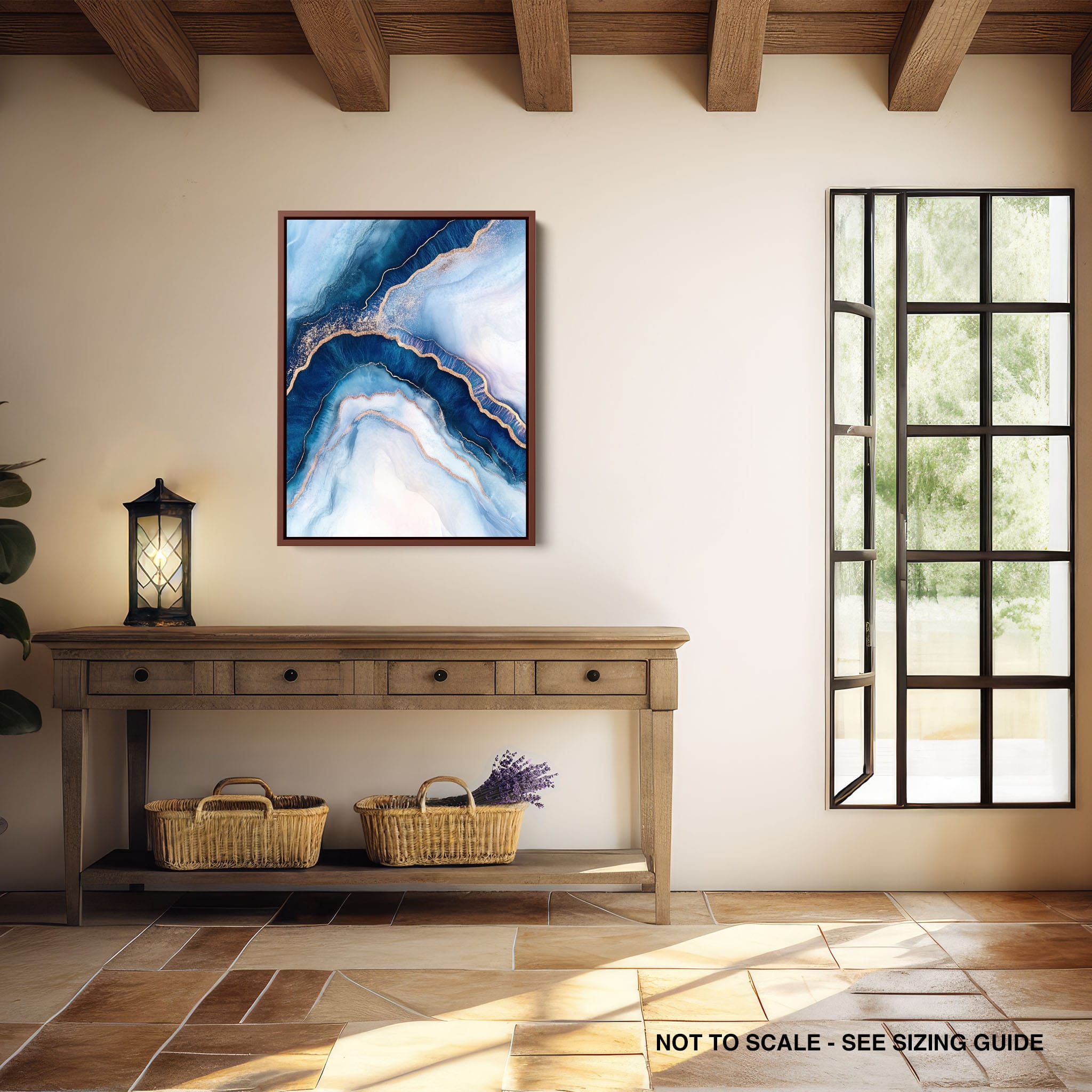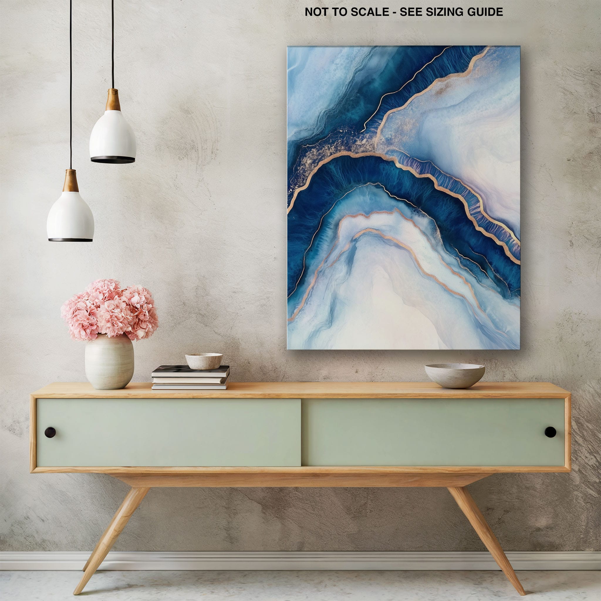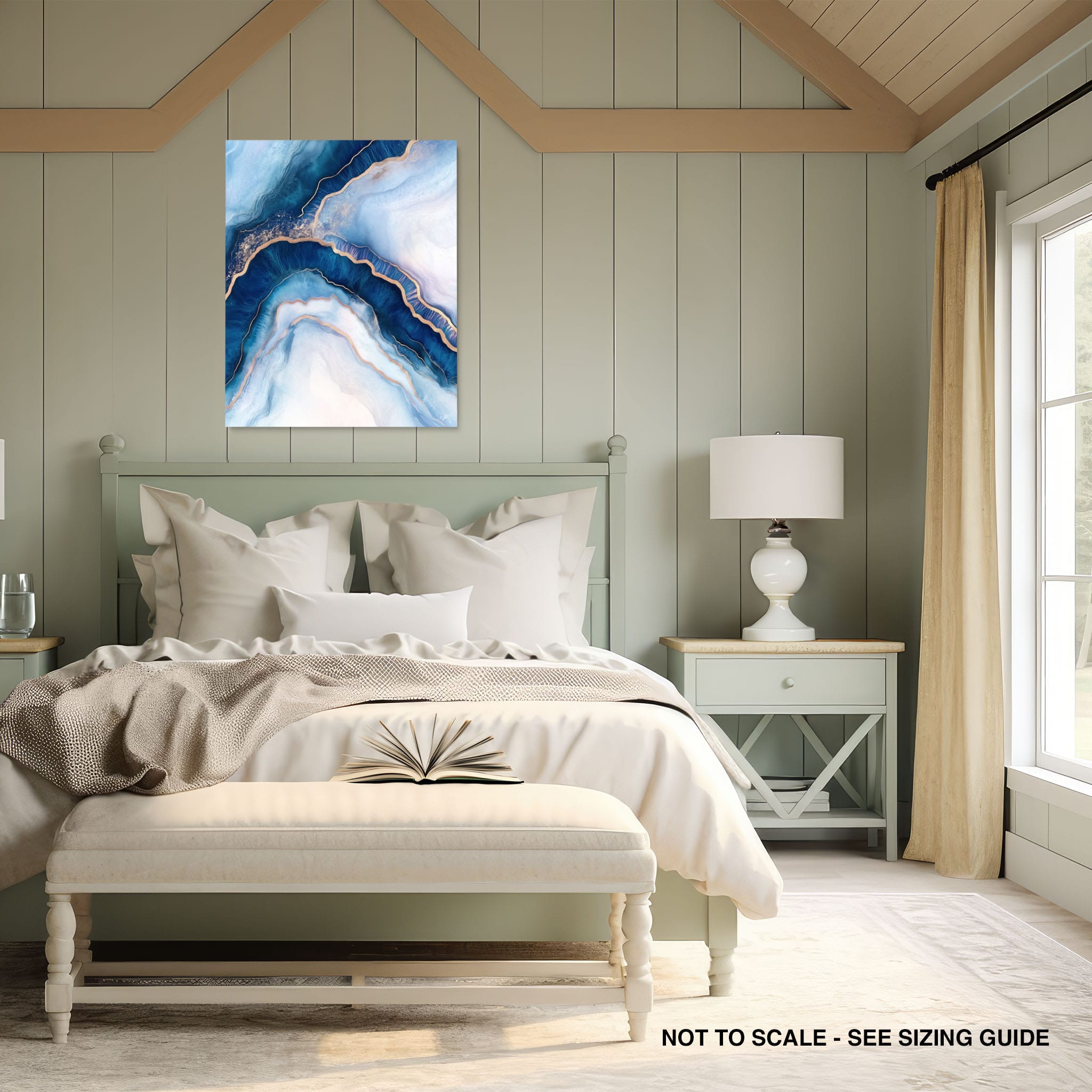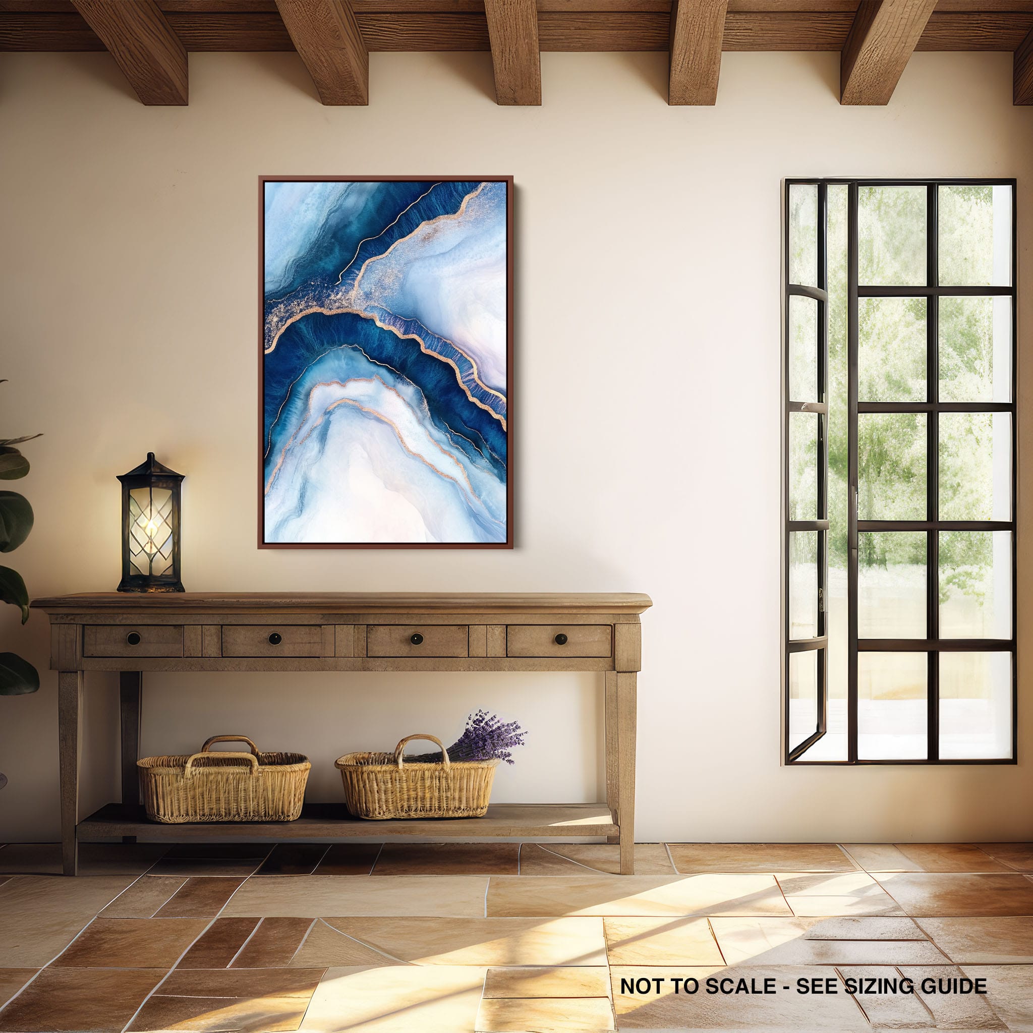 Marvel at the fluid motion captured in Tranquil Waves of Calming Blues, a mixed media artwork that skillfully intertwines deep blue hues with layers of creamy whites and gold accents. The abstract design mimics serene ocean waves rolling in a calm, rhythmic pattern, evoking a sense of peace and stillness. Perfect for any contemporary or minimalistic space, this piece instantly adds a touch of soothing elegance. Add this serene seascape to your space to enjoy a daily glimpse of oceanic tranquility.