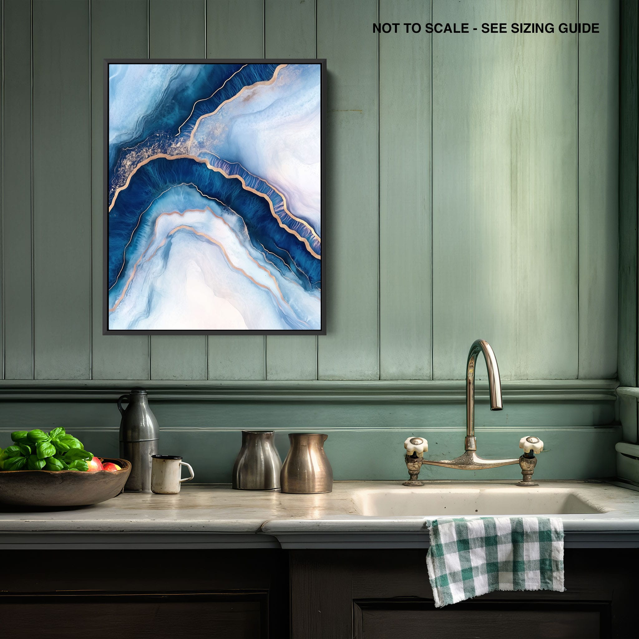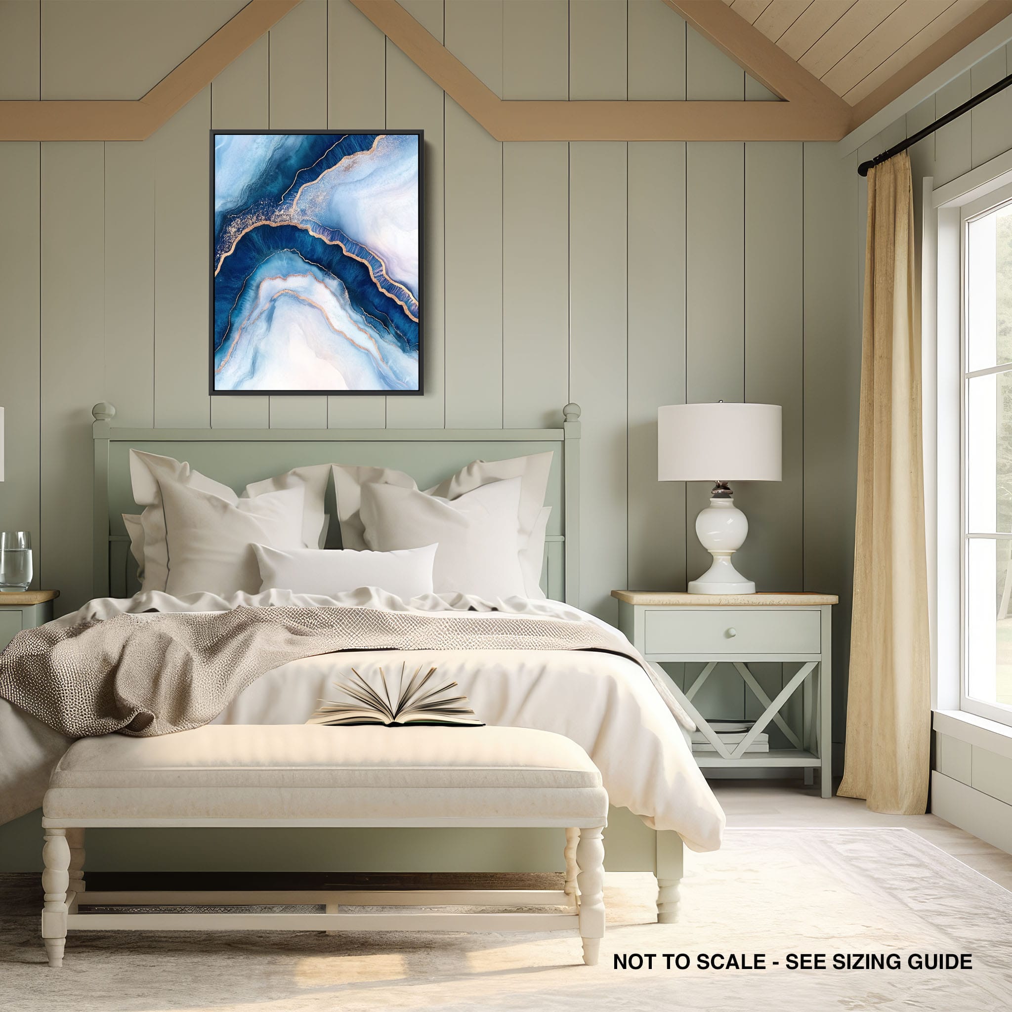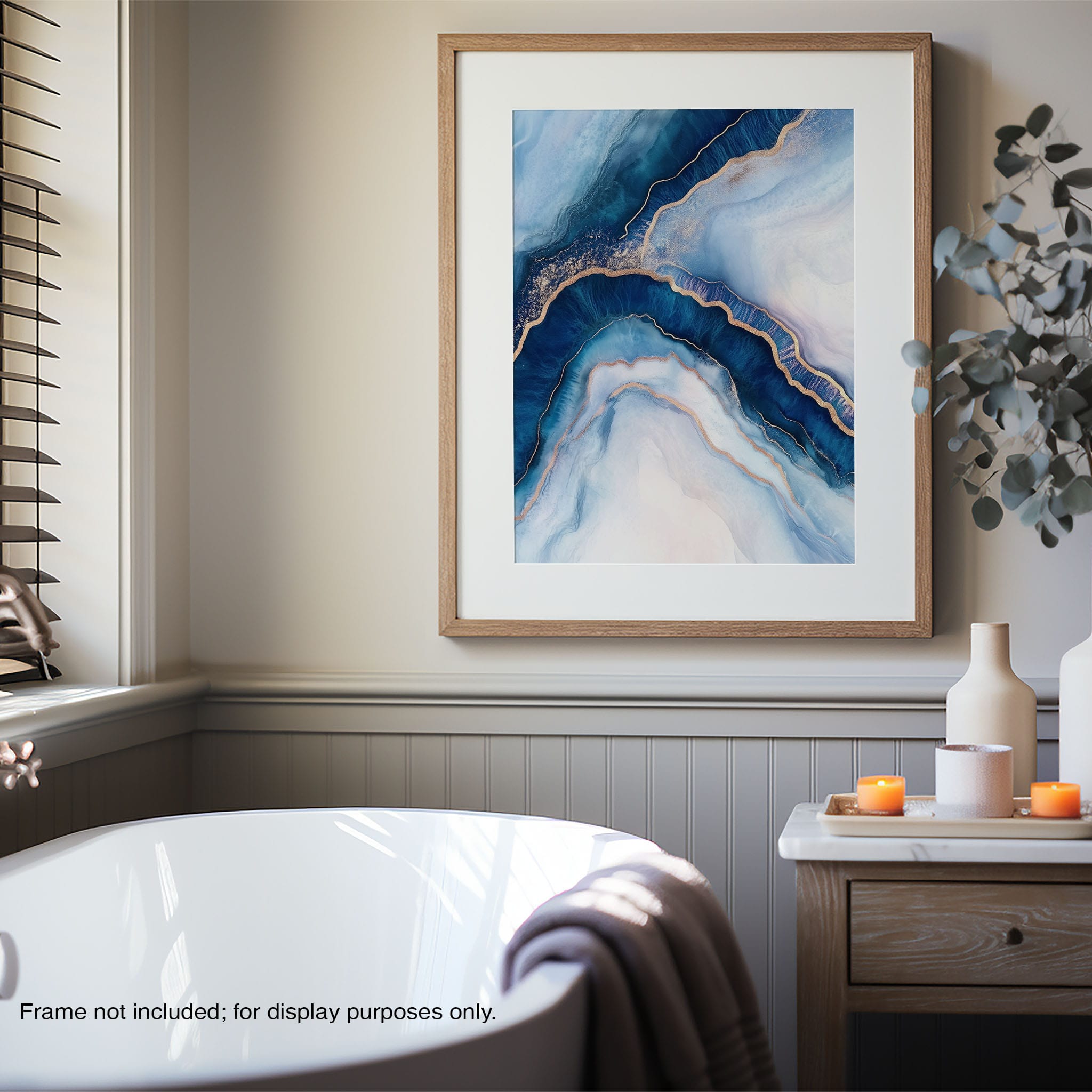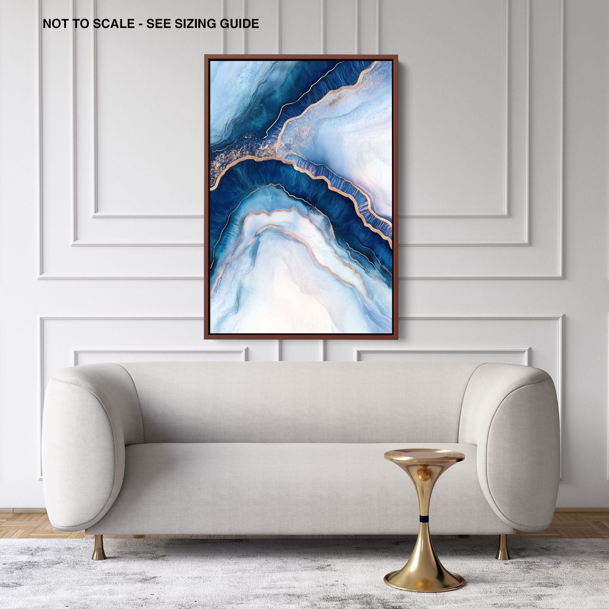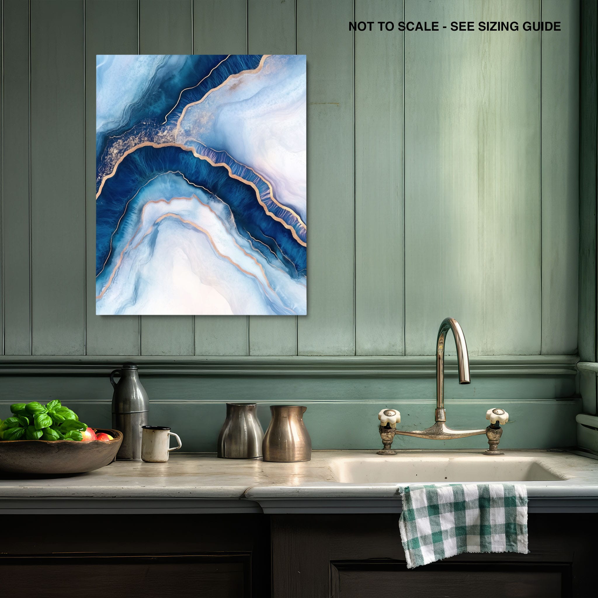 Marvel at the fluid motion captured in Tranquil Waves of Calming Blues, a mixed media artwork that skillfully intertwines deep blue hues with layers of creamy whites and gold accents. The abstract design mimics serene ocean waves rolling in a calm, rhythmic pattern, evoking a sense of peace and stillness. Perfect for any contemporary or minimalistic space, this piece instantly adds a touch of soothing elegance. Add this serene seascape to your space to enjoy a daily glimpse of oceanic tranquility.