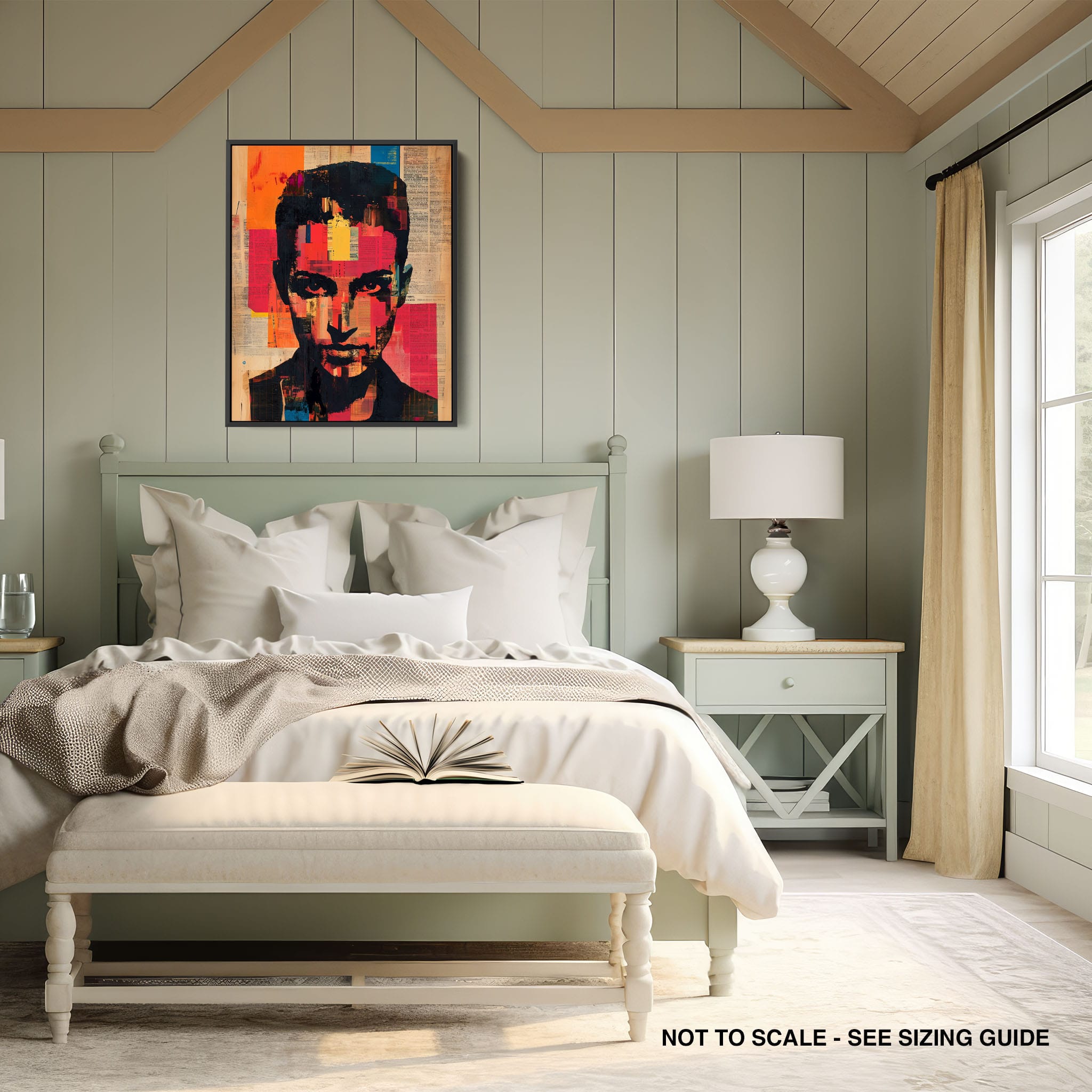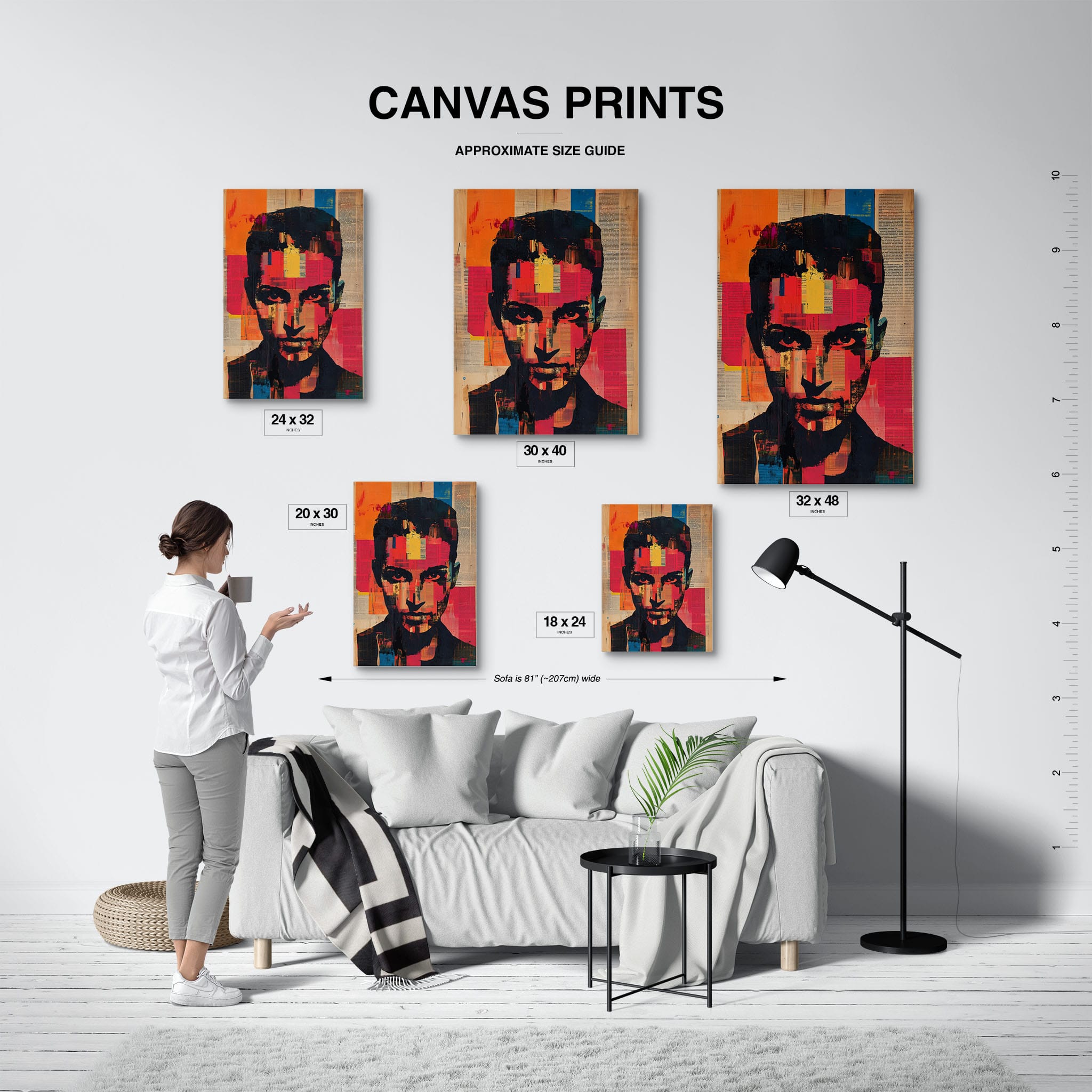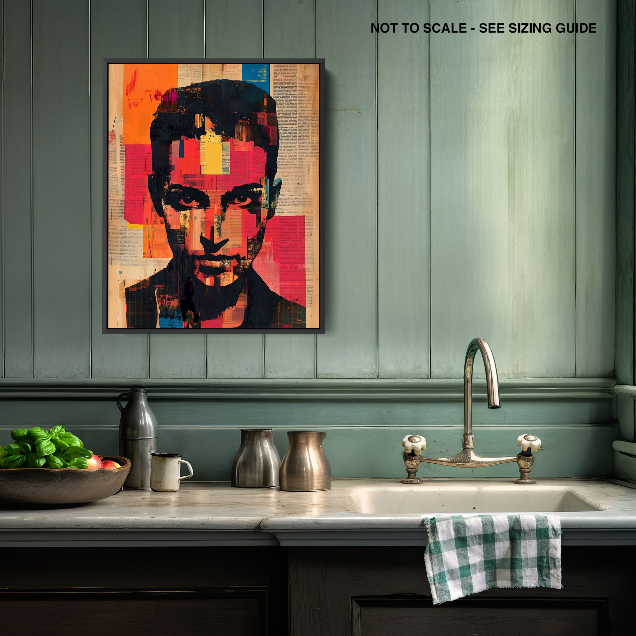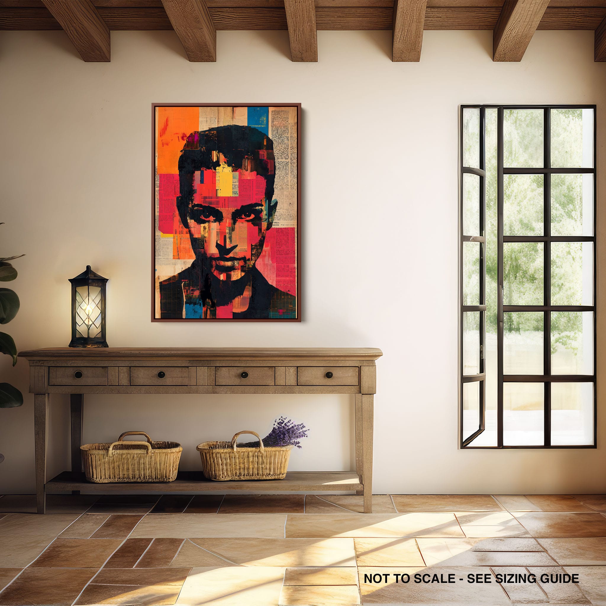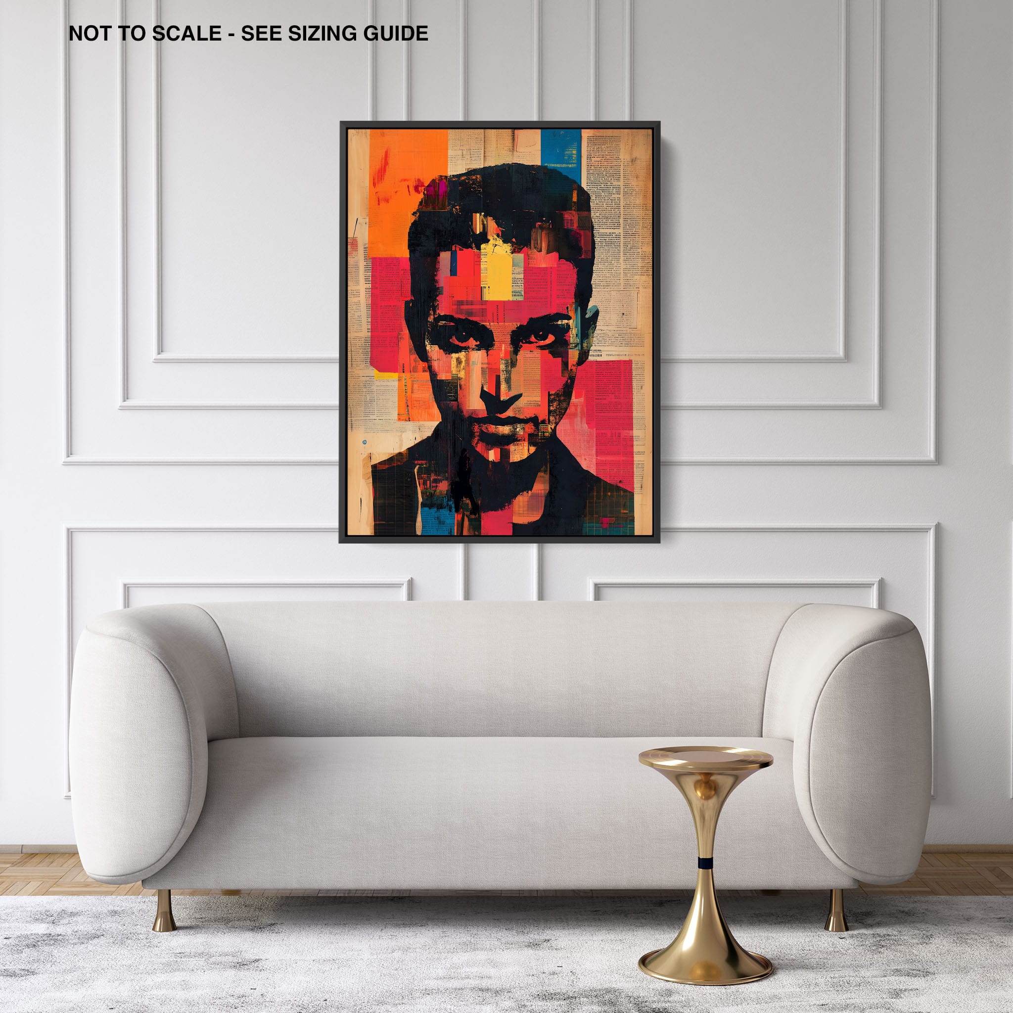 This mixed media masterpiece marries vivid modern art with abstract elements to convey a mesmerizing figurative representation. Shades of orange and blue contrast sharply against a textured backdrop of newspaper clippings, creating a captivating visual narrative. The bold, fragmented features of the central figure gaze hauntingly at the viewer, compelling one to ponder the stories layered beneath the brush strokes. Ideal for enhancing any modern living space or office, this artwork invites admiration and discussion, resonating with those who appreciate depth and dynamic color in art.