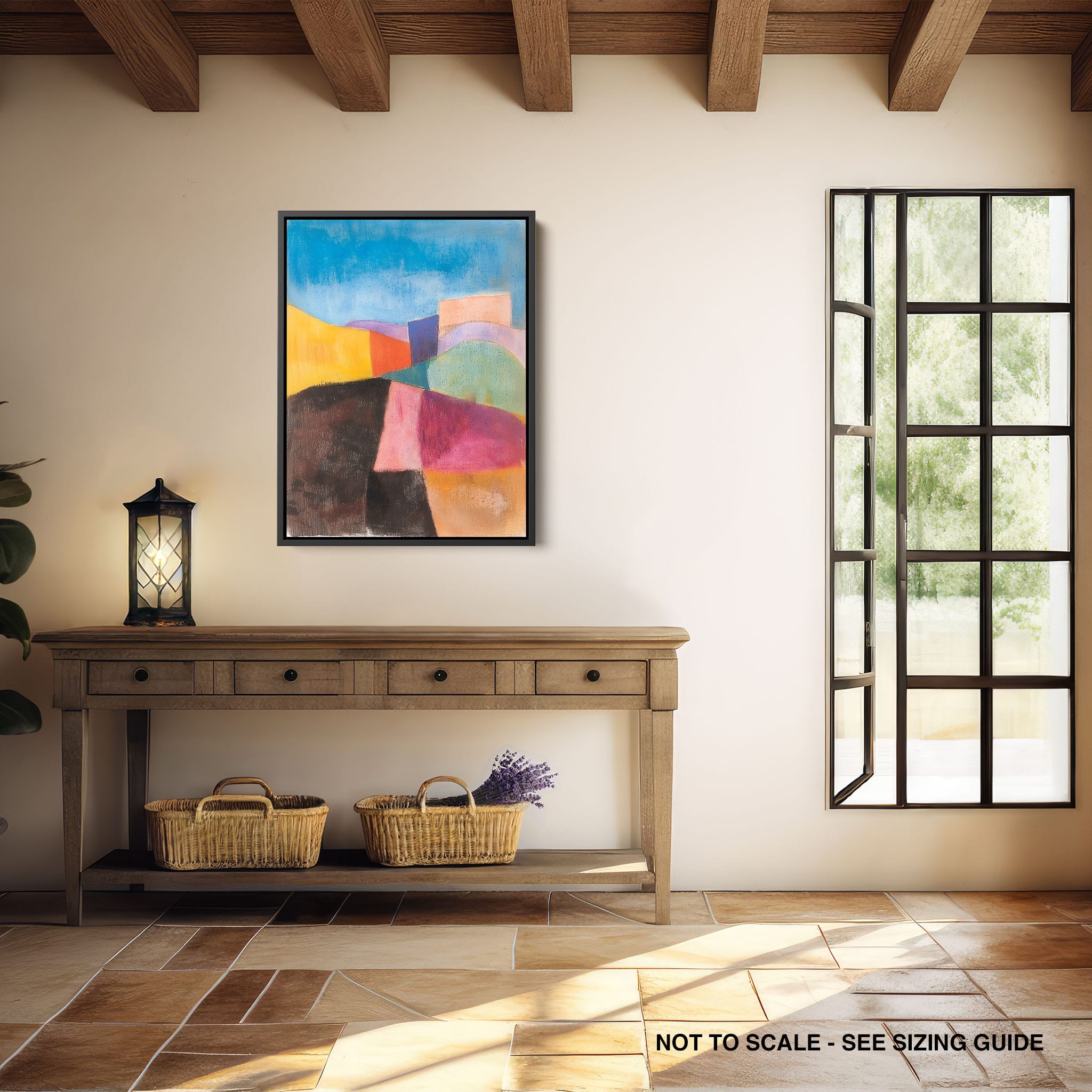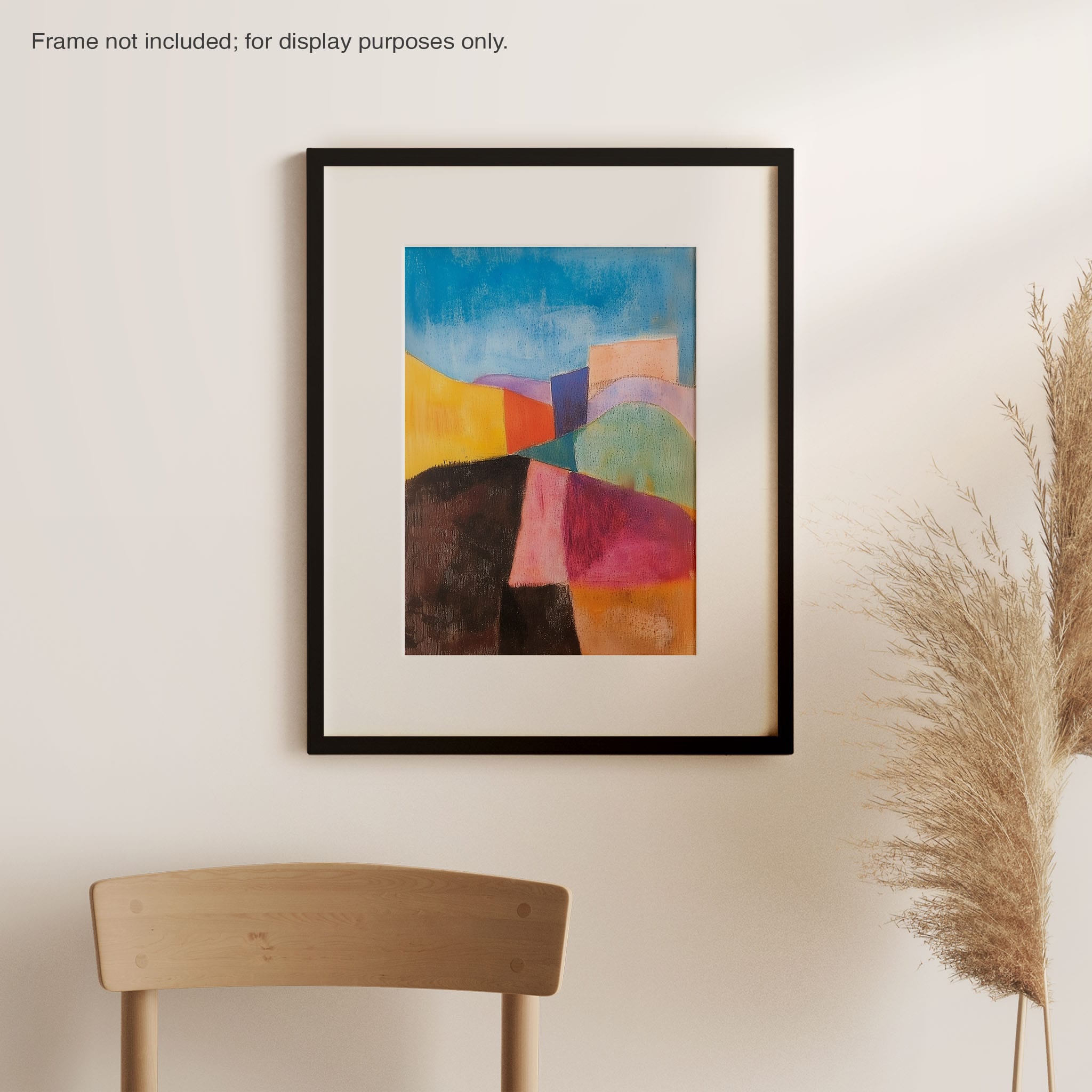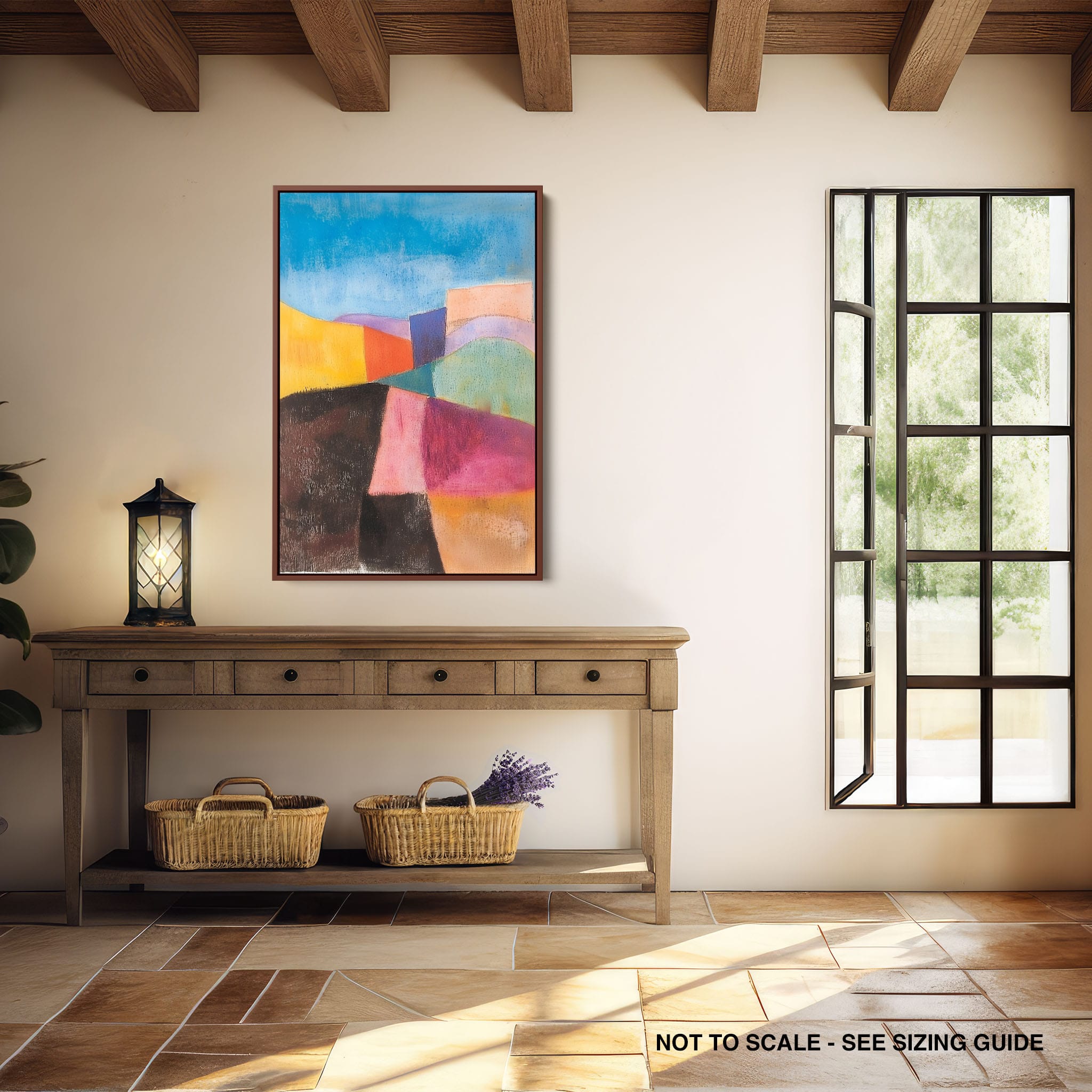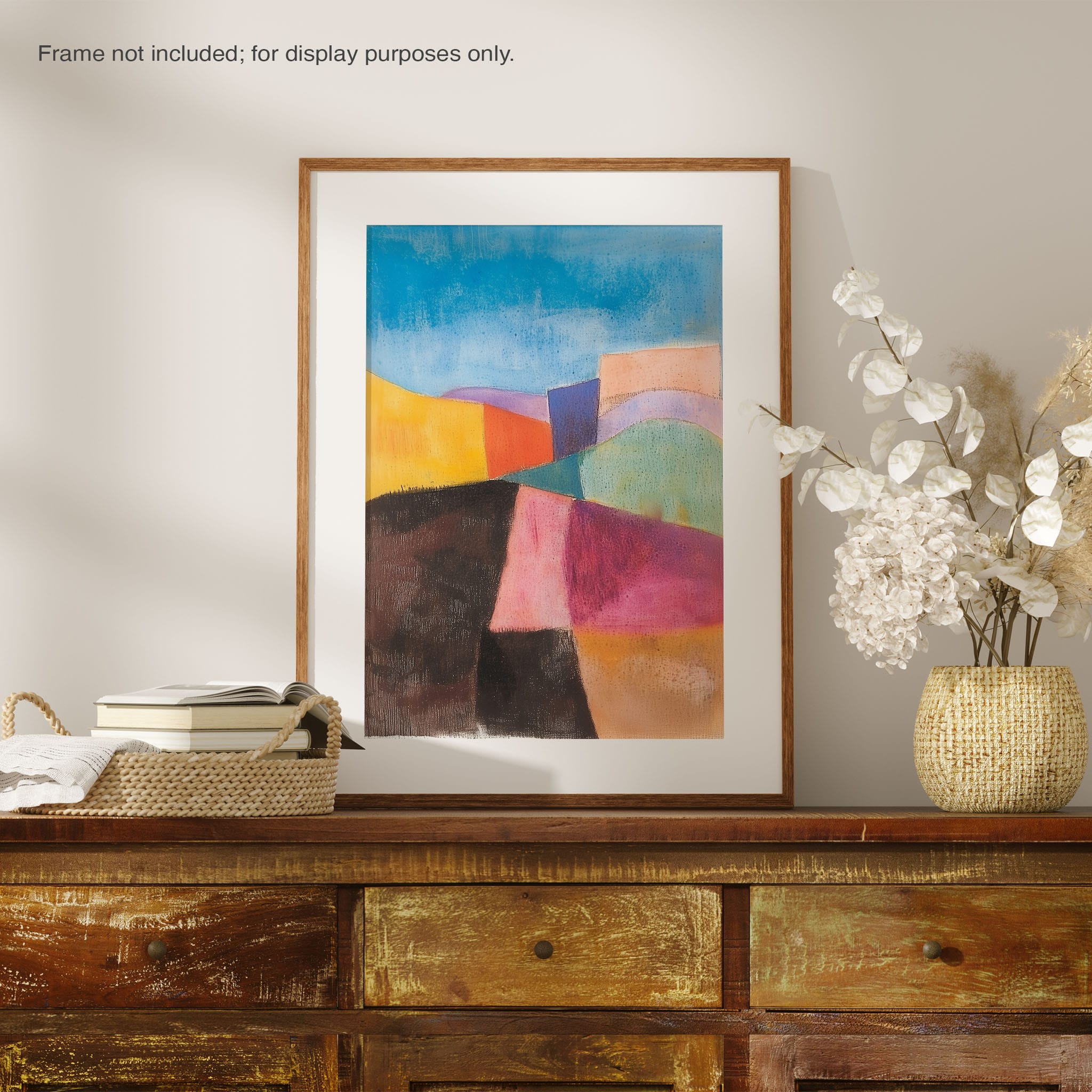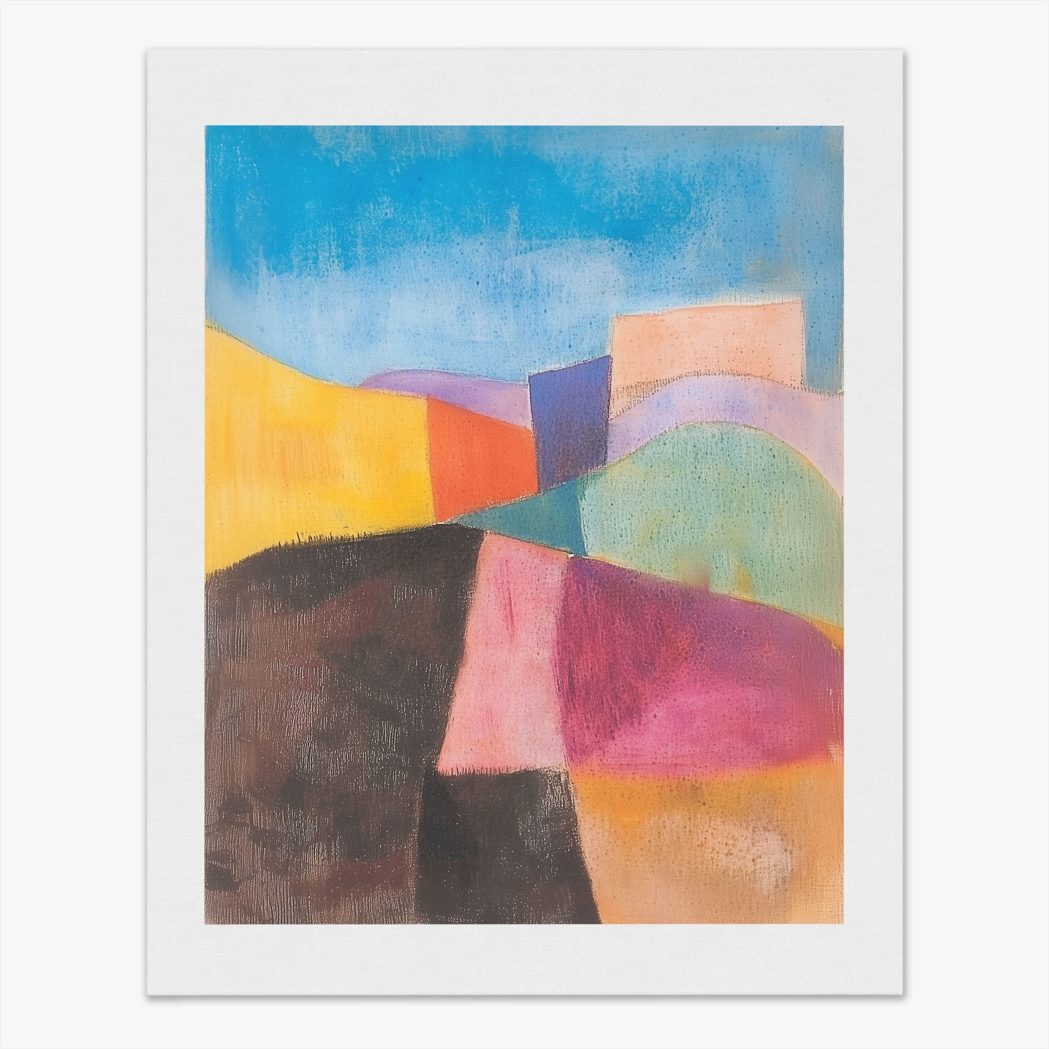 This abstract digital painting weaves together bold blocks of color with expressive brush strokes to create a visually rich canvas that feels both spontaneous and thoughtfully arranged. Deep blue skies transition into vibrant oranges, sunlit yellows, and mysterious blacks, reflecting a dynamic emotional spectrum. Ideal for modern decor enthusiasts, this artwork enhances any room with a splash of color and a hint of modern expressionism. The striking use of geometry and color offers a fresh perspective on traditional abstract art, making it a must-have for any art lover looking to spice up their space.