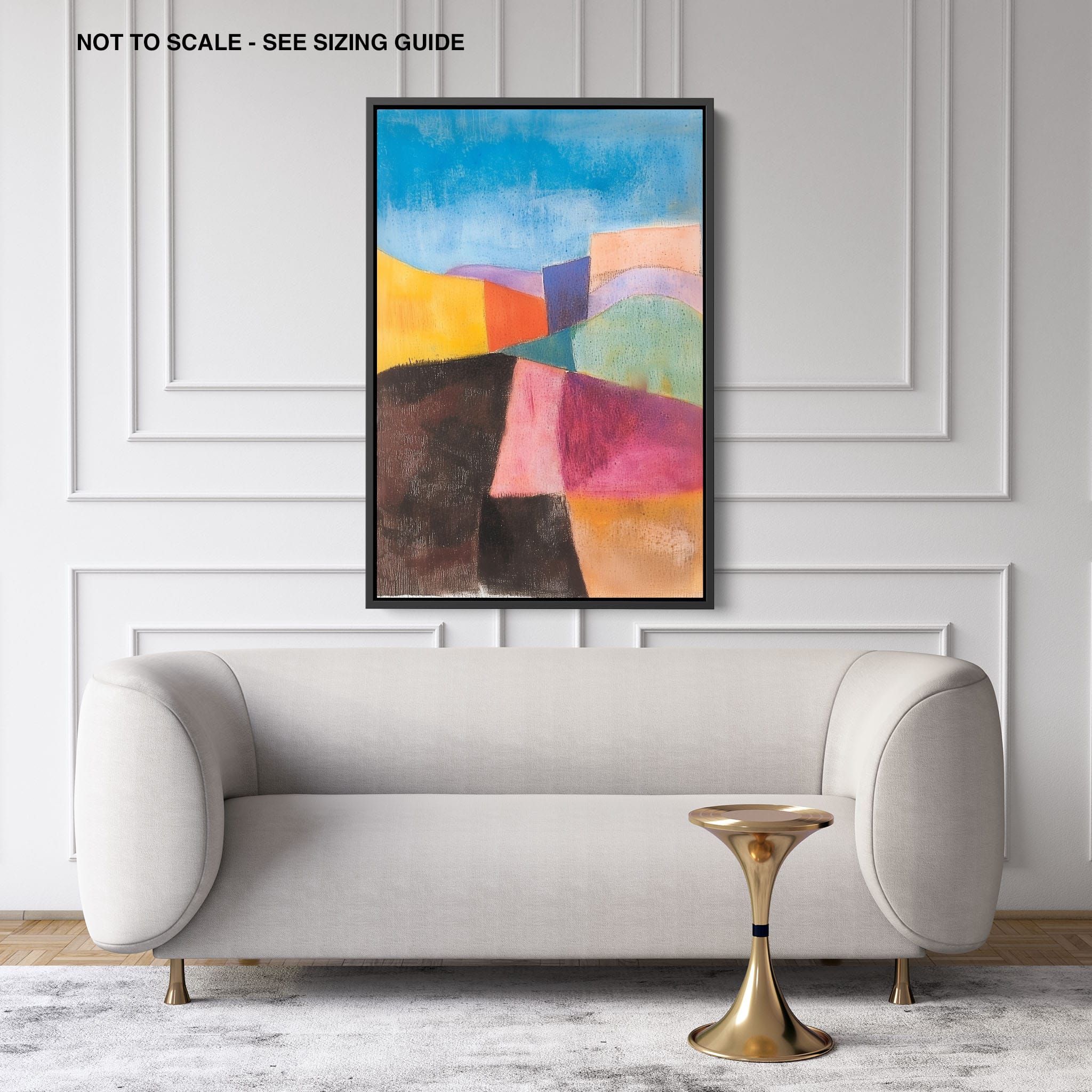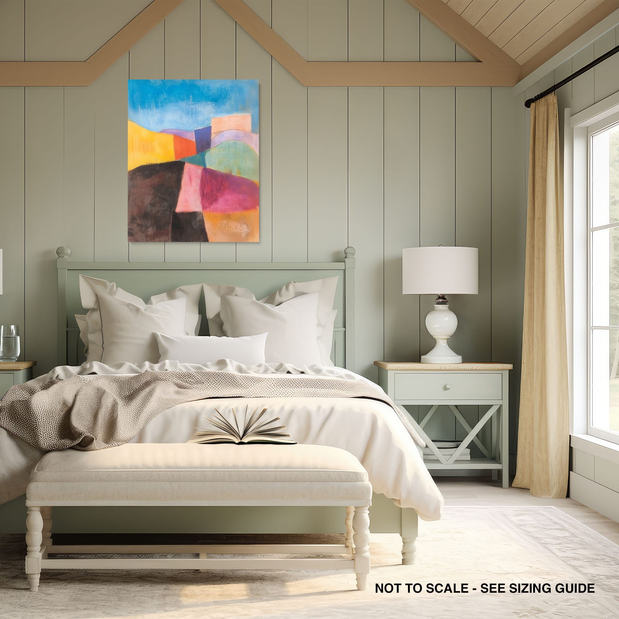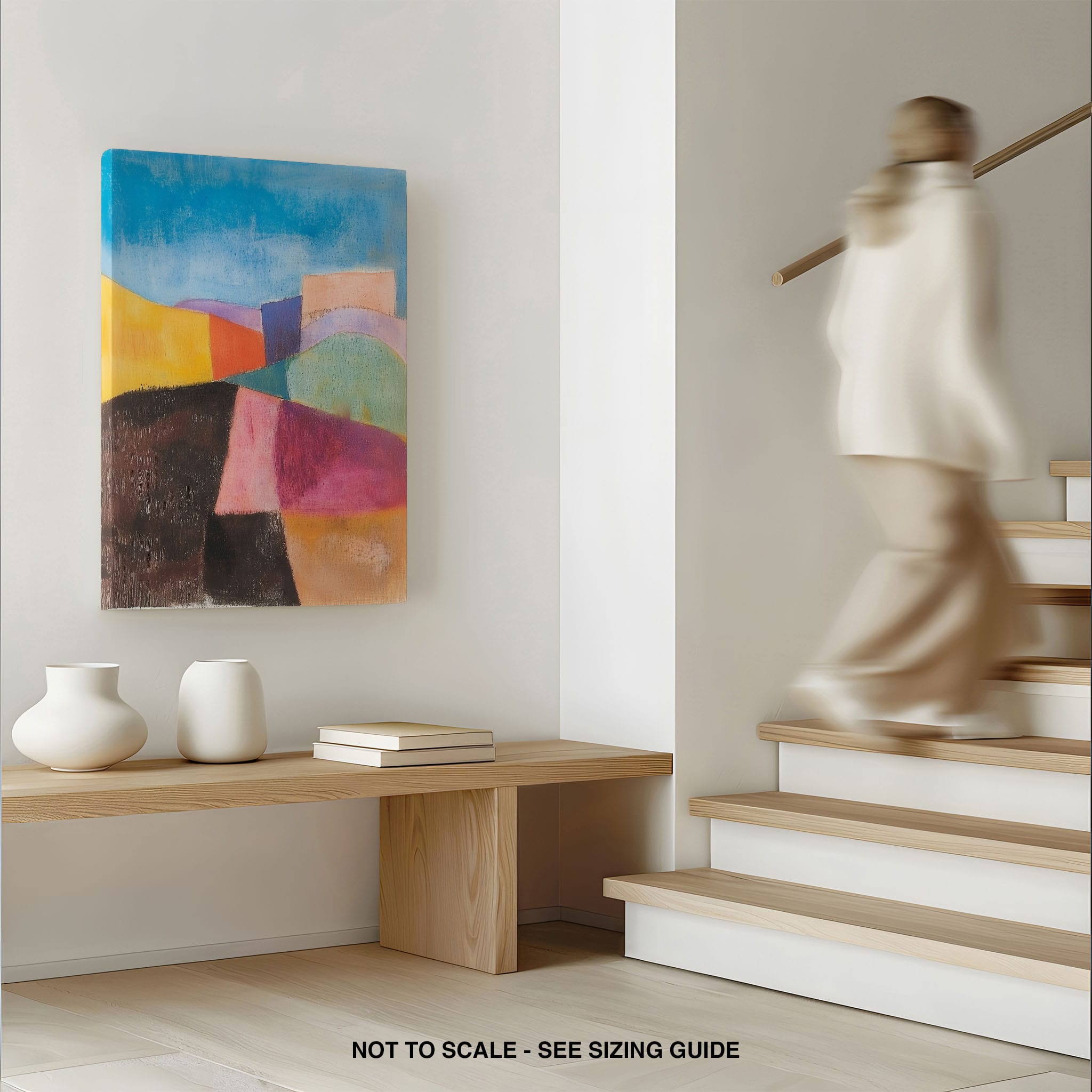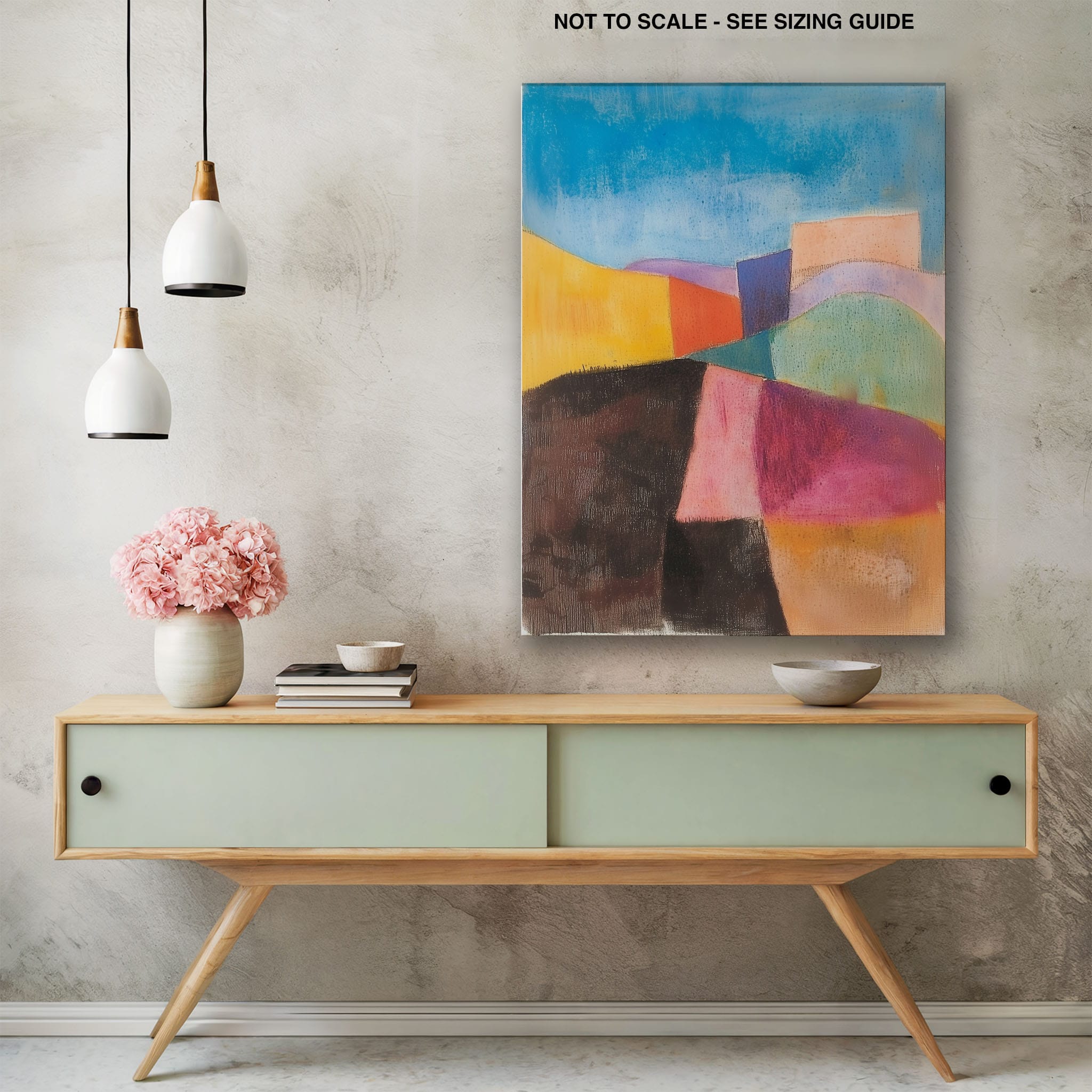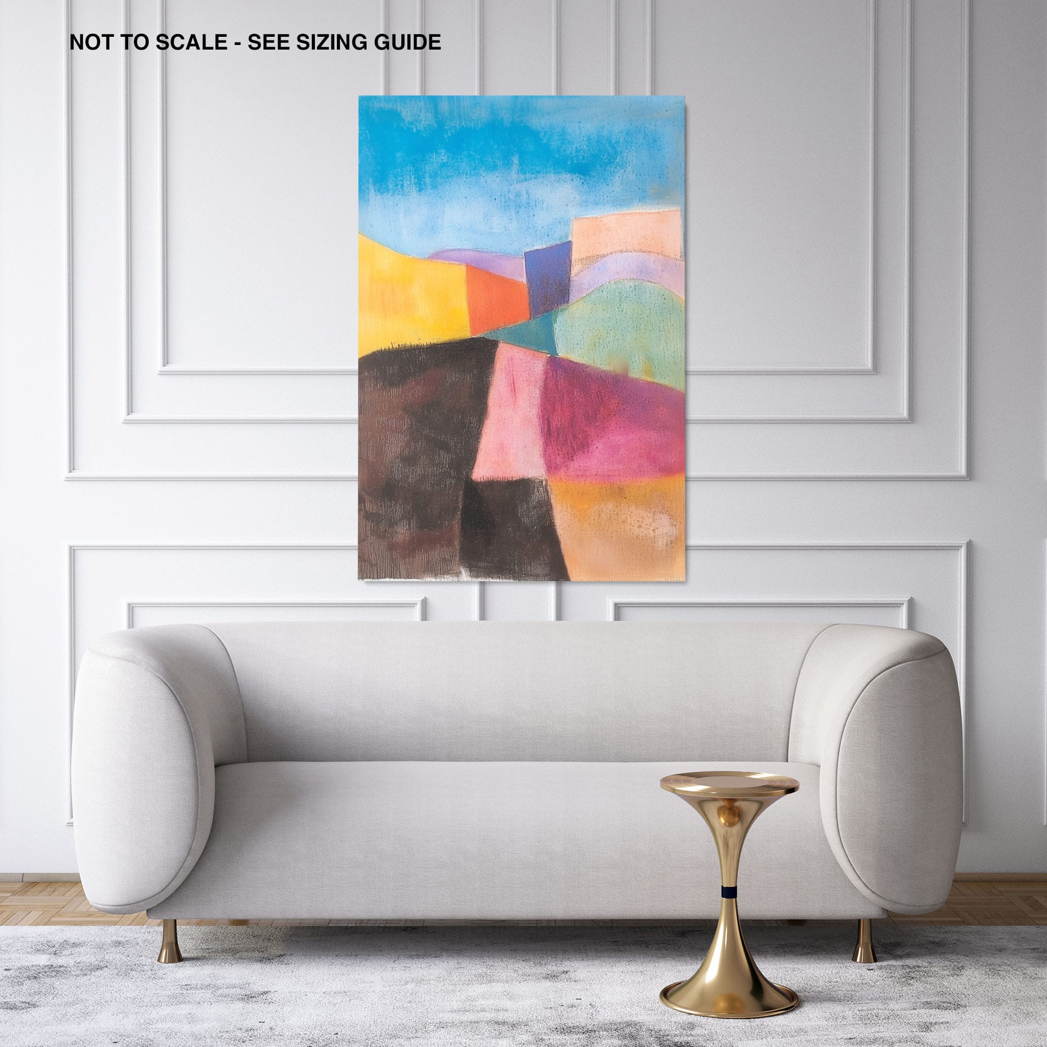This abstract digital painting weaves together bold blocks of color with expressive brush strokes to create a visually rich canvas that feels both spontaneous and thoughtfully arranged. Deep blue skies transition into vibrant oranges, sunlit yellows, and mysterious blacks, reflecting a dynamic emotional spectrum. Ideal for modern decor enthusiasts, this artwork enhances any room with a splash of color and a hint of modern expressionism. The striking use of geometry and color offers a fresh perspective on traditional abstract art, making it a must-have for any art lover looking to spice up their space.