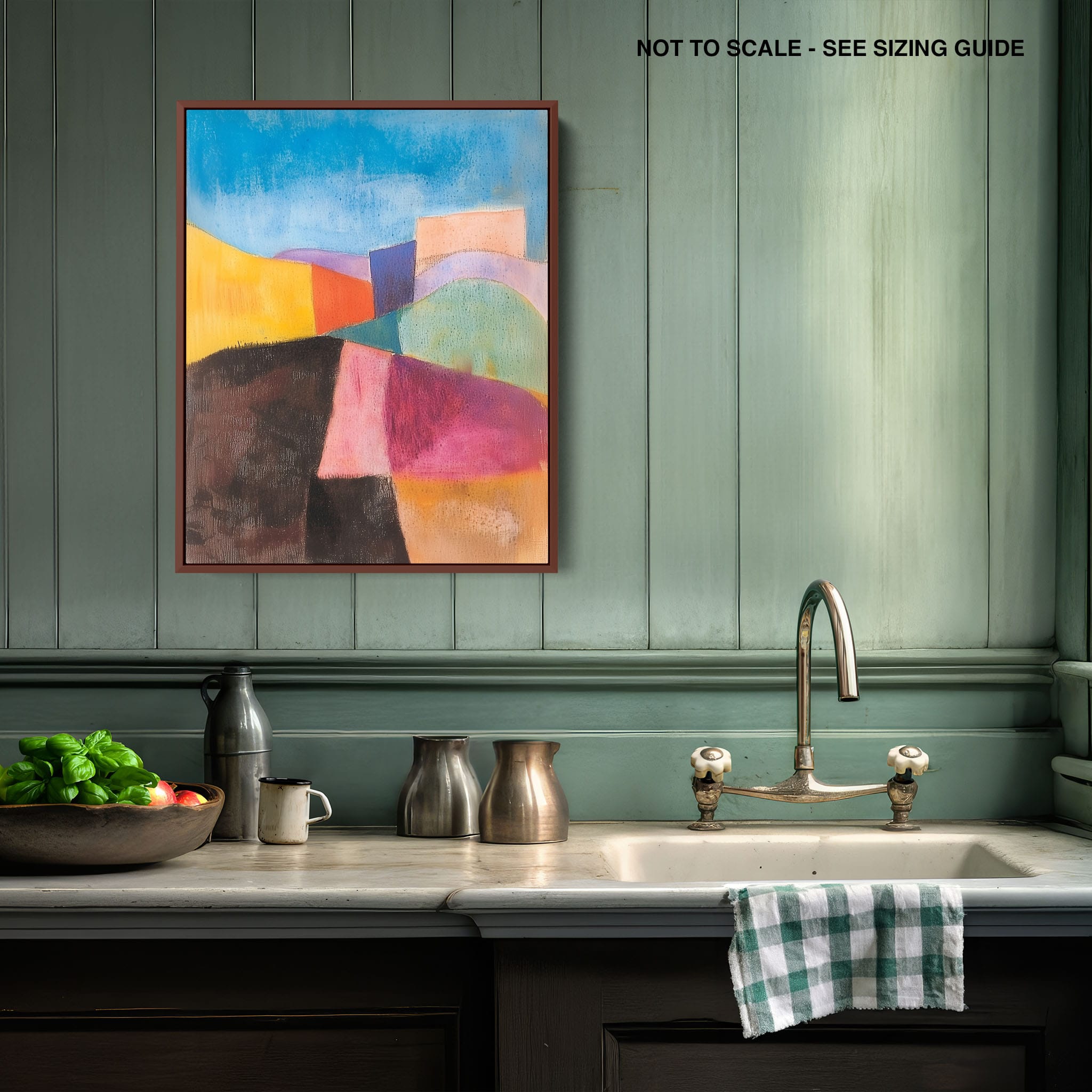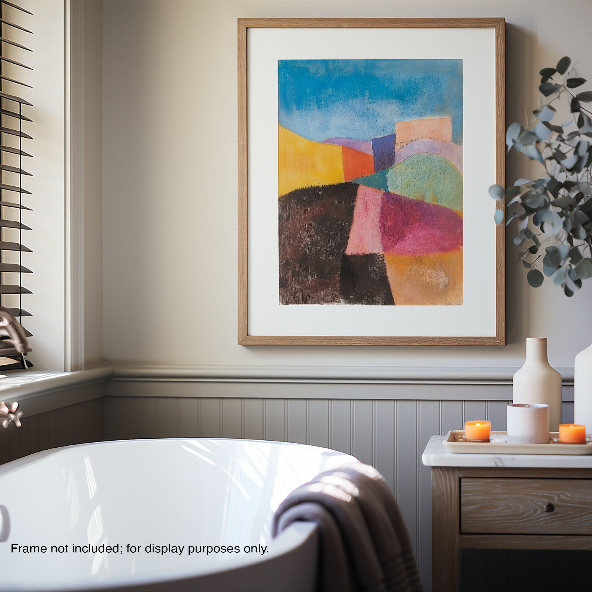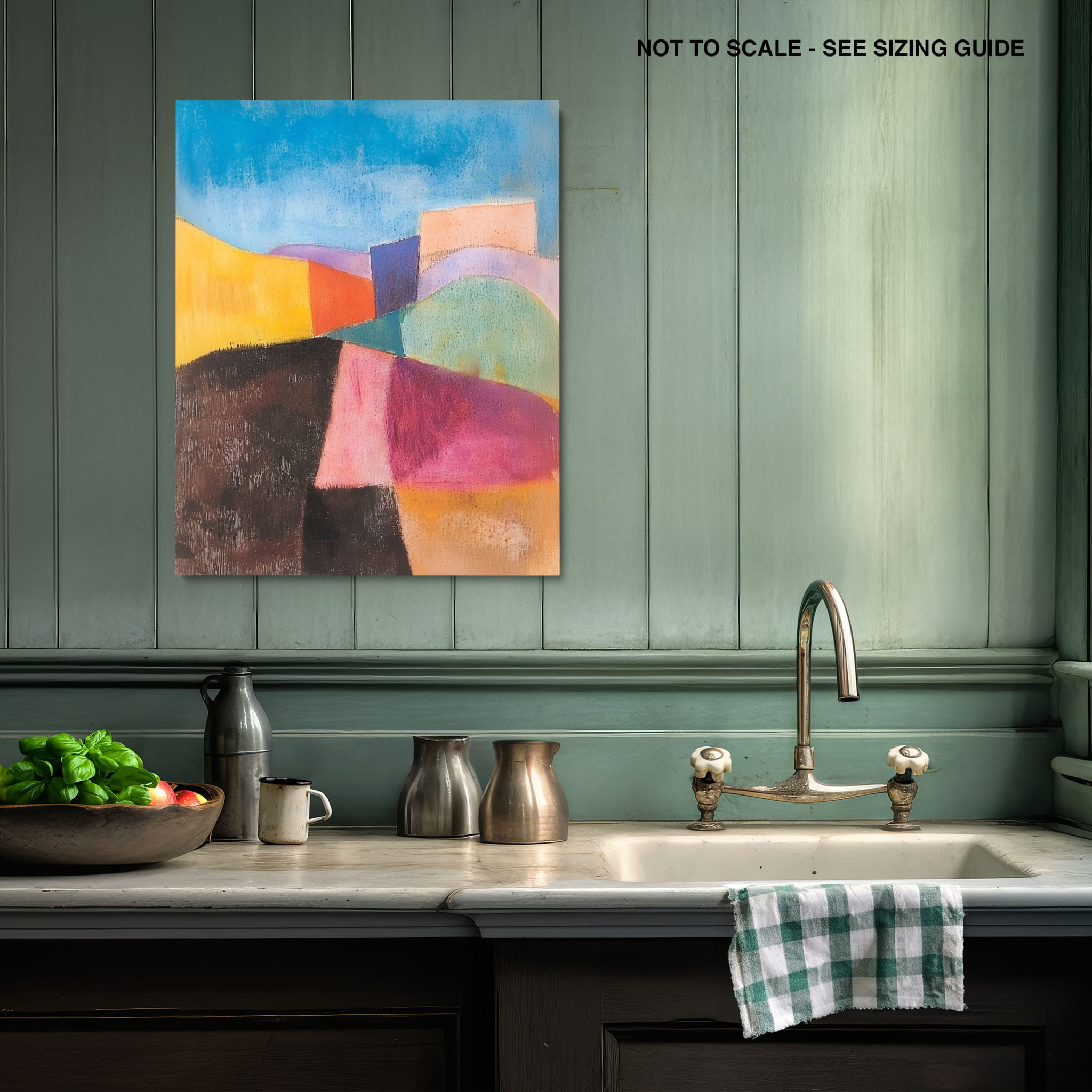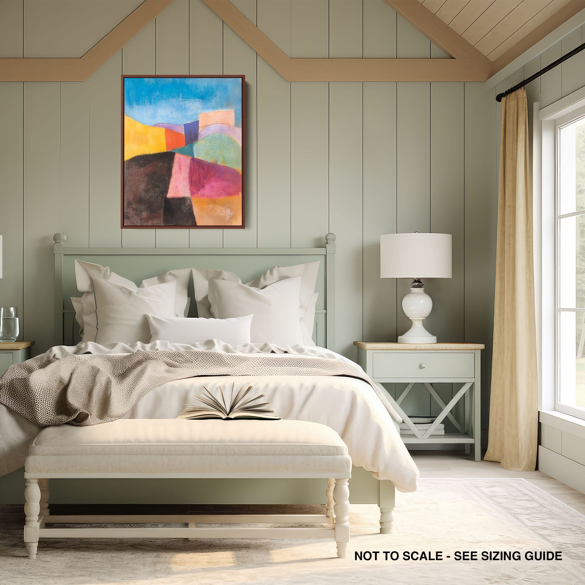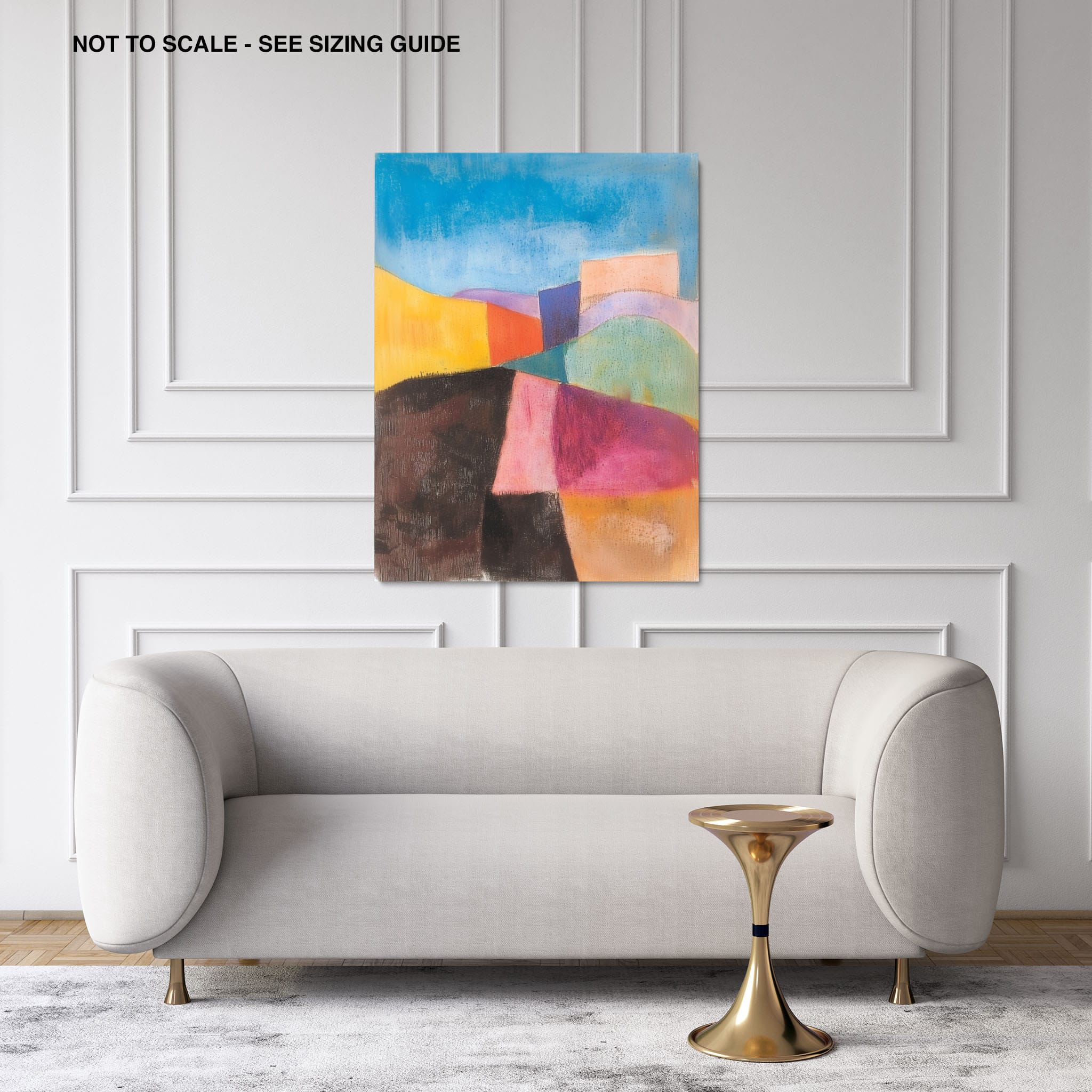This abstract digital painting weaves together bold blocks of color with expressive brush strokes to create a visually rich canvas that feels both spontaneous and thoughtfully arranged. Deep blue skies transition into vibrant oranges, sunlit yellows, and mysterious blacks, reflecting a dynamic emotional spectrum. Ideal for modern decor enthusiasts, this artwork enhances any room with a splash of color and a hint of modern expressionism. The striking use of geometry and color offers a fresh perspective on traditional abstract art, making it a must-have for any art lover looking to spice up their space.