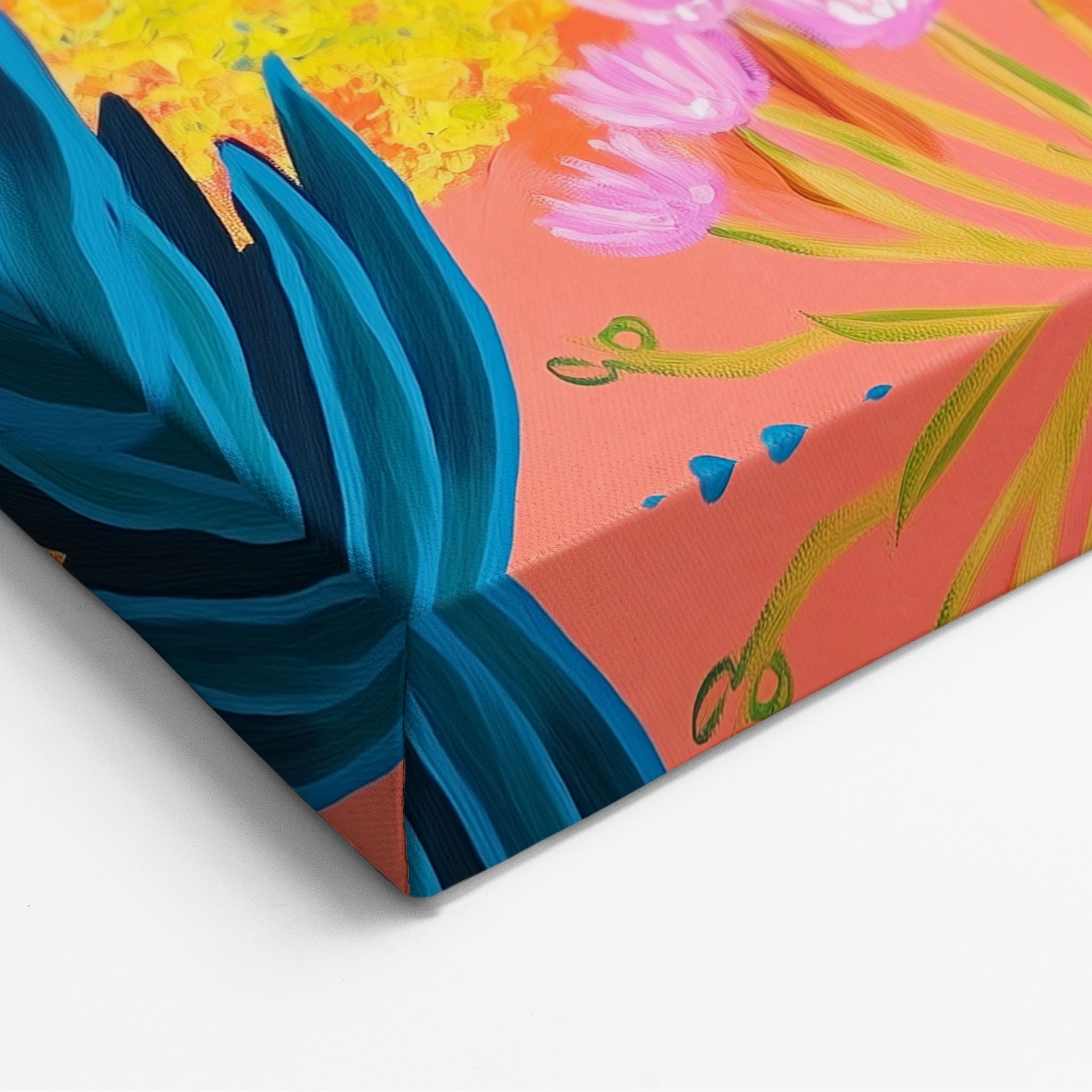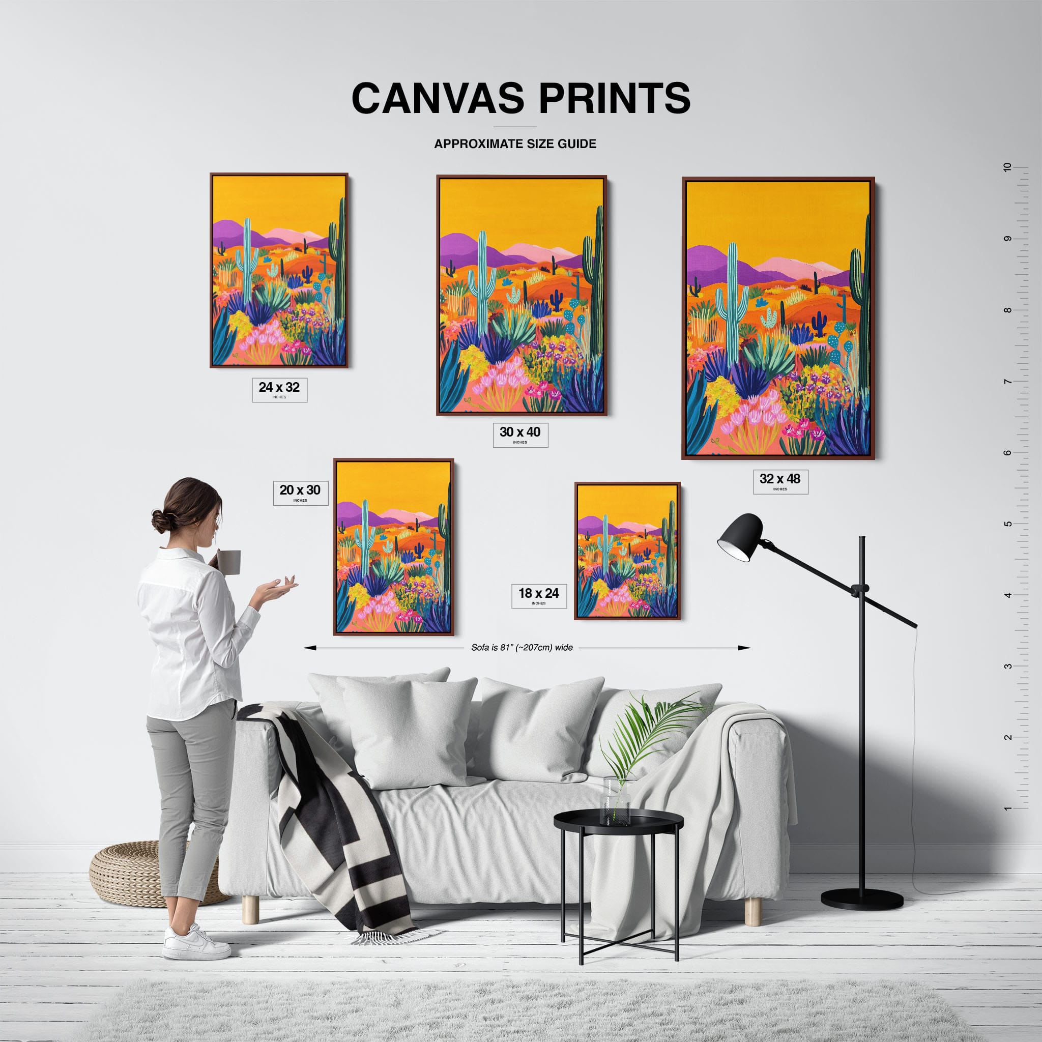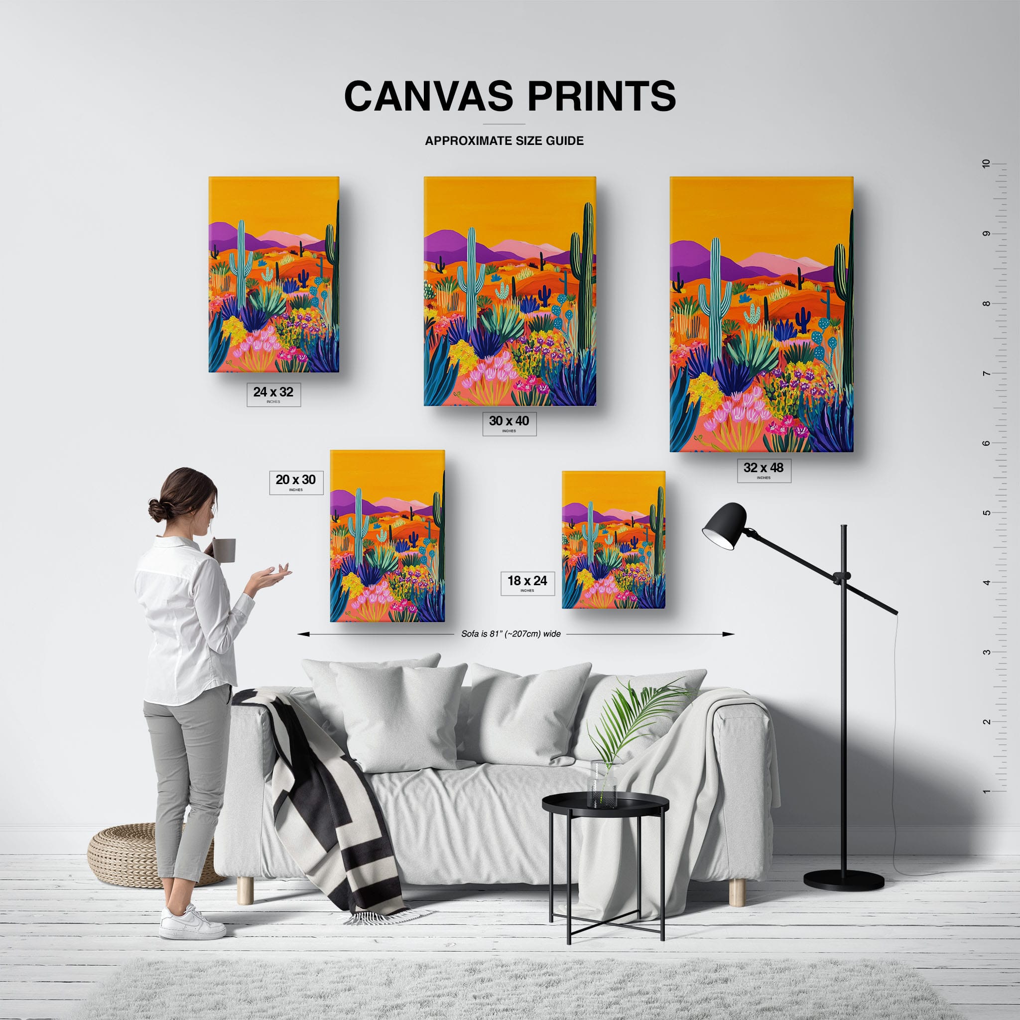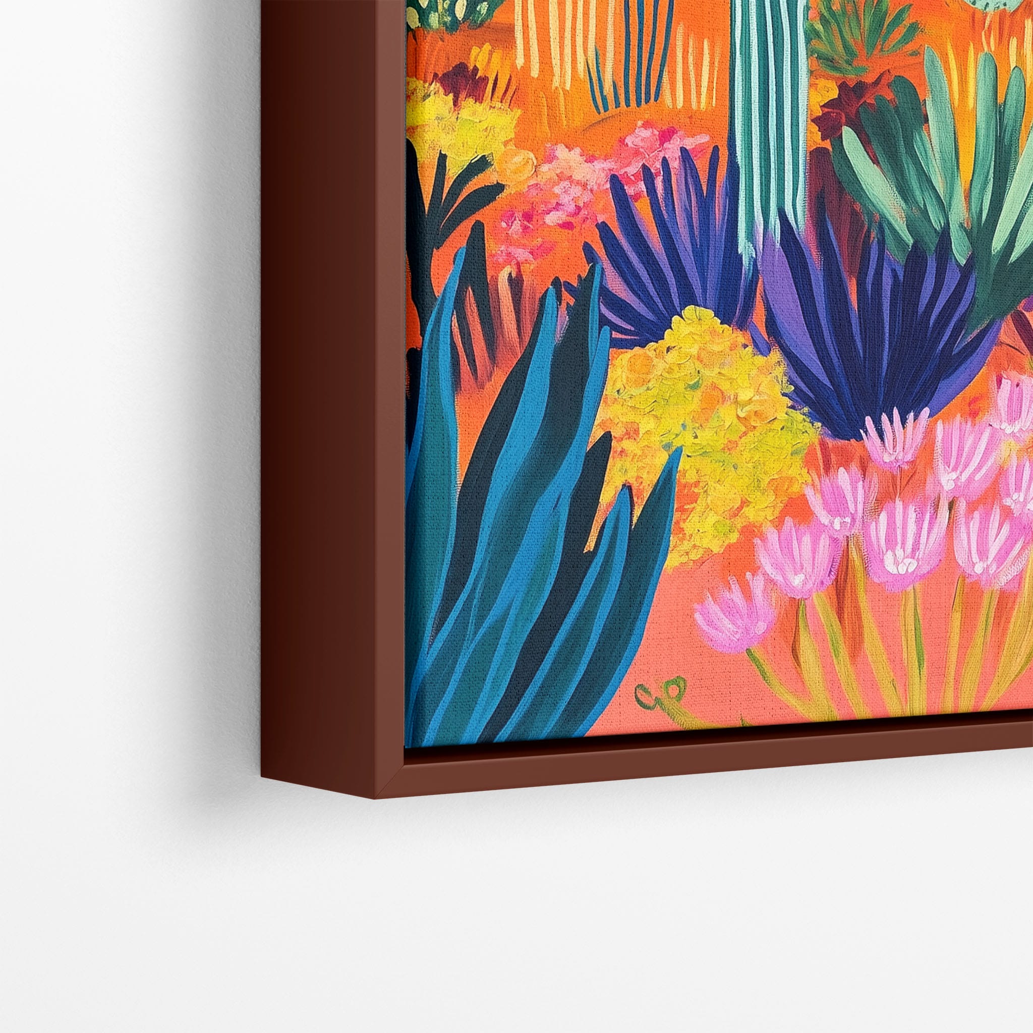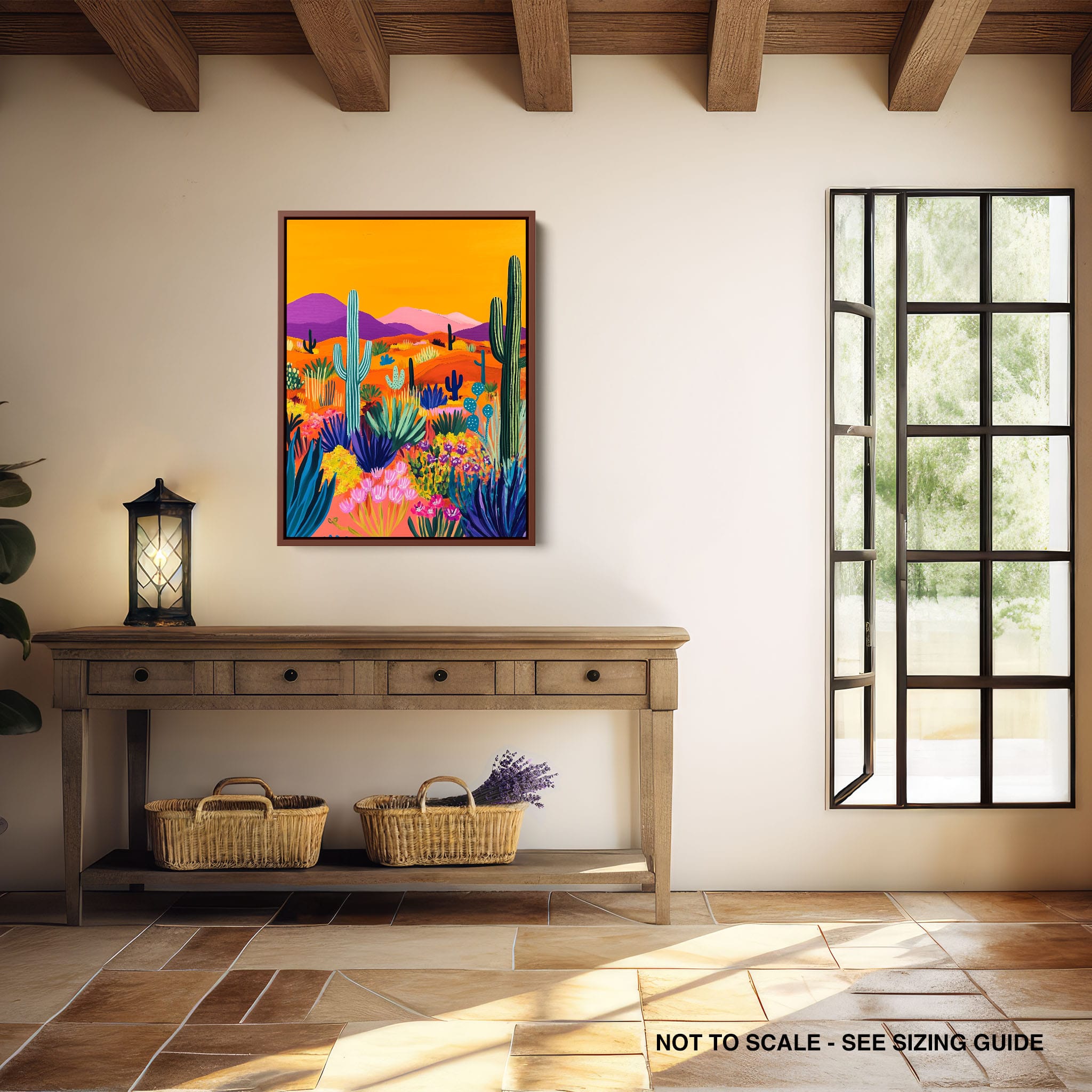 This digital illustration captures a vivid desert landscape, adorned with an array of cacti and foliage in bold, dynamic colors. The artwork blends abstract forms with impressionistic techniques, creating a lively and imaginative scene. The bright oranges and purples bring the desert environment to life, while the intricate details of the cacti and plants invite exploration. Perfect for art enthusiasts looking for a statement piece, this artwork adds a burst of color and a touch of nature-inspired whimsy to any space. Ideal for lovers of abstract and impressionist art, it showcases the beauty of desert flora in an innovative and eye-catching way.