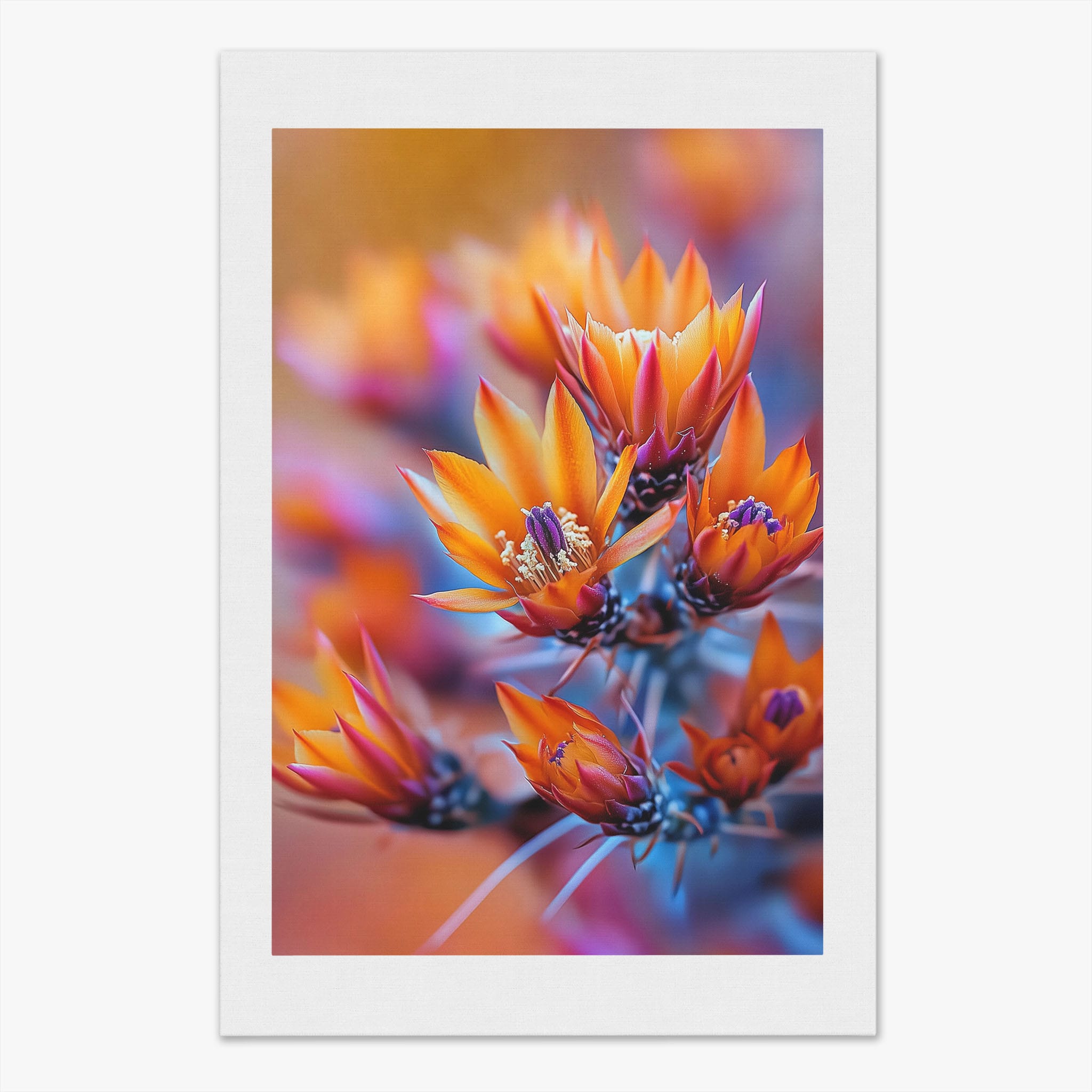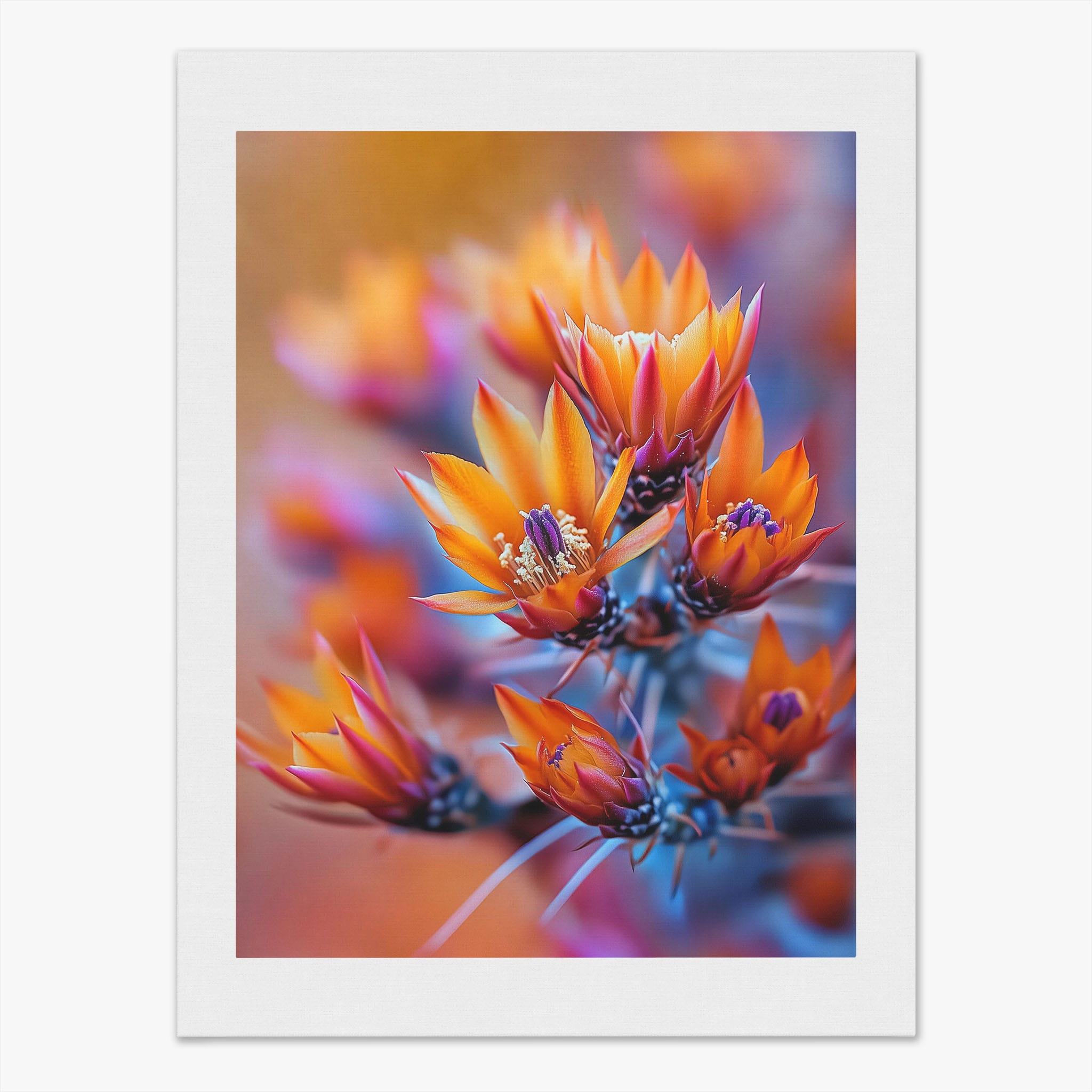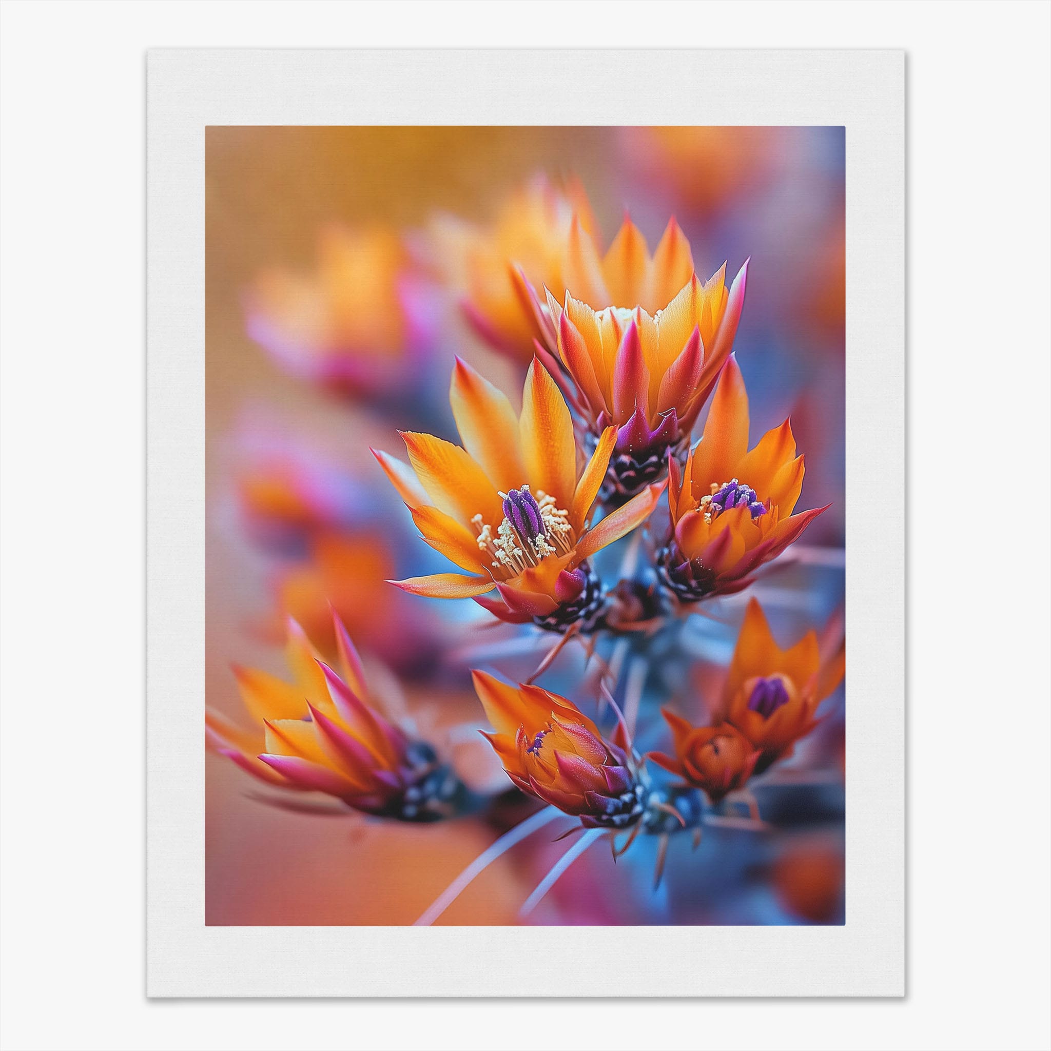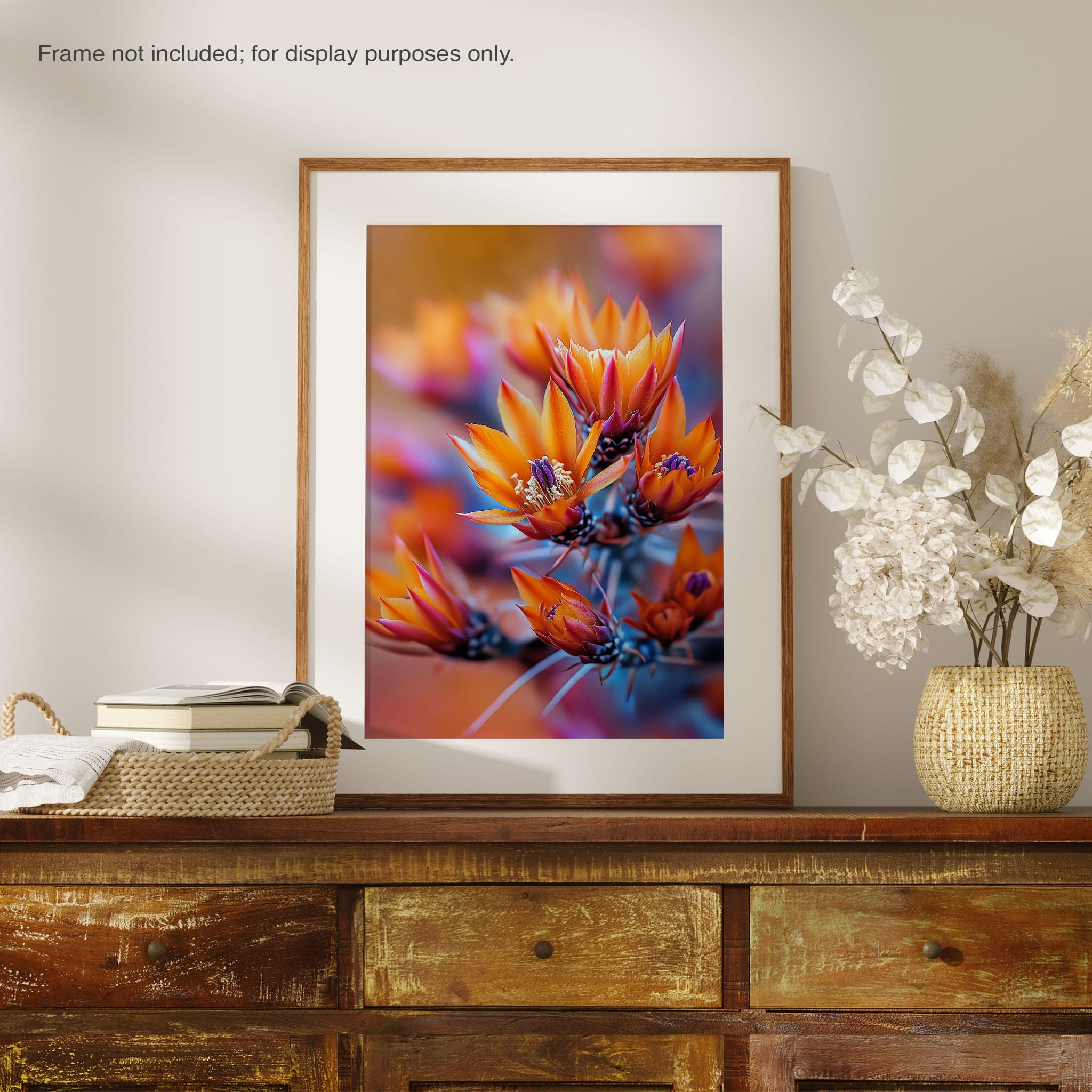 This vivid, high-resolution photographic print captures the exquisite detail and radiant colors of blooming flowers, invoking the essence of nature’s beauty. Carefully focused to highlight the orange and violet hues against a softened background, this piece showcases the intricate textures and crisp contrasts that draw the eye. A perfect choice for those who appreciate the delicate interplay of light and color in floral photography, it promises to add a touch of realism and tranquility to any space. Add this stunning depiction to your home or office to bring a fresh, natural element indoors.