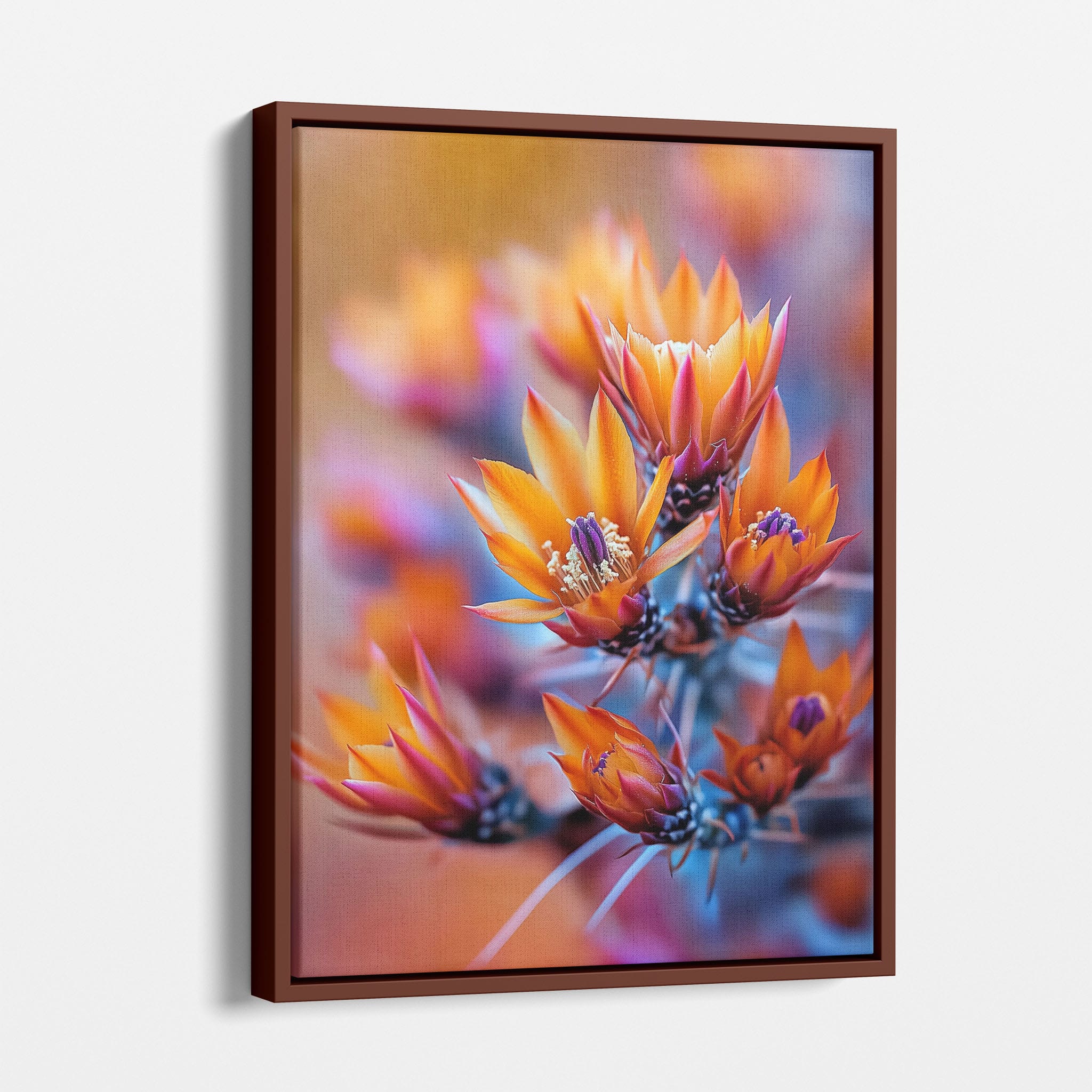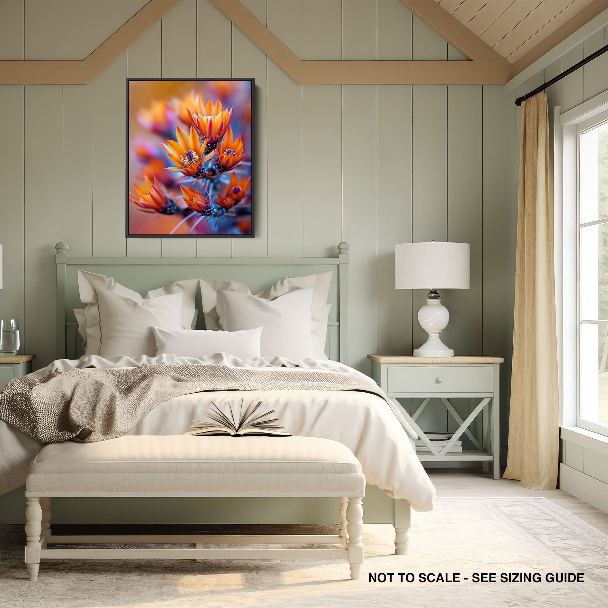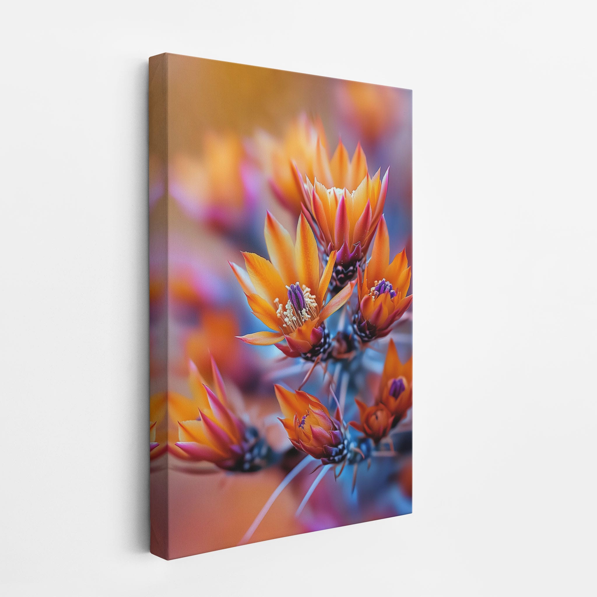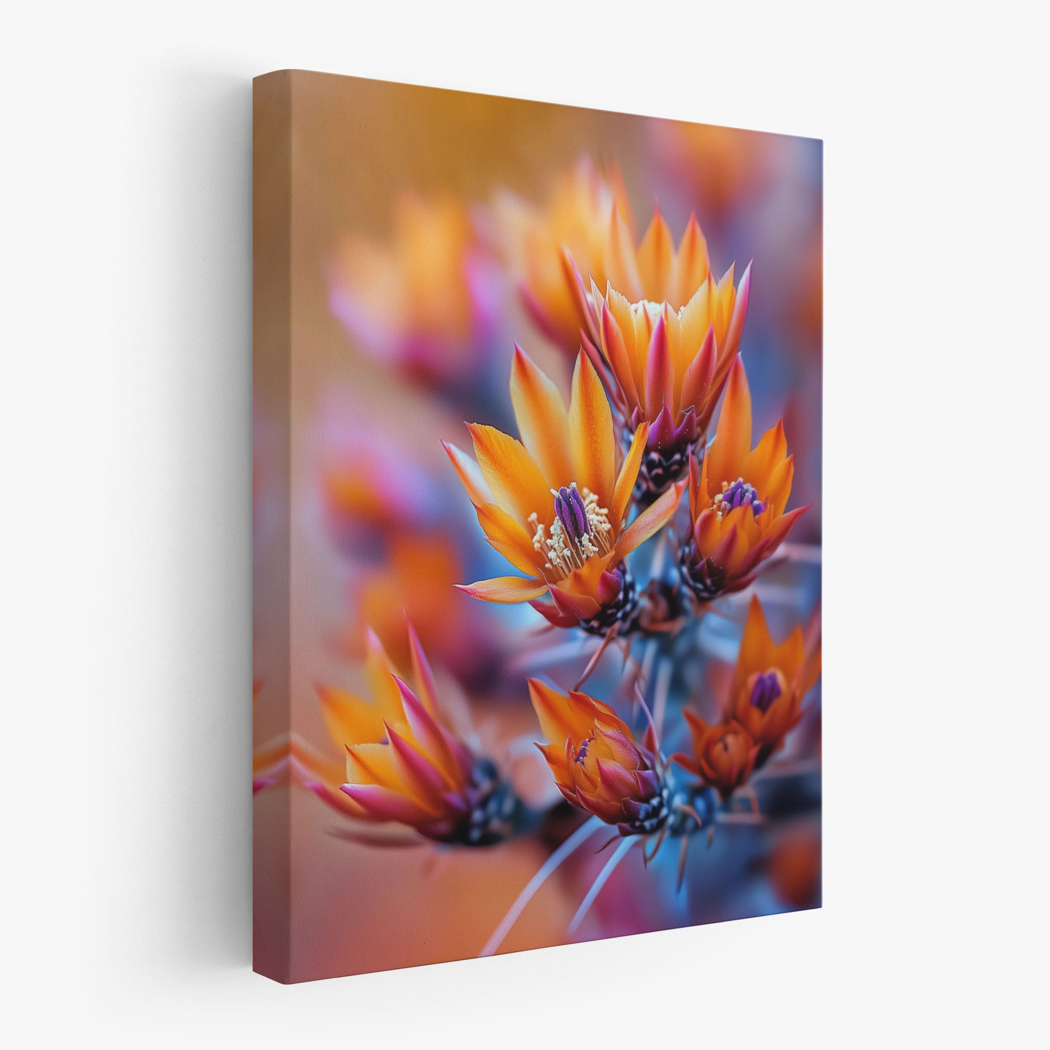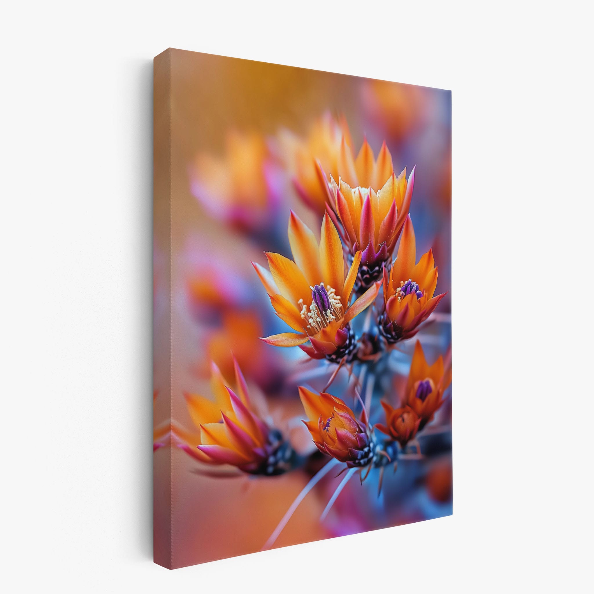 This vivid, high-resolution photographic print captures the exquisite detail and radiant colors of blooming flowers, invoking the essence of nature’s beauty. Carefully focused to highlight the orange and violet hues against a softened background, this piece showcases the intricate textures and crisp contrasts that draw the eye. A perfect choice for those who appreciate the delicate interplay of light and color in floral photography, it promises to add a touch of realism and tranquility to any space. Add this stunning depiction to your home or office to bring a fresh, natural element indoors.