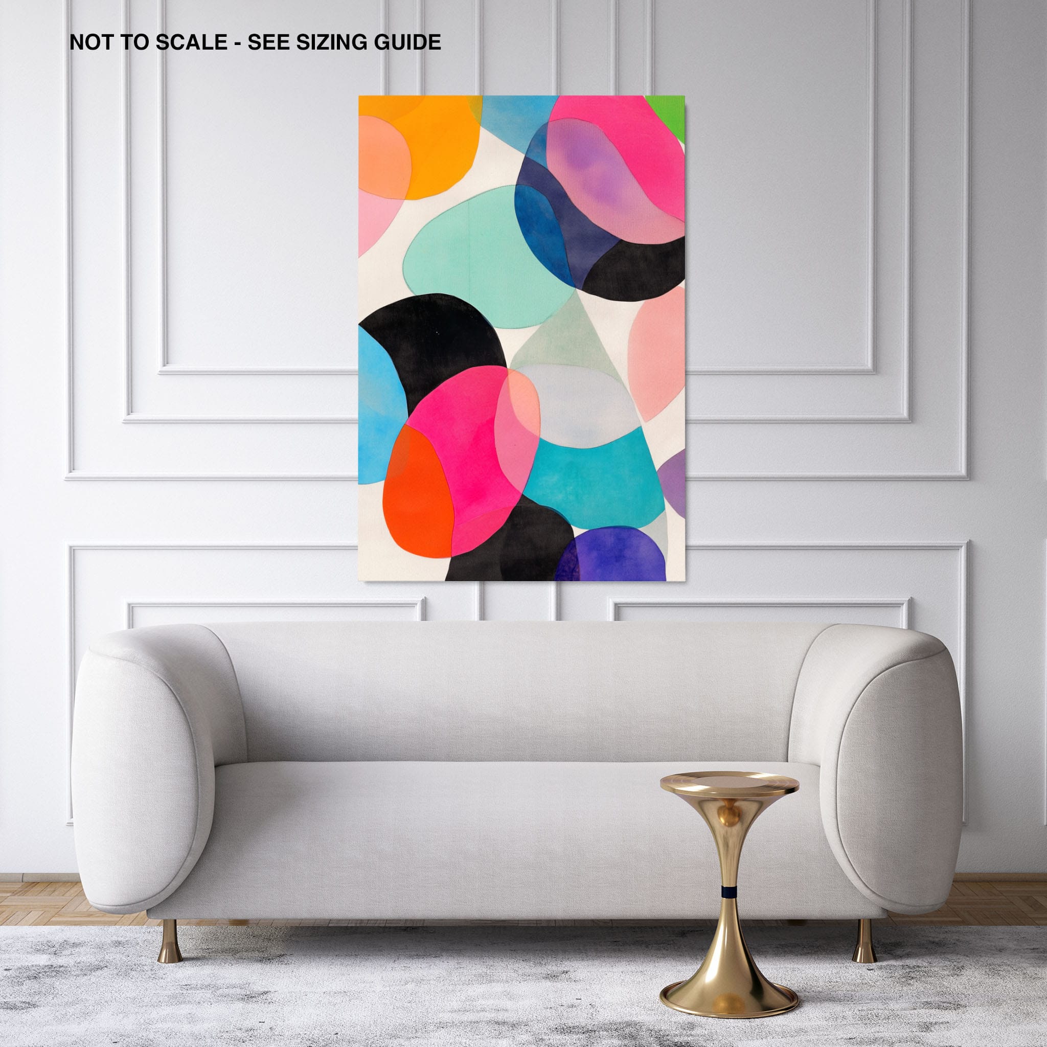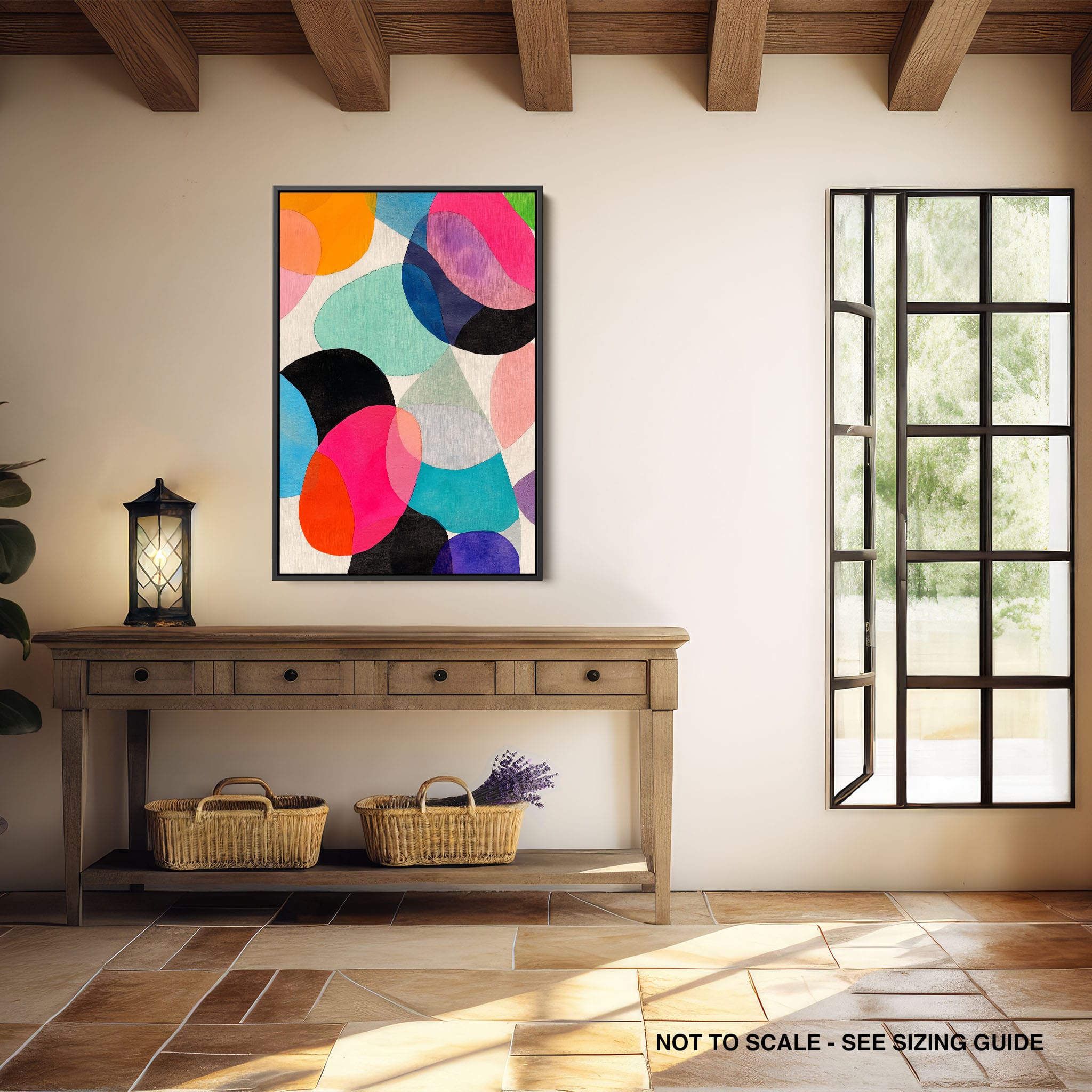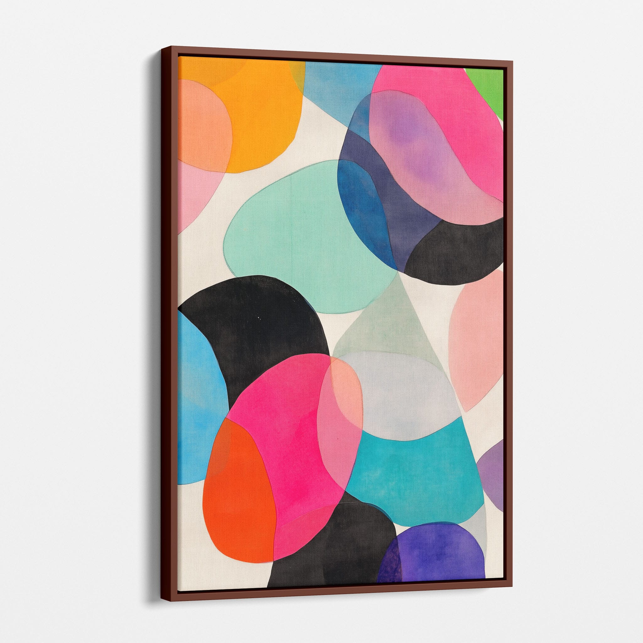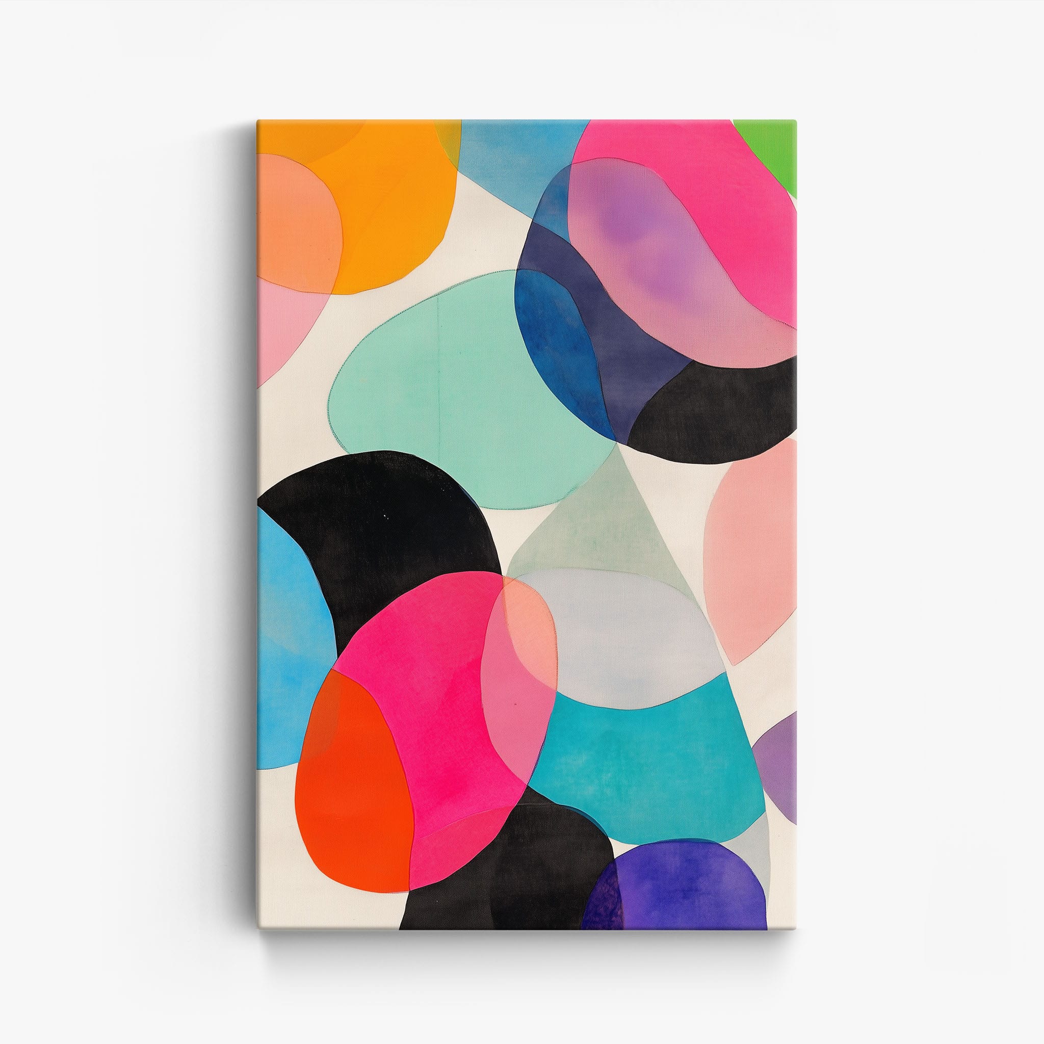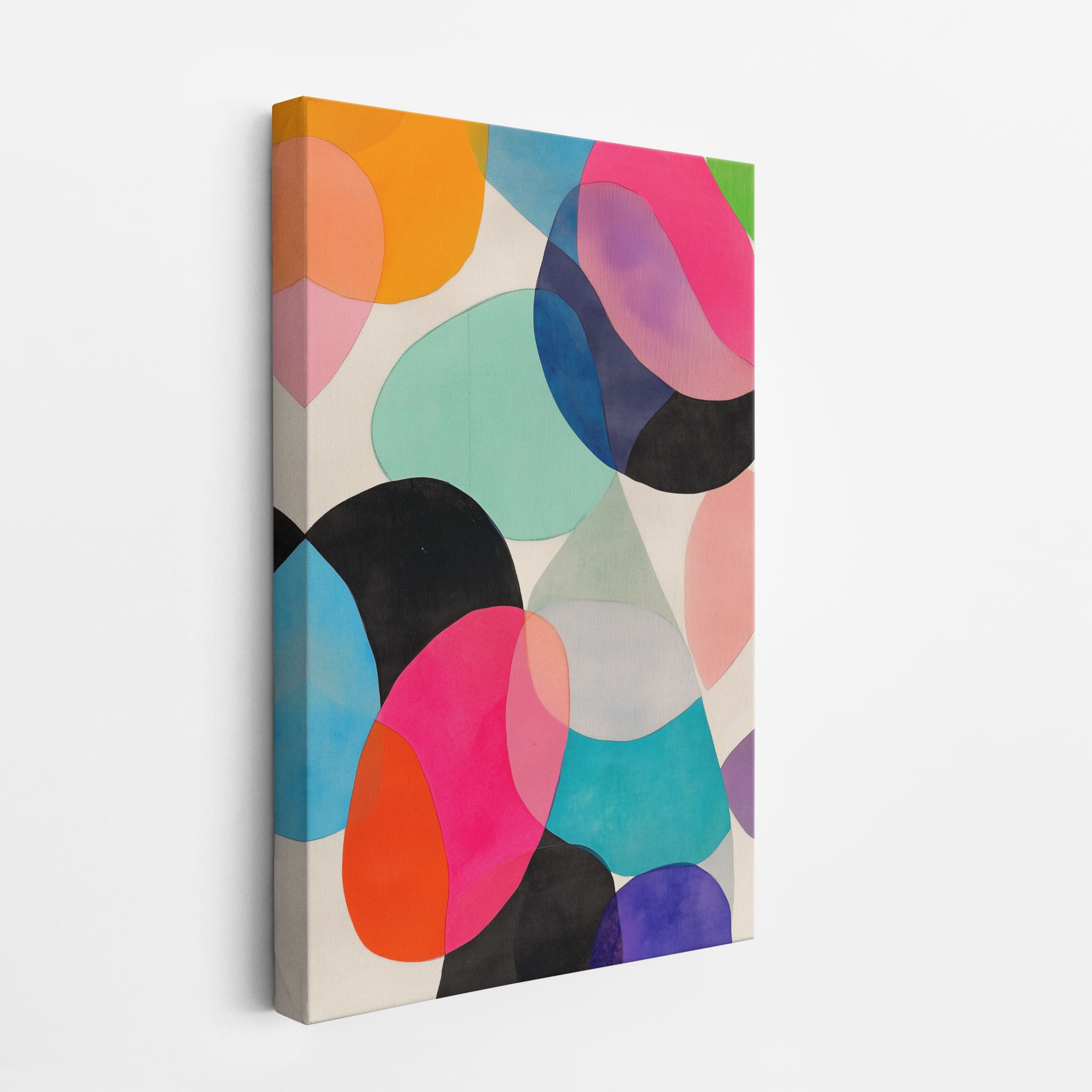This painting features a mesmerizing arrangement of overlapping geometric shapes, each rendered in a brilliant and distinctive color palette. The forms, varying in opacity, interact to create a layered depth that captures and engages the viewer's eye. Ideal for modern art lovers, this abstract and geometric piece uses rich blues, fiery reds, and soothing greens to transform any room into a lively yet sophisticated space. It's perfect for those looking to add a touch of modern elegance and visual excitement to their home or office.