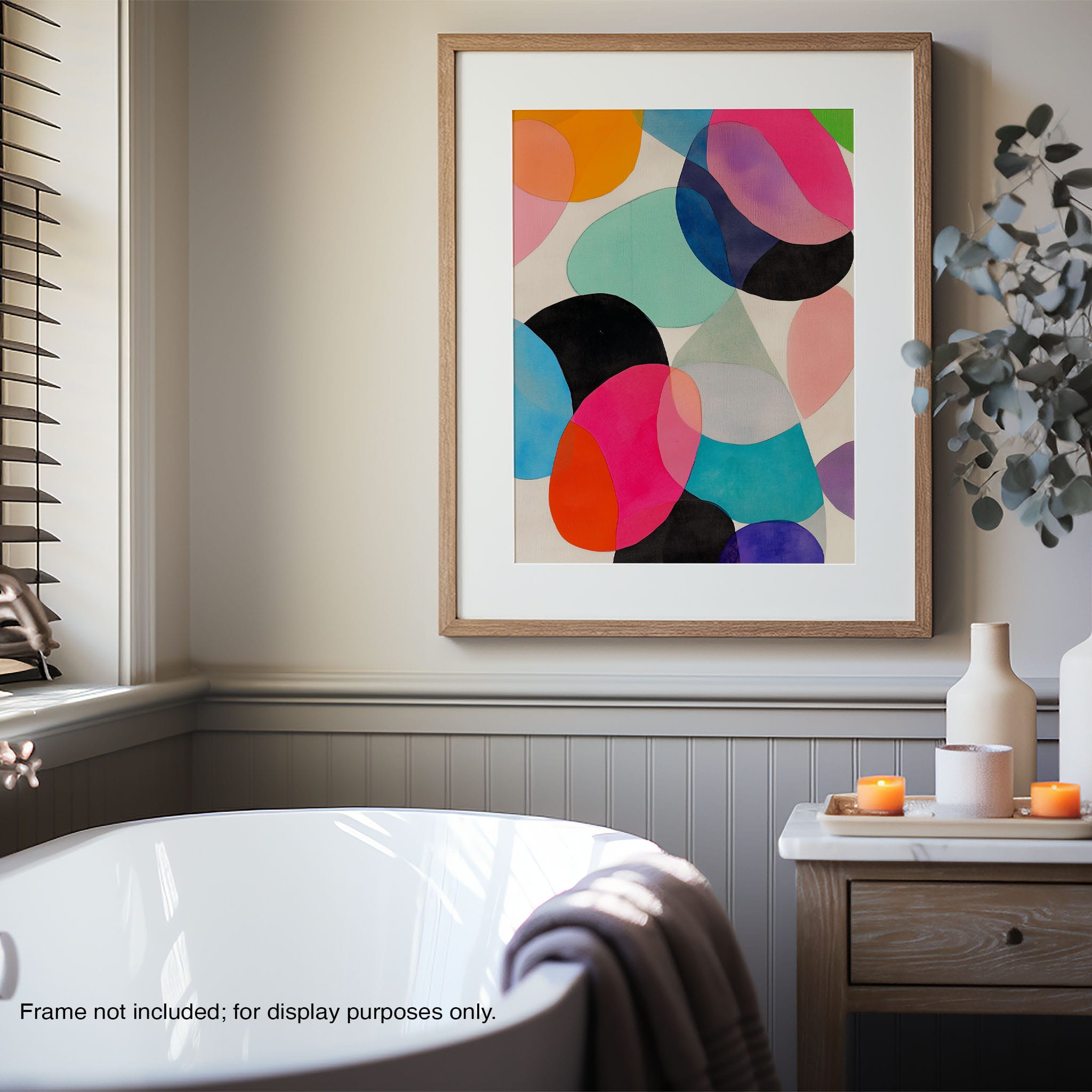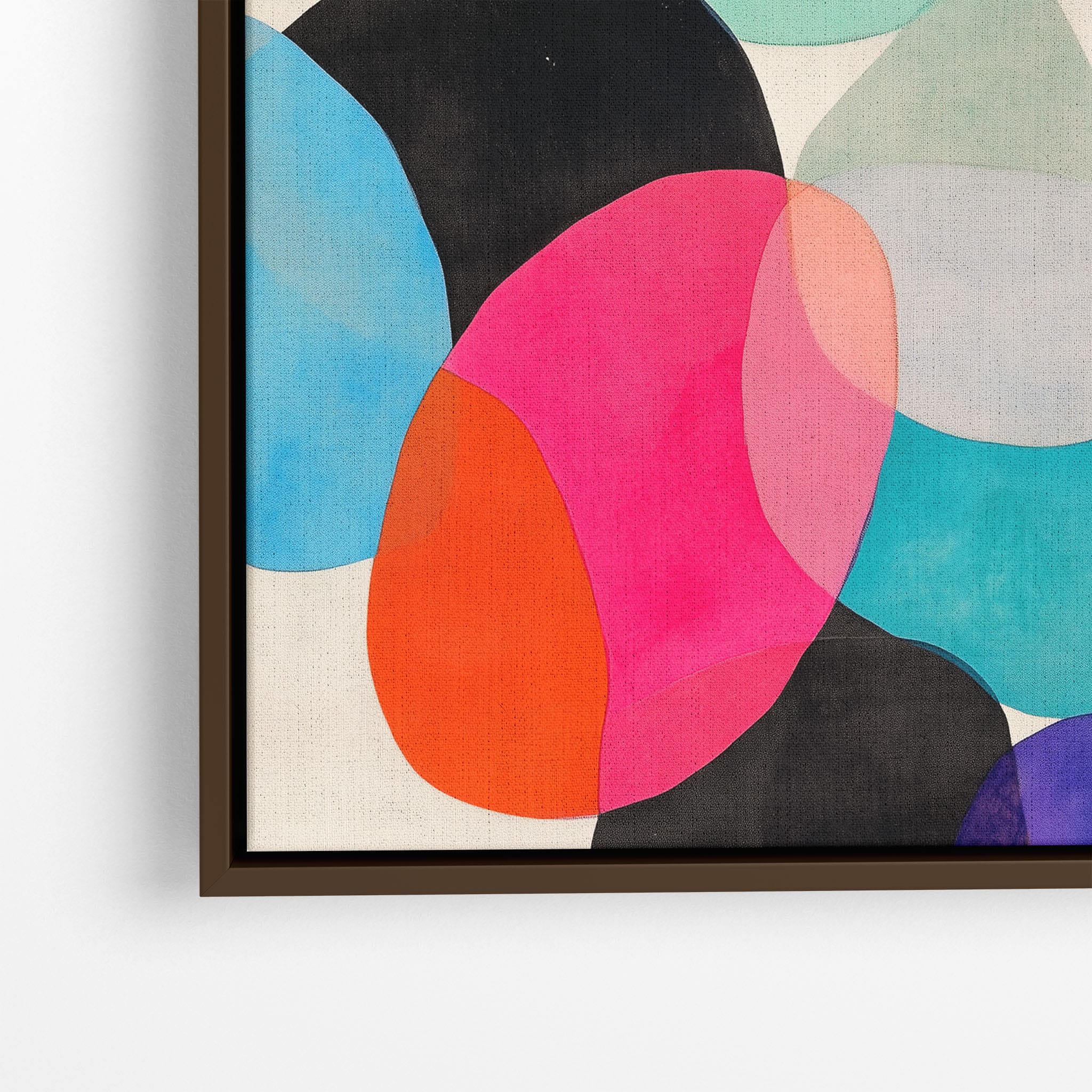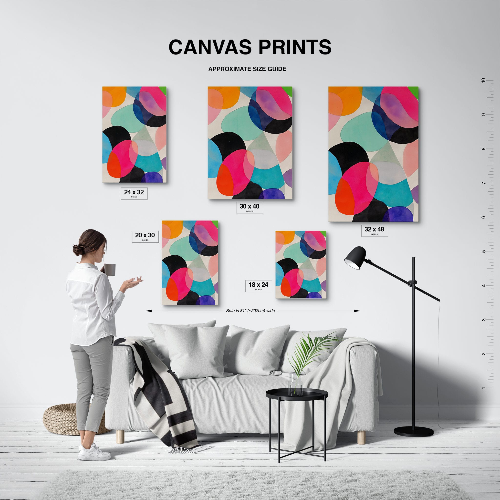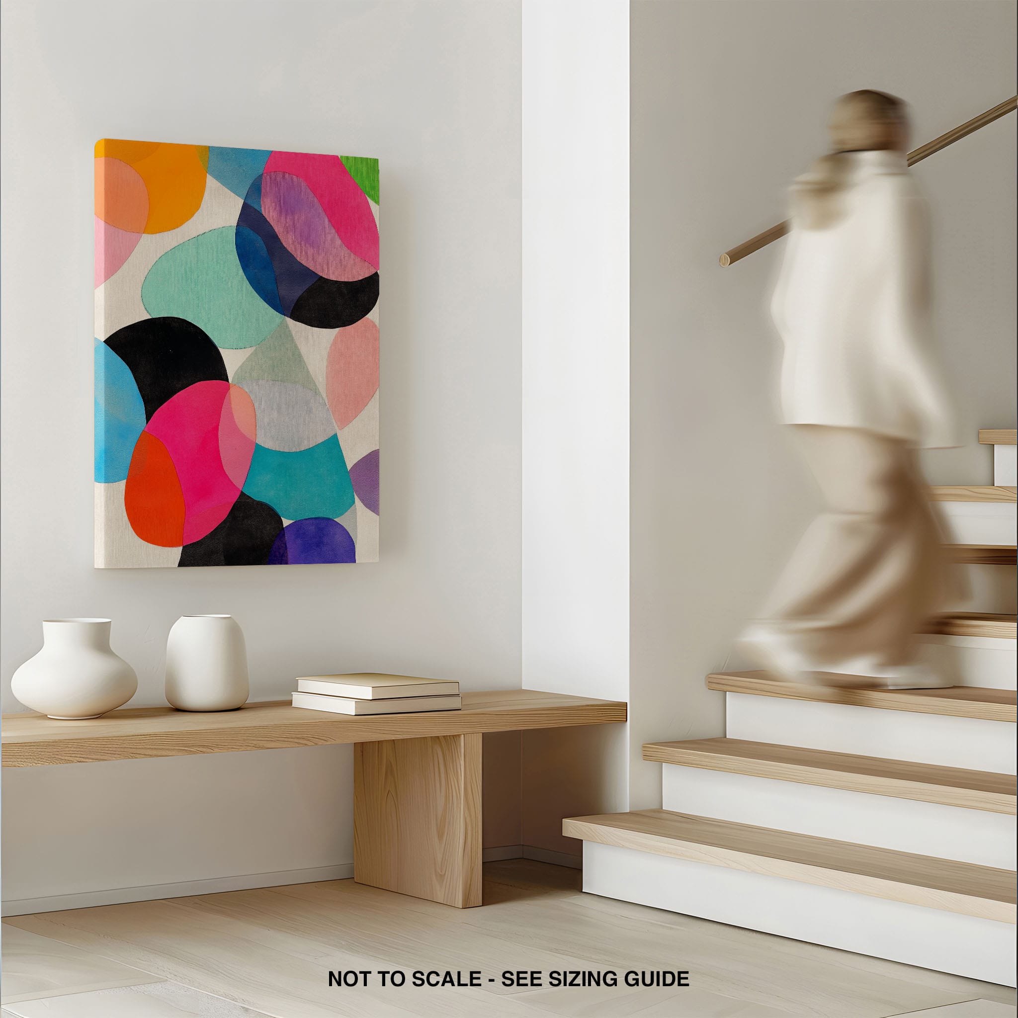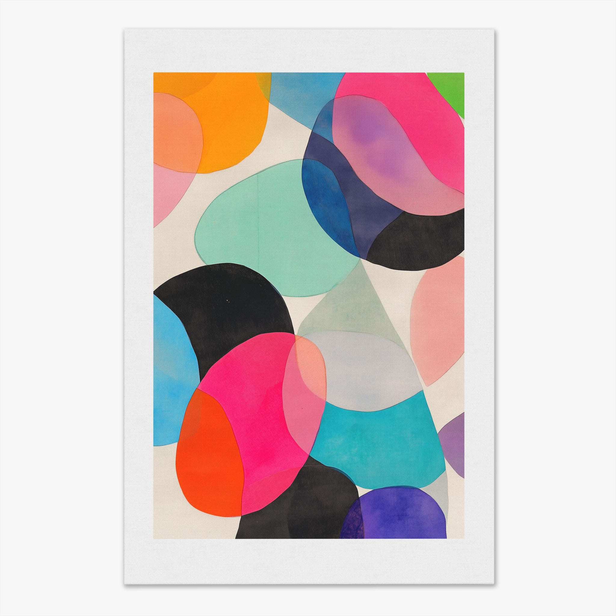 This painting features a mesmerizing arrangement of overlapping geometric shapes, each rendered in a brilliant and distinctive color palette. The forms, varying in opacity, interact to create a layered depth that captures and engages the viewer's eye. Ideal for modern art lovers, this abstract and geometric piece uses rich blues, fiery reds, and soothing greens to transform any room into a lively yet sophisticated space. It's perfect for those looking to add a touch of modern elegance and visual excitement to their home or office.