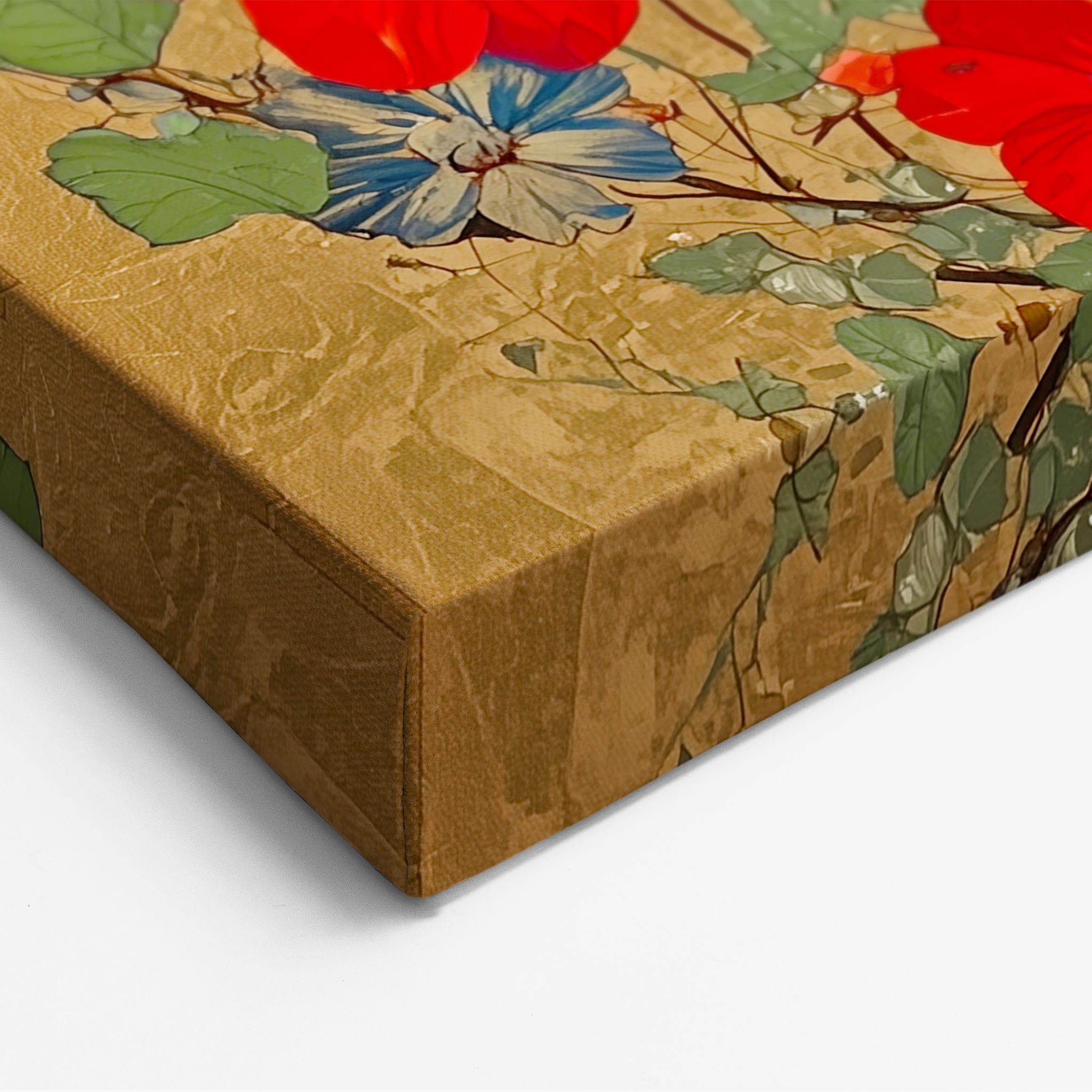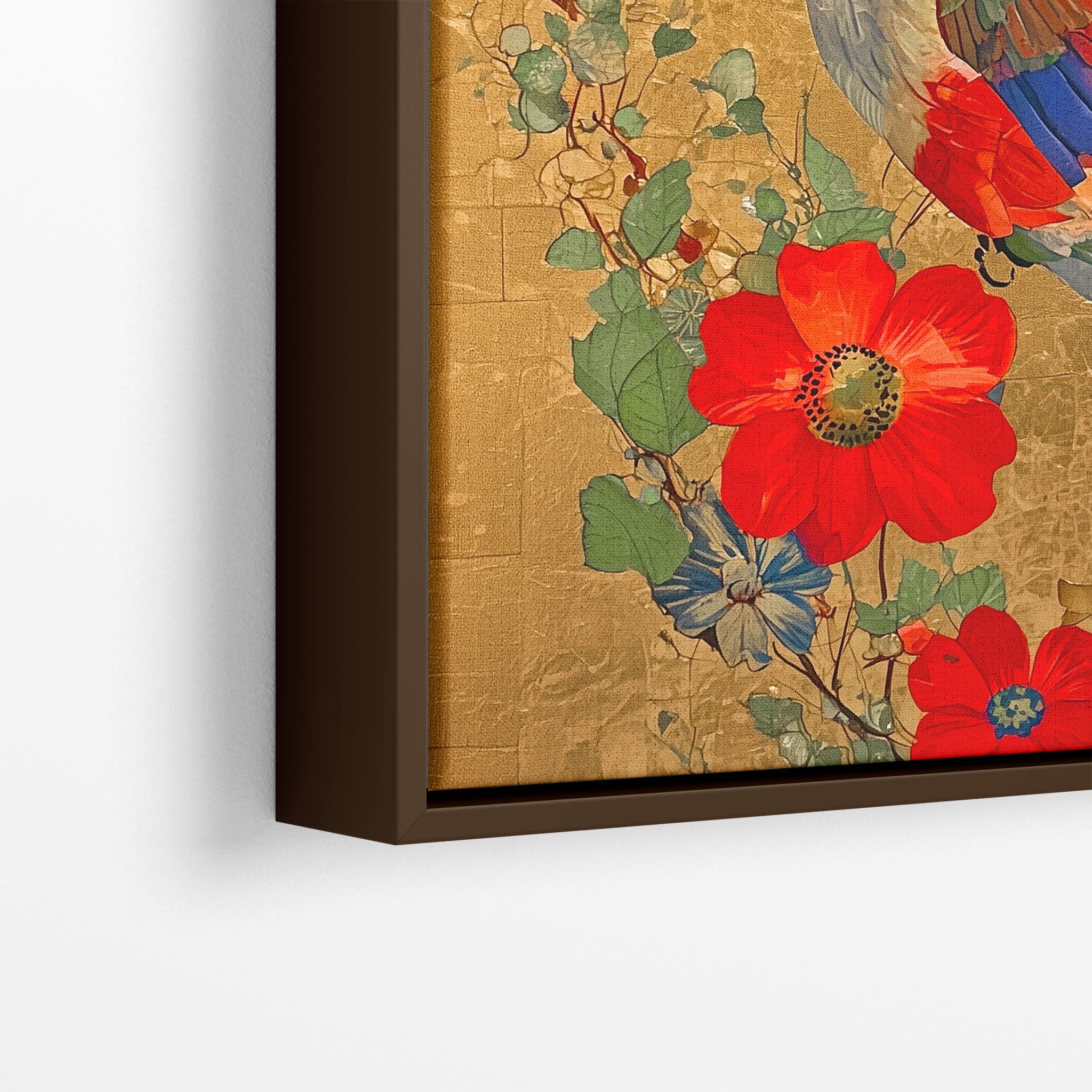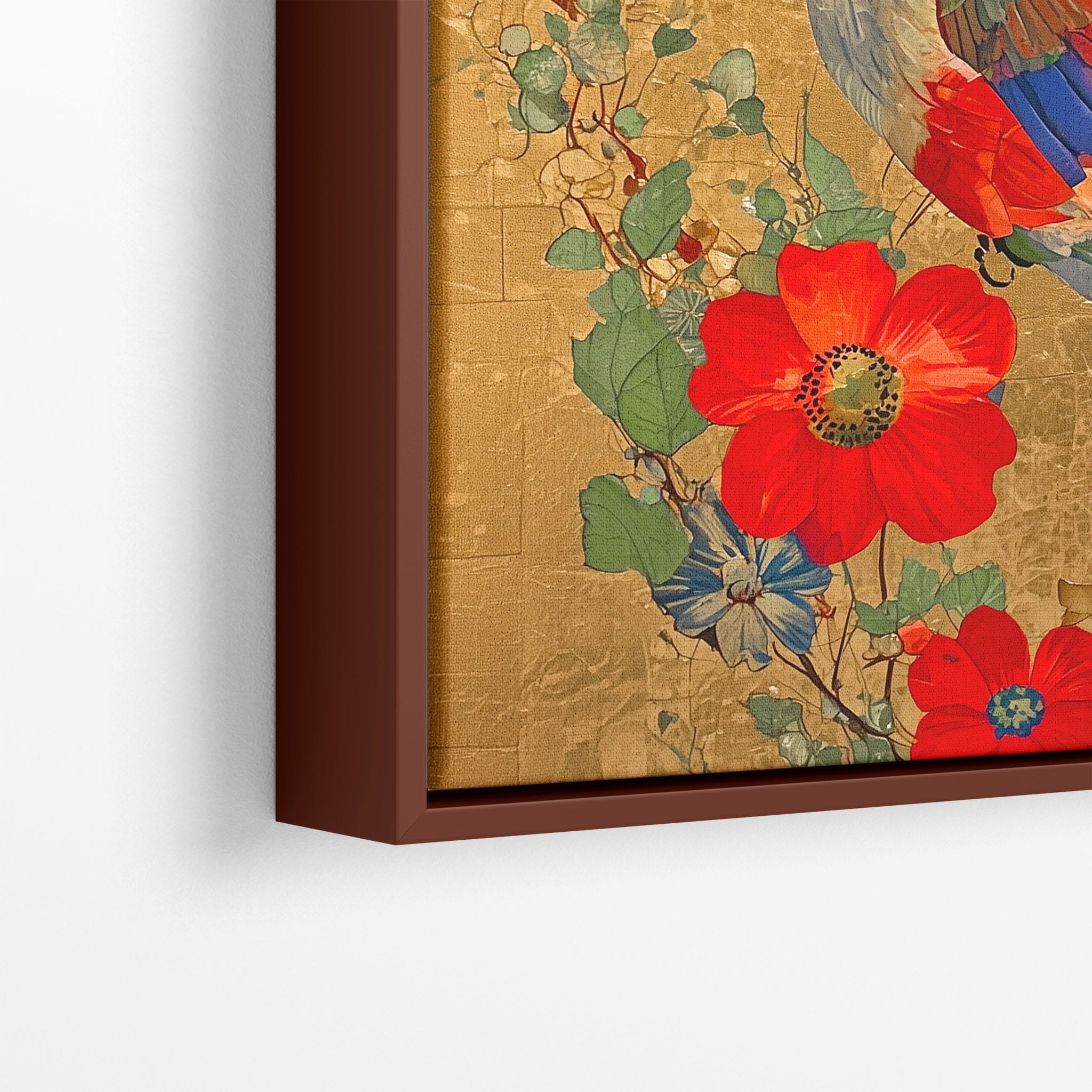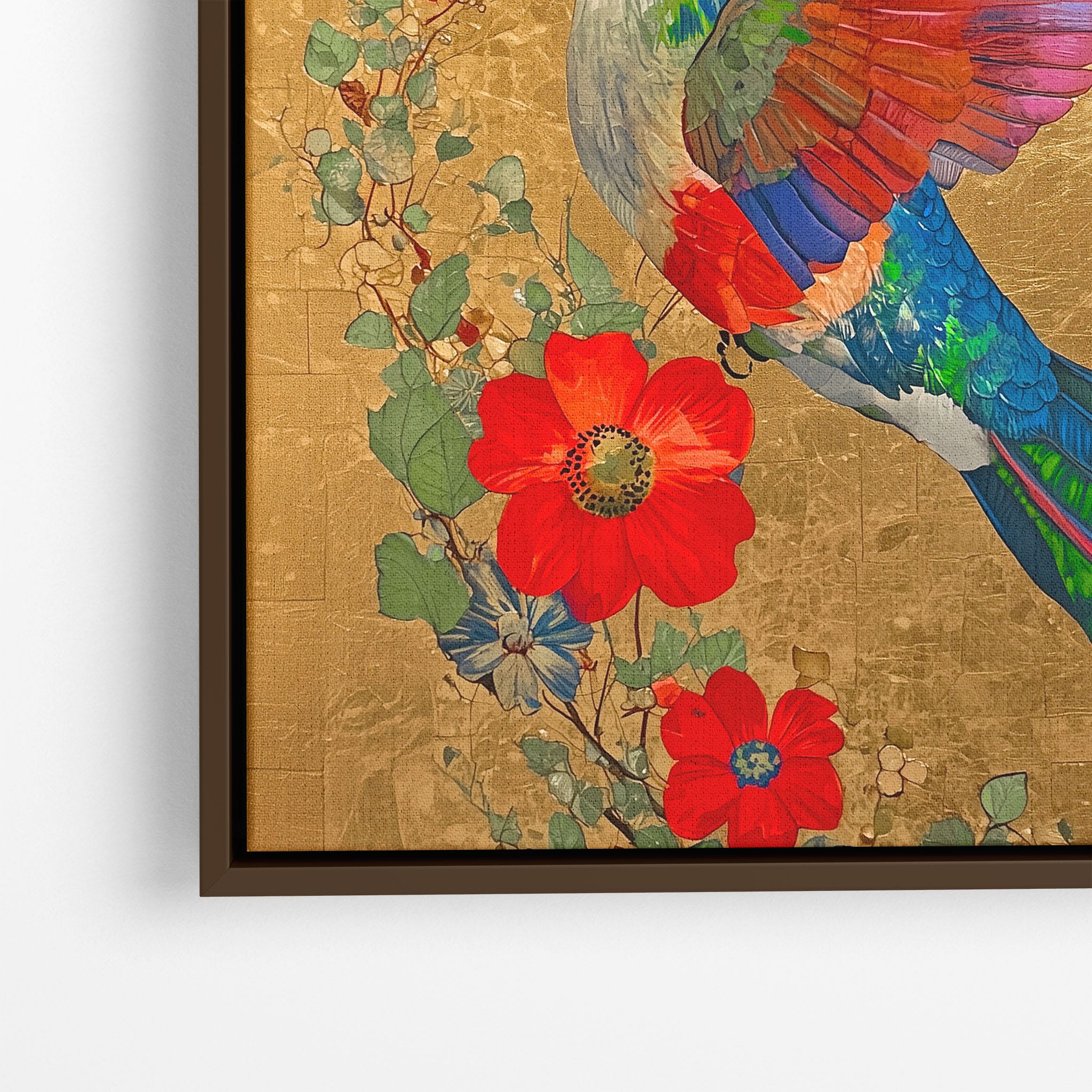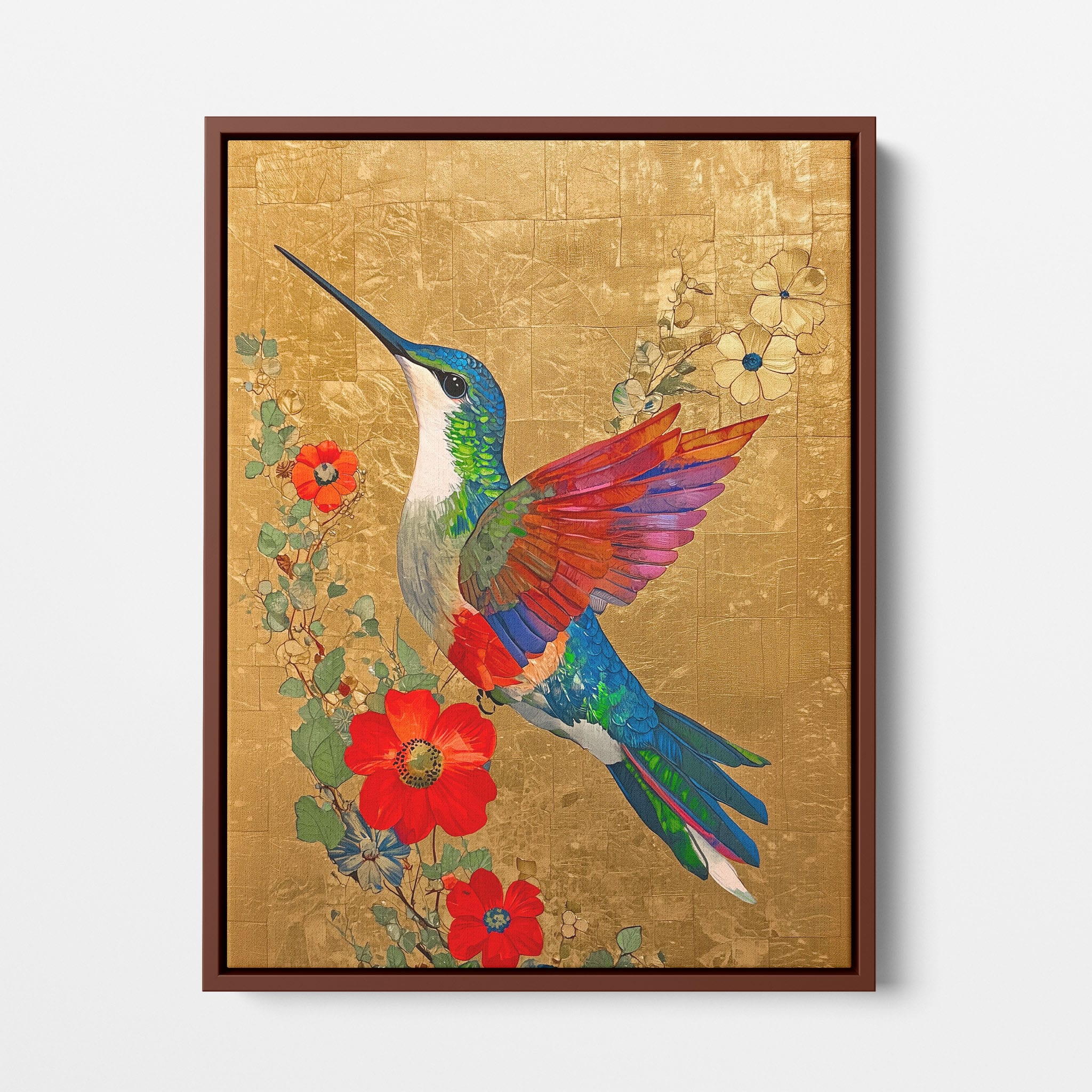 This stunning digital painting captures the essence of a vibrant hummingbird mid-flight, surrounded by a lush tapestry of red and blue flowers against a textured gold background. The detailed brushwork emphasizes the shimmer of the bird's iridescent feathers, making it almost lifelike. The interplay of natural elements and vivid colors presents a striking visual appeal that resonates with nature lovers and art aficionados alike. Adding this piece to your space promises a touch of nature’s dynamism and color. This digital painting is a must-have for anyone looking to add a splash of color and wildlife charm to their home or office.