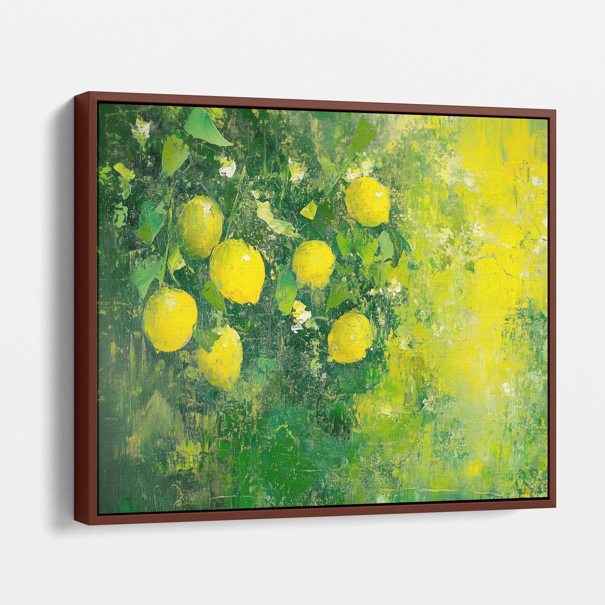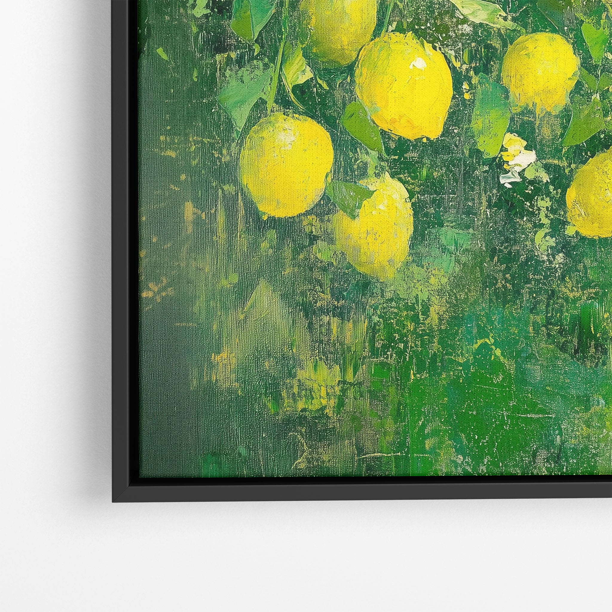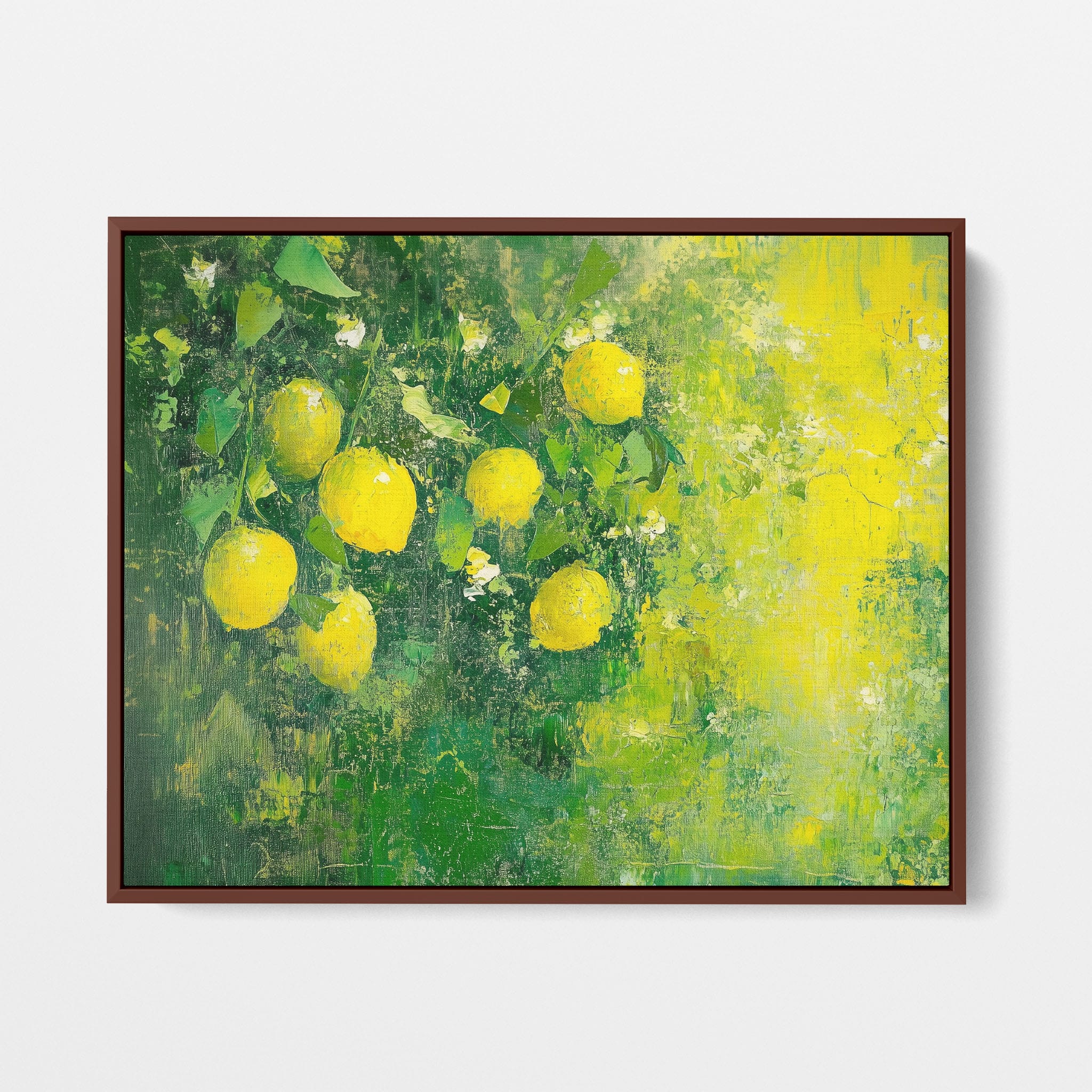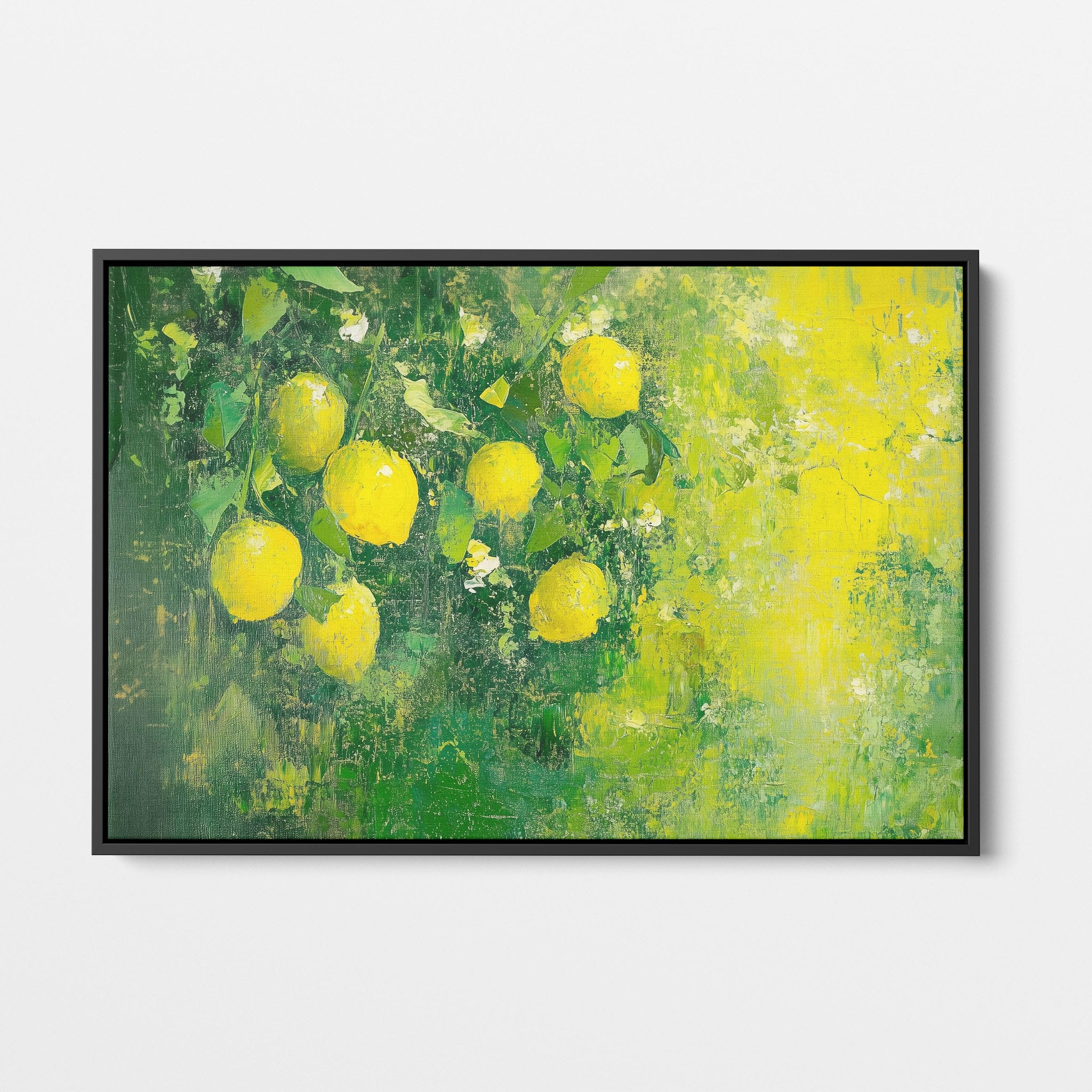 Capturing the lively essence of summer, this vivid painting showcases a cluster of fresh, bright lemons ensconced in rich, verdant greens. Utilizing thick layers of paint, the artist achieves a texture that elevates the ordinary fruit to a captivating focus of art. The joyful yellows against the dynamic green background evoke the zest of nature, appealing to aficionados of Impressionism and Still Life. Ideal for brightening up a kitchen or a dining space, this piece promises to bring a touch of nature's vibrancy into your home.
