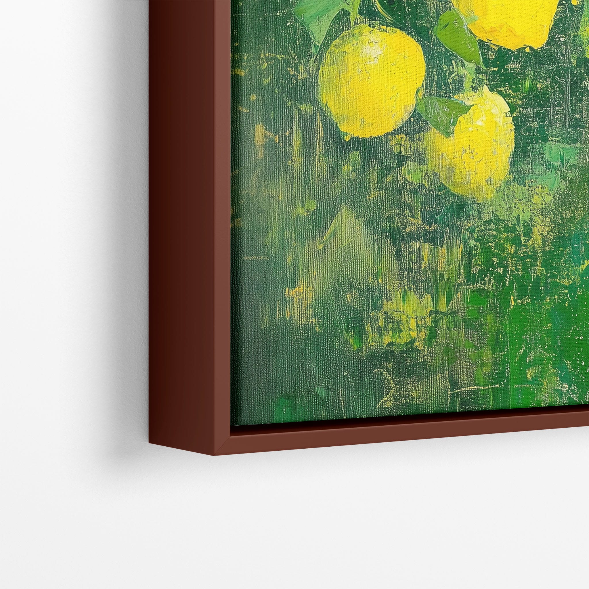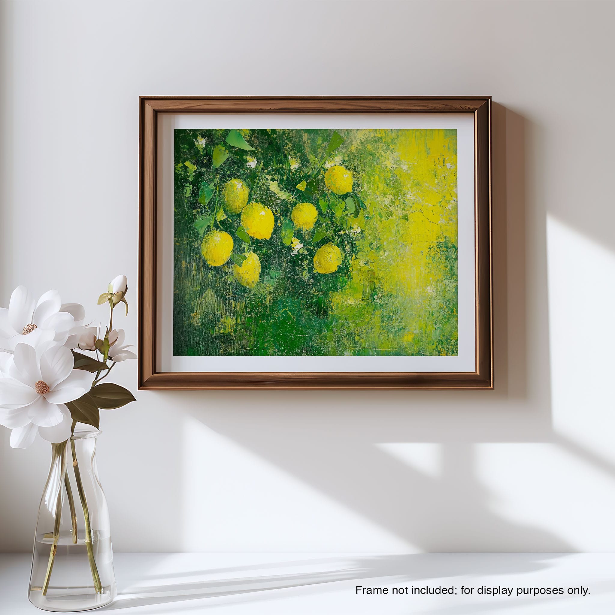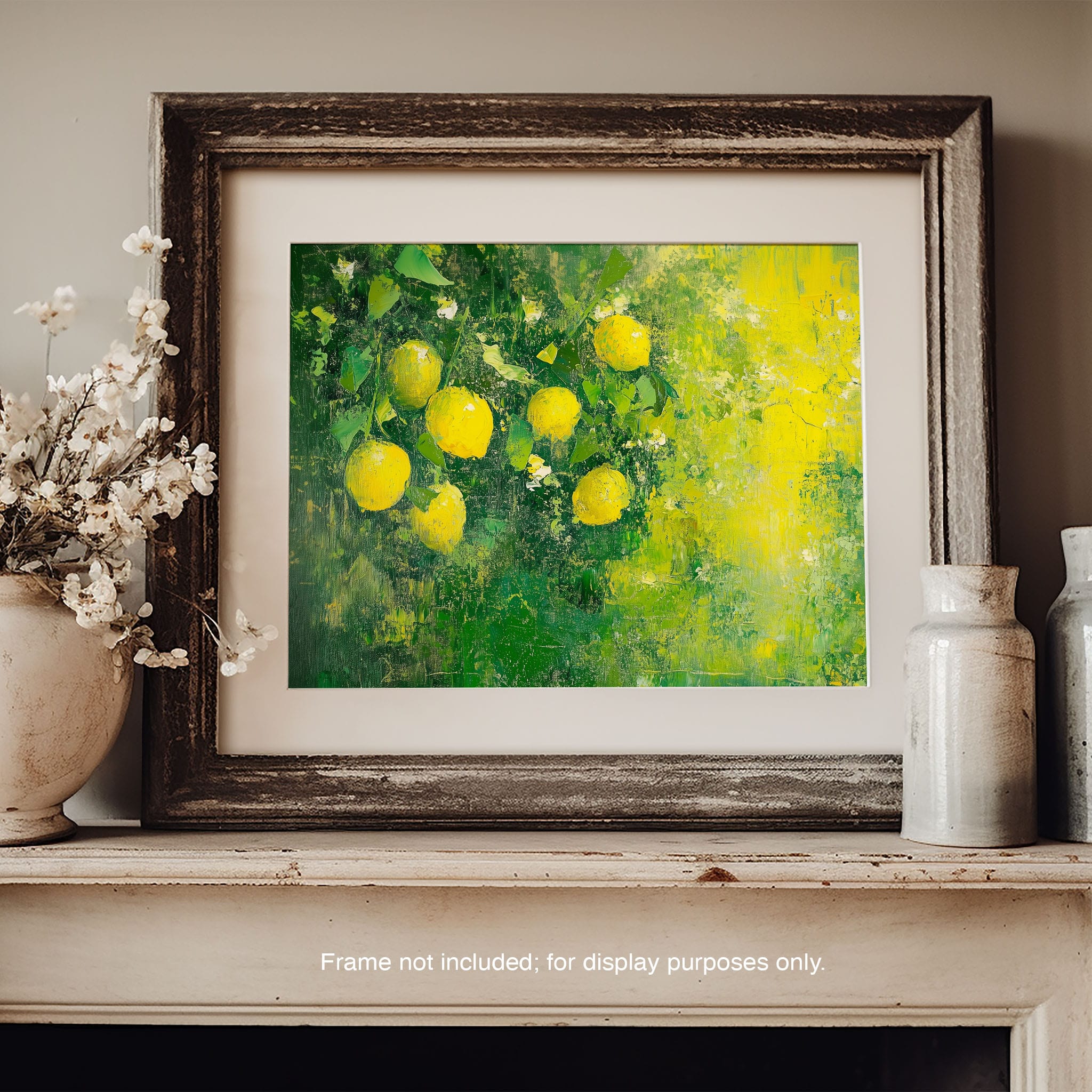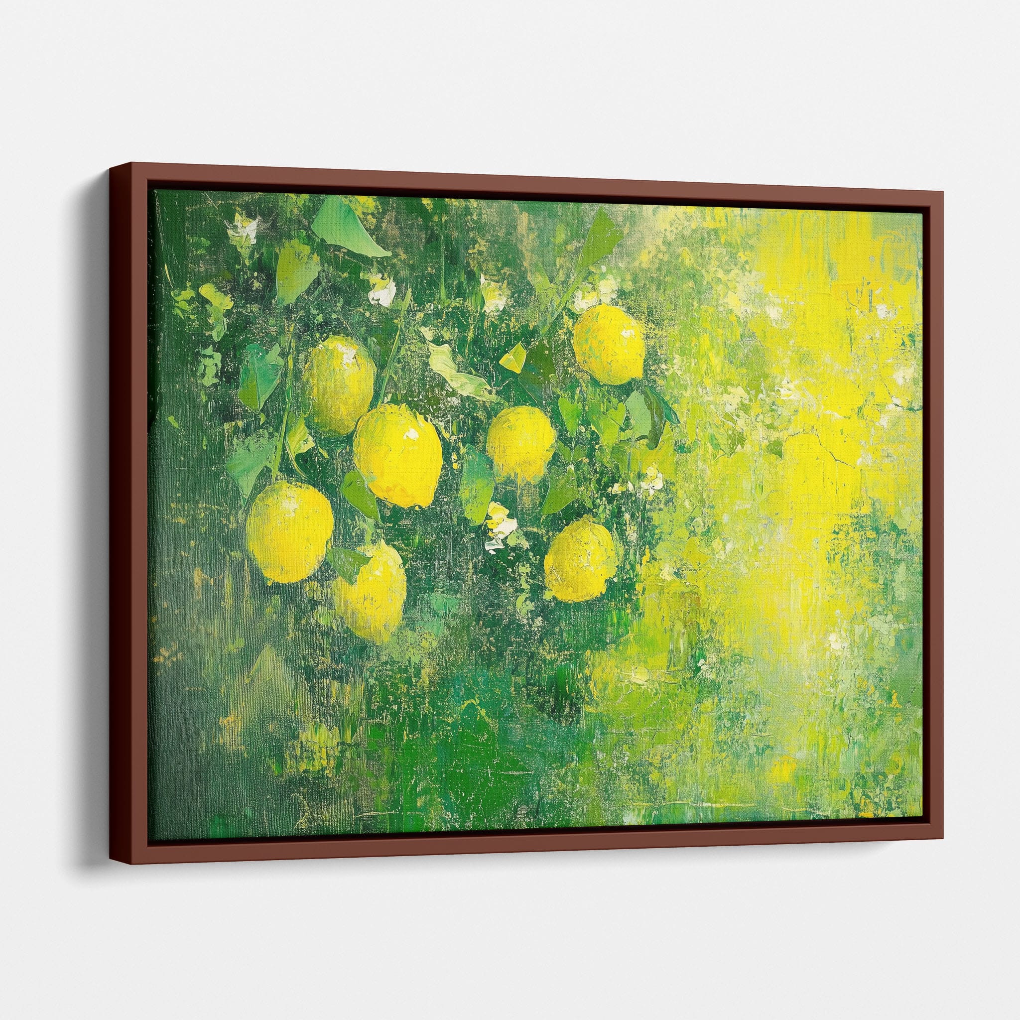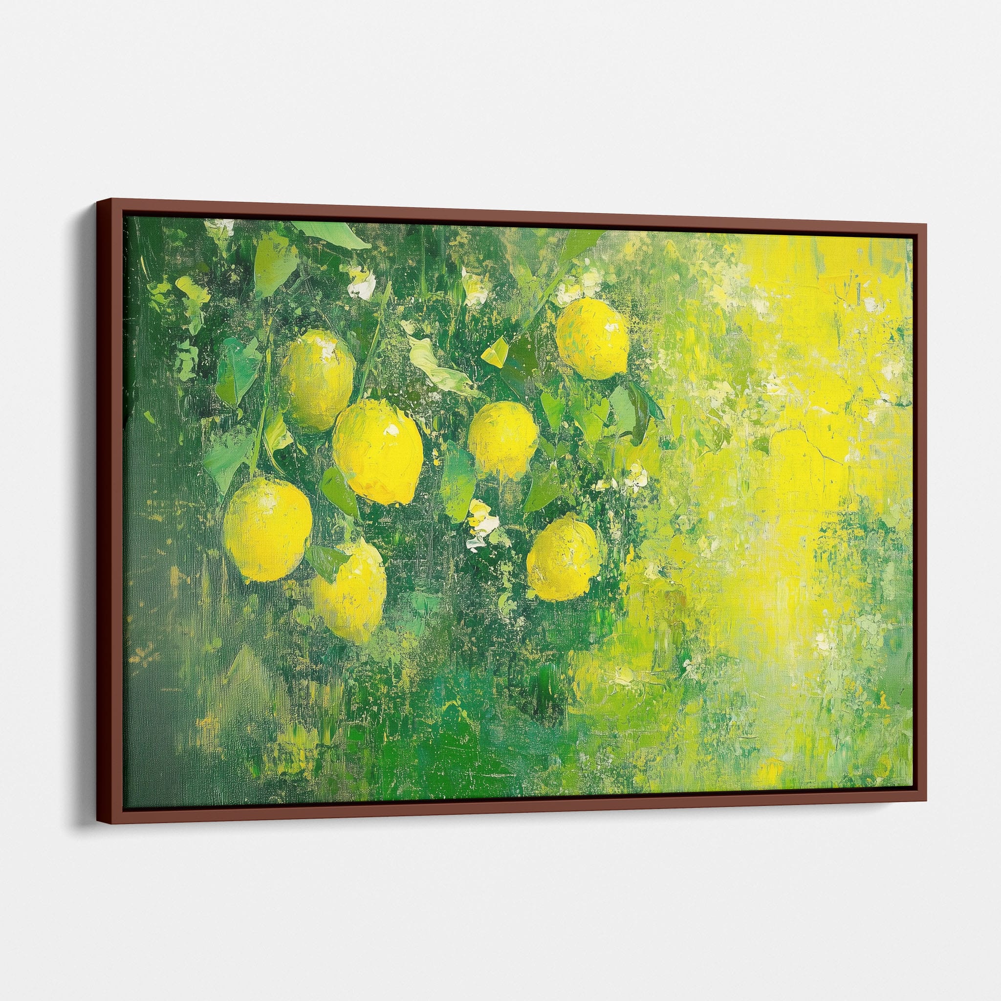 Capturing the lively essence of summer, this vivid painting showcases a cluster of fresh, bright lemons ensconced in rich, verdant greens. Utilizing thick layers of paint, the artist achieves a texture that elevates the ordinary fruit to a captivating focus of art. The joyful yellows against the dynamic green background evoke the zest of nature, appealing to aficionados of Impressionism and Still Life. Ideal for brightening up a kitchen or a dining space, this piece promises to bring a touch of nature's vibrancy into your home.