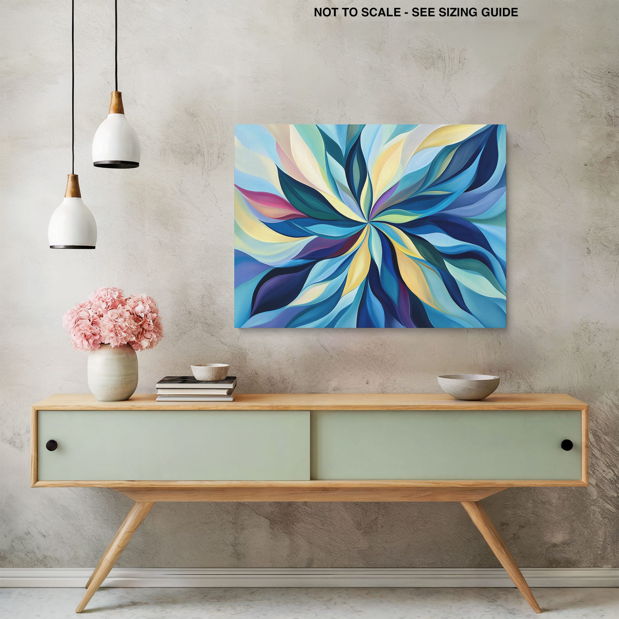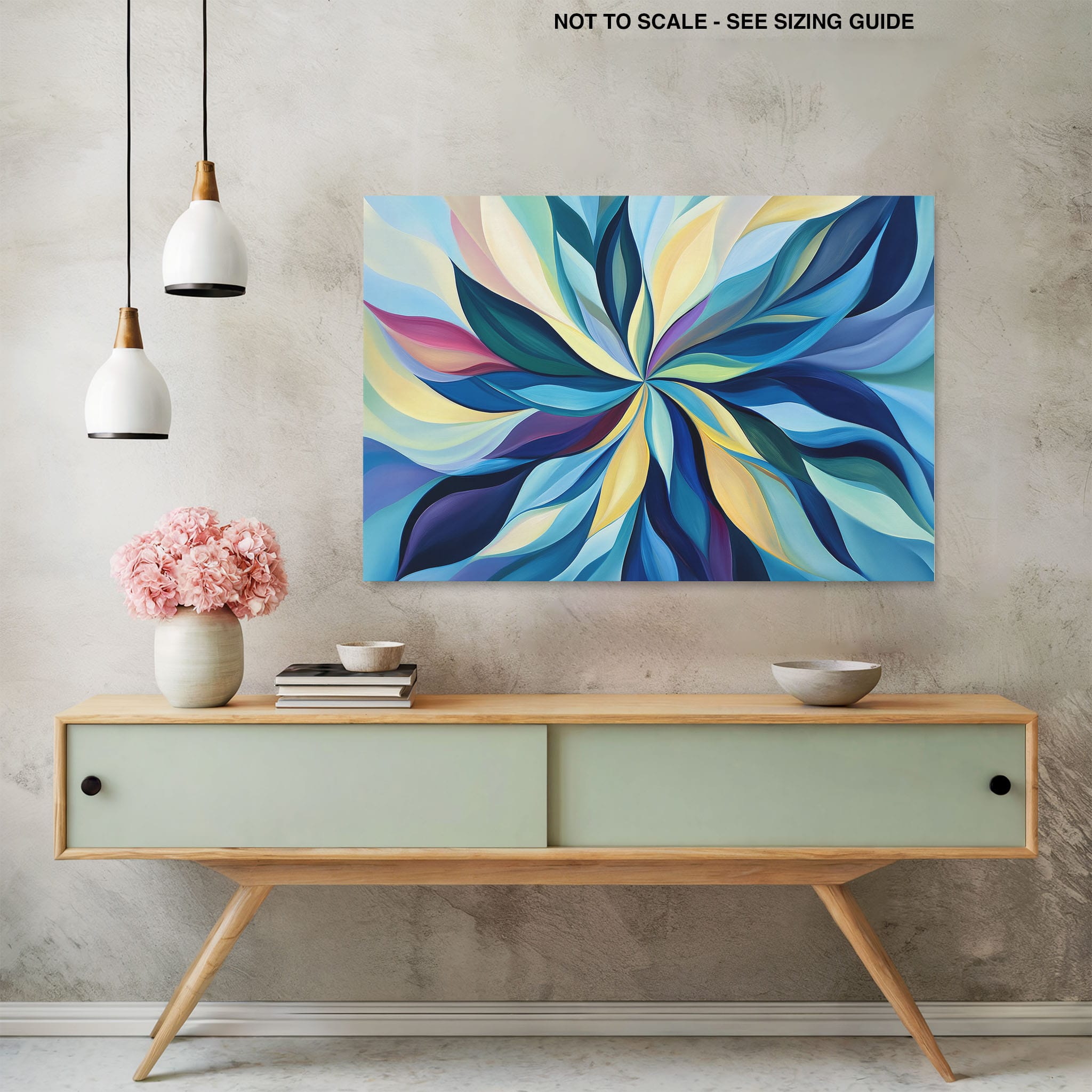 Captivate your senses with this dazzling abstract painting, Vibrant Swirl Symphony. Bold strokes and flowing curves of blues, greens, and yellows converge into a stunning central vortex, portraying a vivid dance of colors on canvas. This artwork combines modern sensibilities with a hint of surrealism, creating an eye-catching spectacle that elevates any living space. Perfect for art lovers in search of a piece that offers both aesthetic pleasure and a splash of color, this painting promises to be a conversation starter in any contemporary setting. Enhance your home decor with this mesmerizing visual journey.