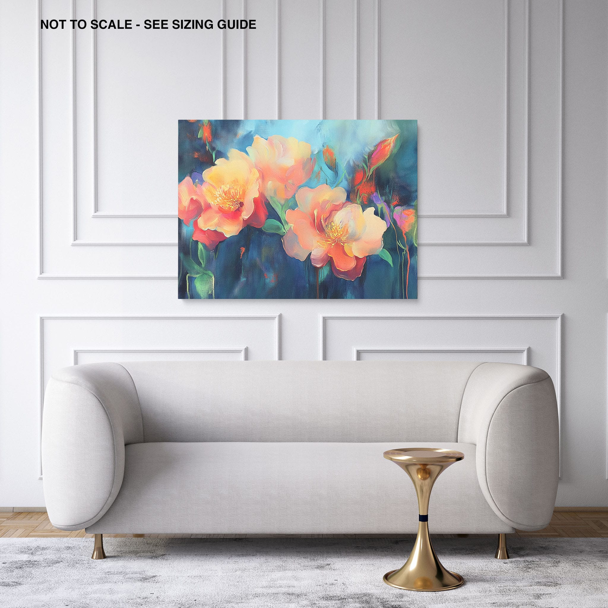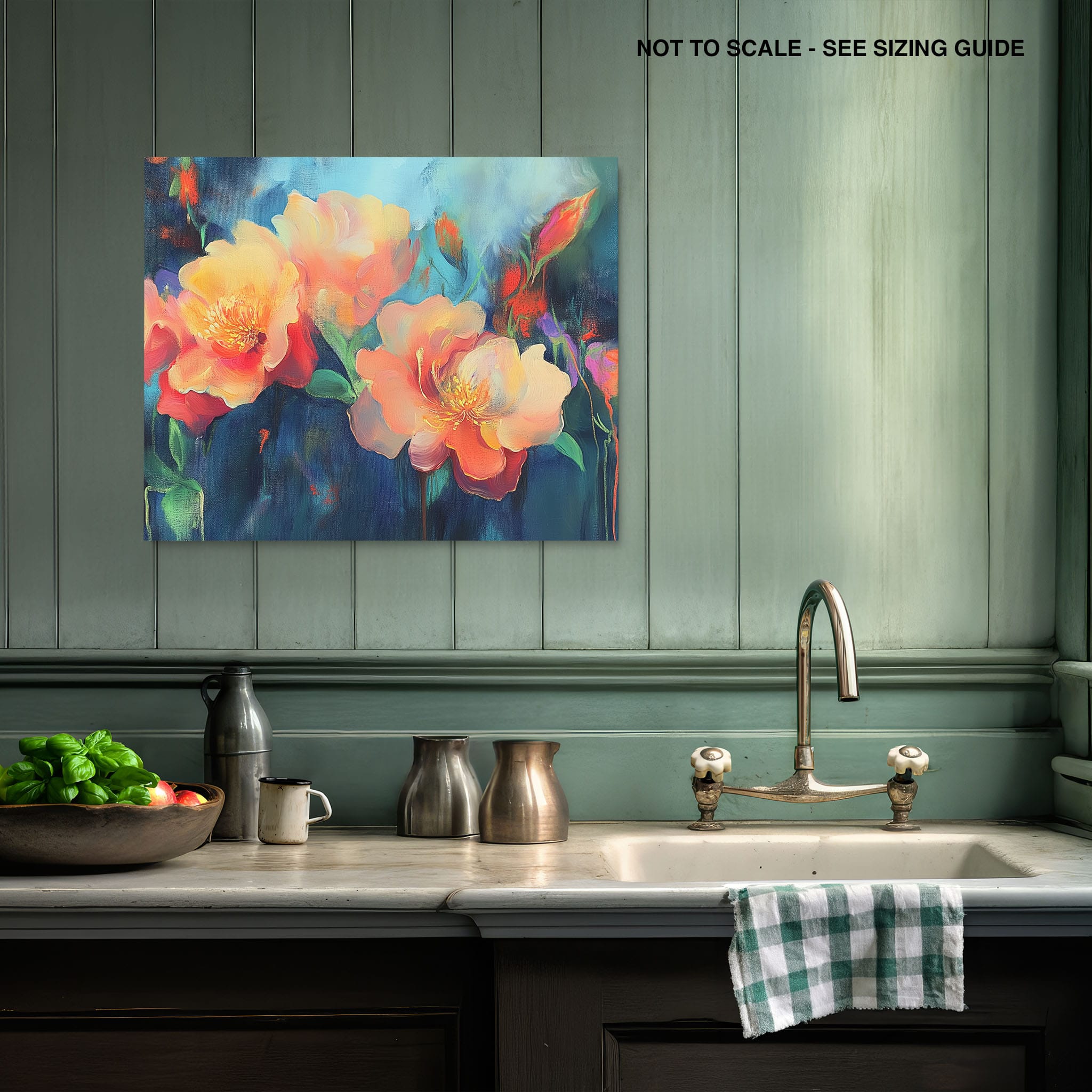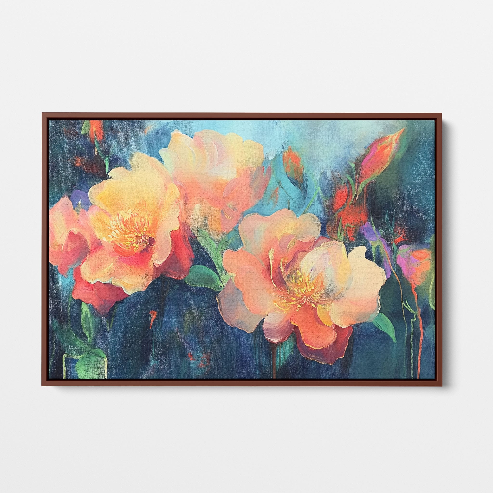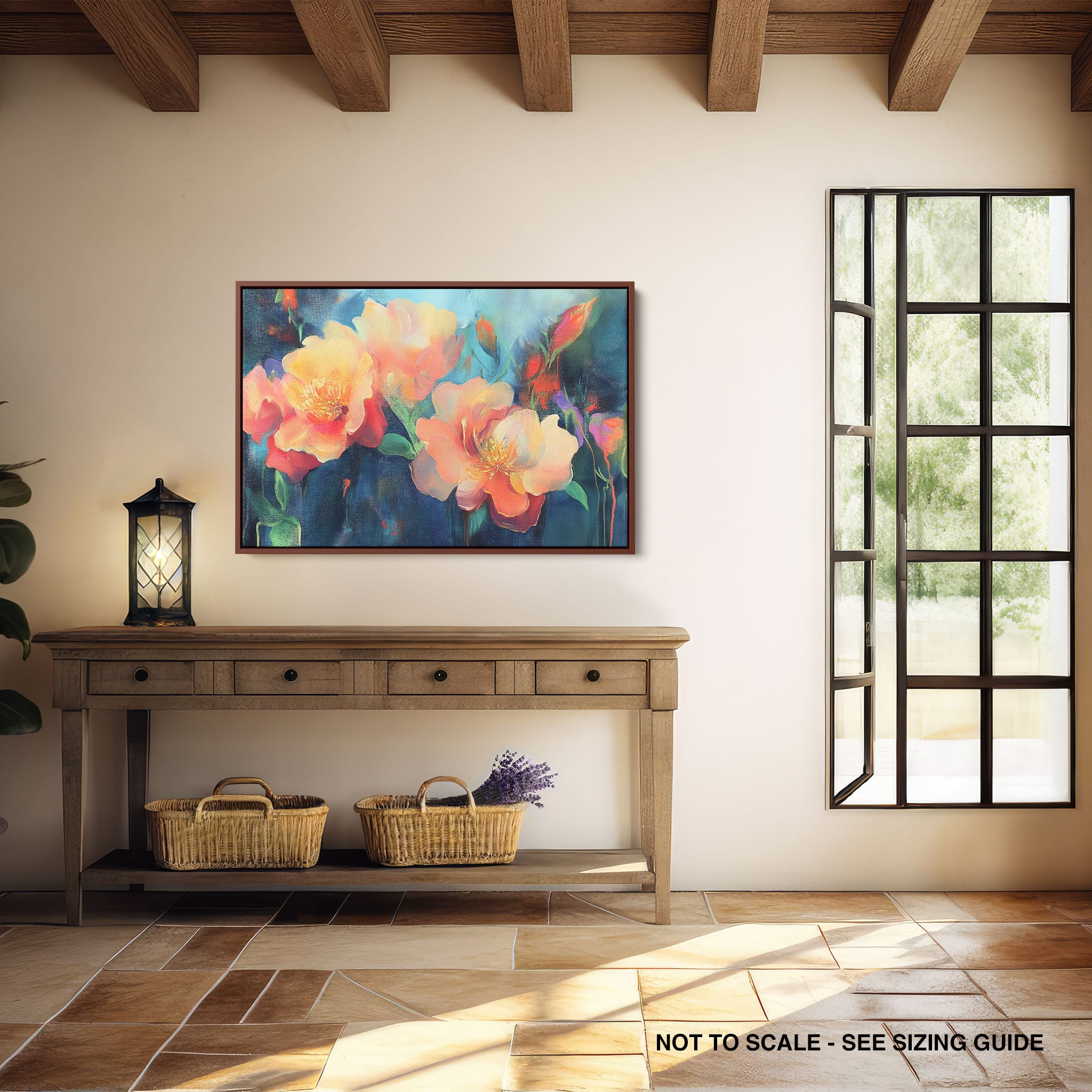 This painting captures the bold and vibrant essence of blooming flowers, using impressionistic brush strokes that blend rich hues of red, pink, and blue to create a lively floral scene. The modern style simplifies the shapes and colors, highlighting the beauty and transient nature of life. The visually striking palette and dynamic composition make this artwork a perfect choice for those who wish to bring a touch of nature's vibrancy into their homes. Add this piece to your space to enjoy a perpetual state of spring.