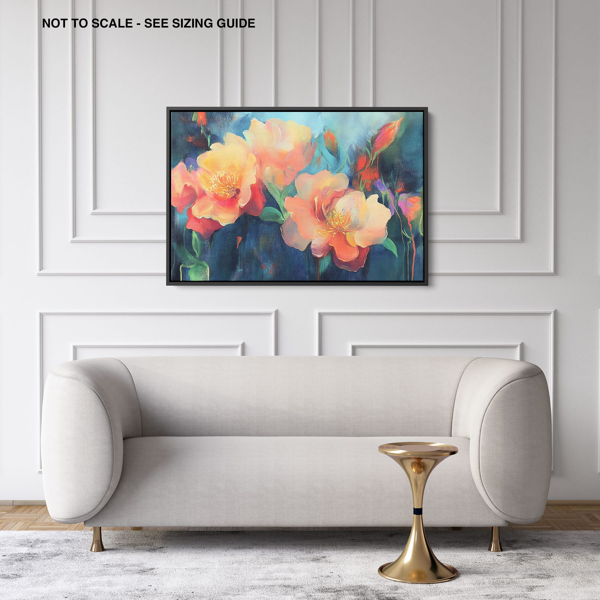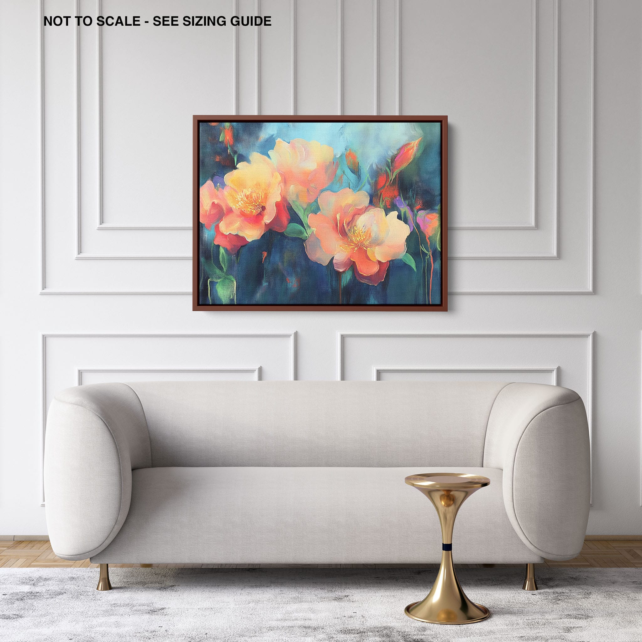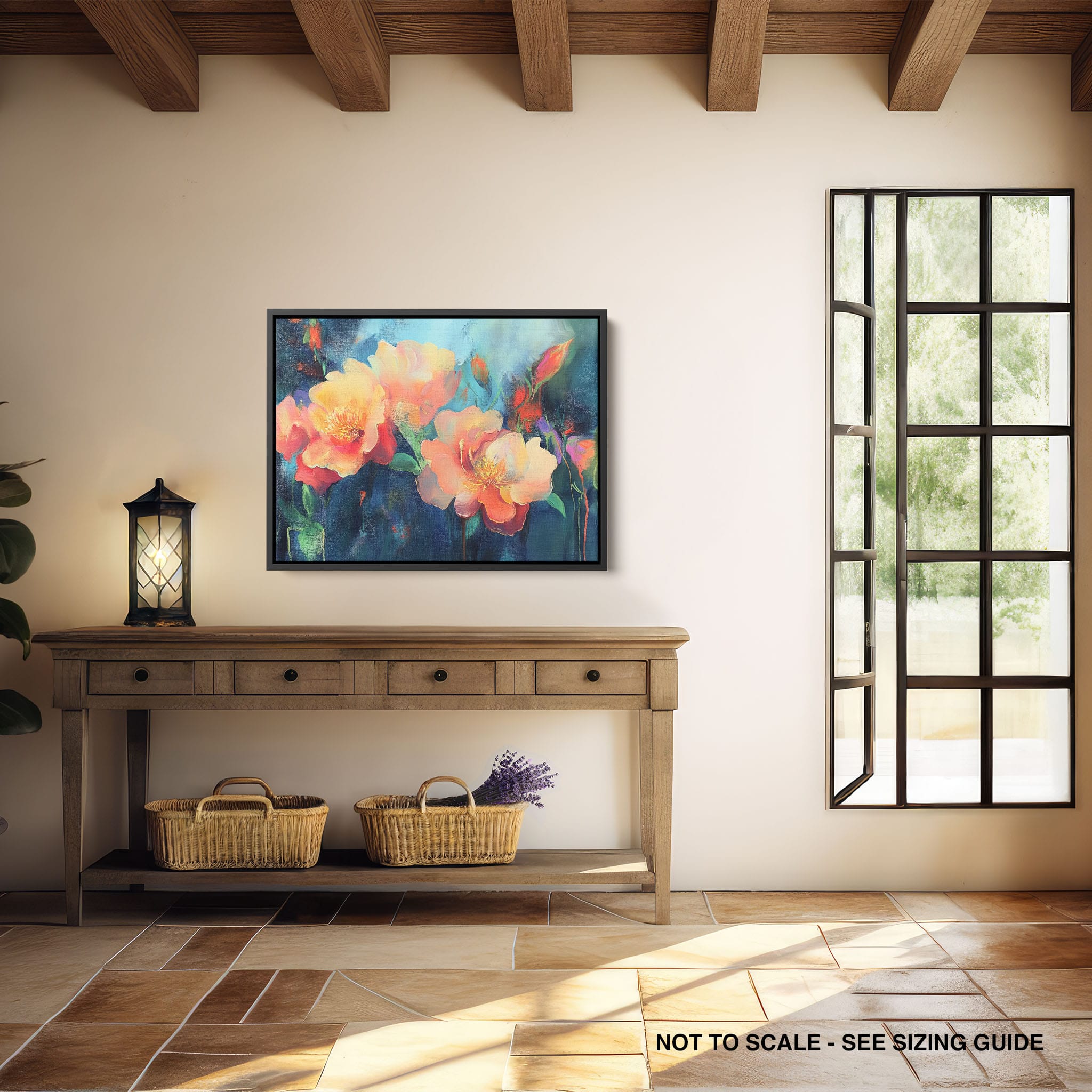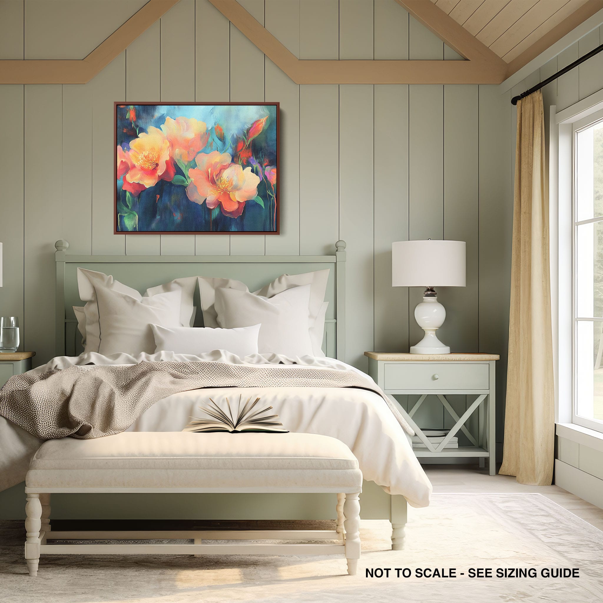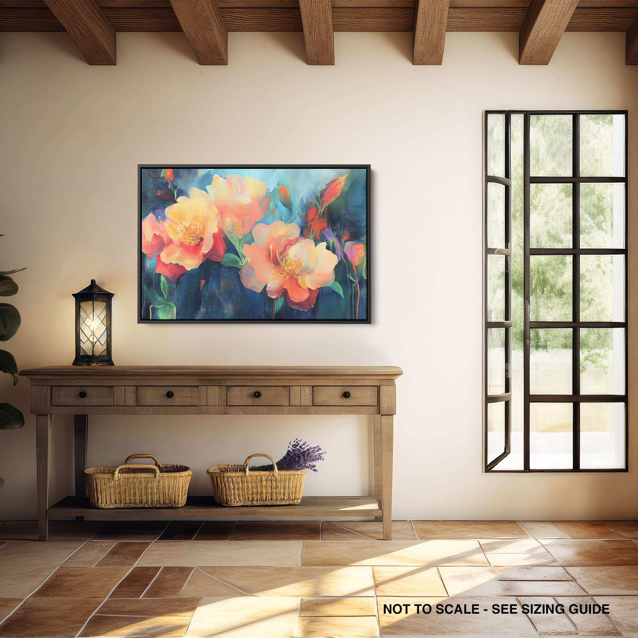 This painting captures the bold and vibrant essence of blooming flowers, using impressionistic brush strokes that blend rich hues of red, pink, and blue to create a lively floral scene. The modern style simplifies the shapes and colors, highlighting the beauty and transient nature of life. The visually striking palette and dynamic composition make this artwork a perfect choice for those who wish to bring a touch of nature's vibrancy into their homes. Add this piece to your space to enjoy a perpetual state of spring.