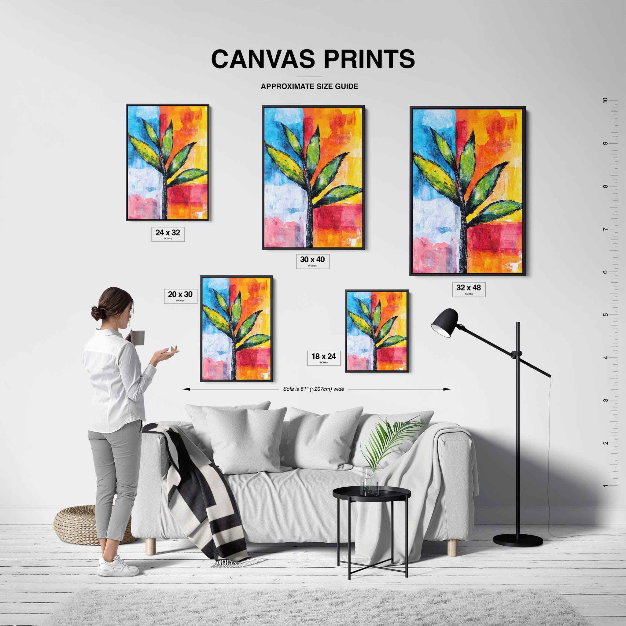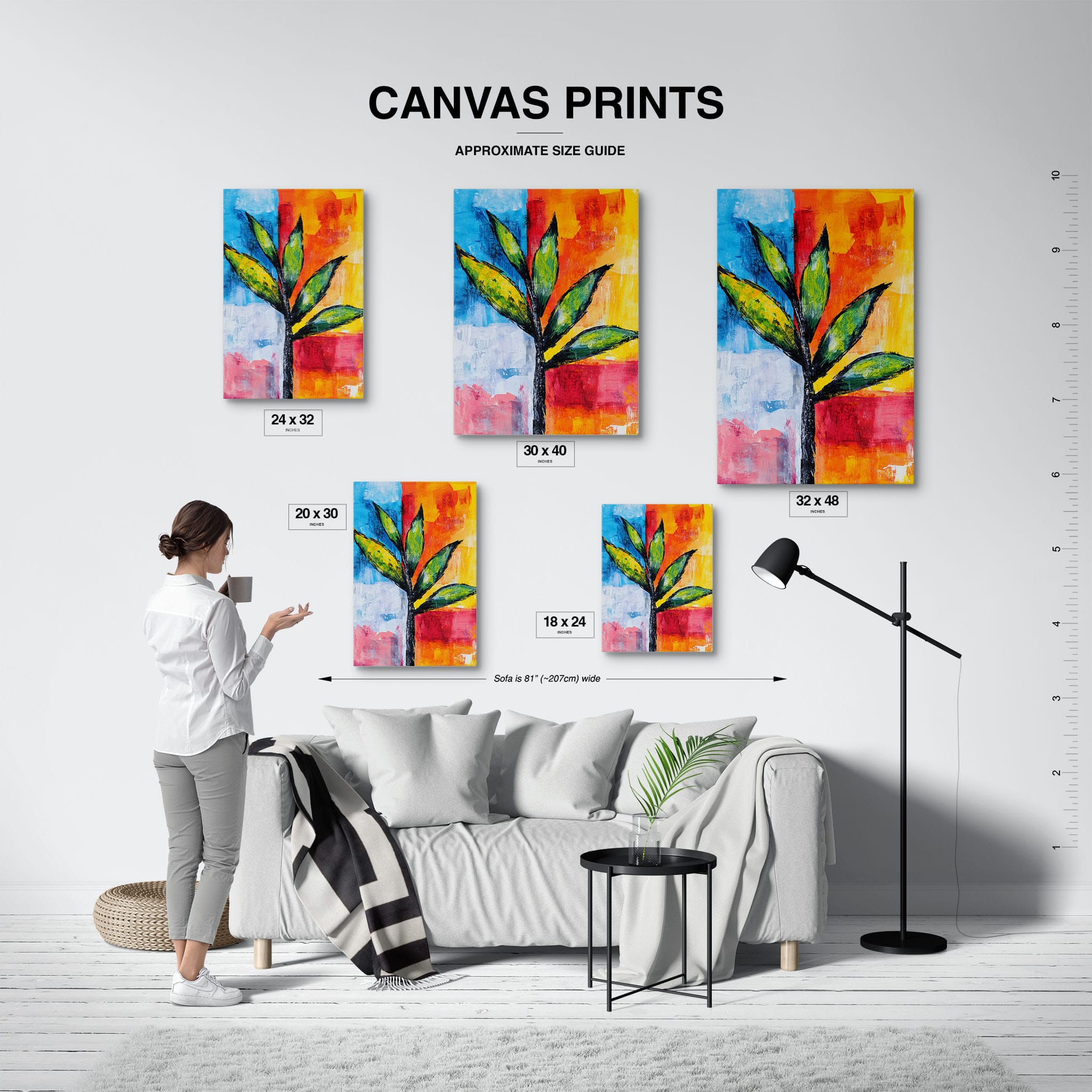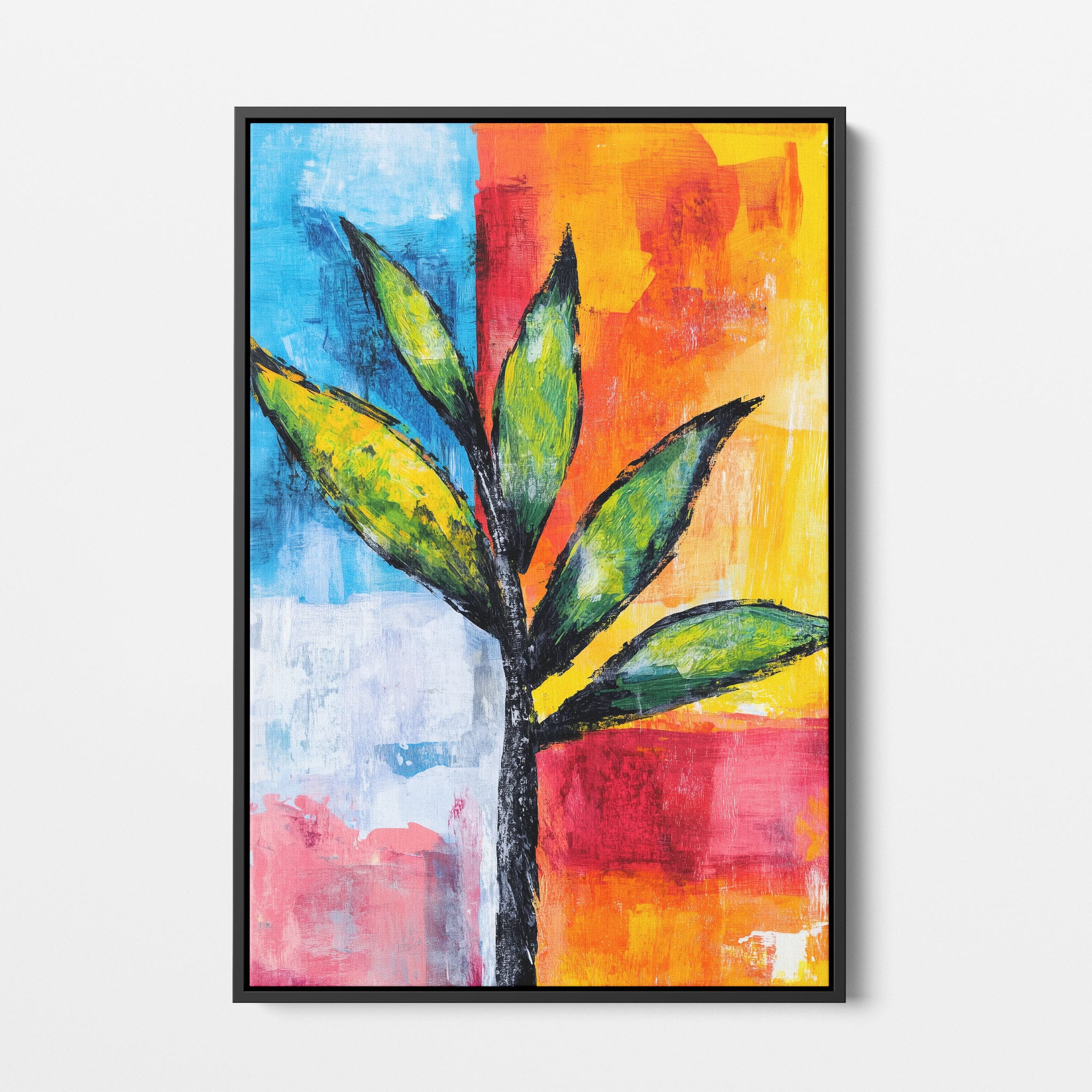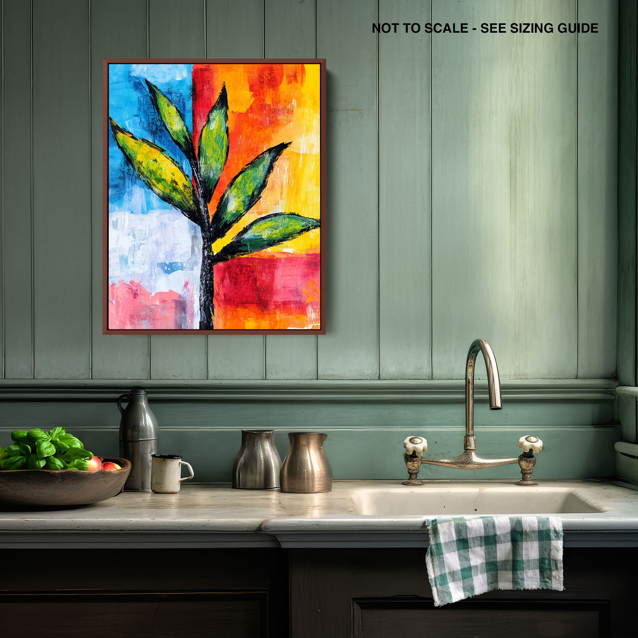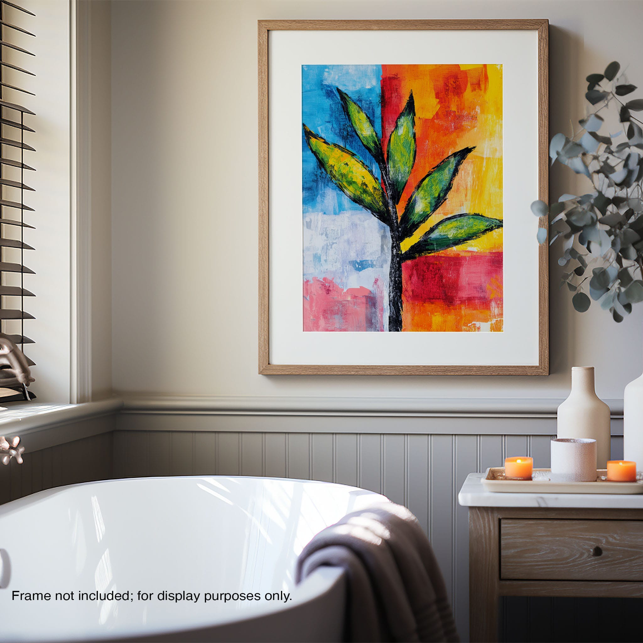 This vibrant painting captures a dynamic sprout set against a striking background of intense color gradients. With broad, confident brush strokes reminiscent of Expressionism, the artist brings life to the canvas, blending Modern art influences with Abstract designs. Each leaf is highlighted in varying shades of green, seeming almost to stretch towards the warmth of the reds, yellows, and blues that envelop it. This artwork is perfect for those seeking a bold statement piece that combines artistic intensity with a celebration of natural forms. Add this piece to your living space to introduce a splash of color and creativity.